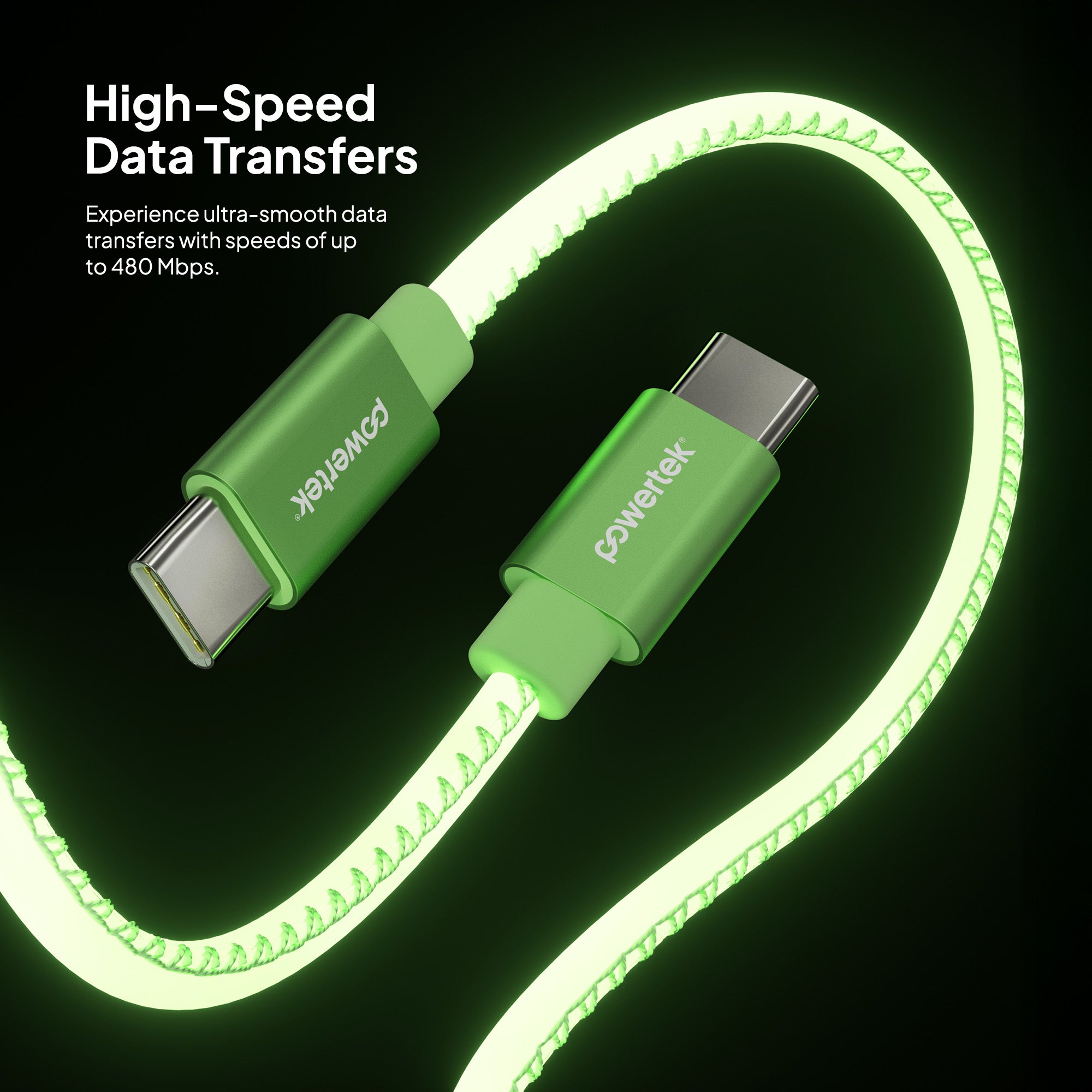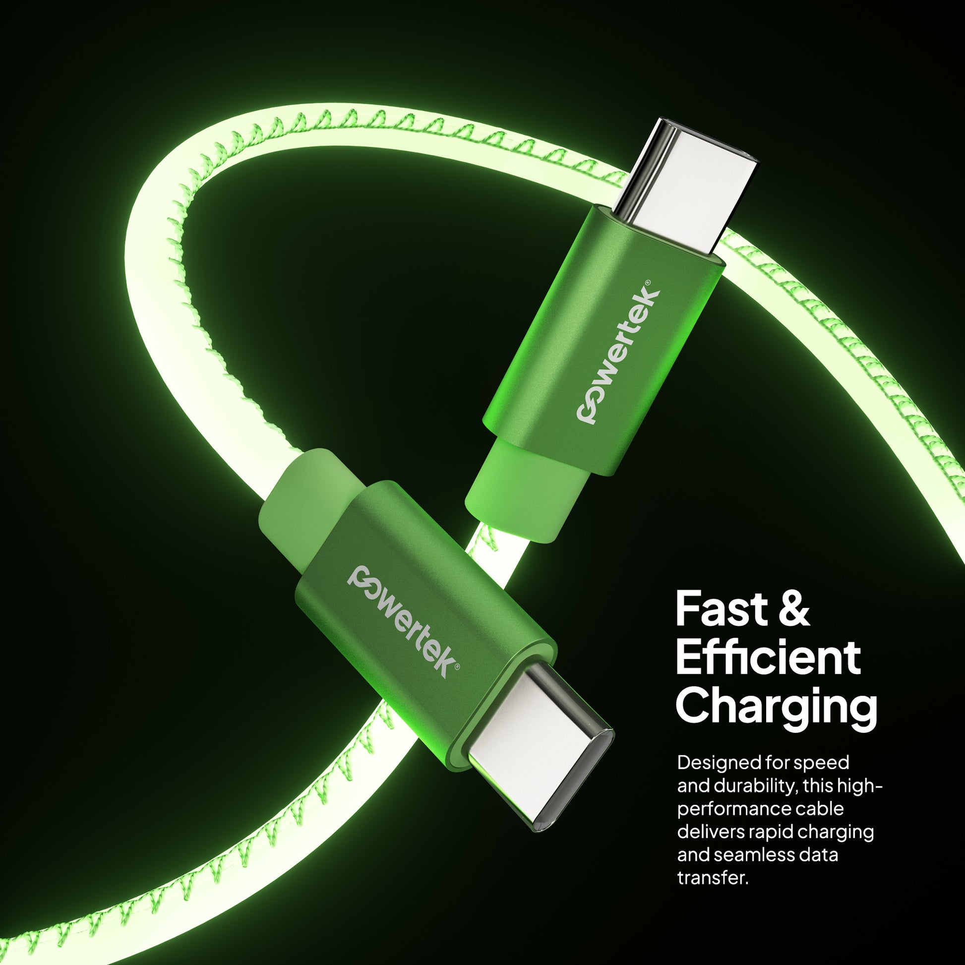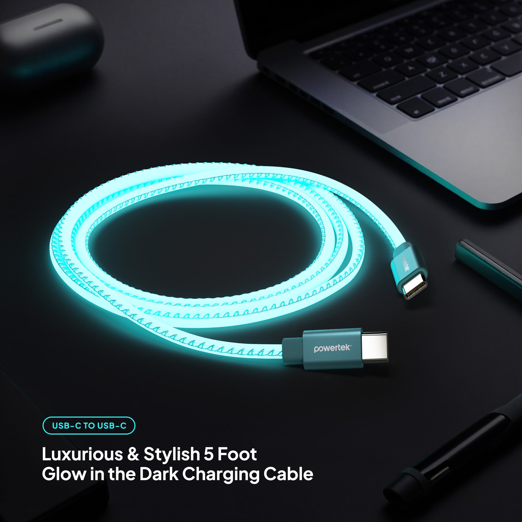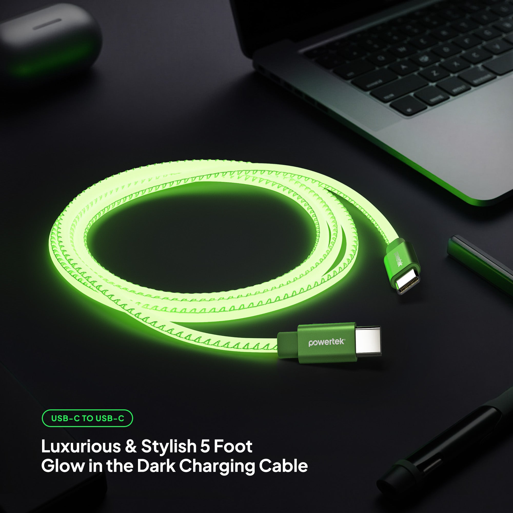 Powertek Glow in the Dark USB-C to USB-C Charging Cable (5ft)