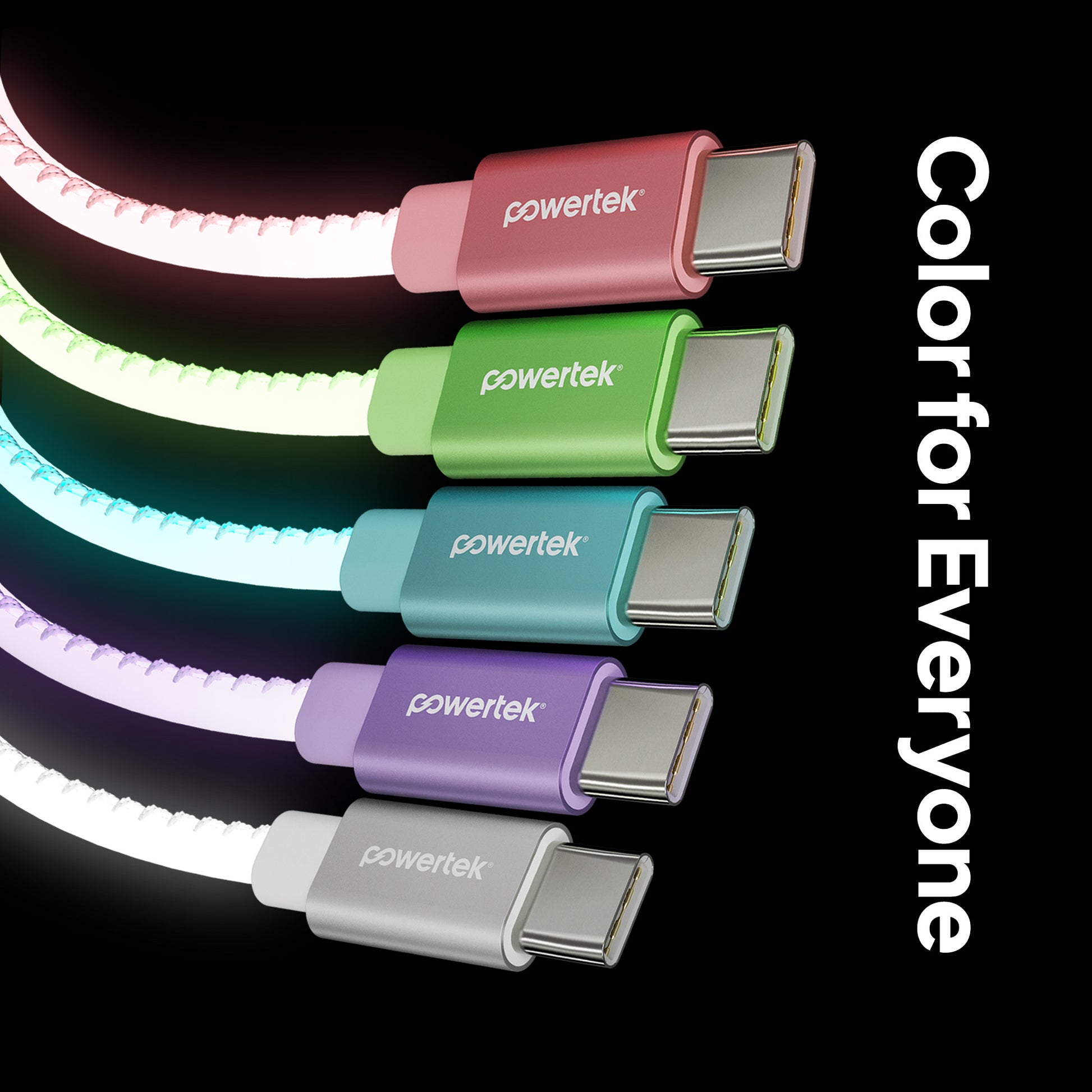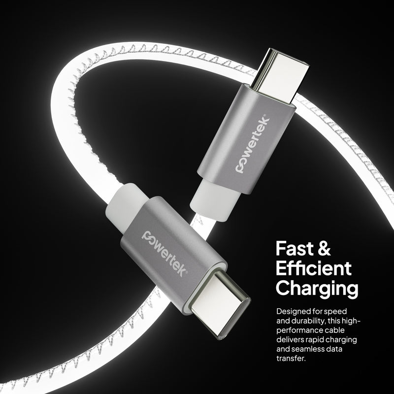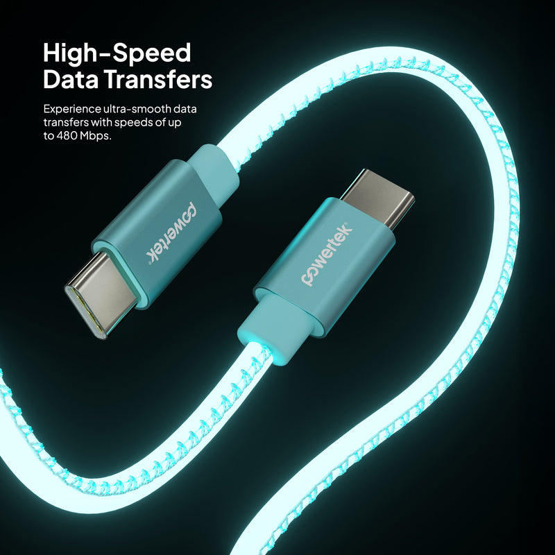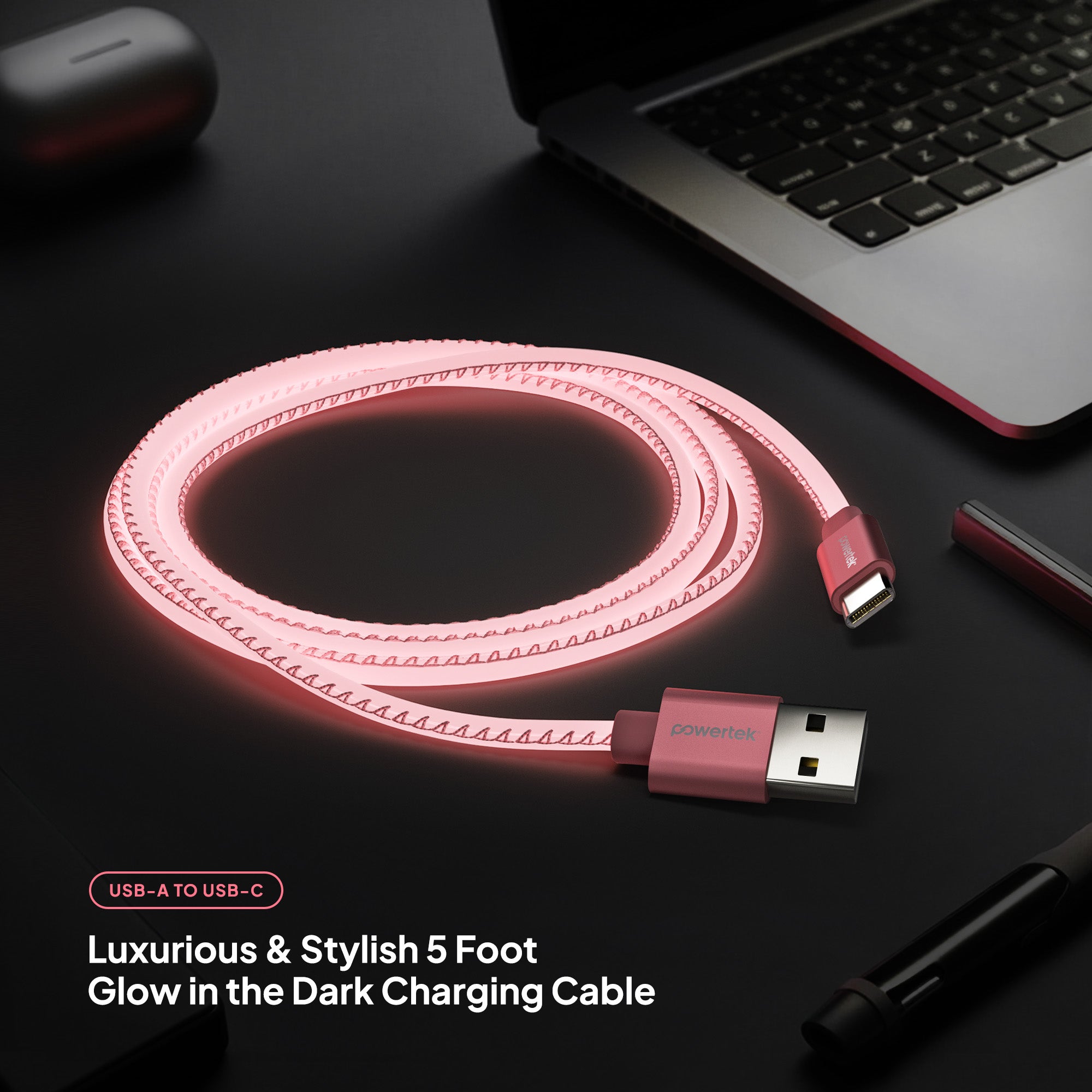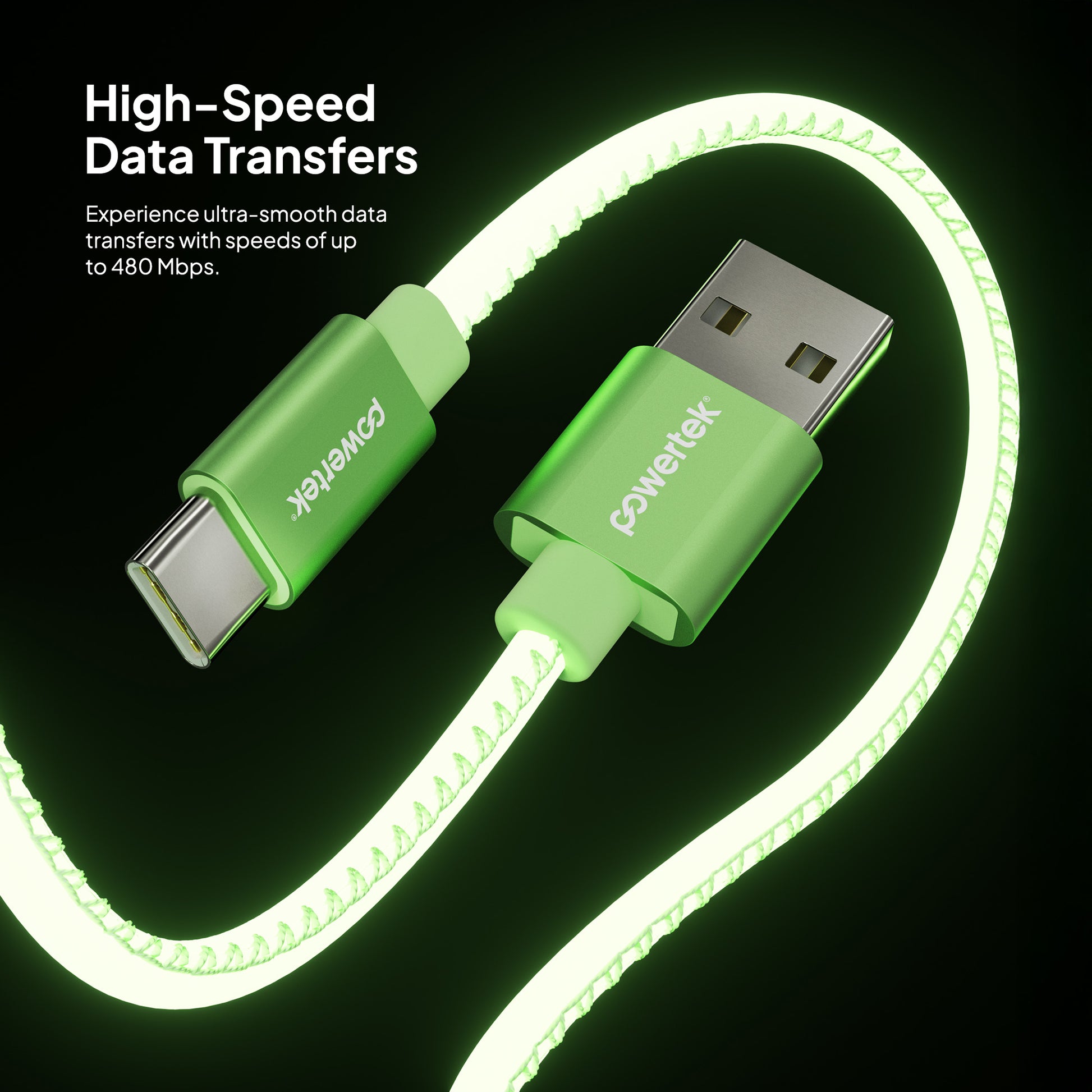 Powertek Glow in the Dark USB-C to USB-C Charging Cable (5ft)