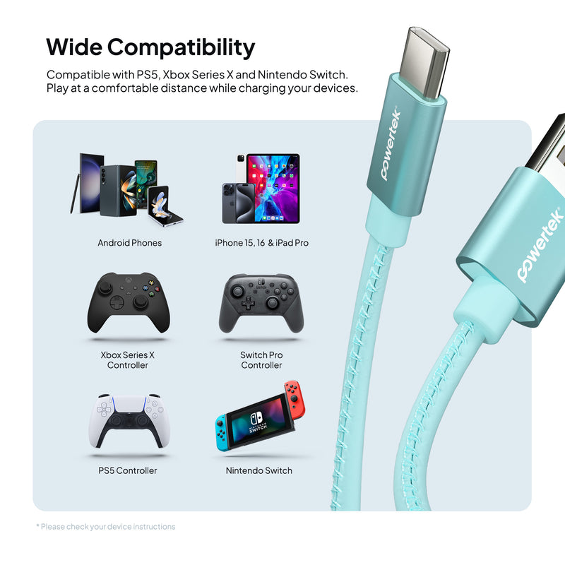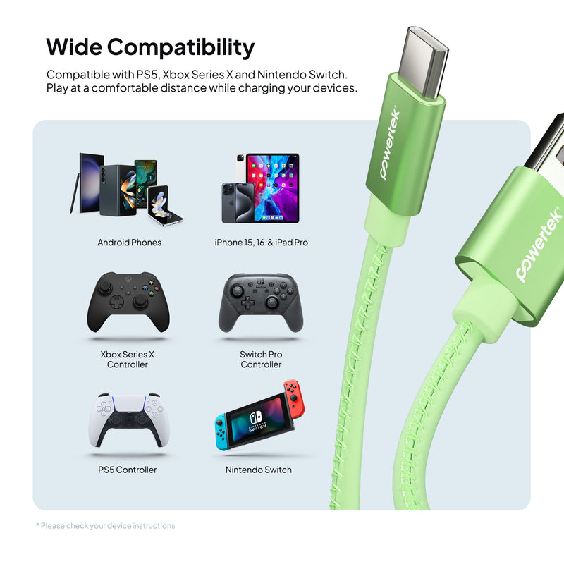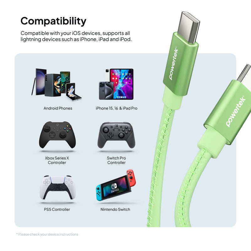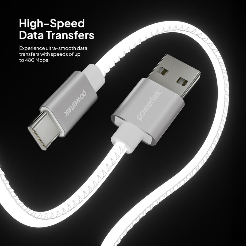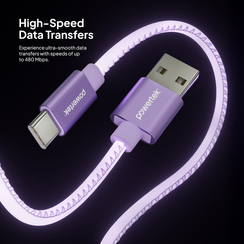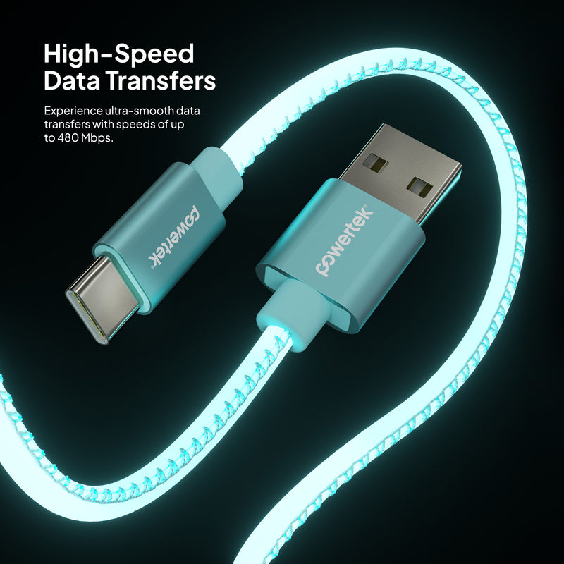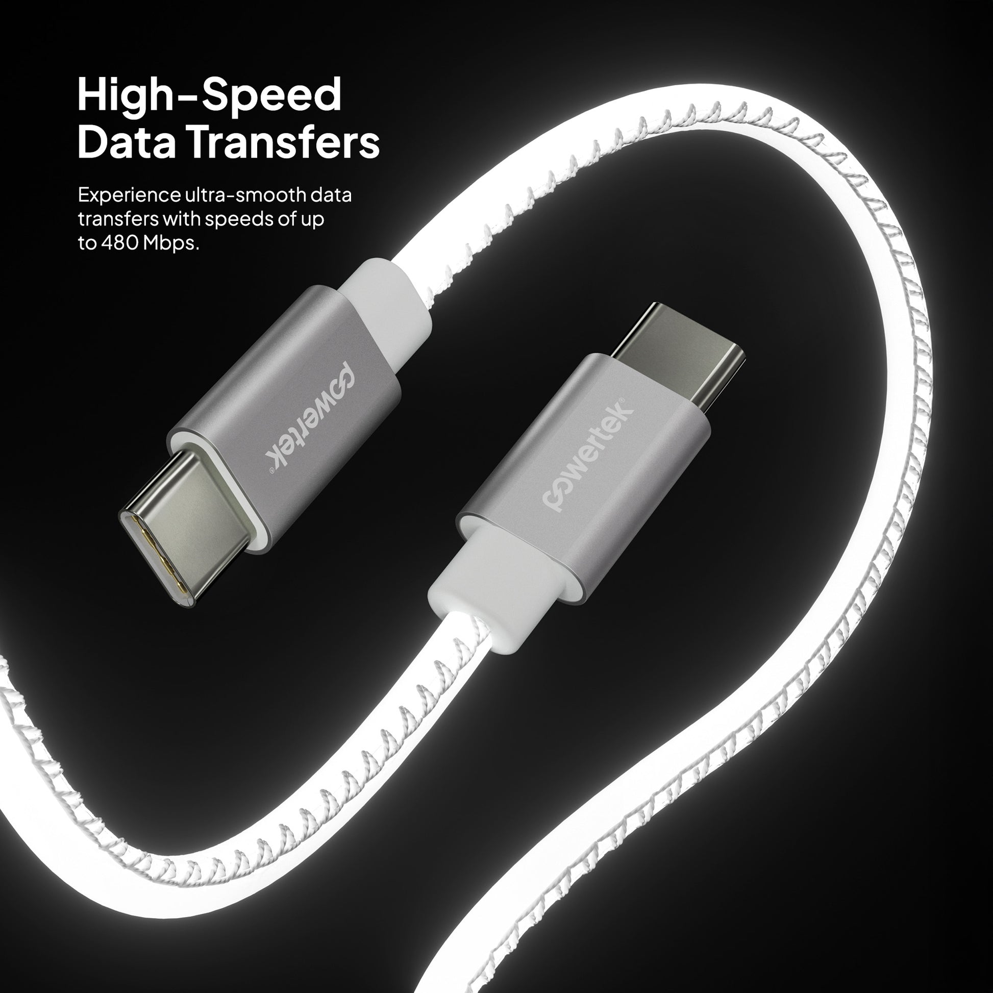 Powertek Glow in the Dark USB-C to USB-C Charging Cable (5ft)
