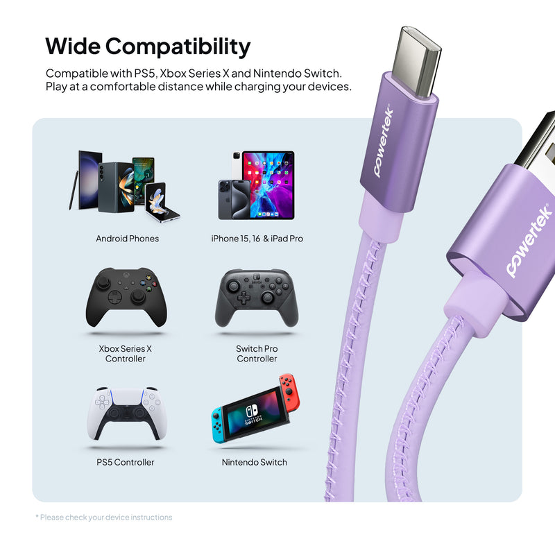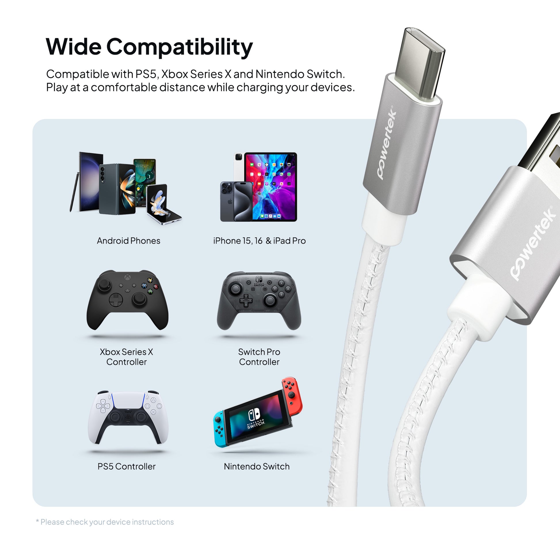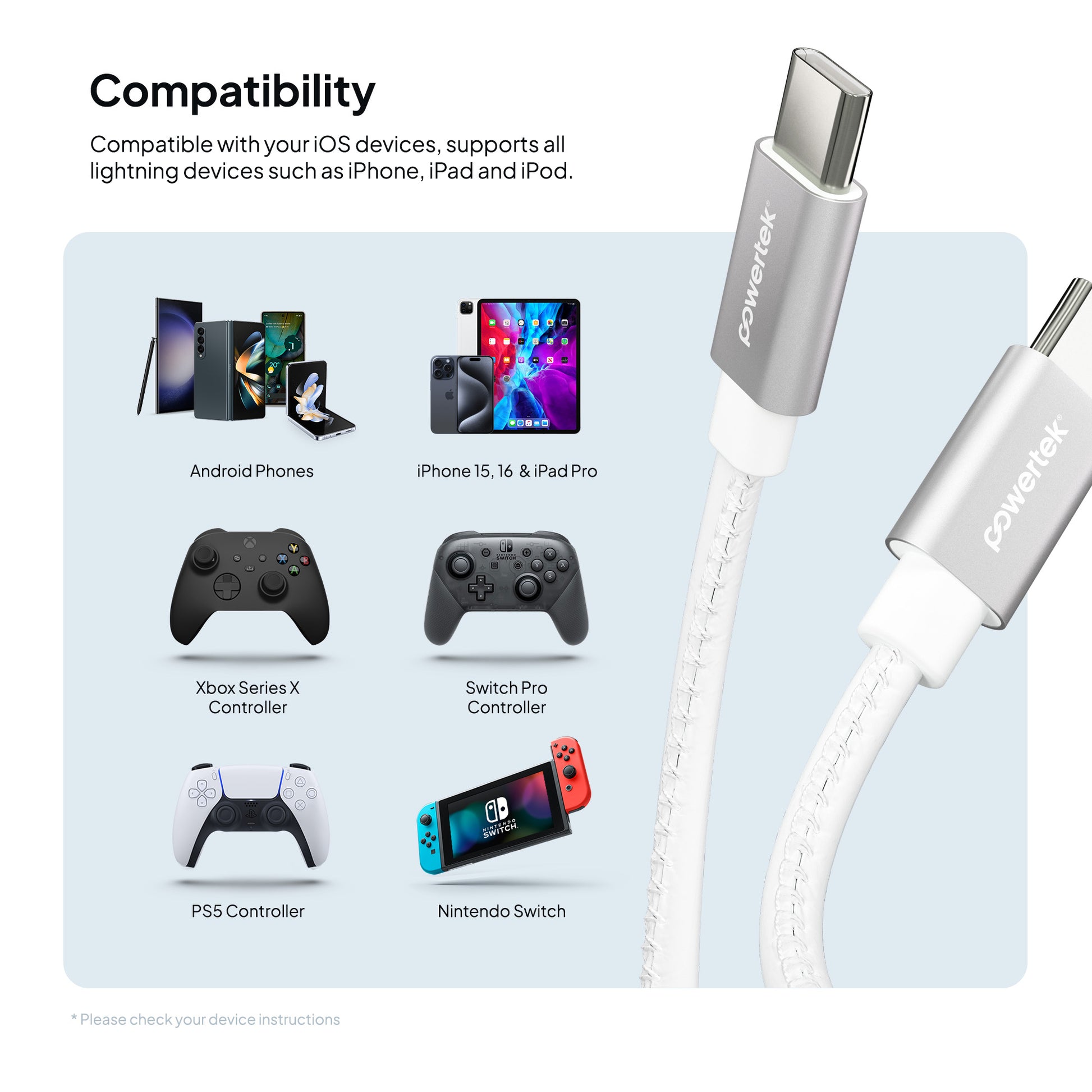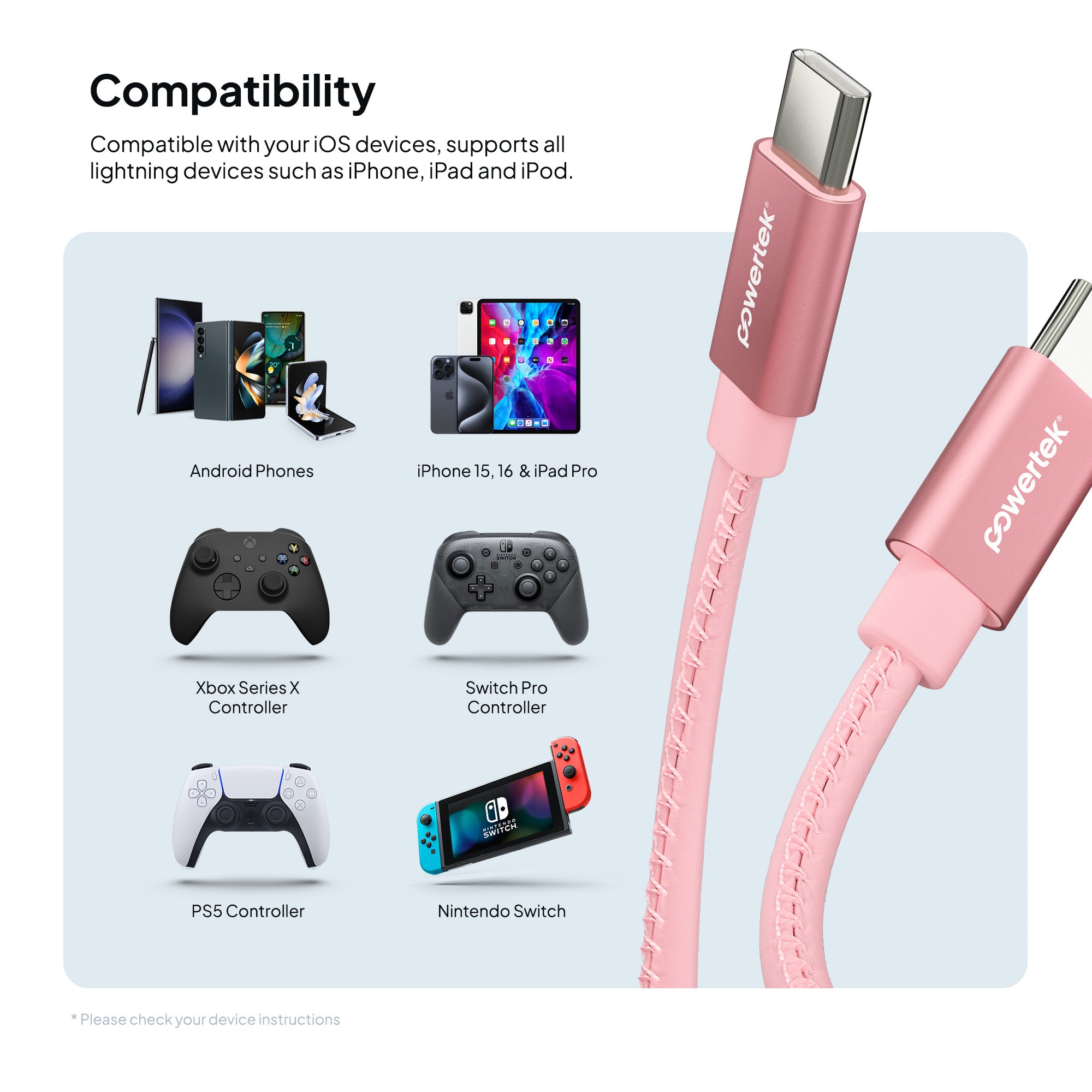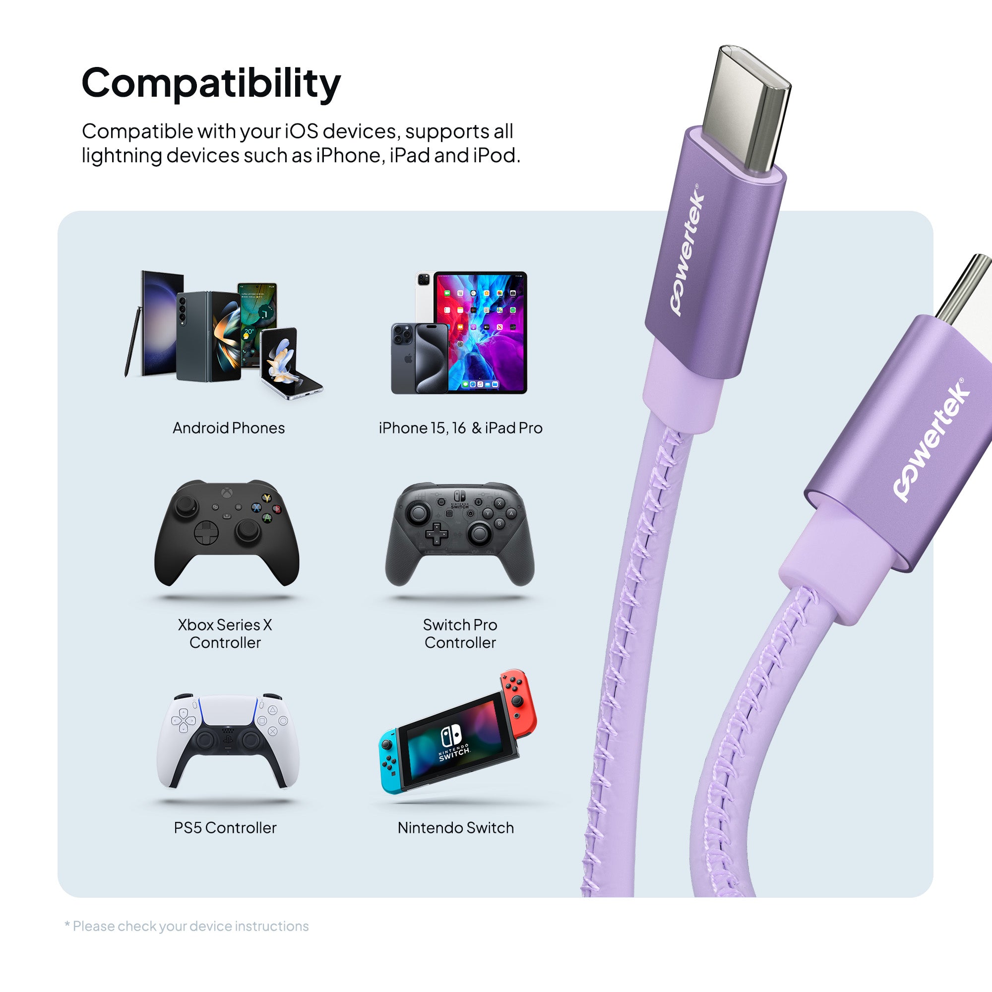 Powertek Glow in the Dark USB-C to USB-C Charging Cable (5ft)