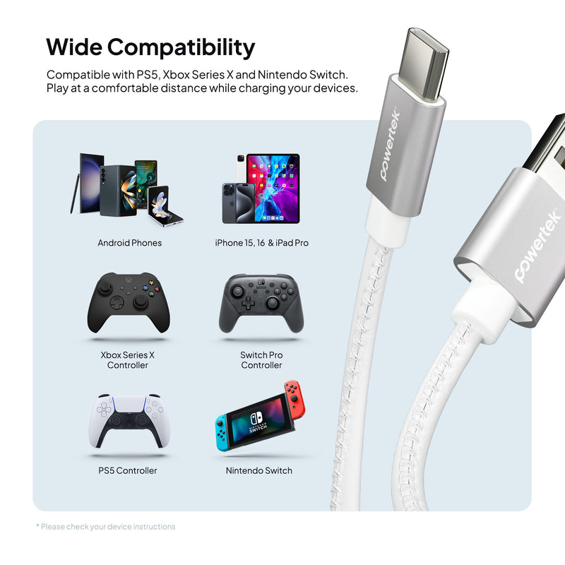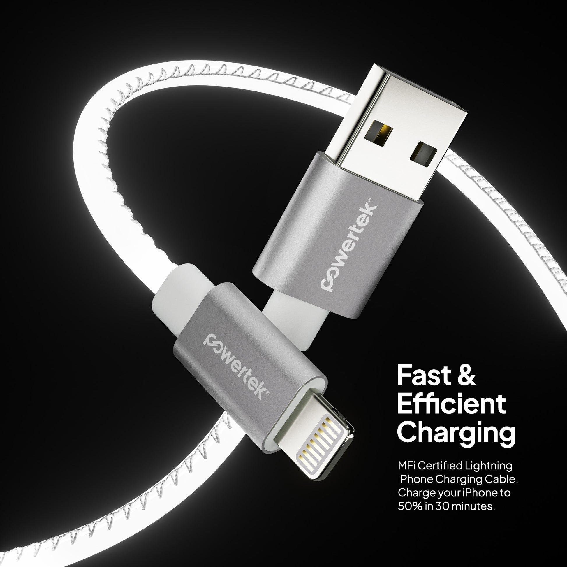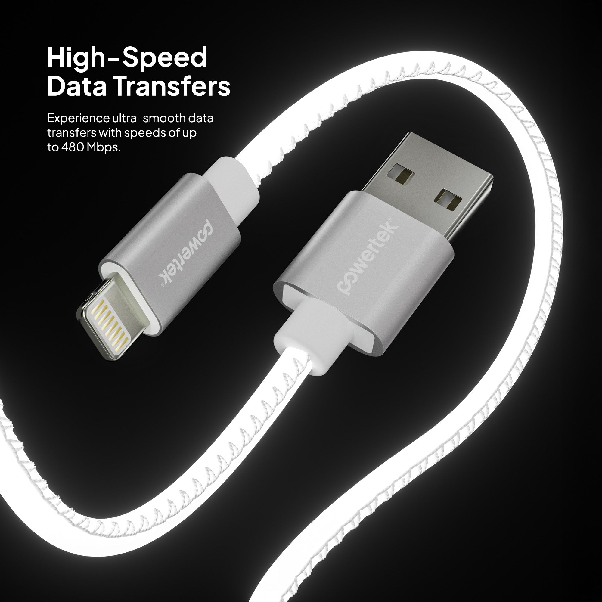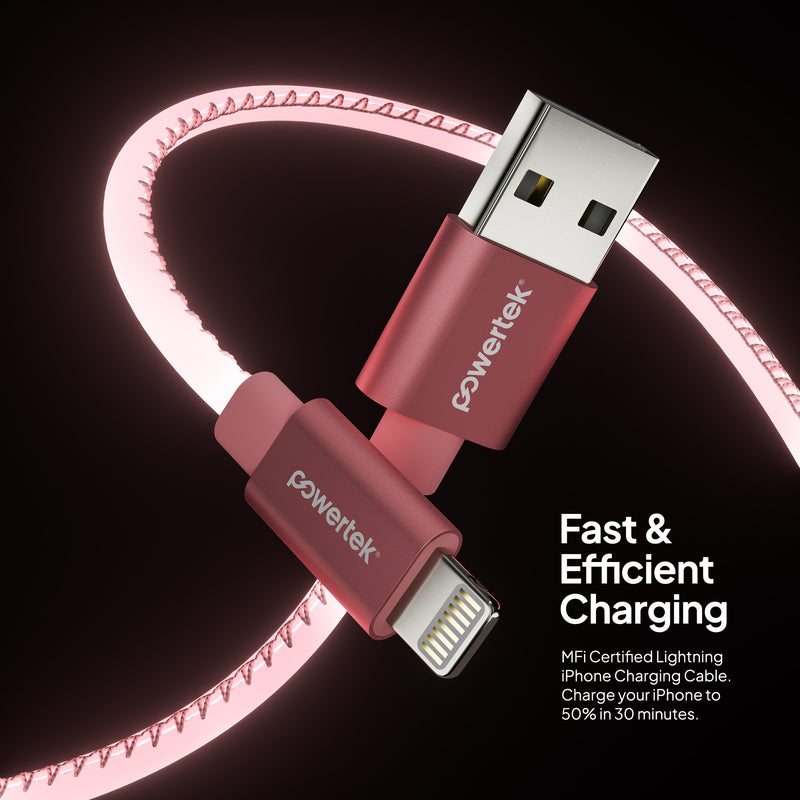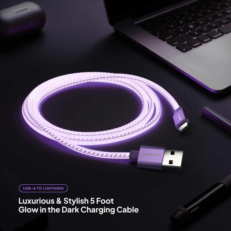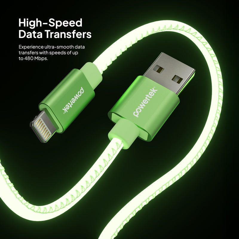 The Powertek Glow-in-the-Dark Charging Cable combines efficient fast-charging with a stylish, innovative design that ensures you’ll never lose track of it at night. Made with high-quality phosphorescent zinc sulfide, the cable absorbs light during the day and glows in the dark, so you can easily find it without disturbing your partner’s sleep. At 5ft in length, it’s ideal for bedside use. For optimal fast charging, use a power source of at least 2.1 amps.