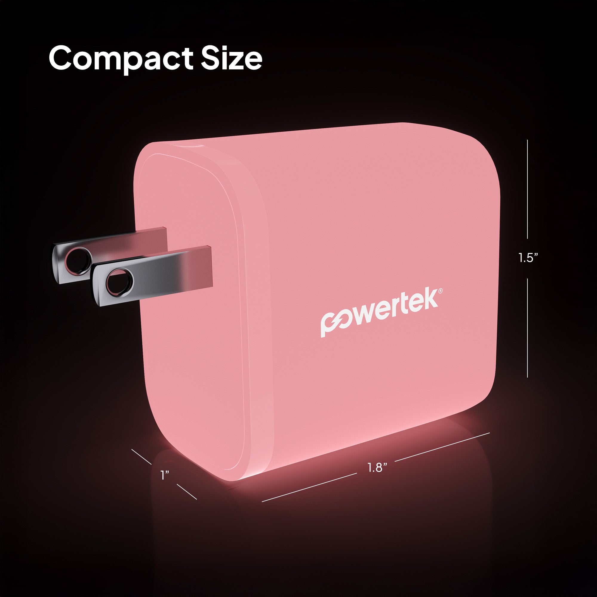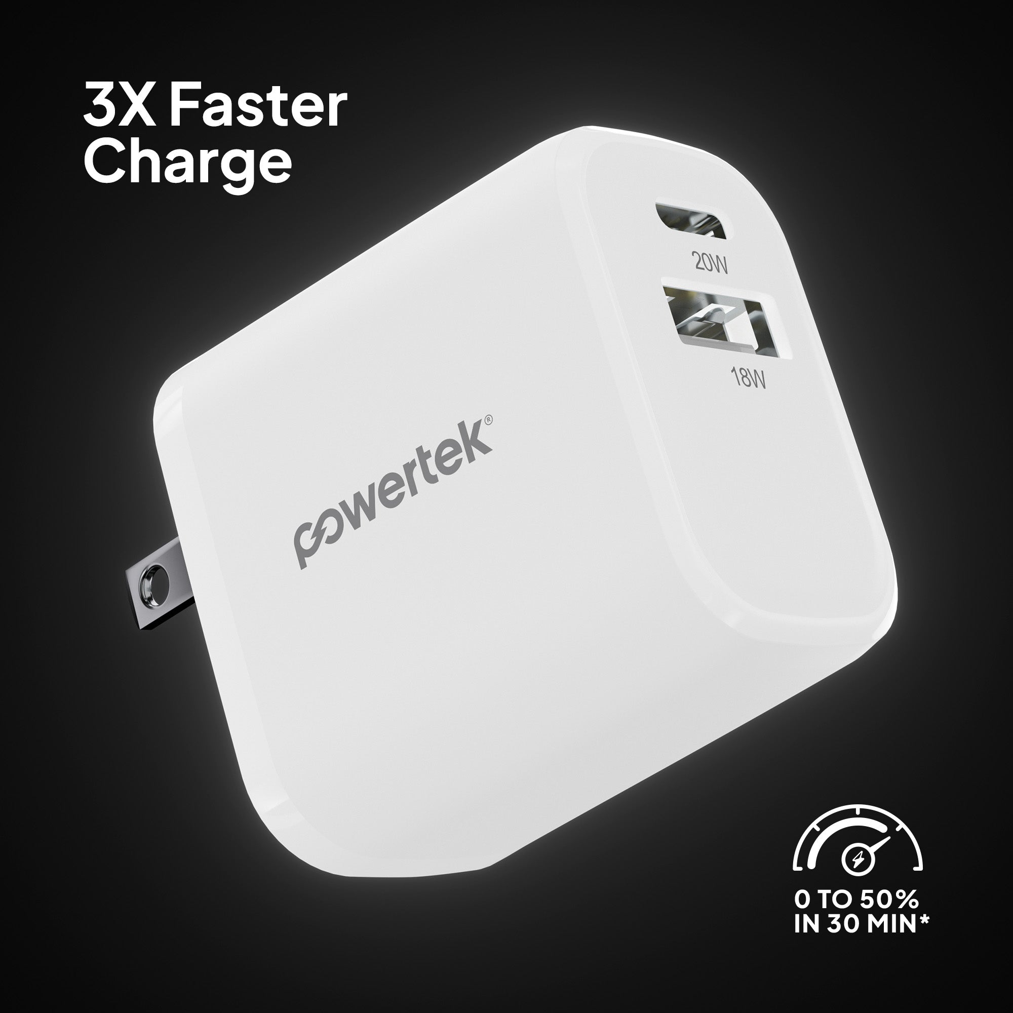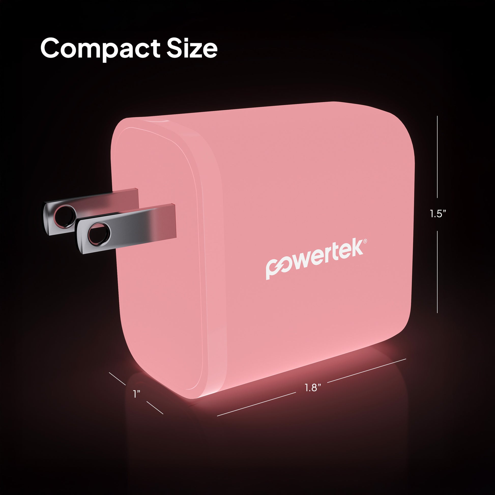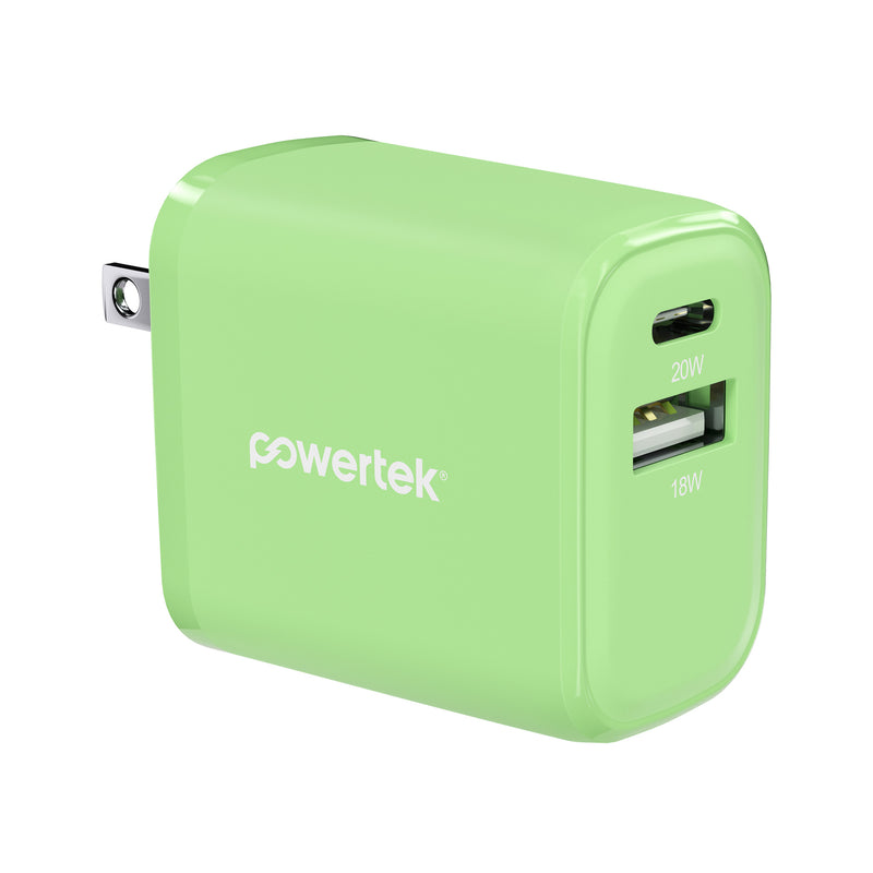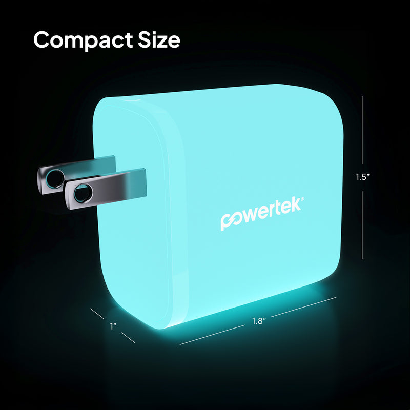 Powertek Glow in the Dark 20W Dual-Port Wall Charger (USB-A & USB-C)