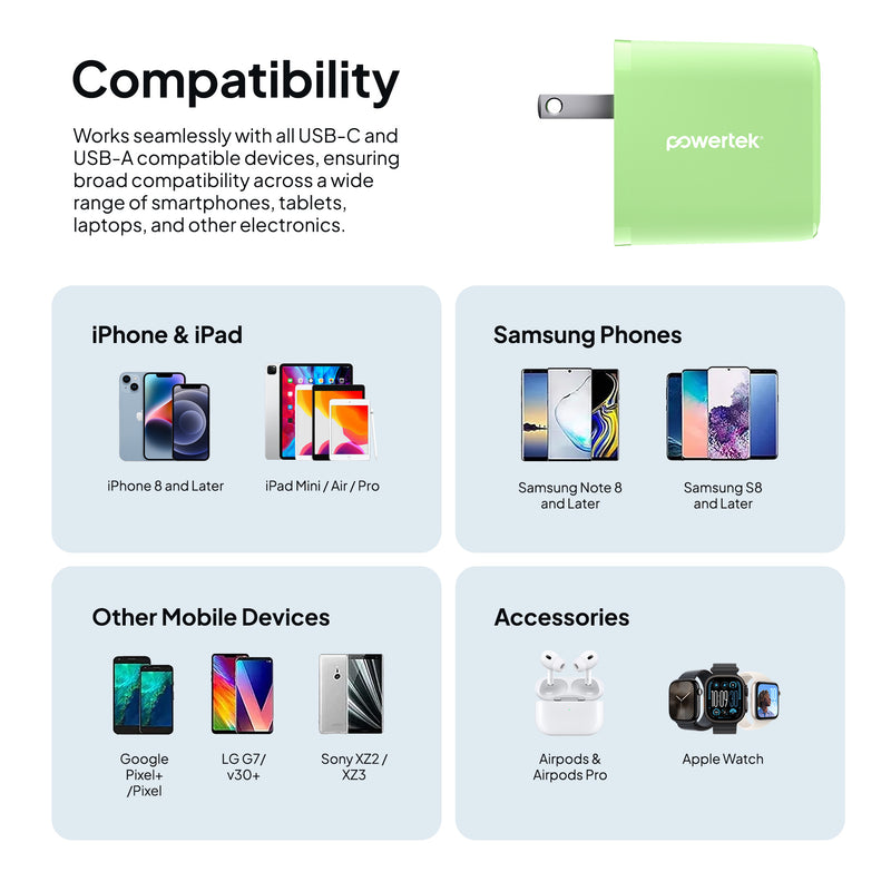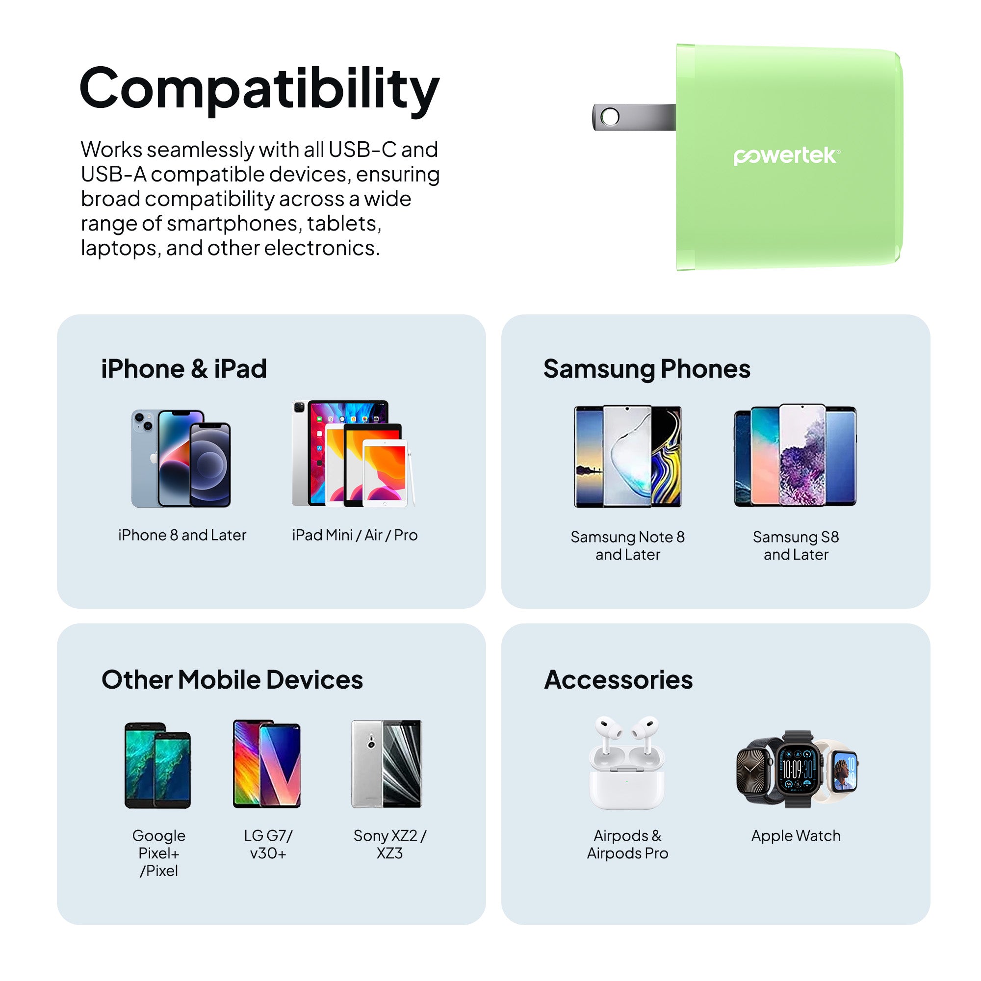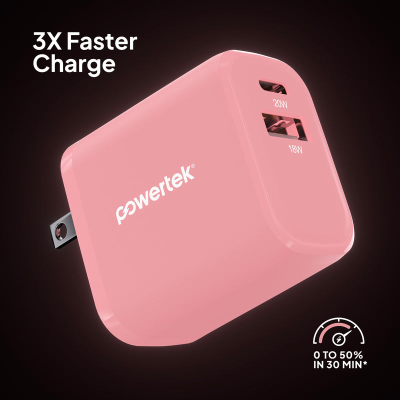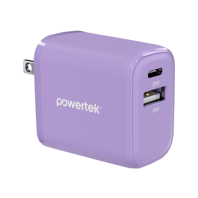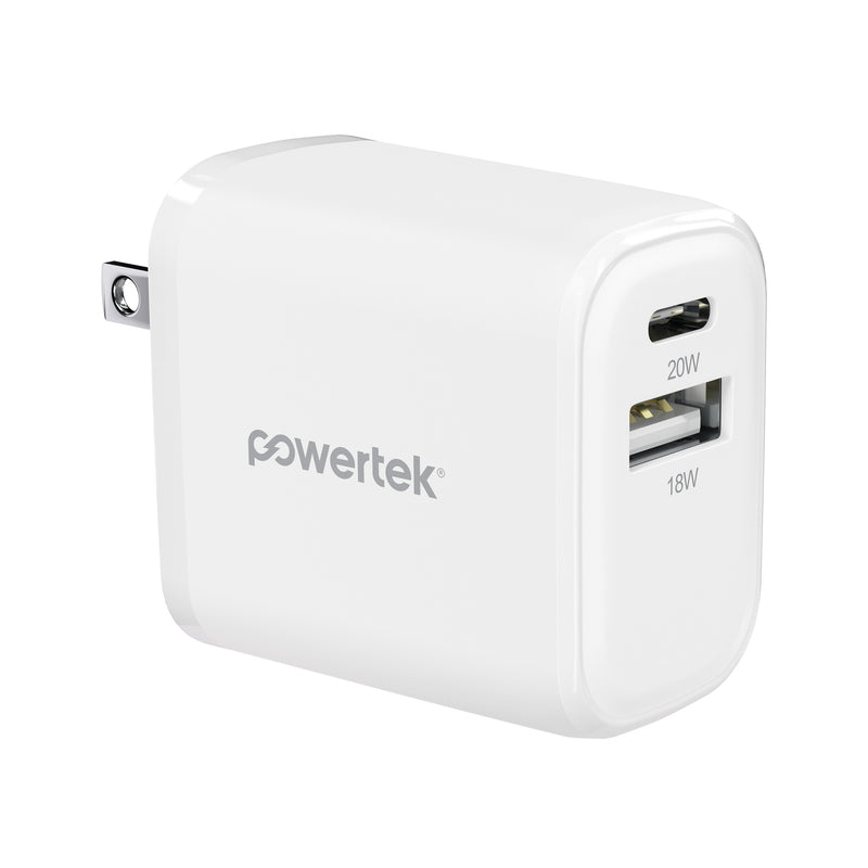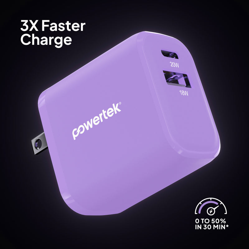 Powertek Glow in the Dark 20W Dual-Port Wall Charger (USB-A & USB-C)