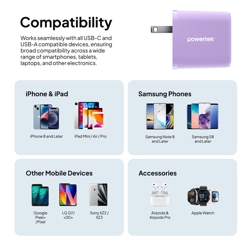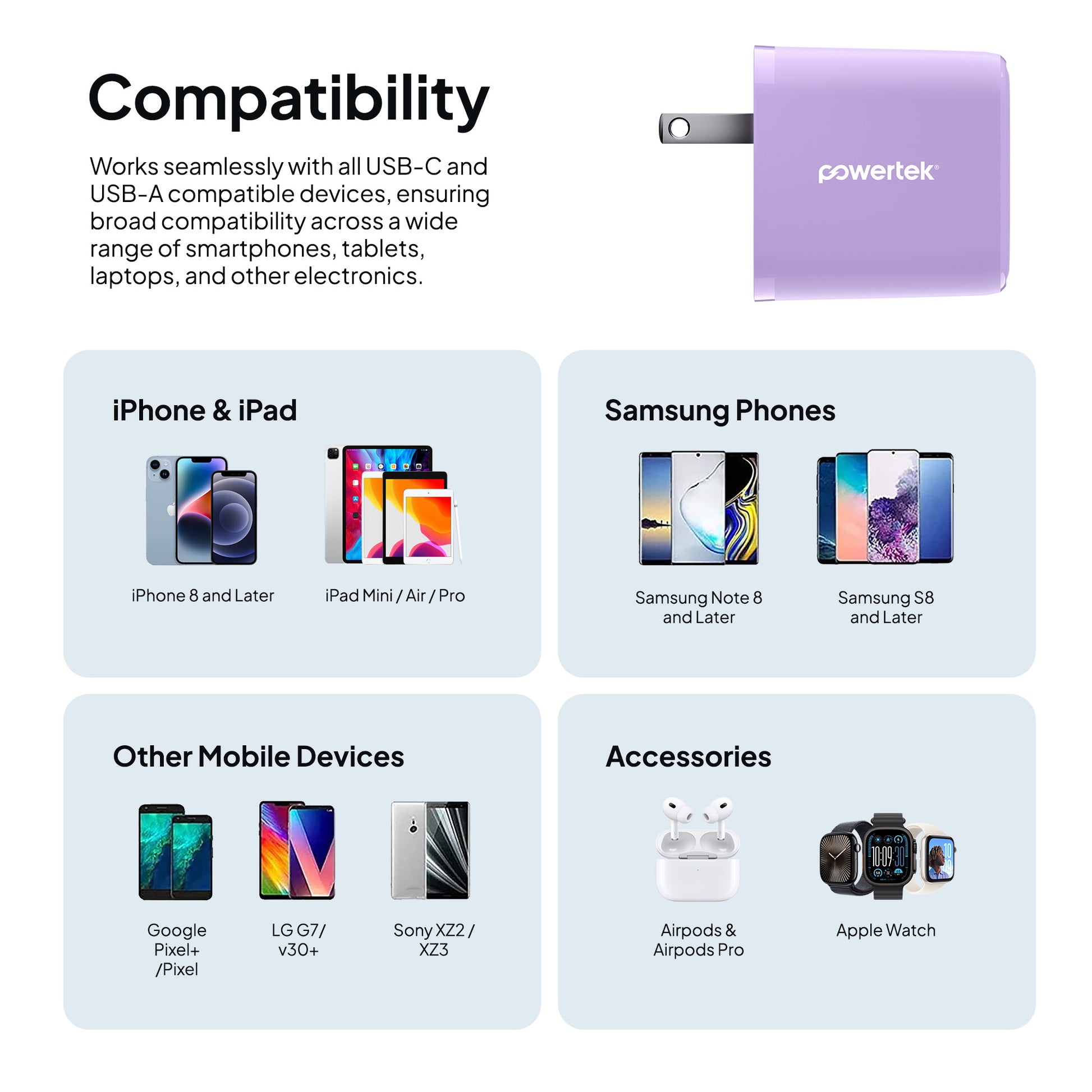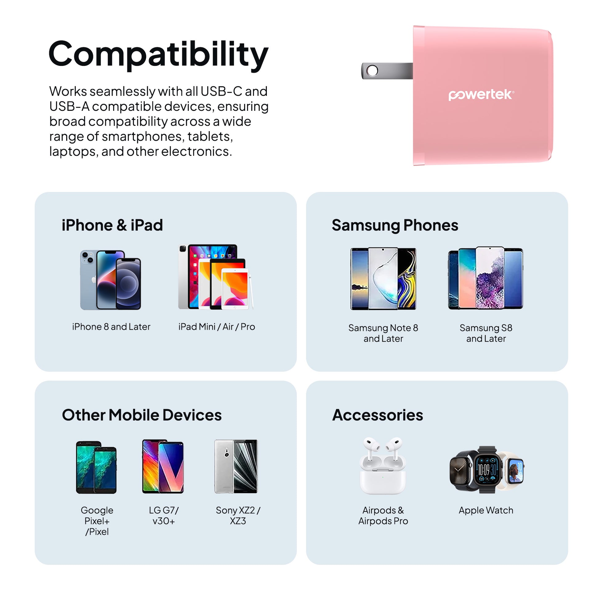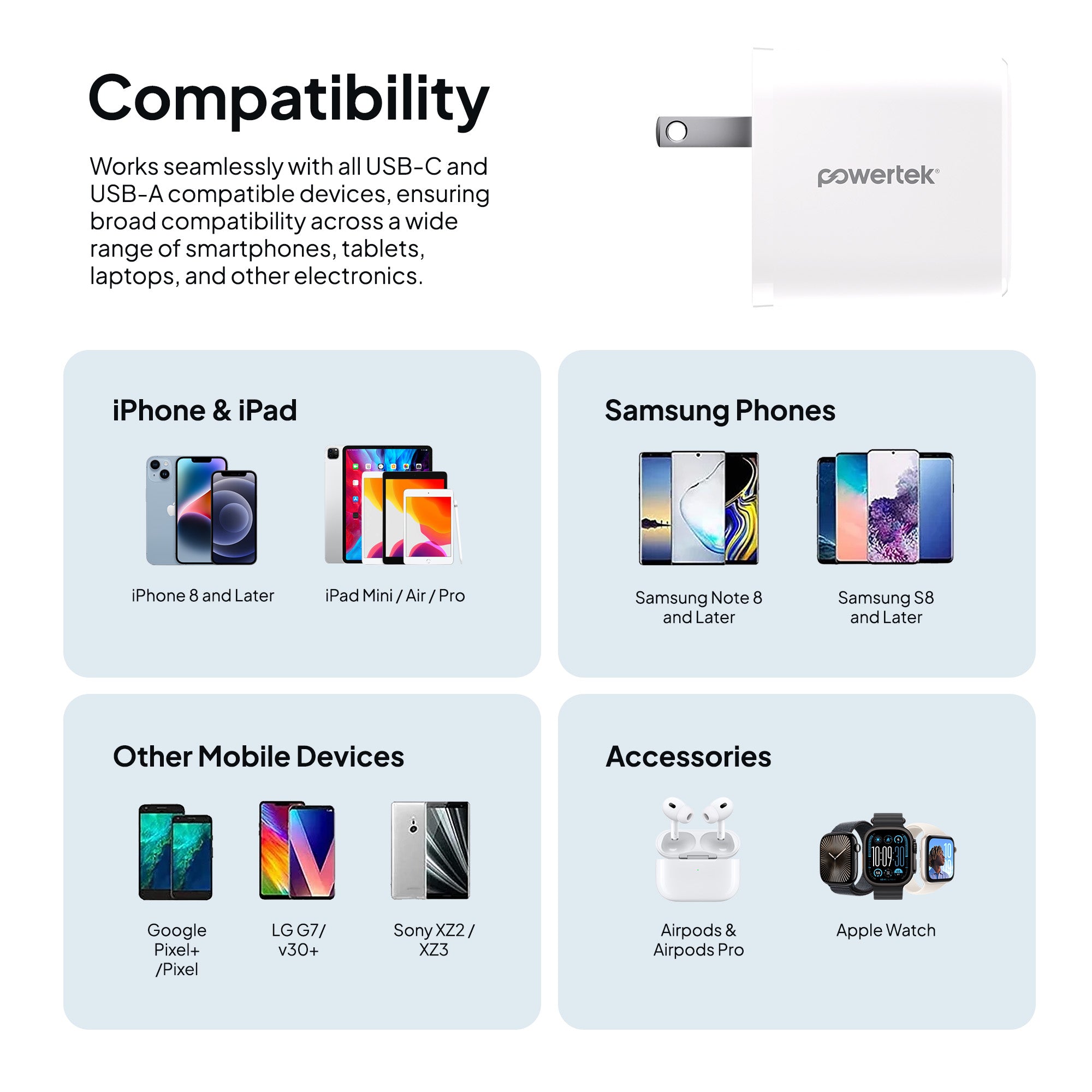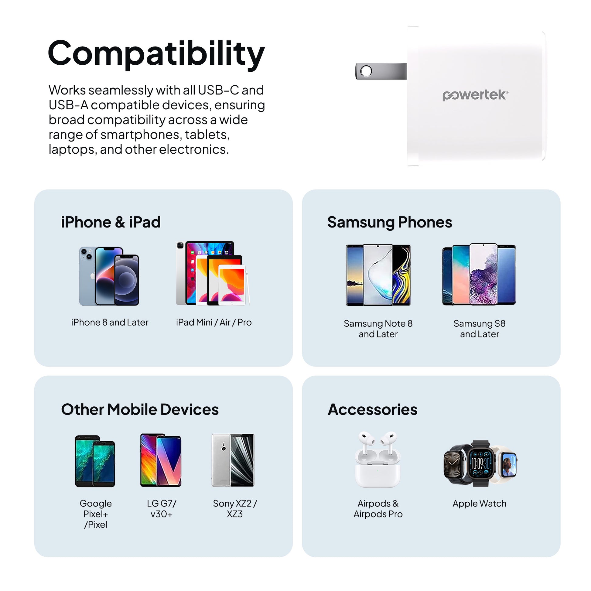 PERFECT! I have been searching everywhere for a type c travel charger for my new iPhone and iPad. This charger has been a blessing for me, with super fast charging capabilities while other devices are also plugged in and charging. Would highly recommend this charger