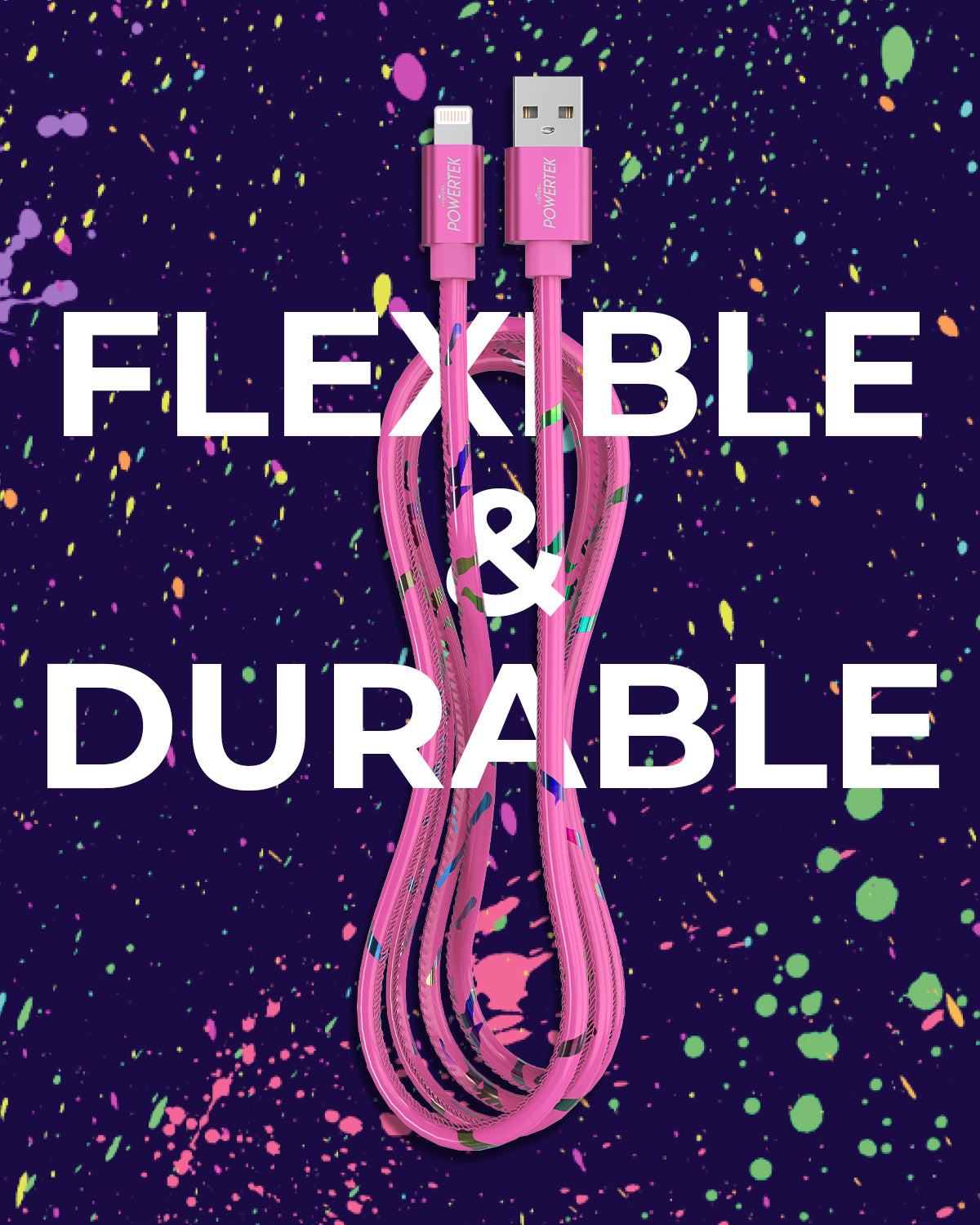 The Powertek Neon Party charging cable is the ultimate charging solution for your devices in style. Available in a selection of vibrant neon colors to match your mood. Its 6ft length provides exceptional convenience, allowing you to charge from virtually anywhere while making a bold fashion statement. The tangle-free design ensures you're always ready to go, with a cable that's as dynamic and ready for action as you are.