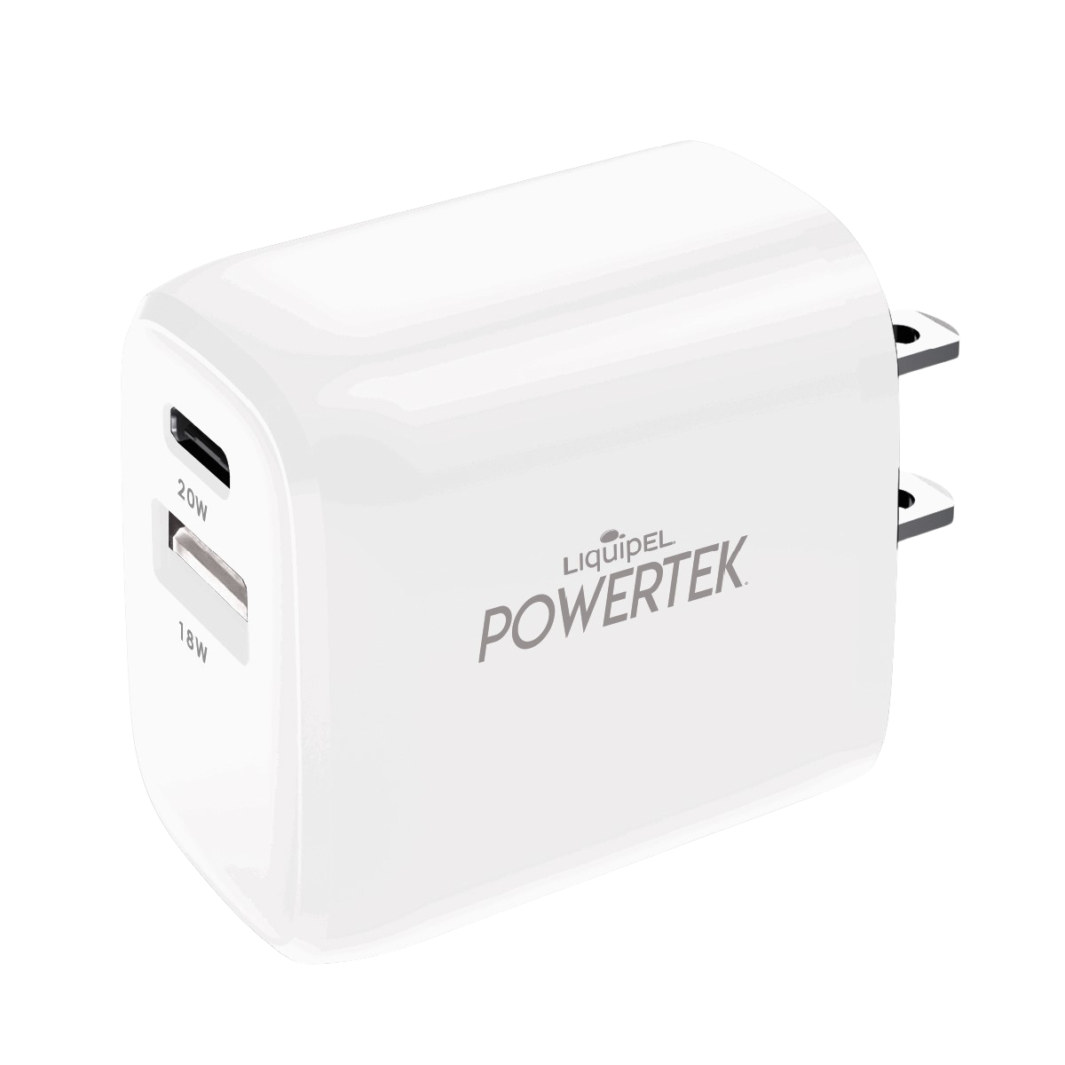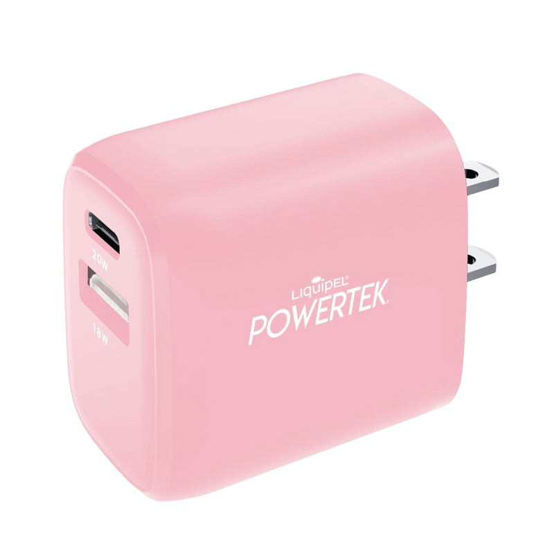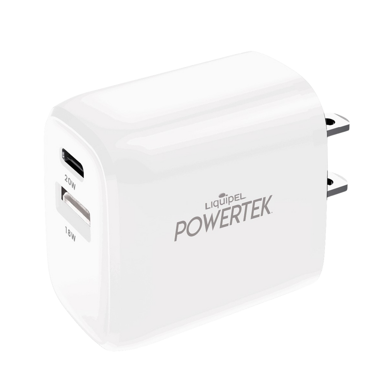 The Powertek Dual Port USB-A & USB-C Wall Block Charger offers a versatile, high-quality solution for charging all your devices. Its dual-port design allows you to charge two devices simultaneously, with the USB-C port supporting fast charging up to 20W and the USB-A port providing up to 18W of power for efficient charging of other devices. Compact and portable, this charger features a foldable plug for easy storage and transport. It is universally compatible with a wide range of devices, including iPhone, iPad, Apple Watch, AirPods, Galaxy, Android, Pixel, and other USB Type-C devices.