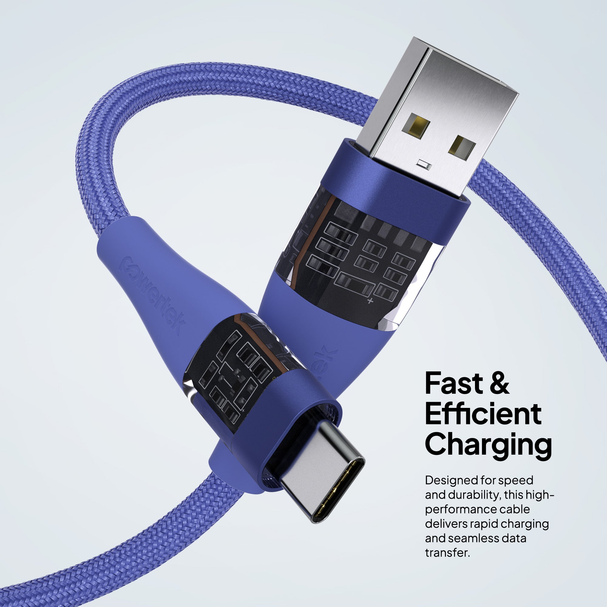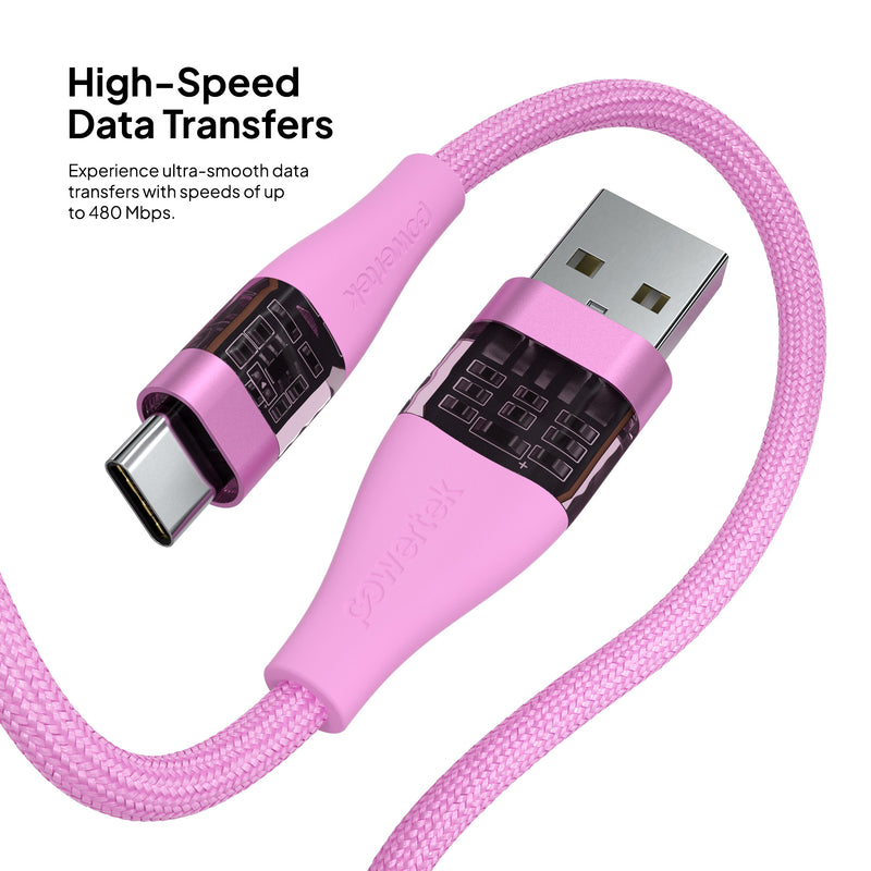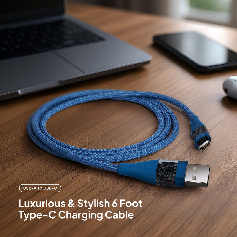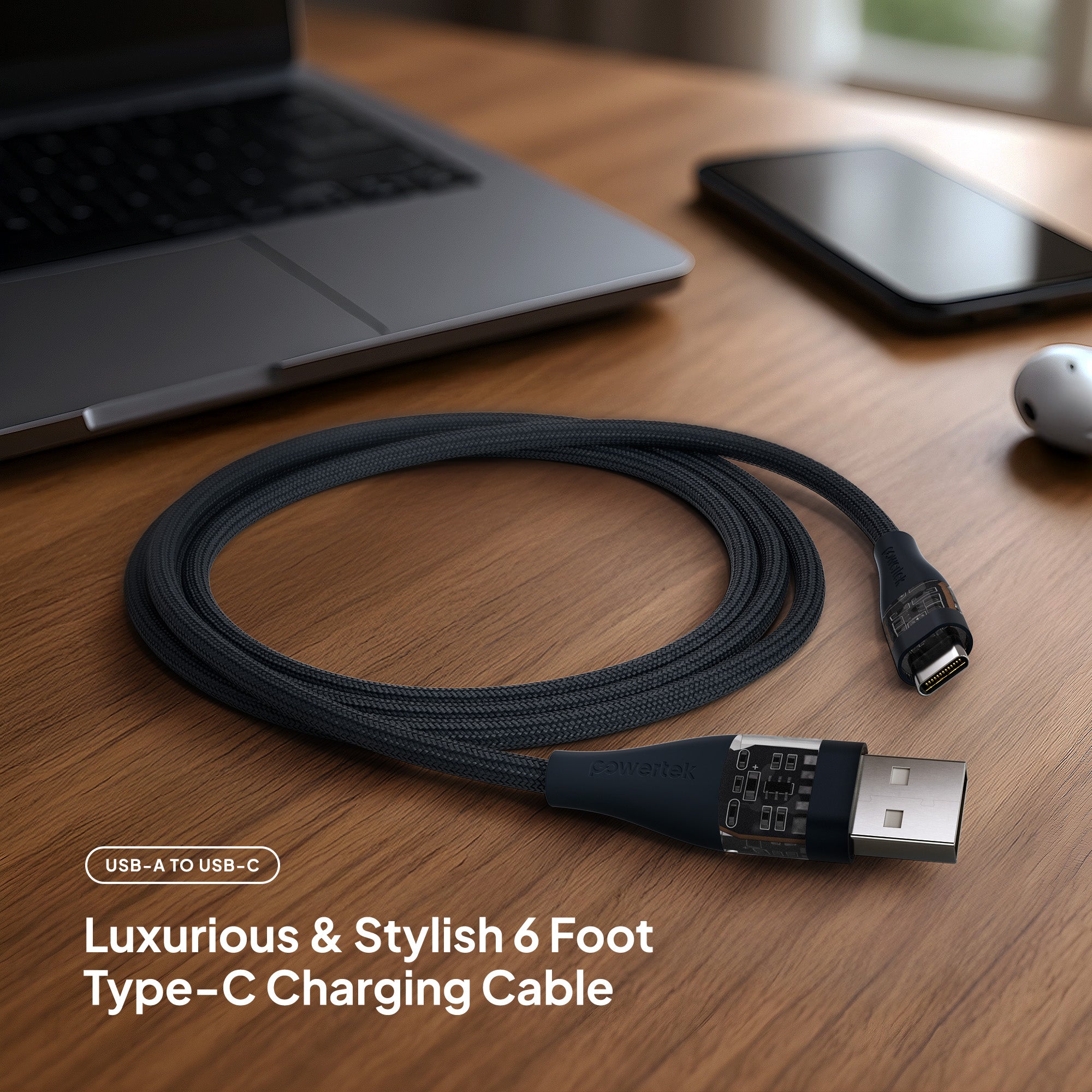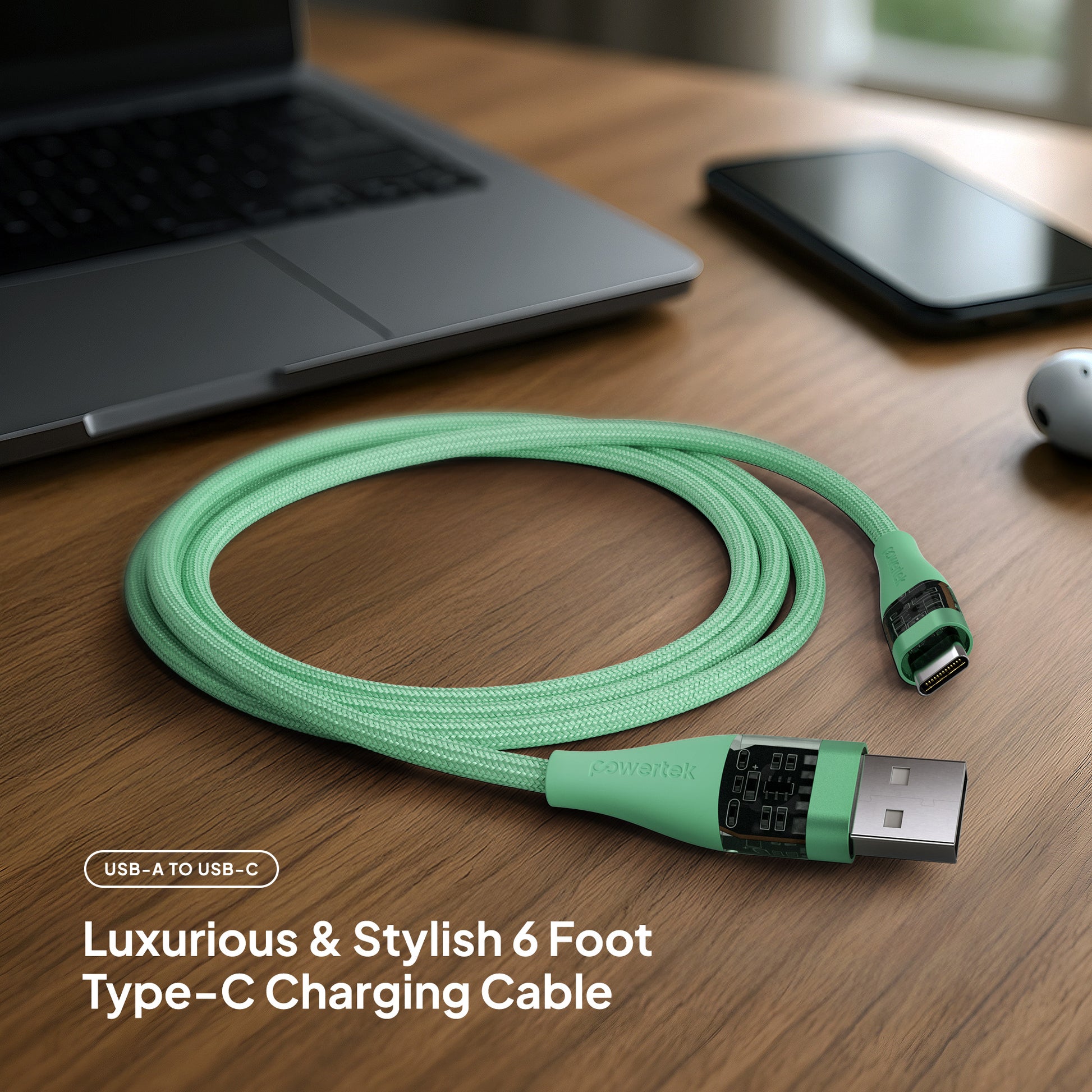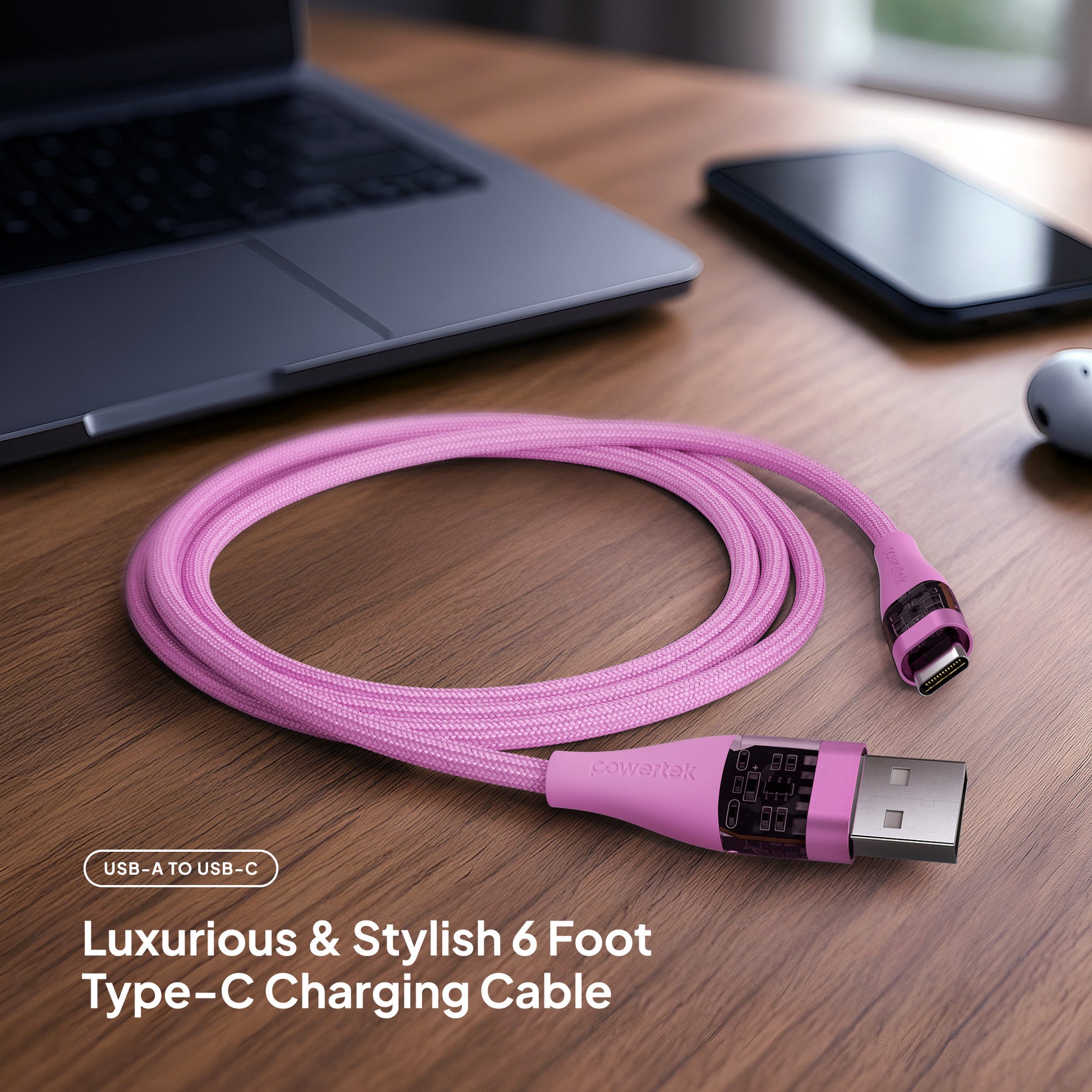 Upgrade your everyday charging experience with the Powertek Cleartek USB-A to USB-C cable. Built for long-lasting performance, this premium 6-foot cable features a durable braided nylon design and high-quality USB-C chips for reliable, fast charging every time. Available in six stylish colors, so you can pick the perfect match for your phone case or personal style.