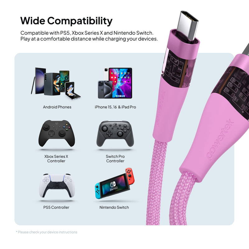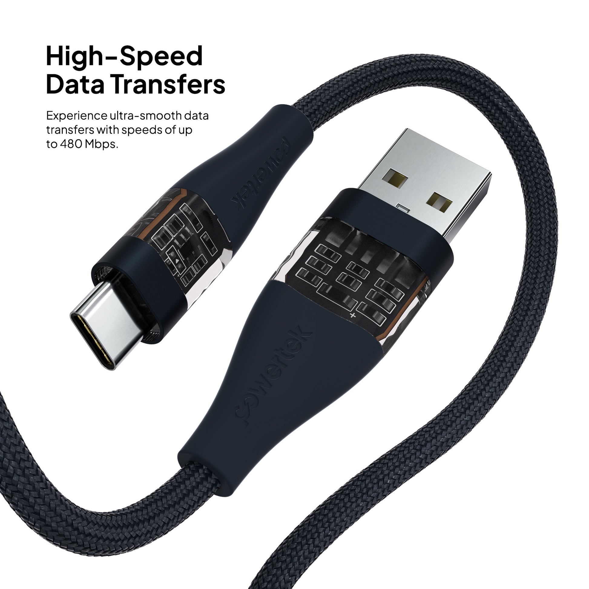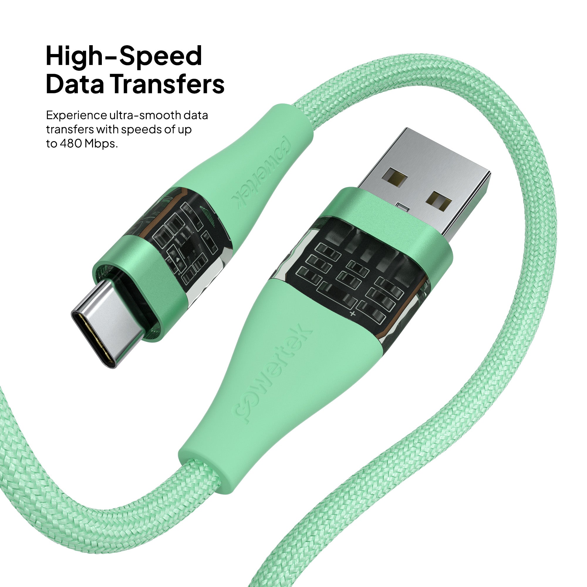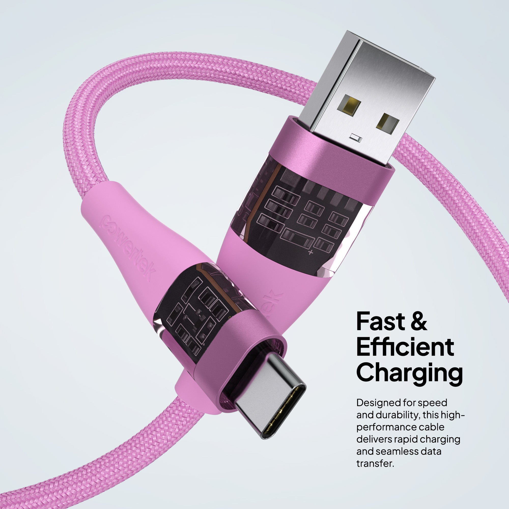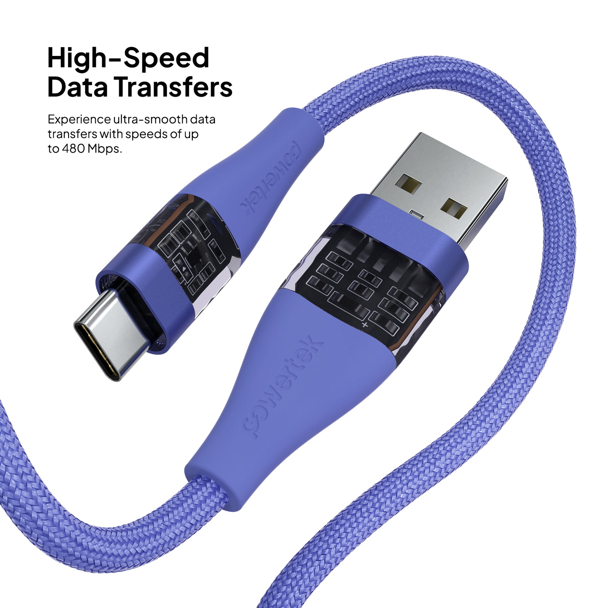 Upgrade your everyday charging experience with the Powertek Cleartek USB-A to USB-C cable. Built for long-lasting performance, this premium 6-foot cable features a durable braided nylon design and high-quality USB-C chips for reliable, fast charging every time. Available in six stylish colors, so you can pick the perfect match for your phone case or personal style.
