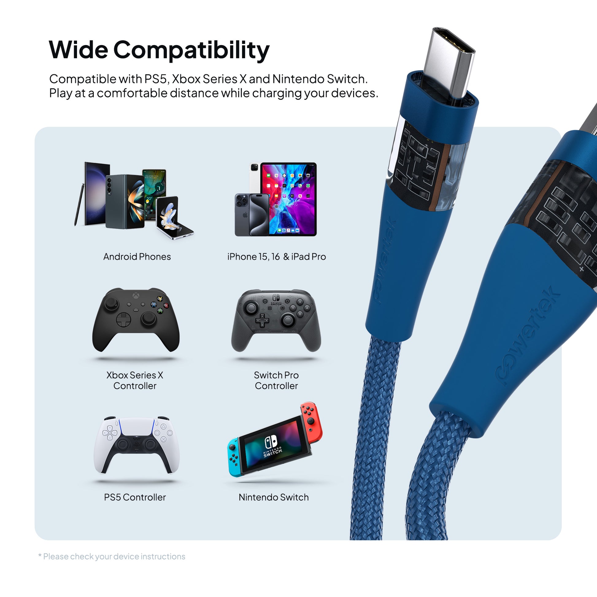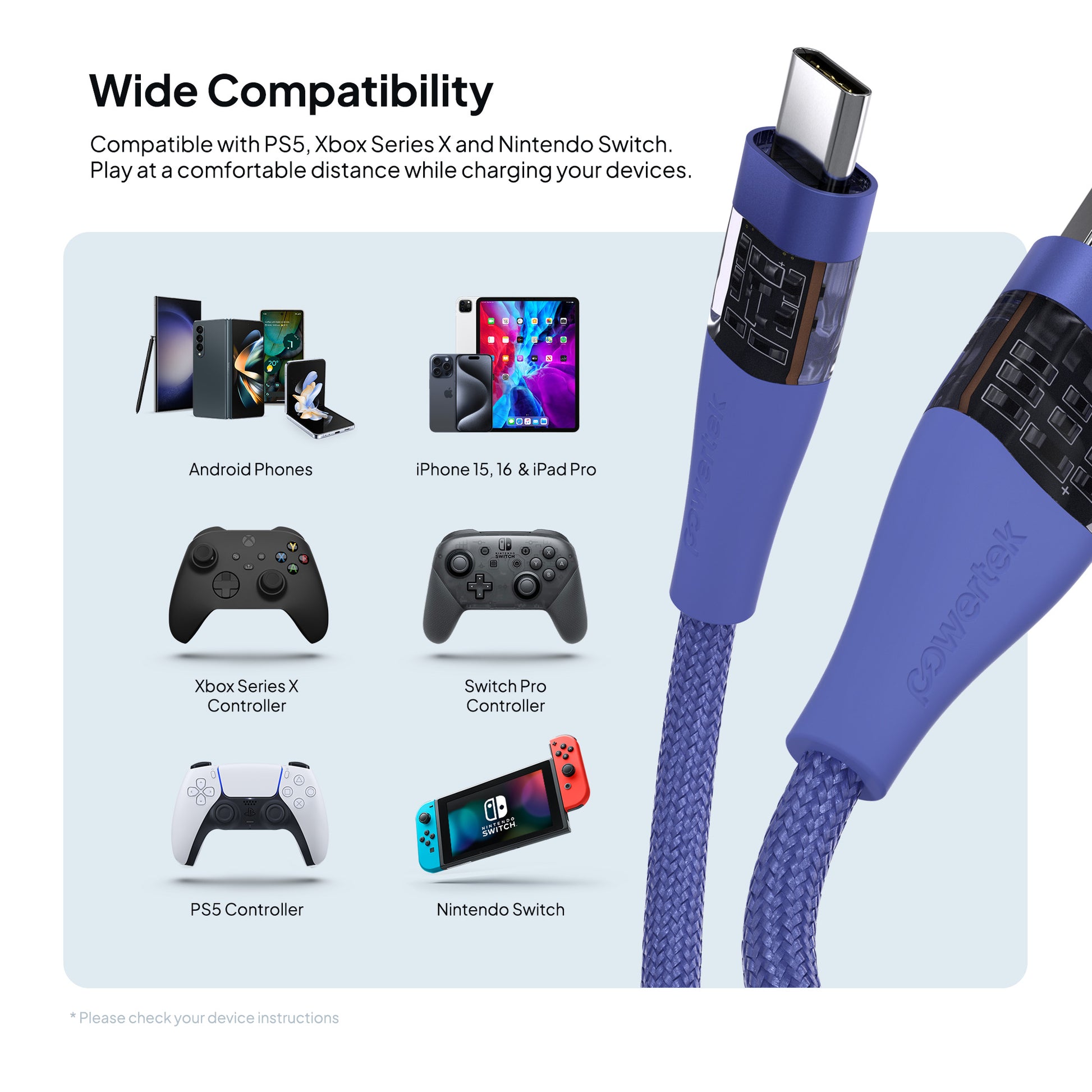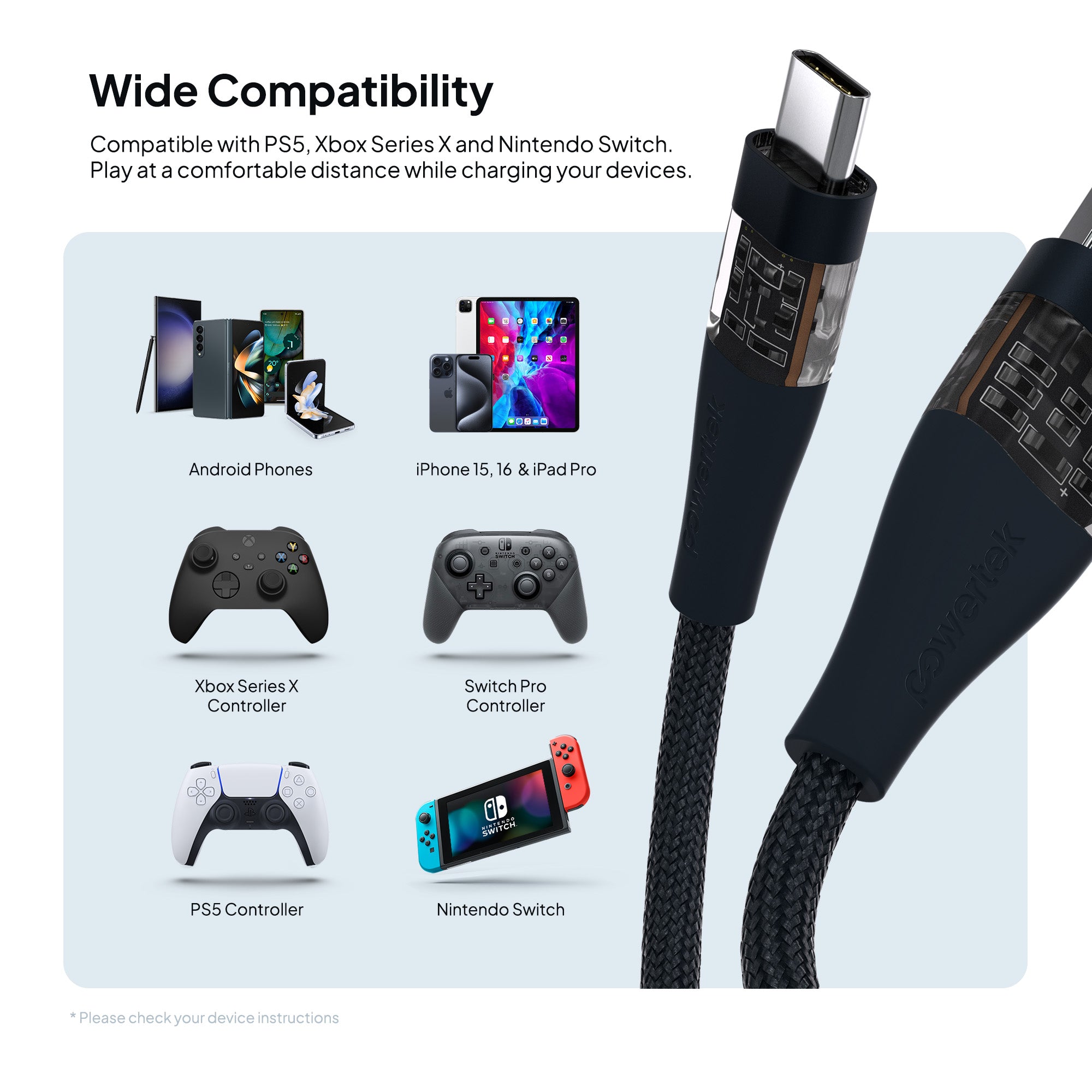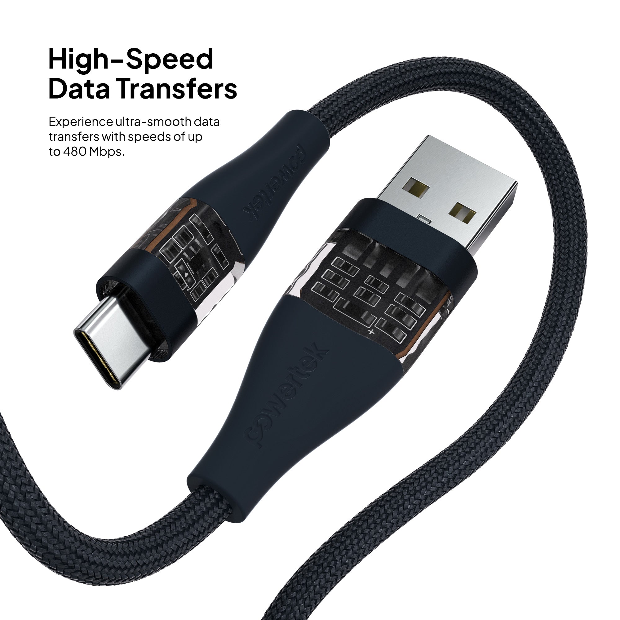 Compatible with smartphones, tablets, and laptops, this cable pairs seamlessly with the Powertek portable battery banks or wall block chargers for the ultimate charging setup.