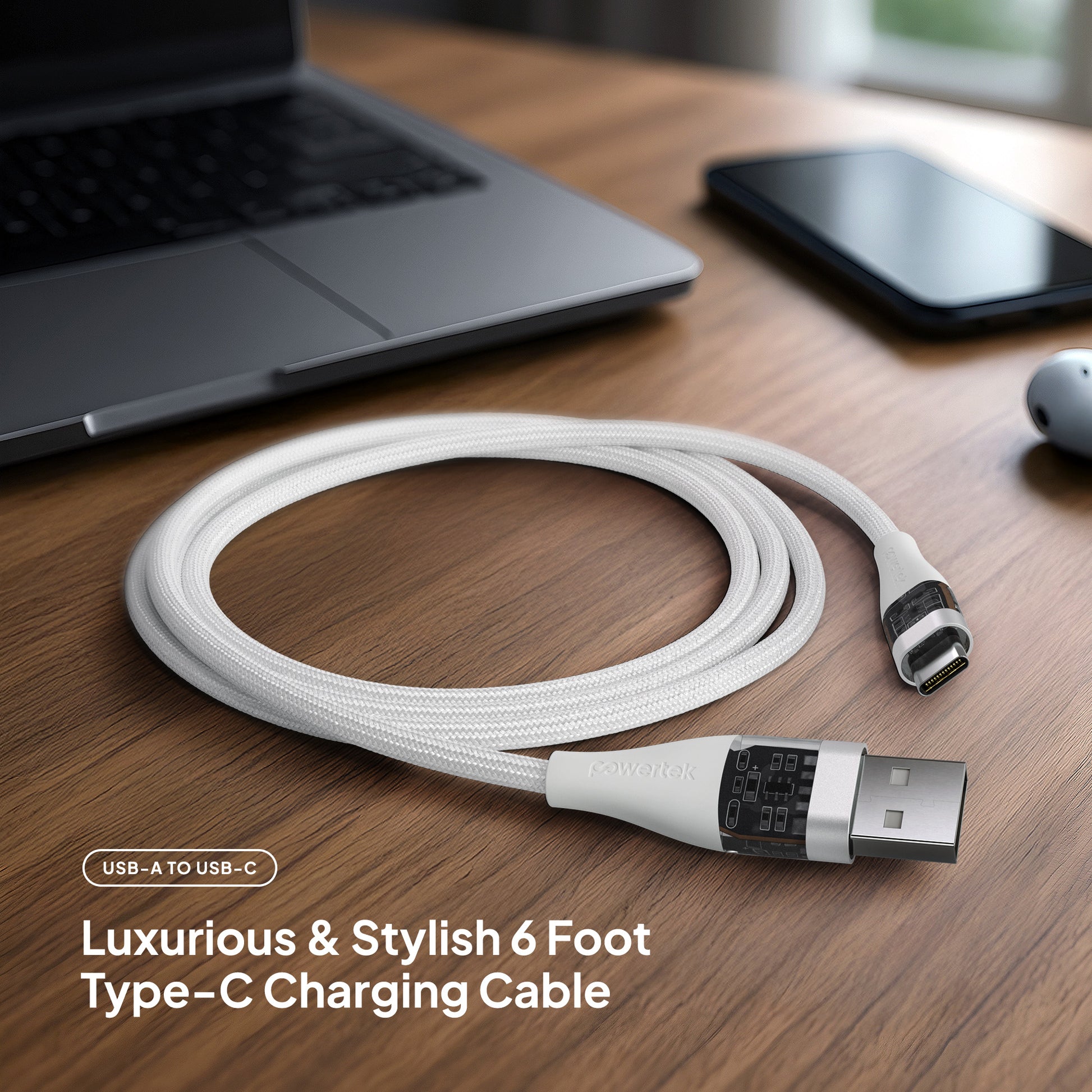 Powertek Cleartek 6ft USB-A to USB-C Charging Cable