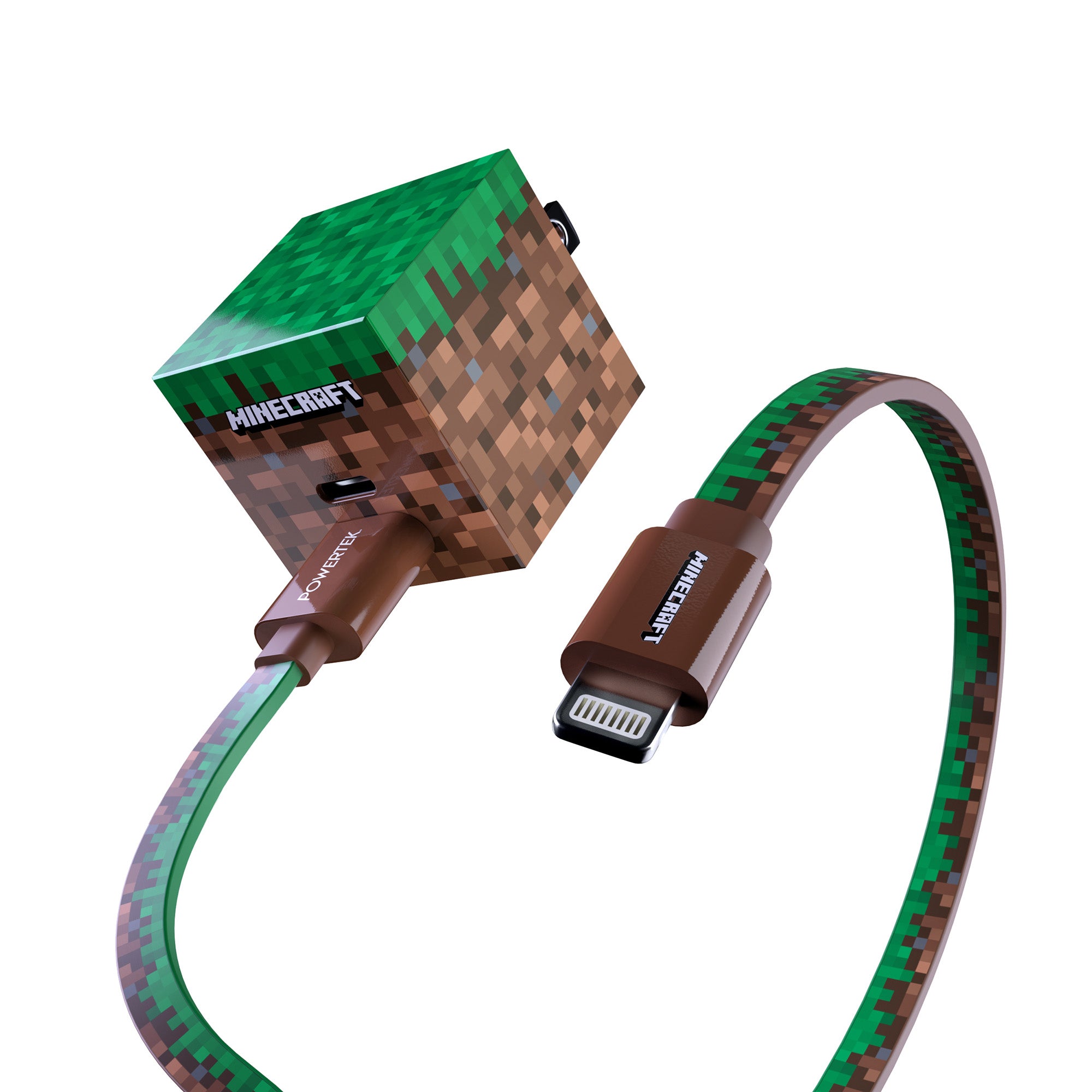 Powertek Minecraft 20W Dual Port USB A & USB C Wall Block Charger with 20W Type-C PD Power Delivery. Fast Charge your iPhone, Galaxy, or Pixel device up to 50% capacity in just 30 minutes. All Liquipel Powertek Products come with a 12-month warranty & friendly customer service.