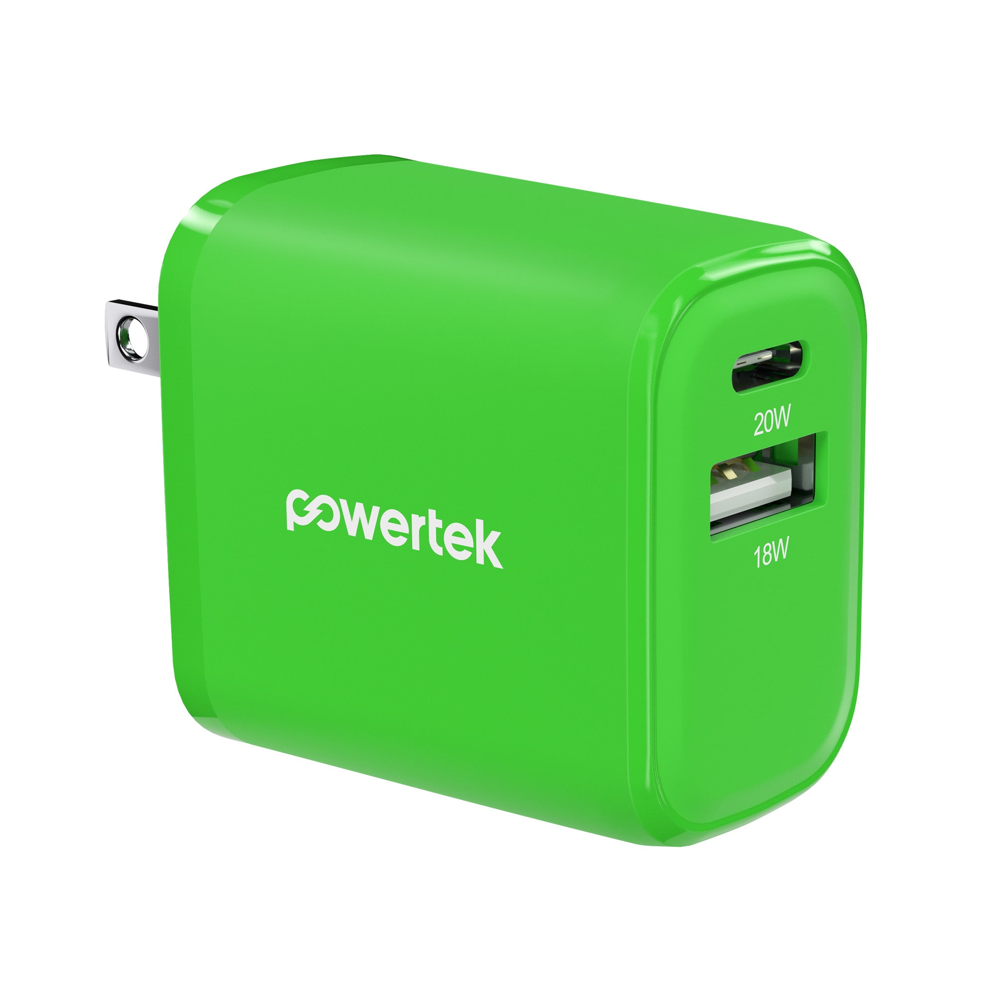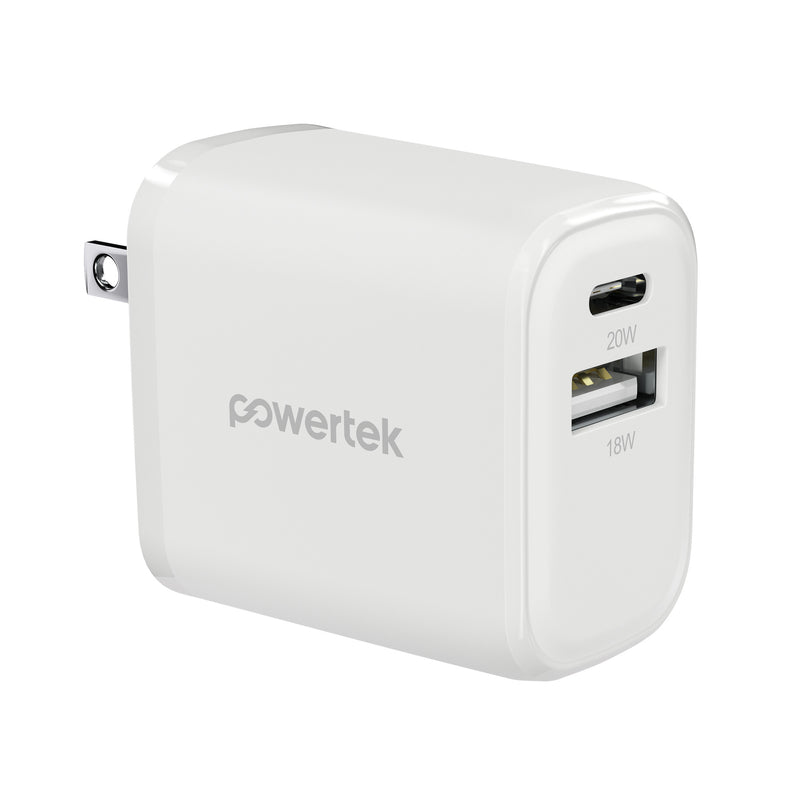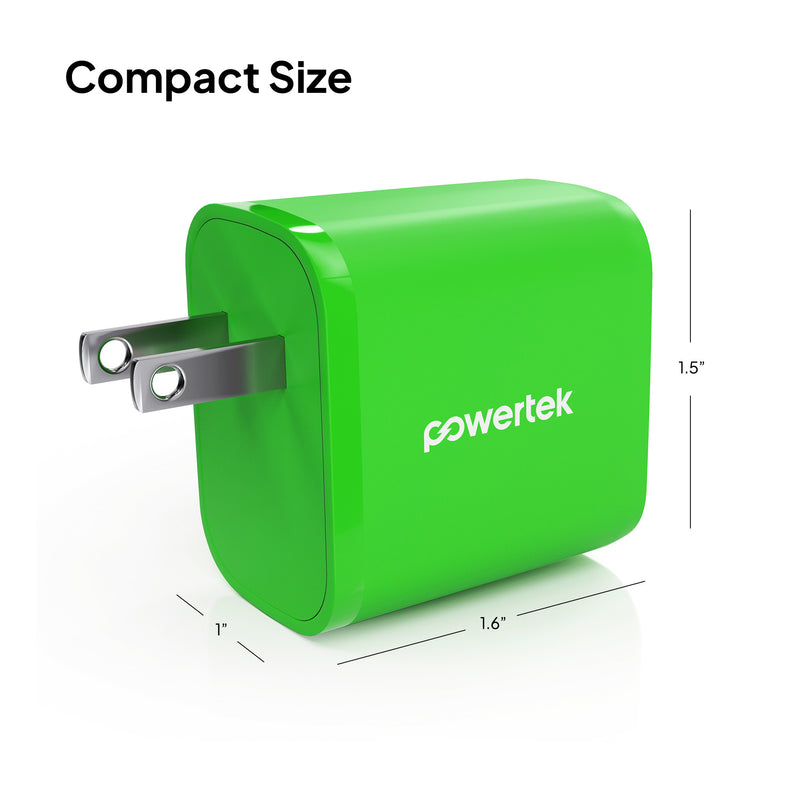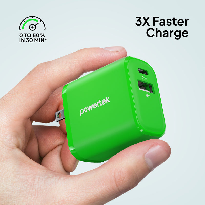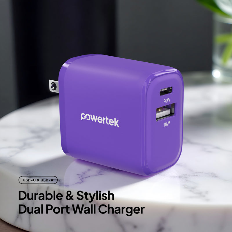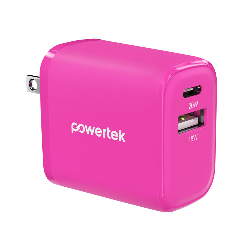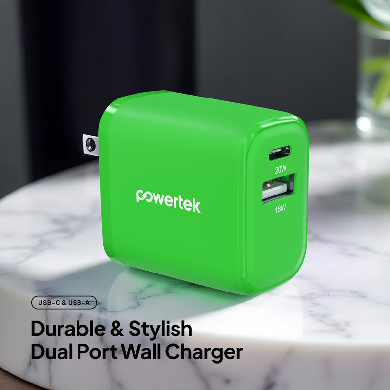 Powertek Neon 20W Dual-Port Wall Charger (USB-A & USB-C)