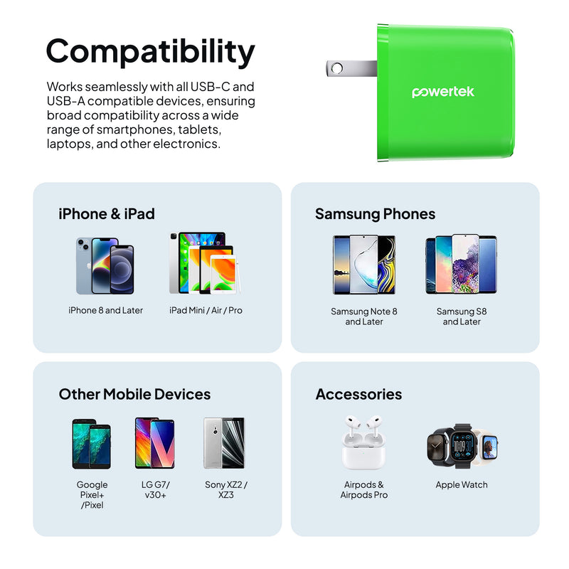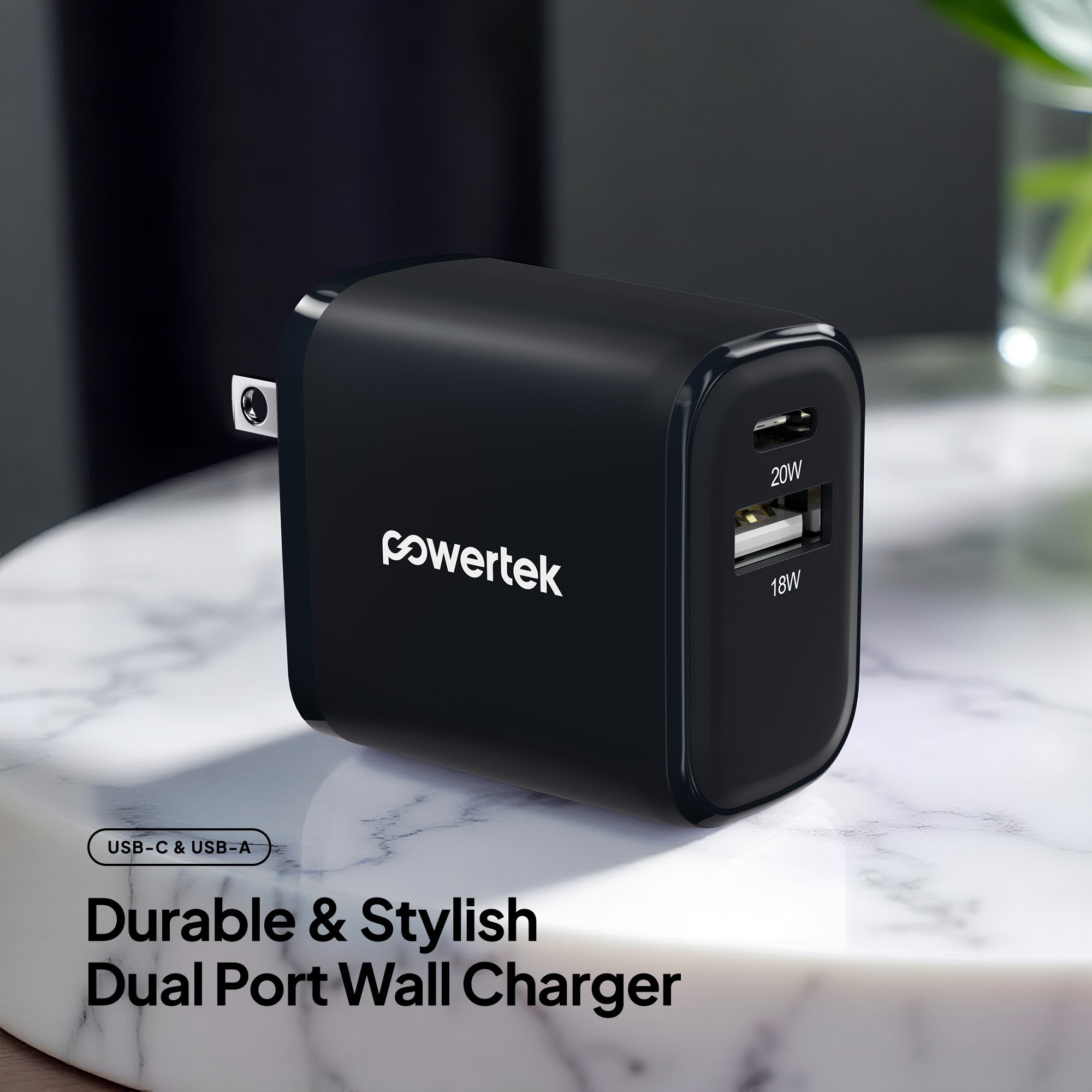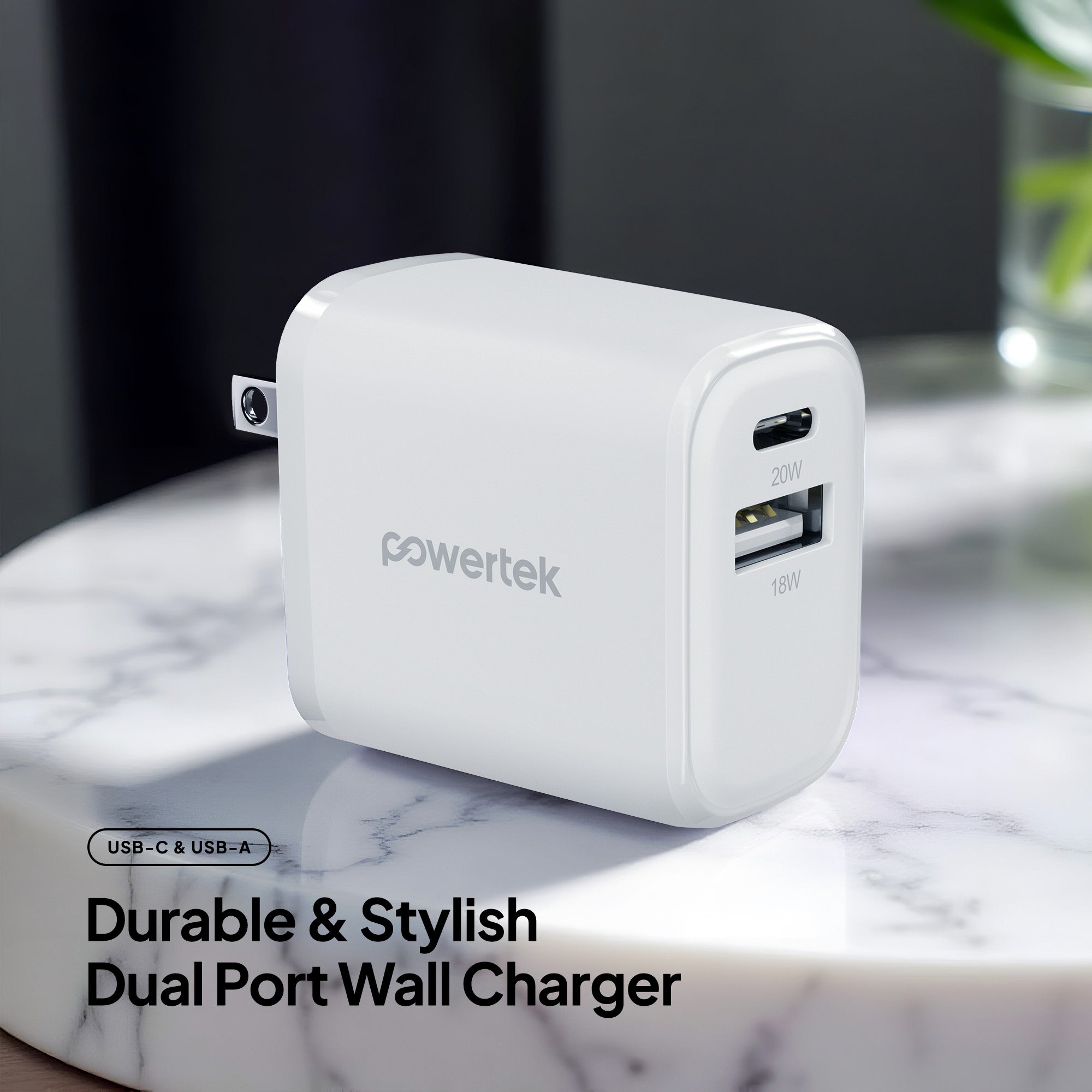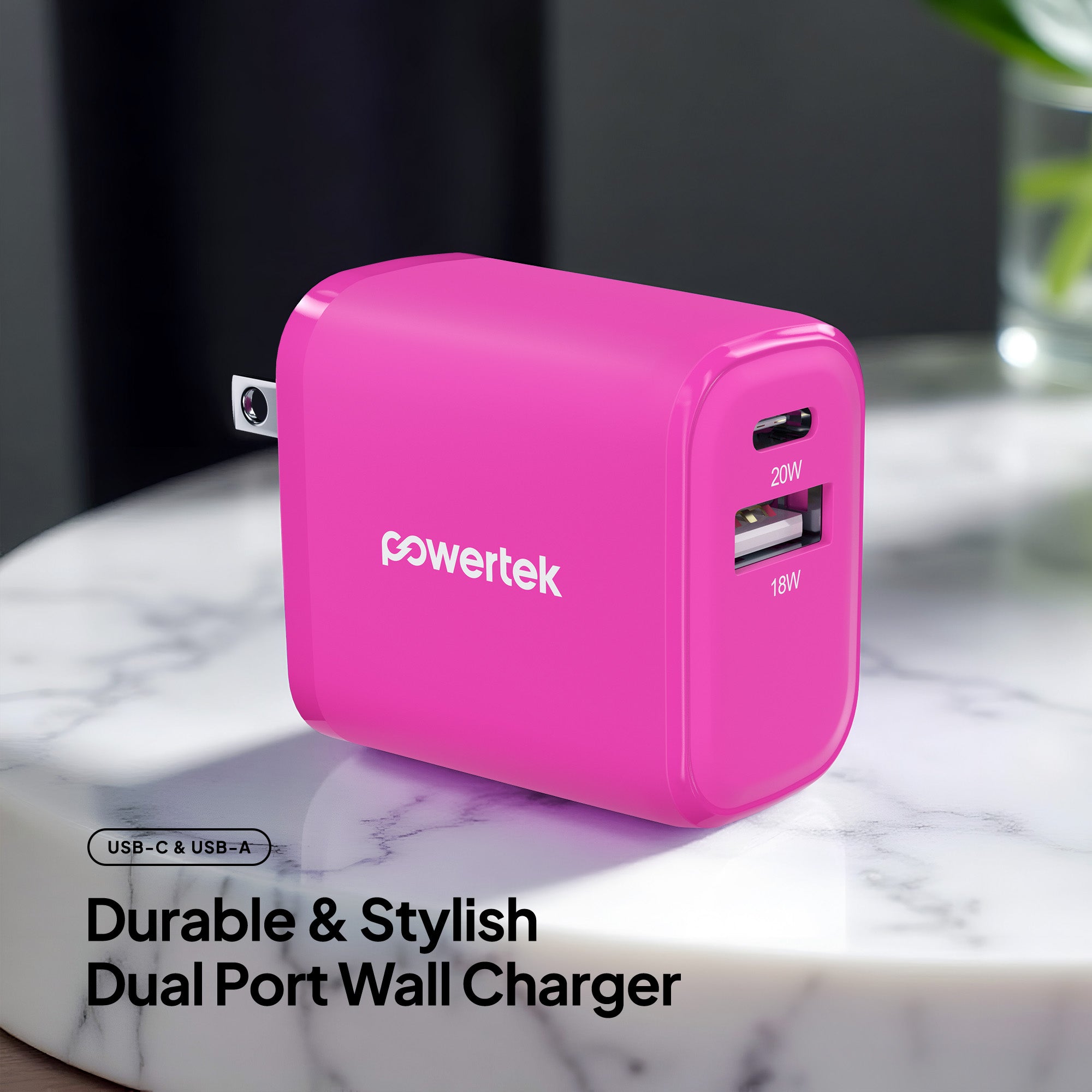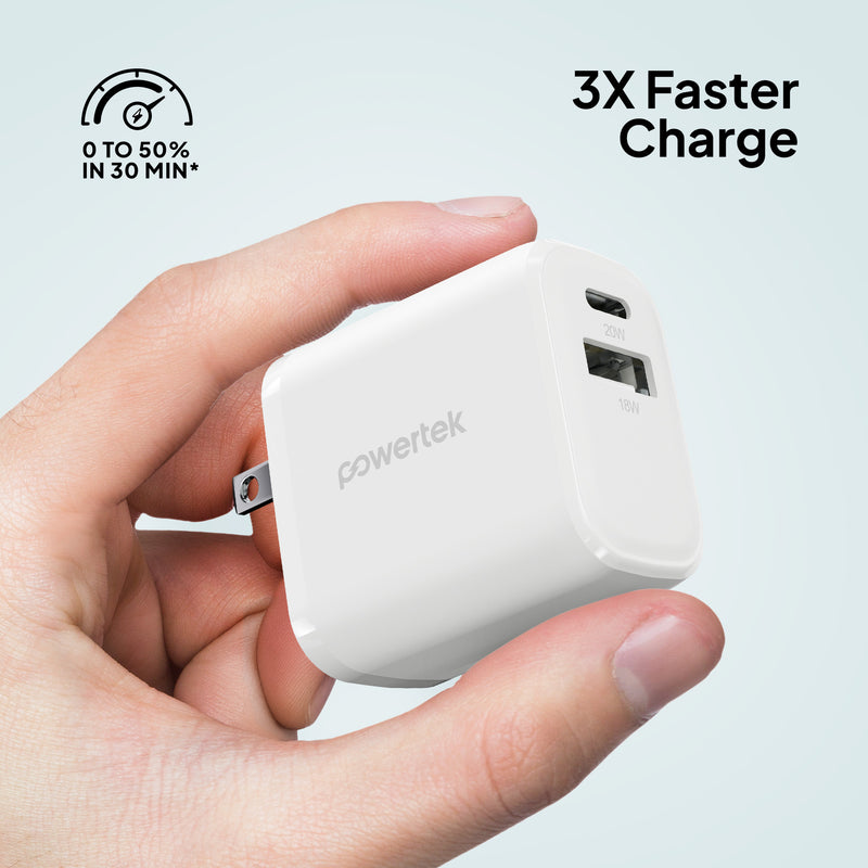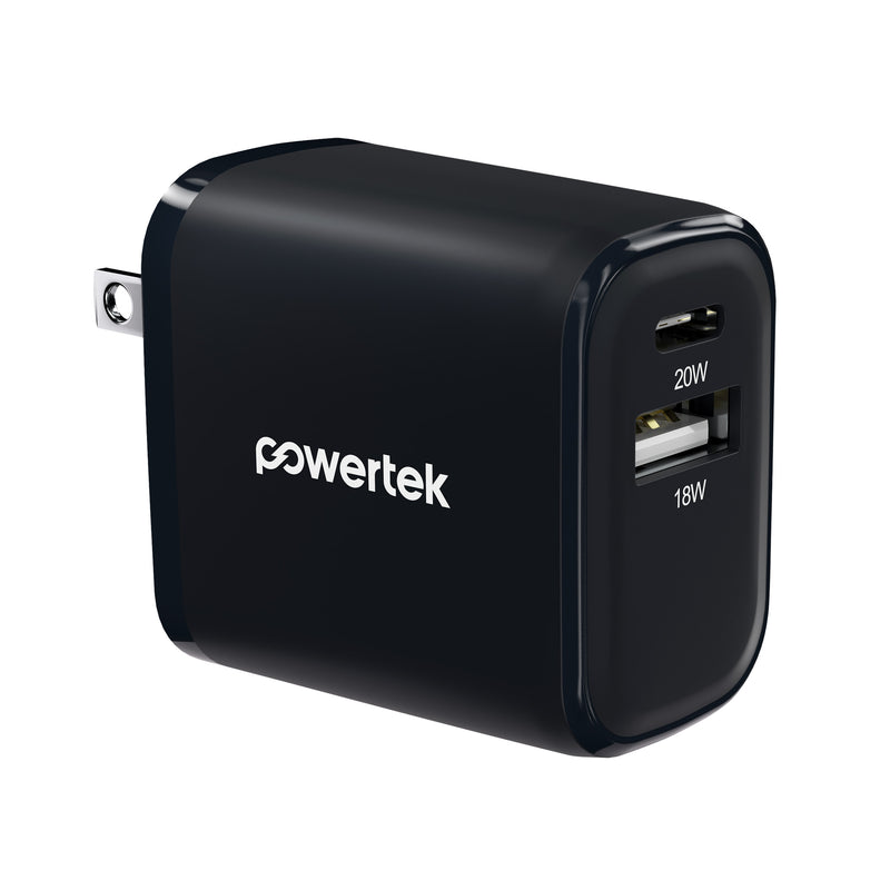 Powertek Neon 20W Dual-Port Wall Charger (USB-A & USB-C)