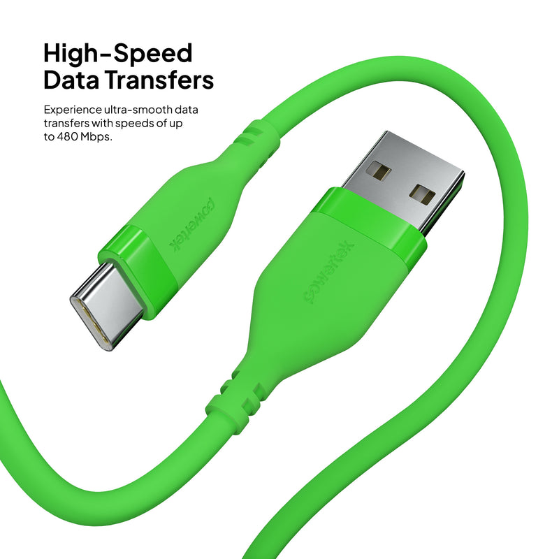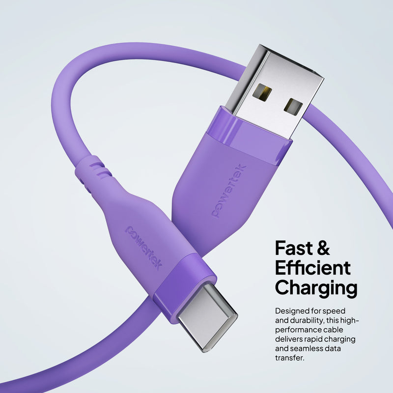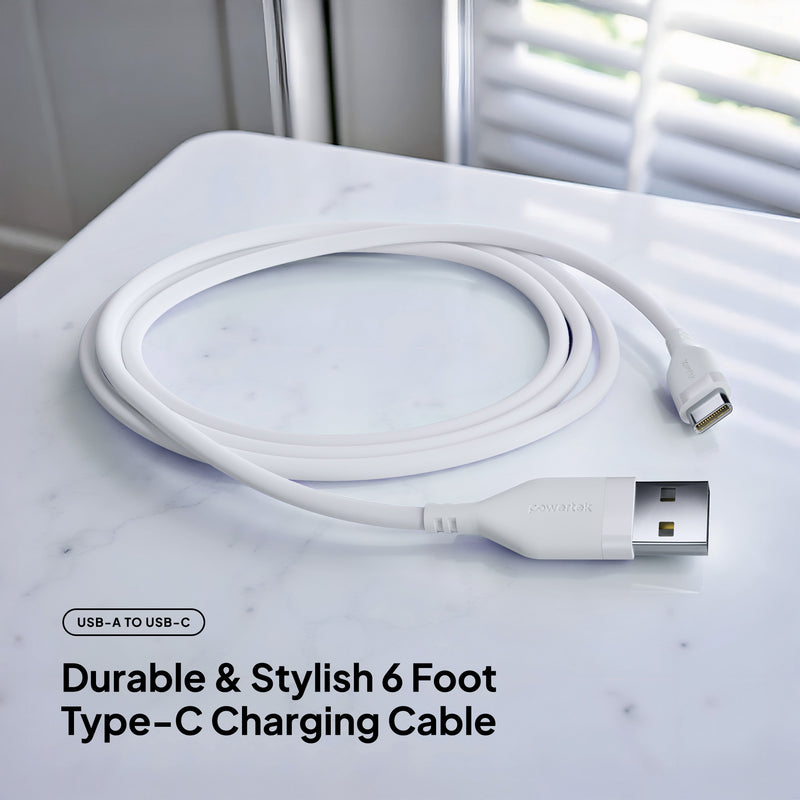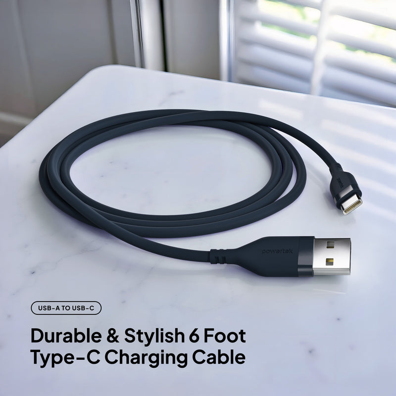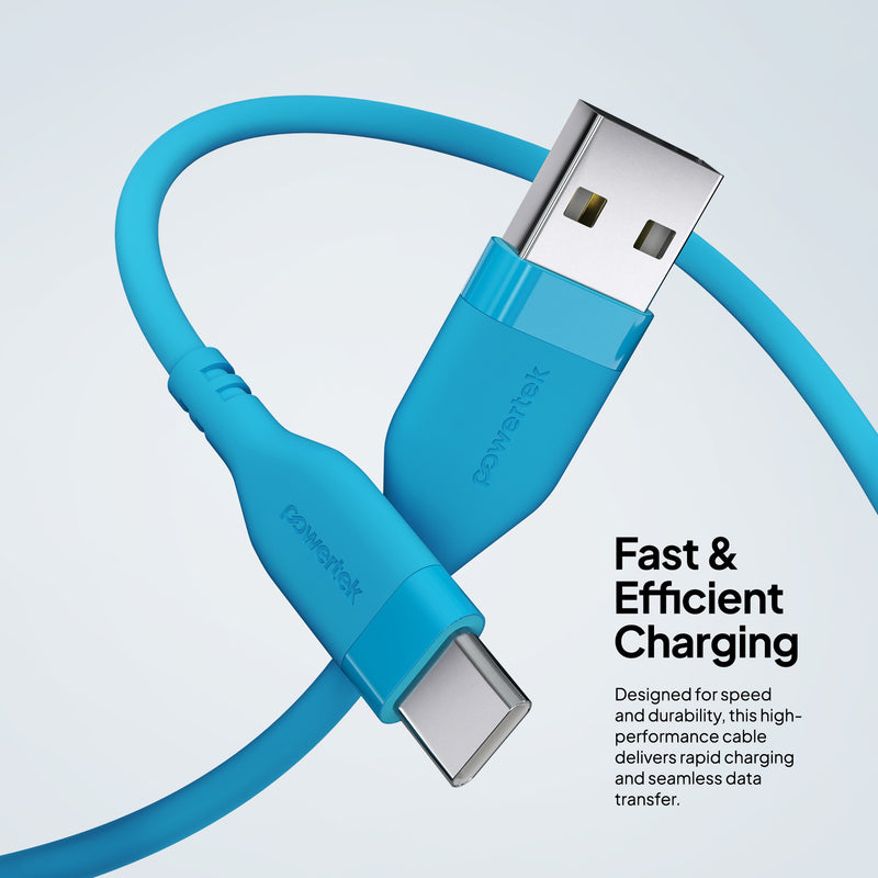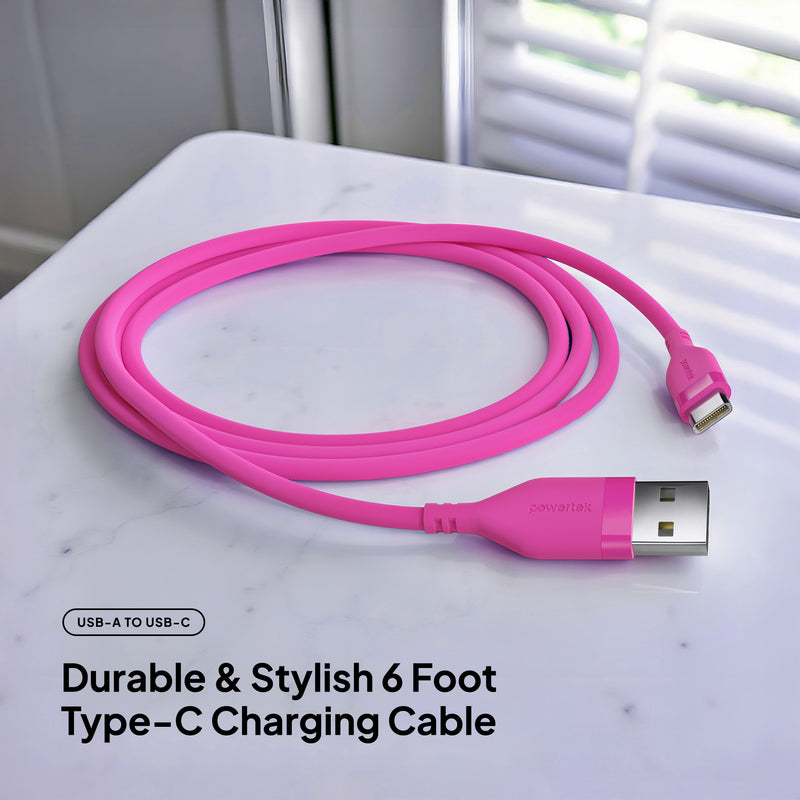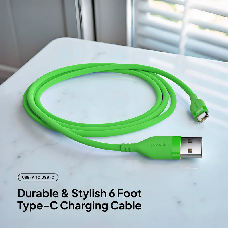 Upgrade your everyday charging experience with the Powertek Neon USB-A to USB-C cable. Built for long-lasting performance, this premium 6-foot cable features a durable silicone design and high-quality USB-C chips for reliable, fast charging every time. Available in six stylish colors, so you can pick the perfect match for your phone case or personal style.