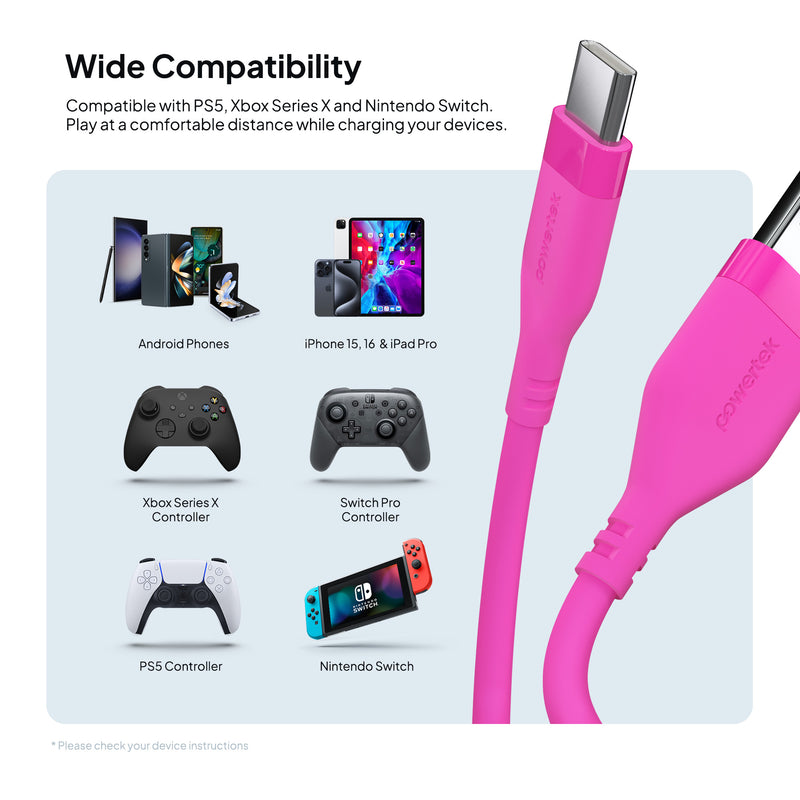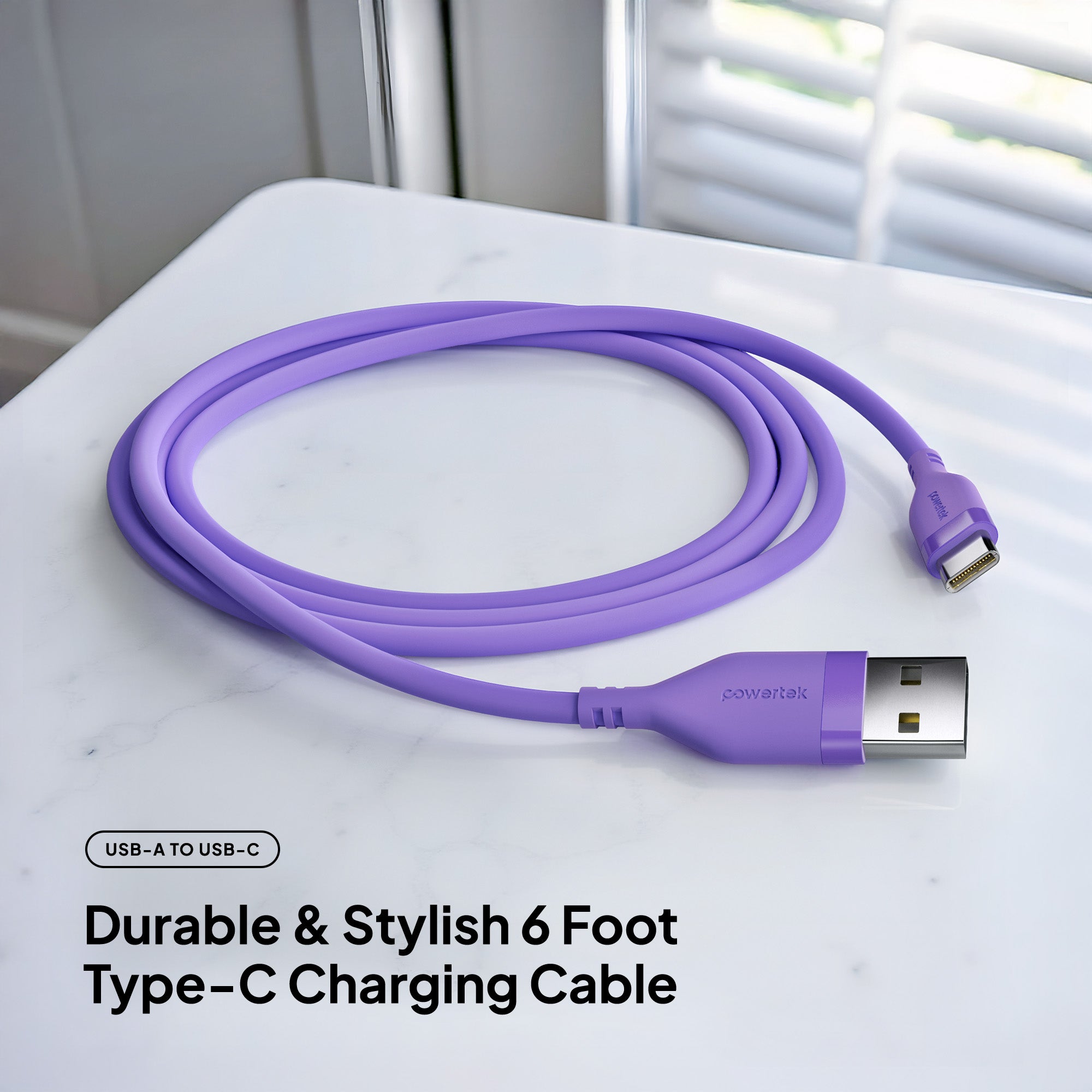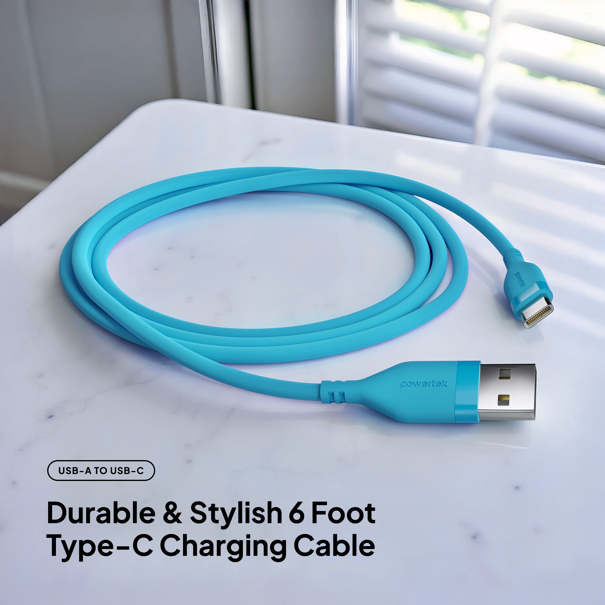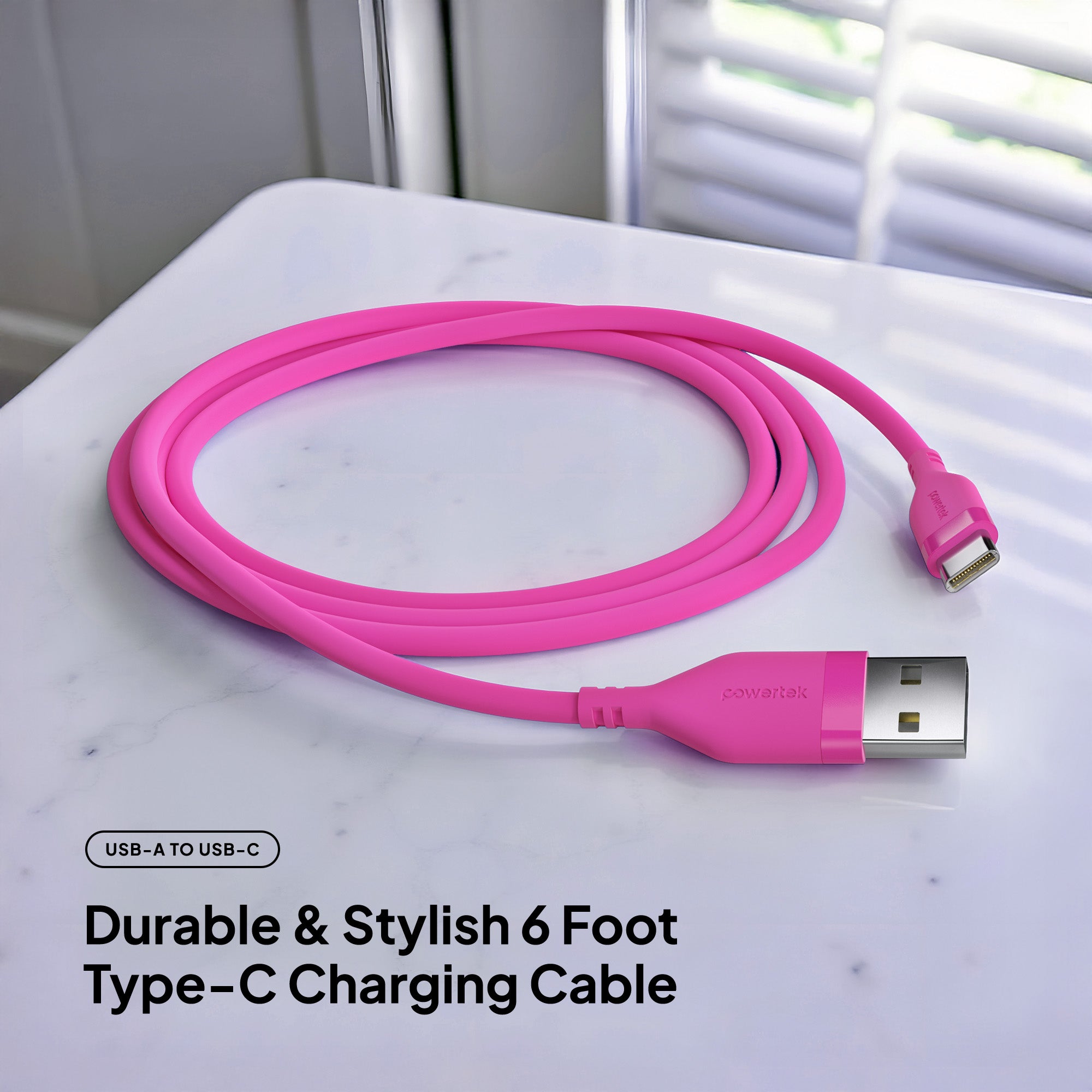 Upgrade your everyday charging experience with the Powertek Neon USB-A to USB-C cable. Built for long-lasting performance, this premium 6-foot cable features a durable silicone design and high-quality USB-C chips for reliable, fast charging every time. Available in six stylish colors, so you can pick the perfect match for your phone case or personal style.