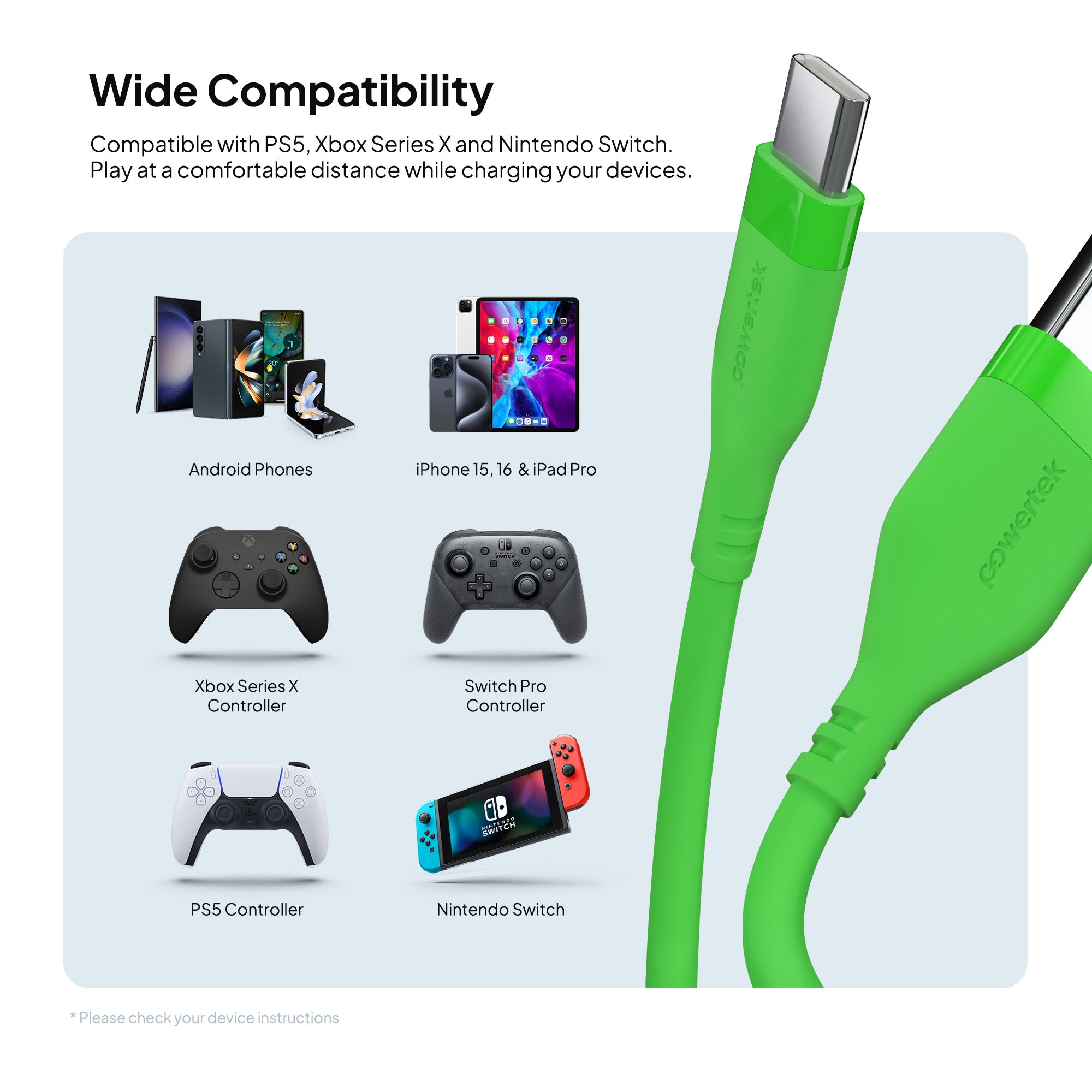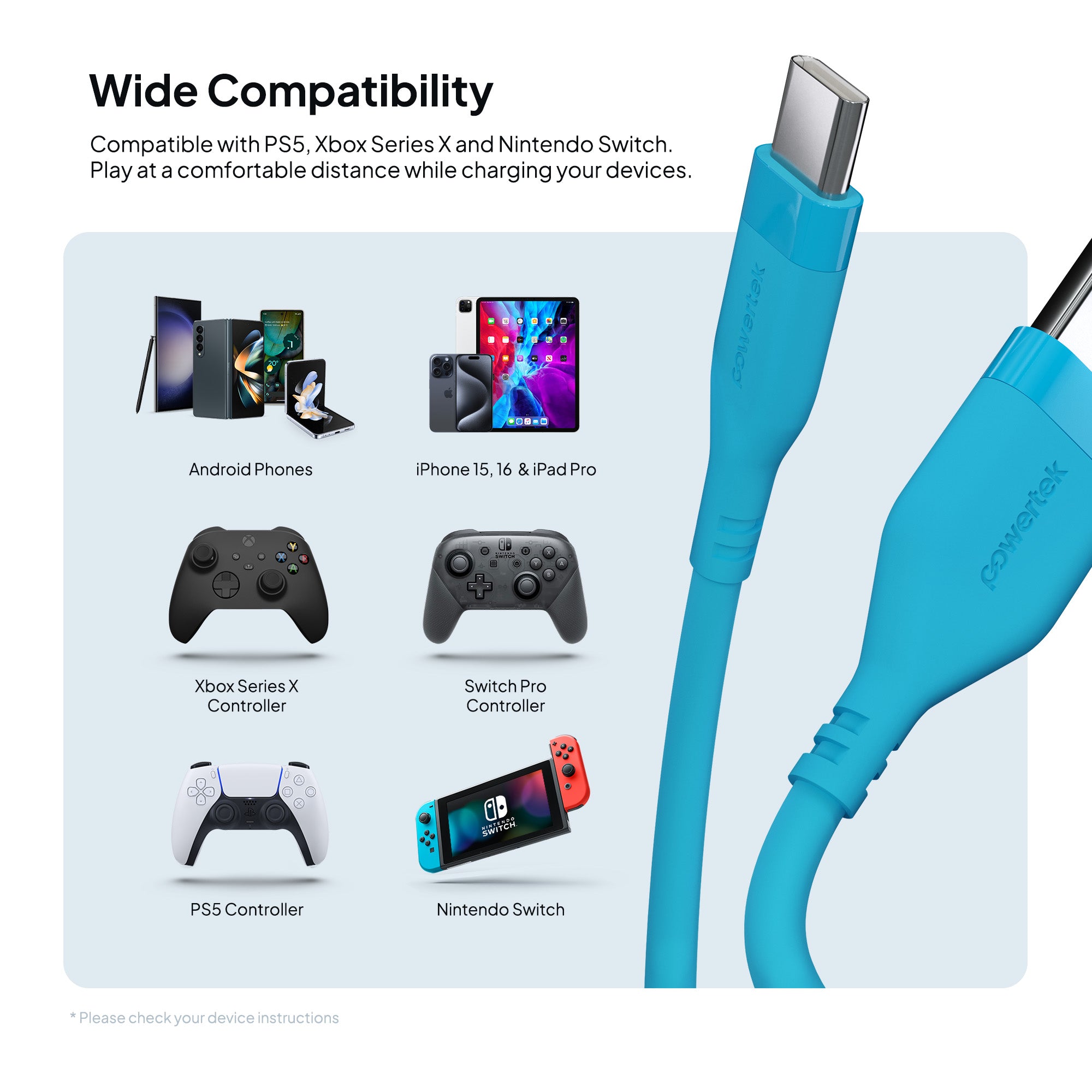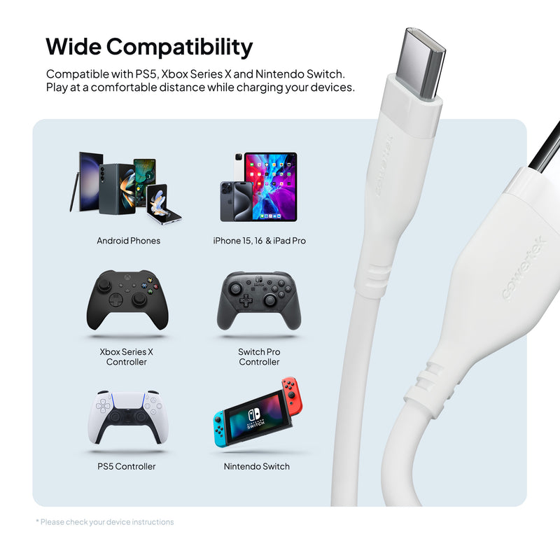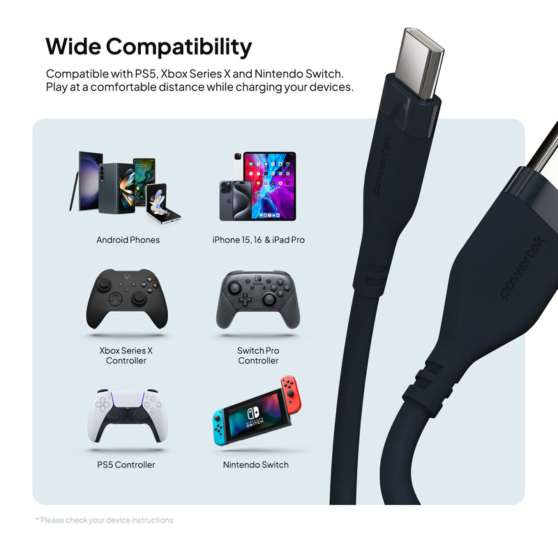 Compatible with smartphones, tablets, and laptops, this cable pairs seamlessly with the Powertek portable battery banks or wall block chargers for the ultimate charging setup.