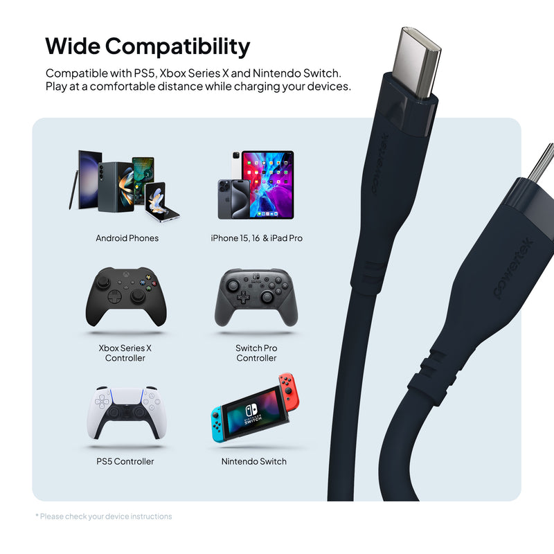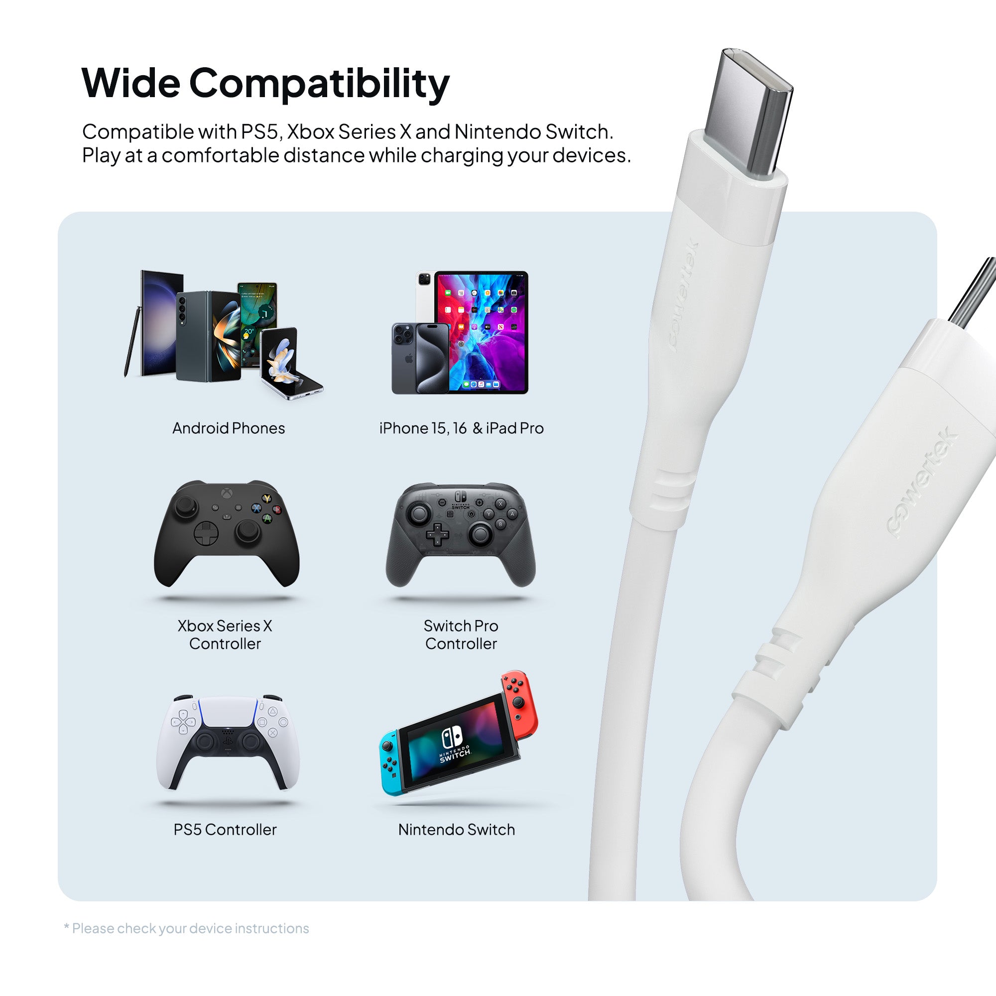 Compatible with smartphones, tablets, and laptops, this cable pairs seamlessly with the Powertek portable battery banks or wall block chargers for the ultimate charging setup.