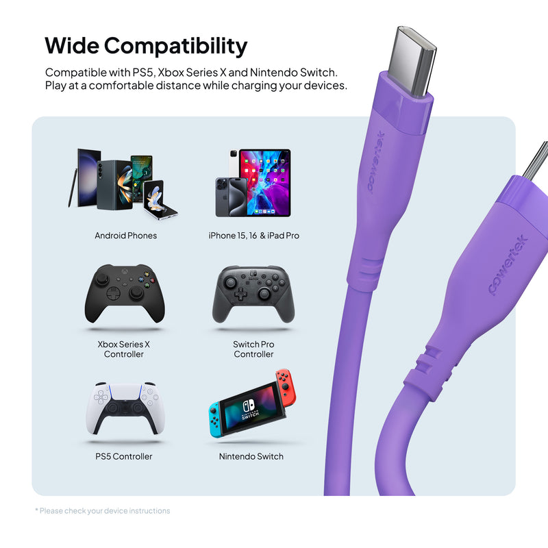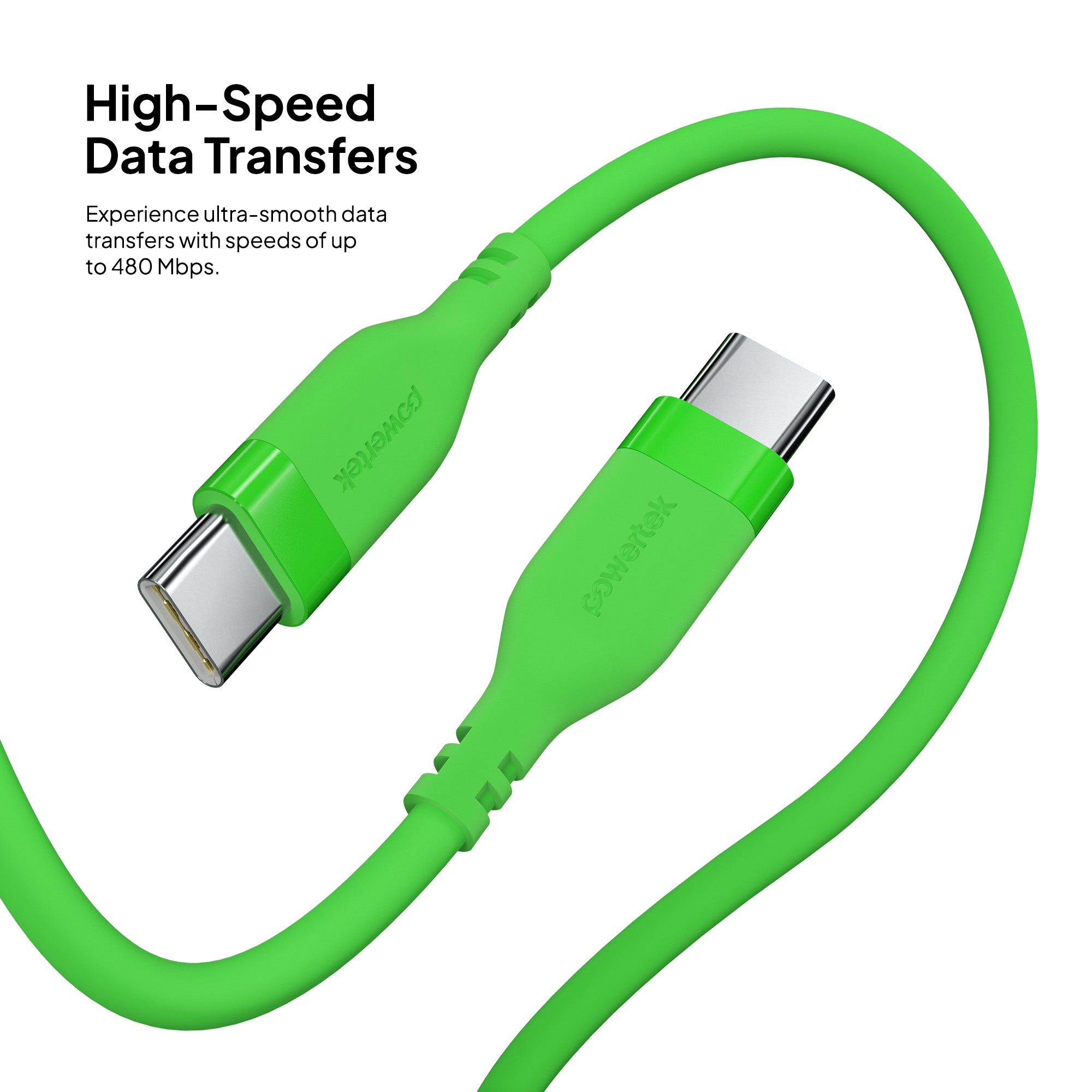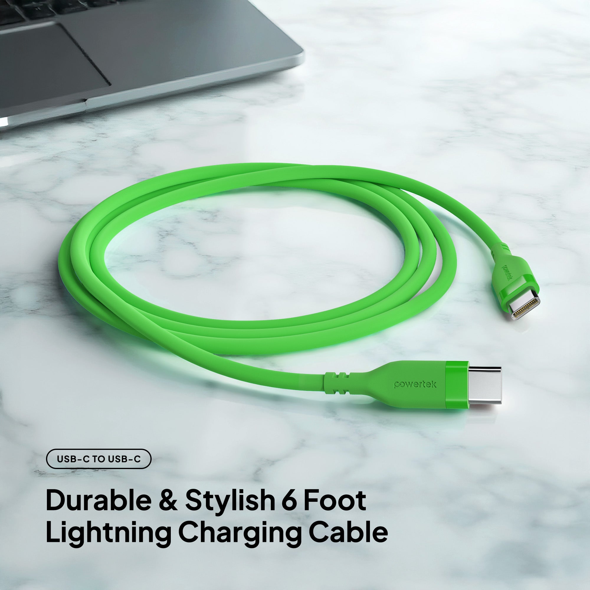 Upgrade your everyday charging experience with the Powertek Neon USB-C to USB-C cable. Built for long-lasting performance, this premium 6-foot cable features a durable silicone design and high-quality USB-C chips for reliable, fast charging every time. Available in six stylish colors, so you can pick the perfect match for your phone case or personal style.
