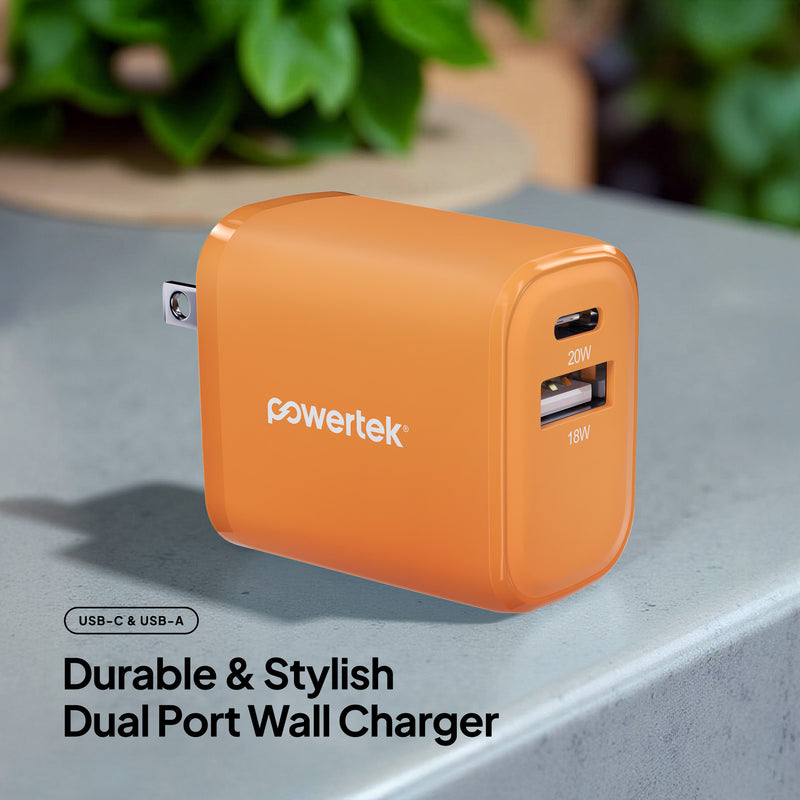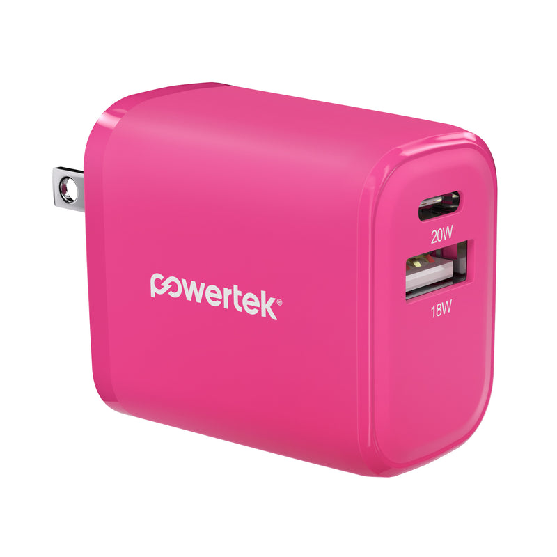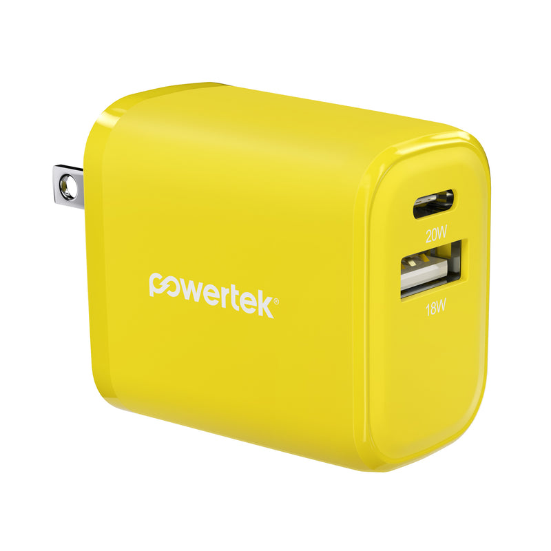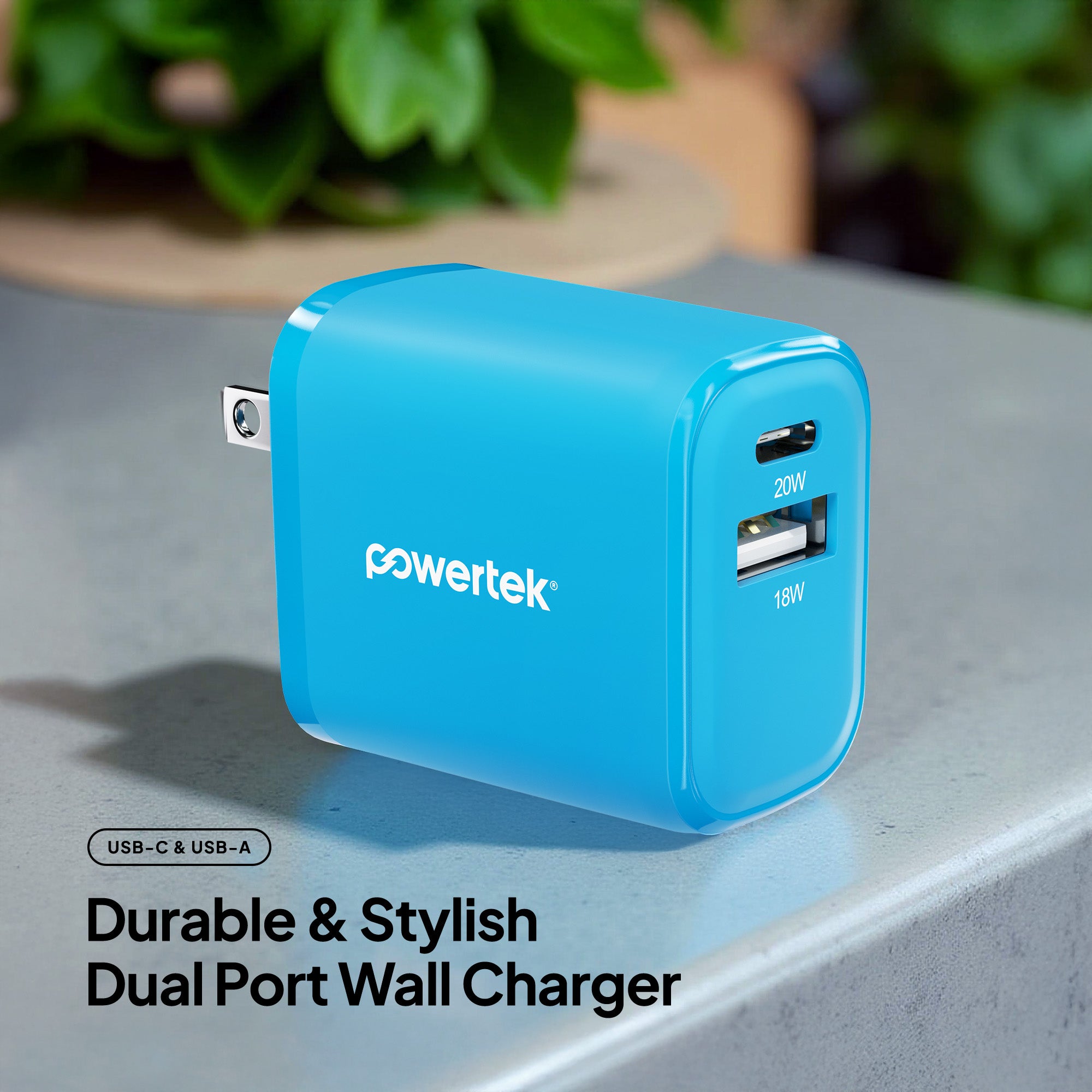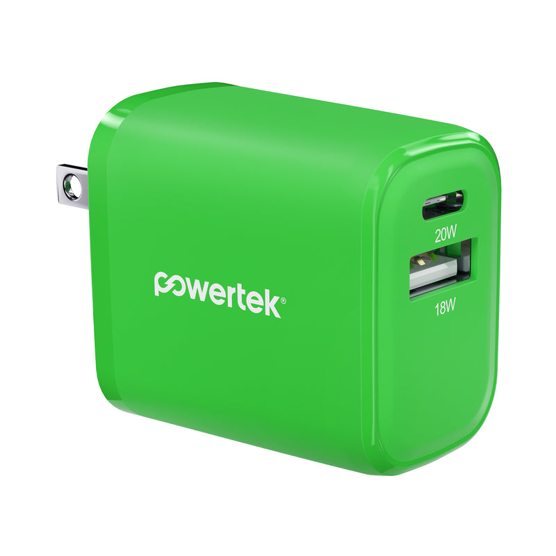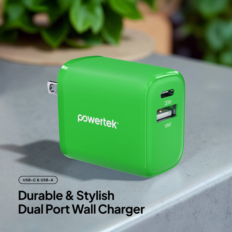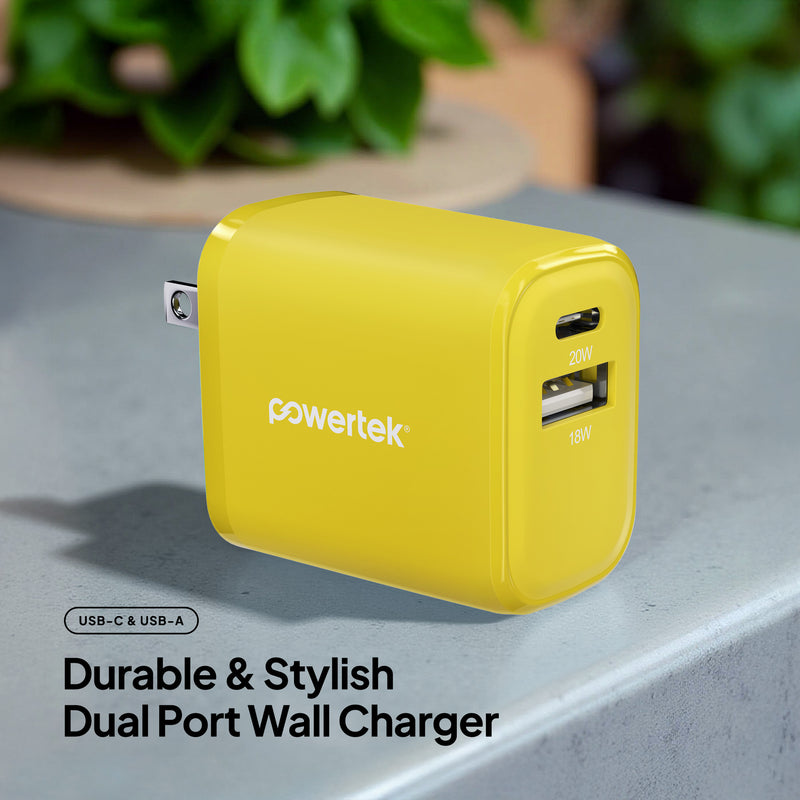 Powertek Neon Two-Tone 20W Dual-Port Wall Charger (USB-A & USB-C)
