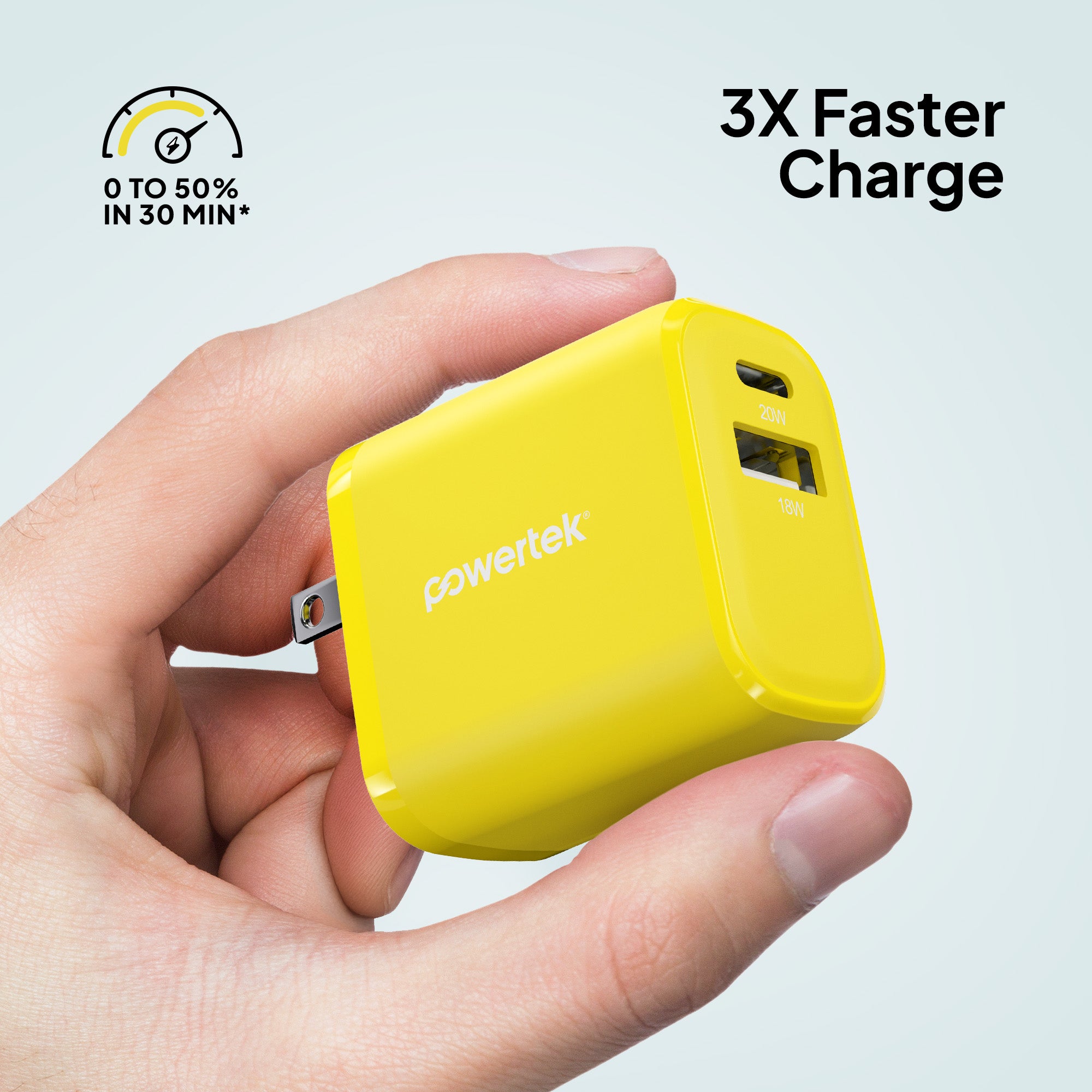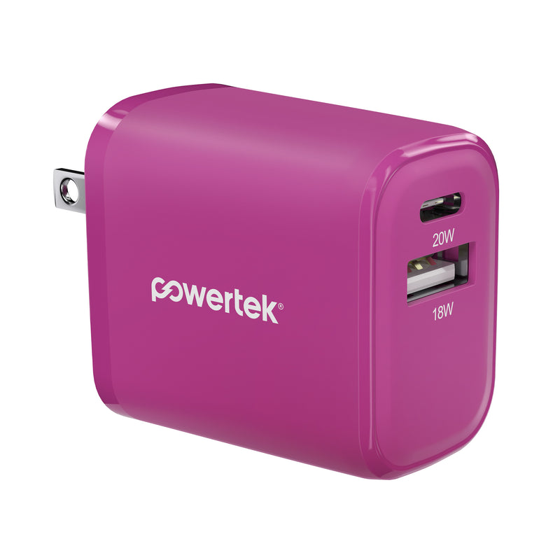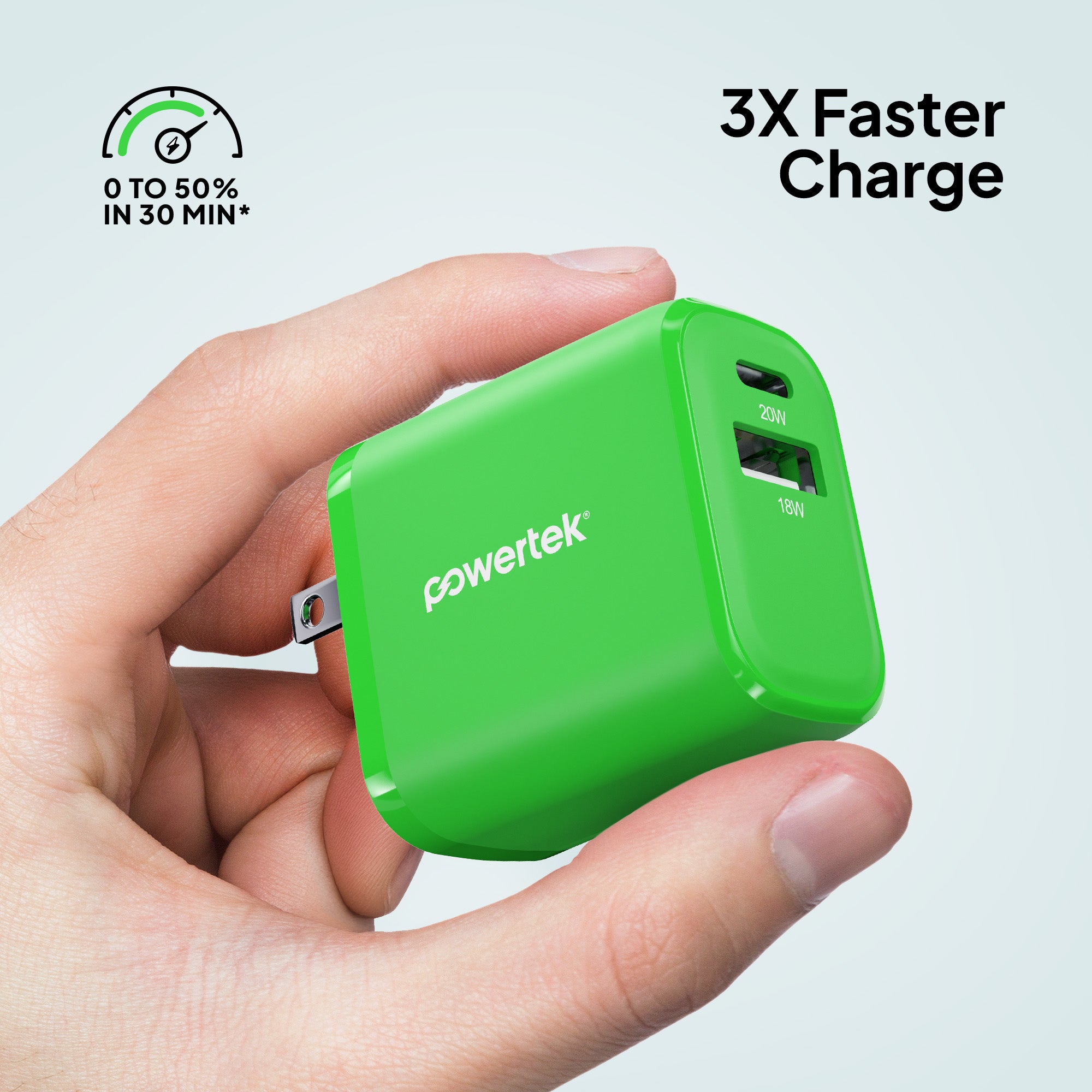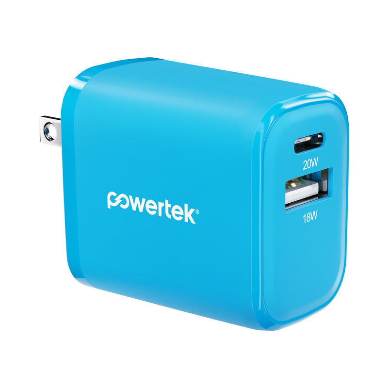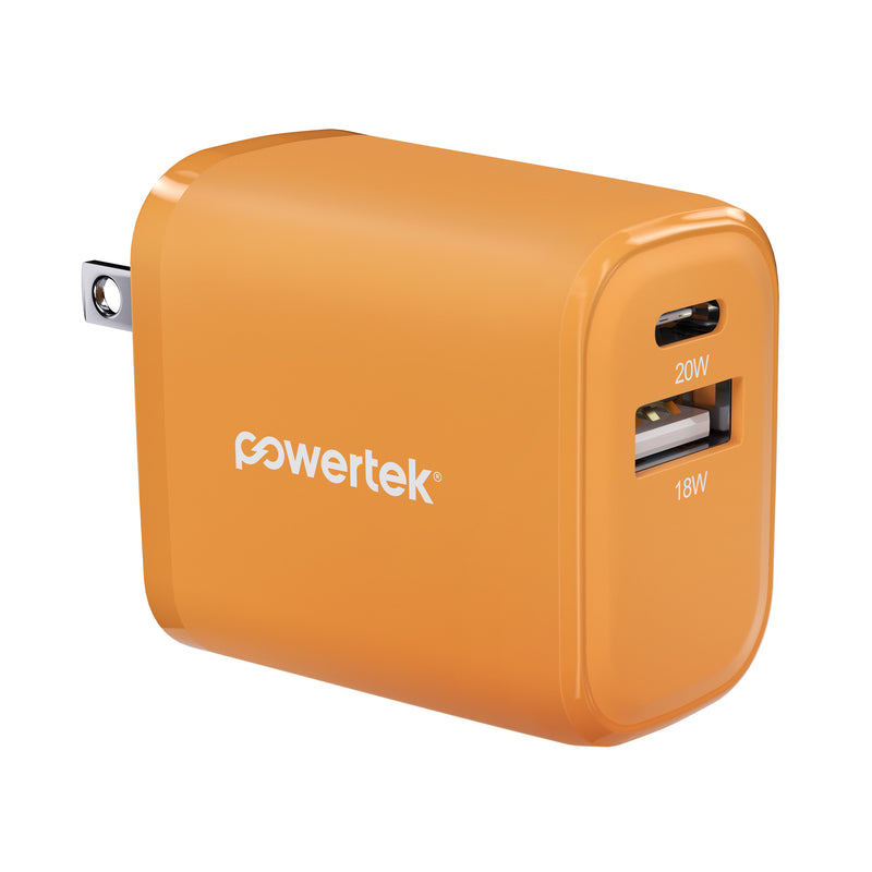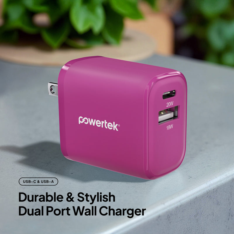 Powertek Neon Two-Tone 20W Dual-Port Wall Charger (USB-A & USB-C)