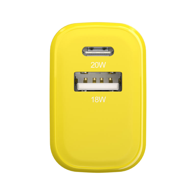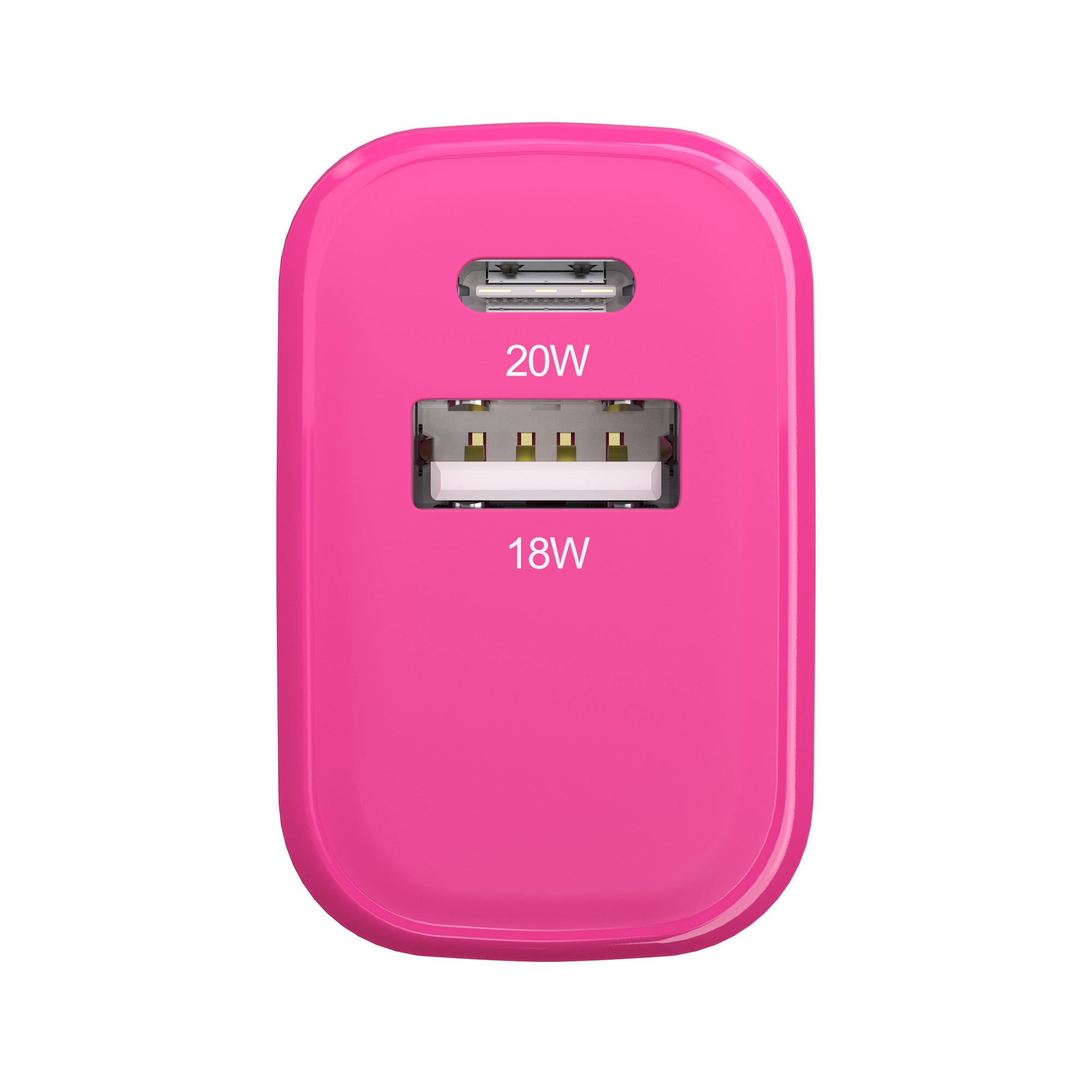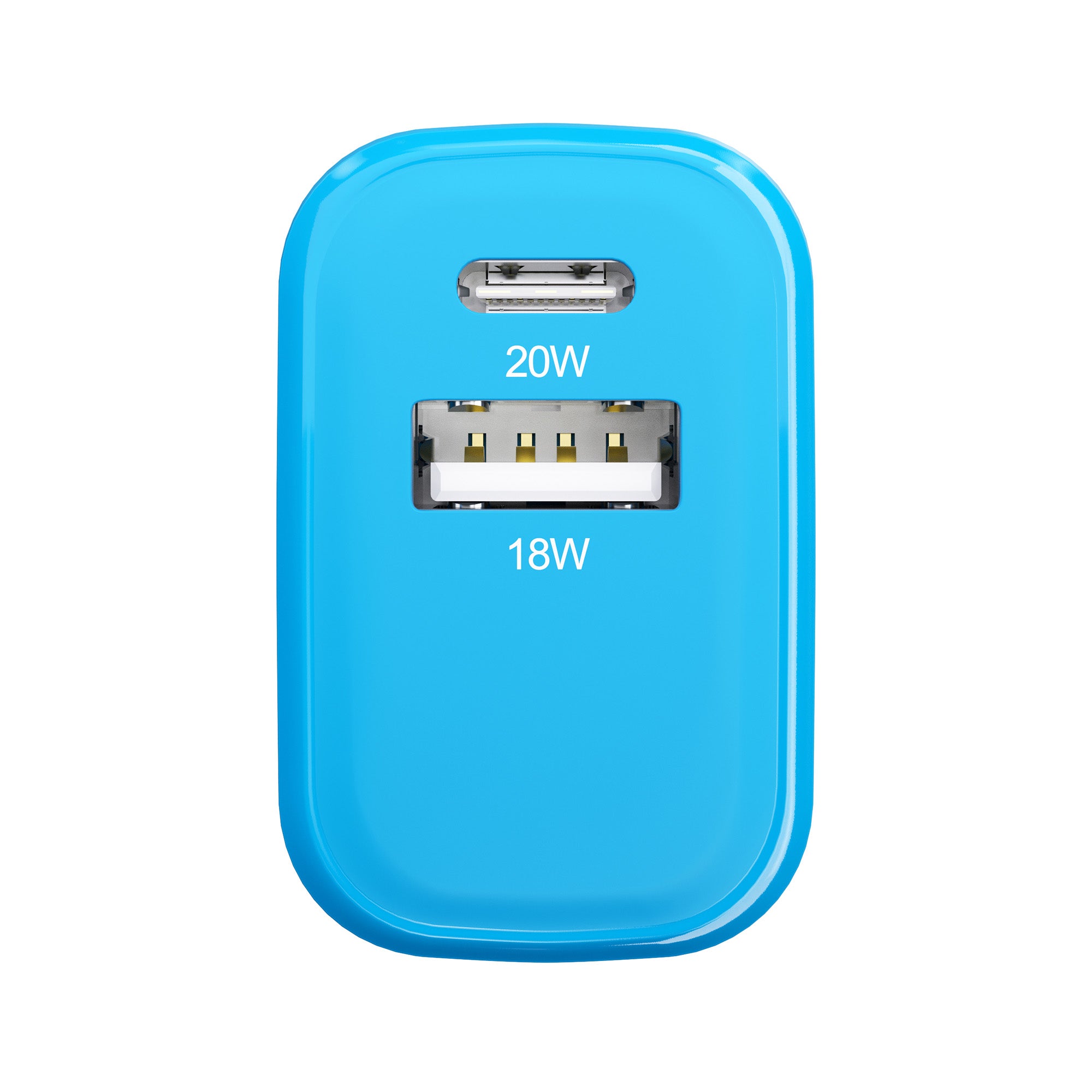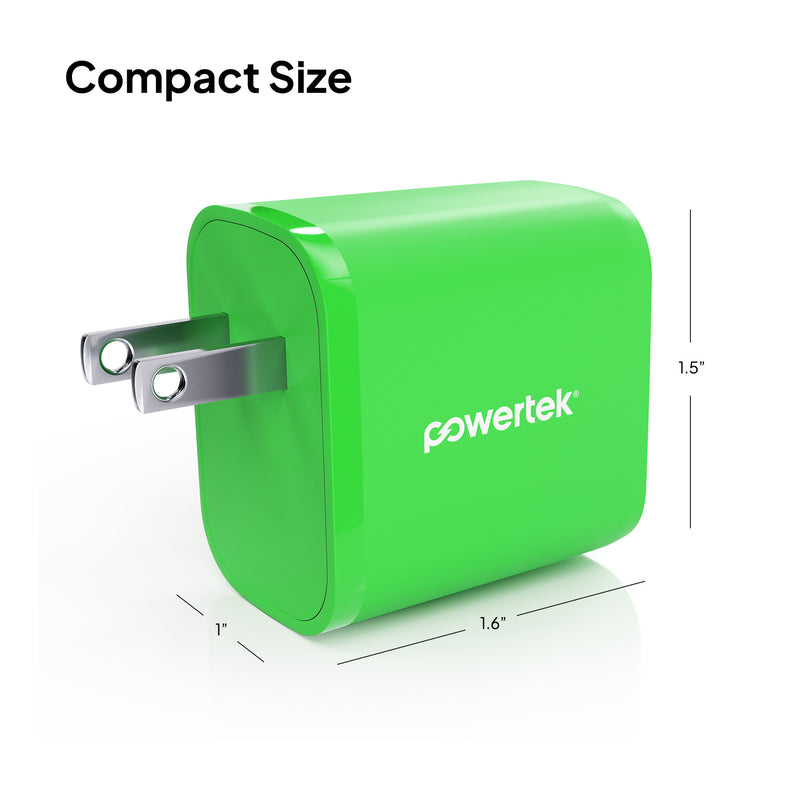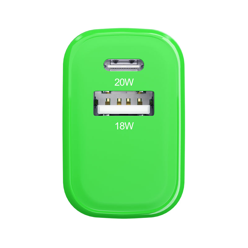 Powertek Neon Two-Tone 20W Dual-Port Wall Charger (USB-A & USB-C)