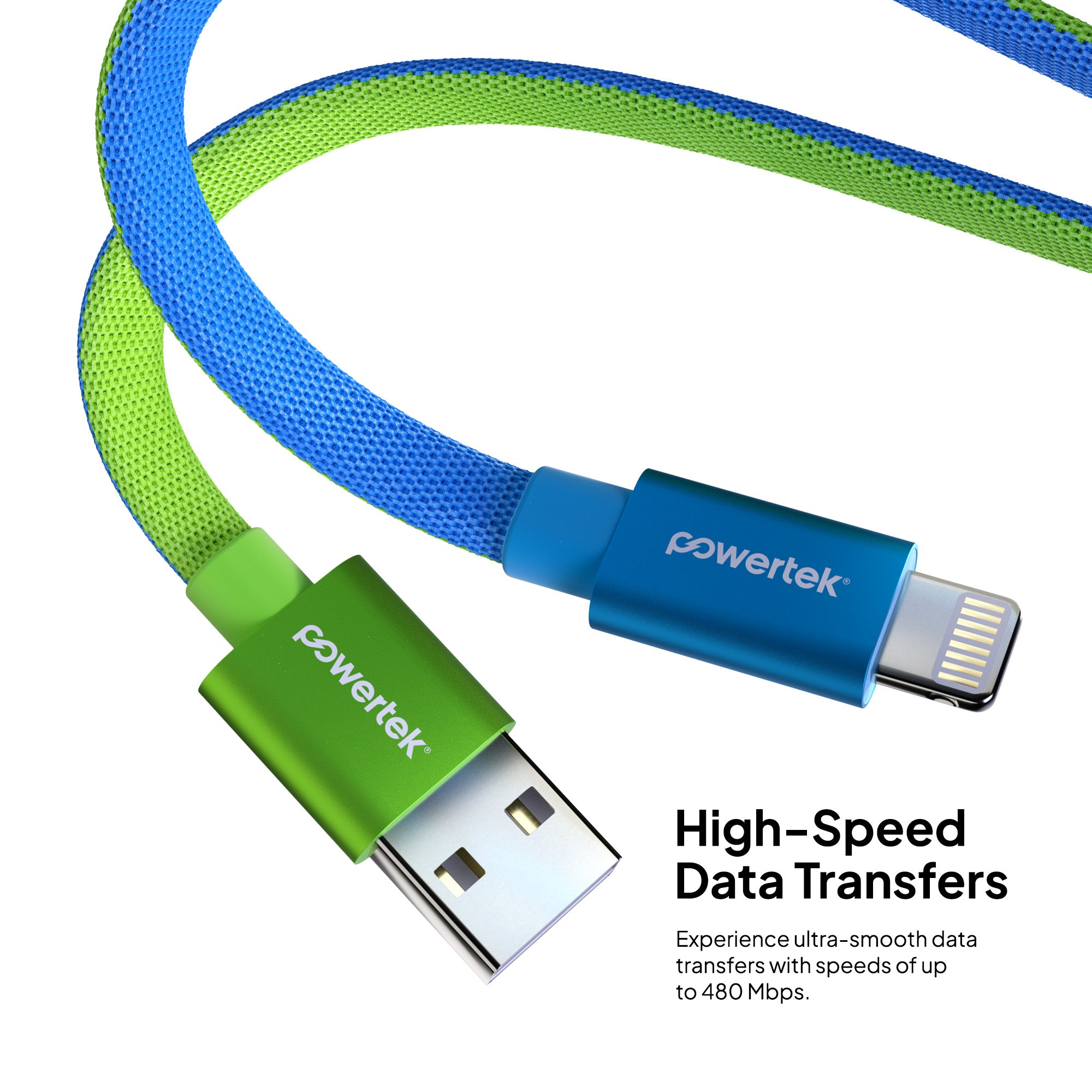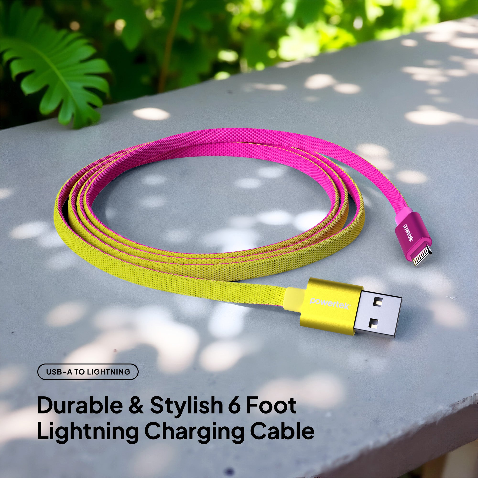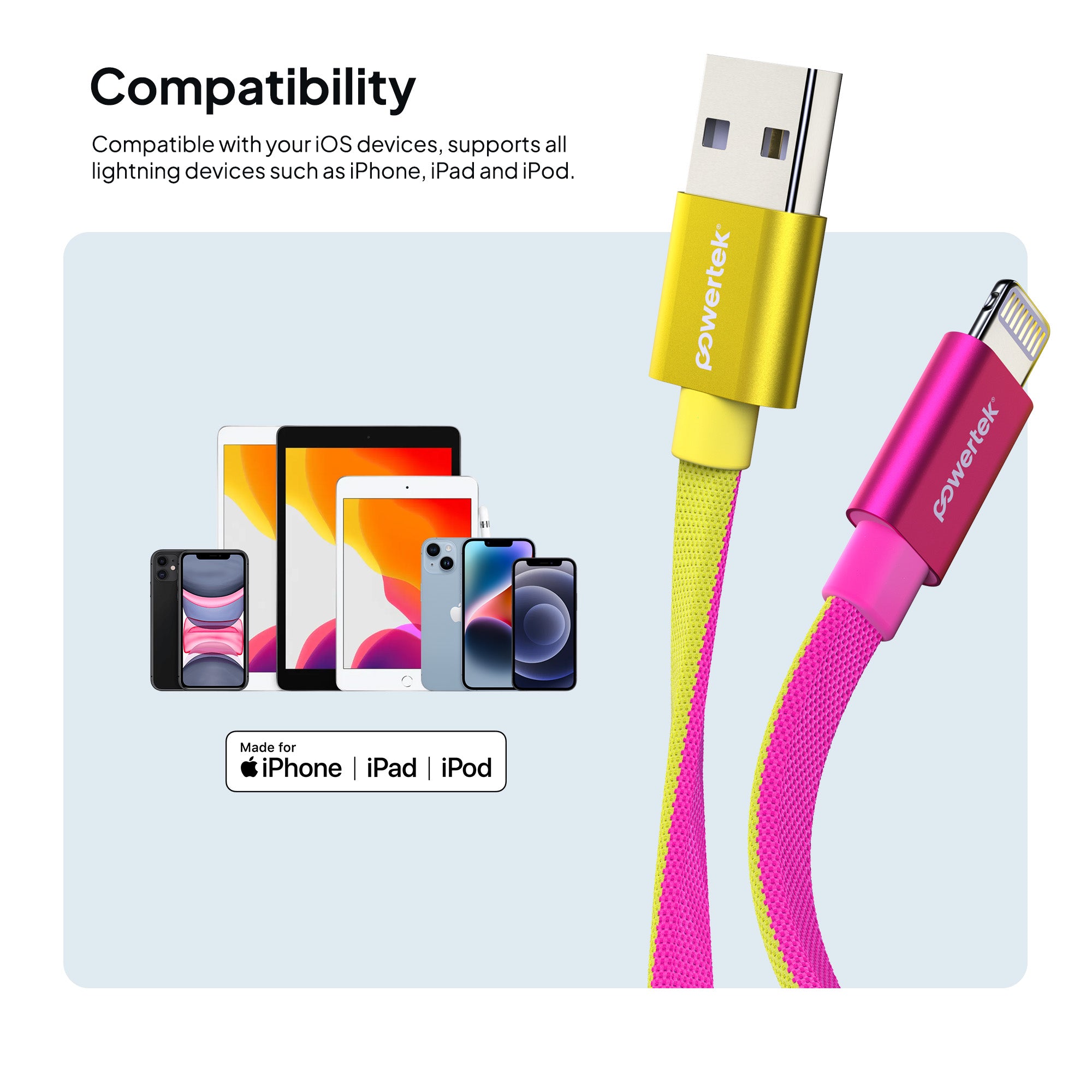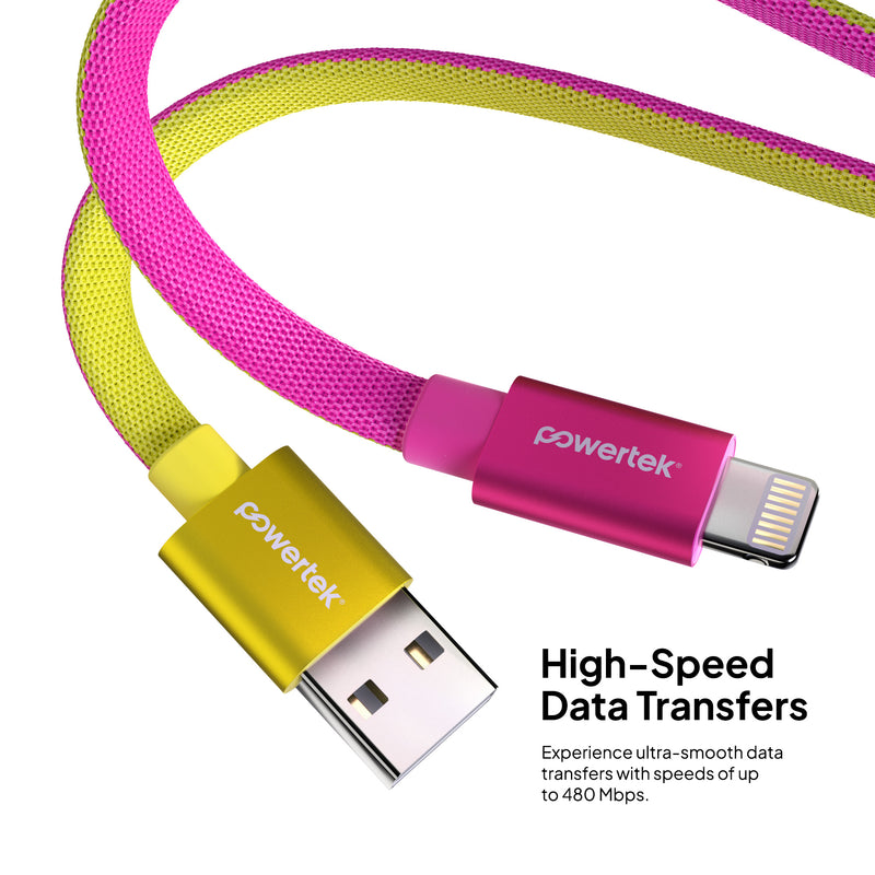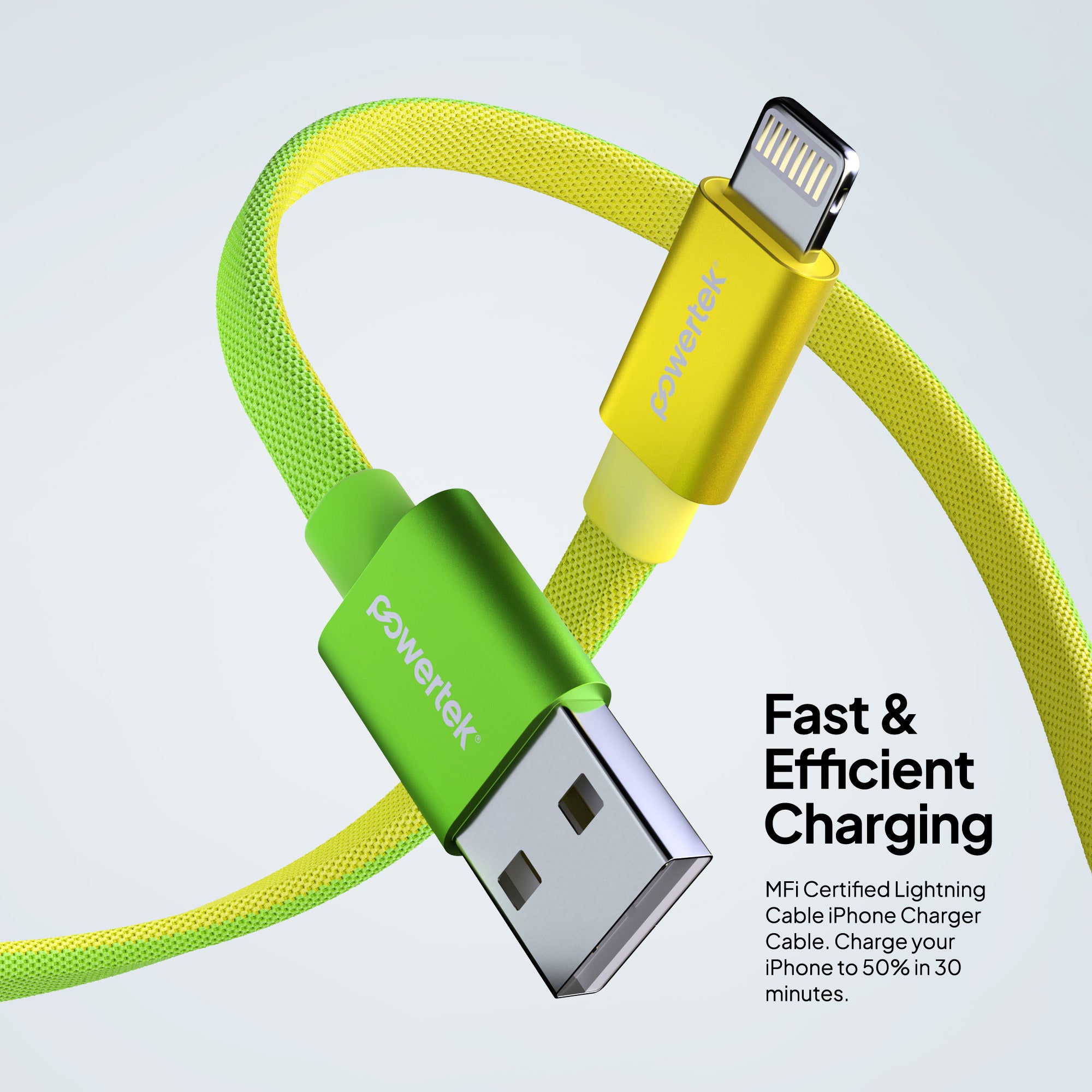 Powertek Neon Two-Tone 6ft USB-A to Lightning Charging Cable