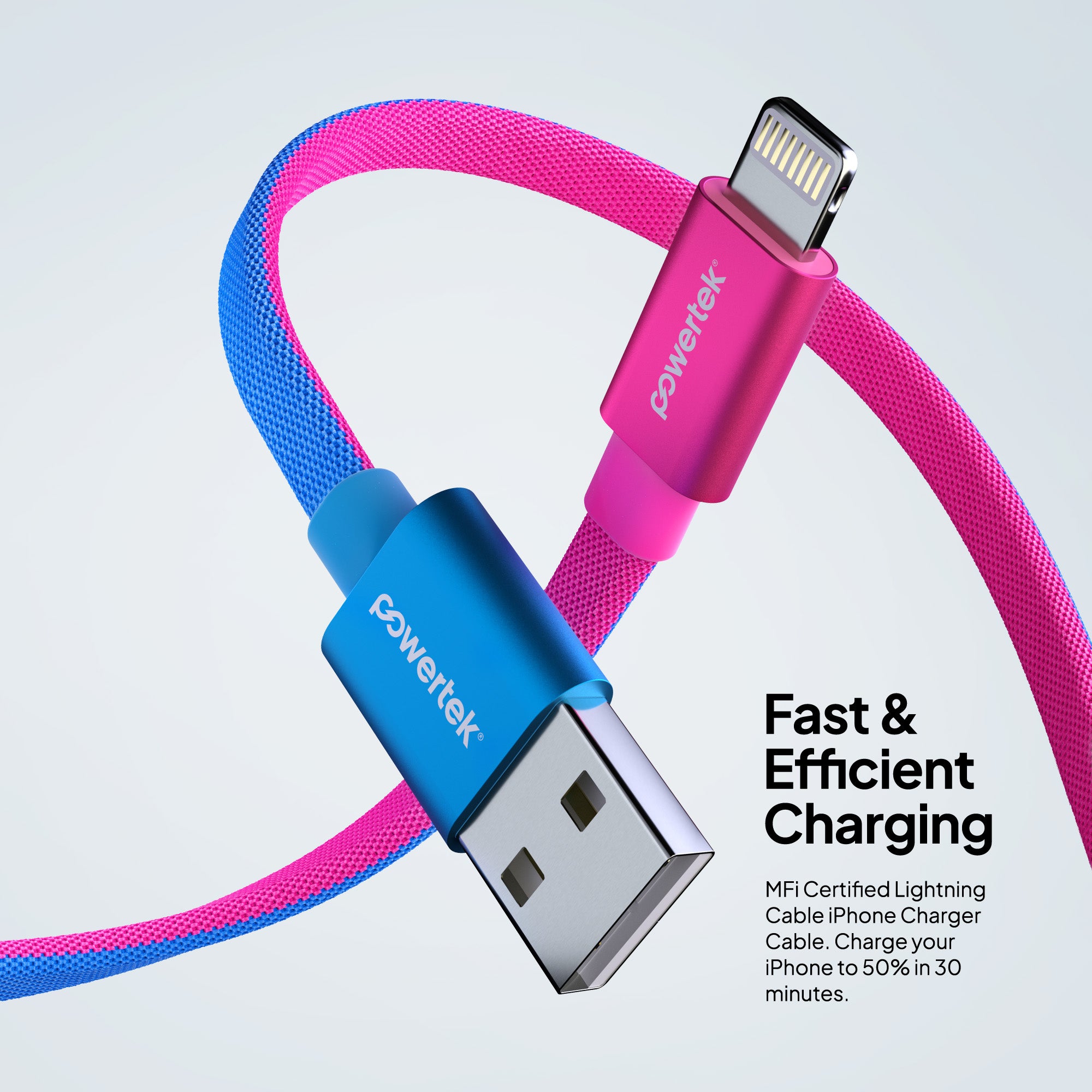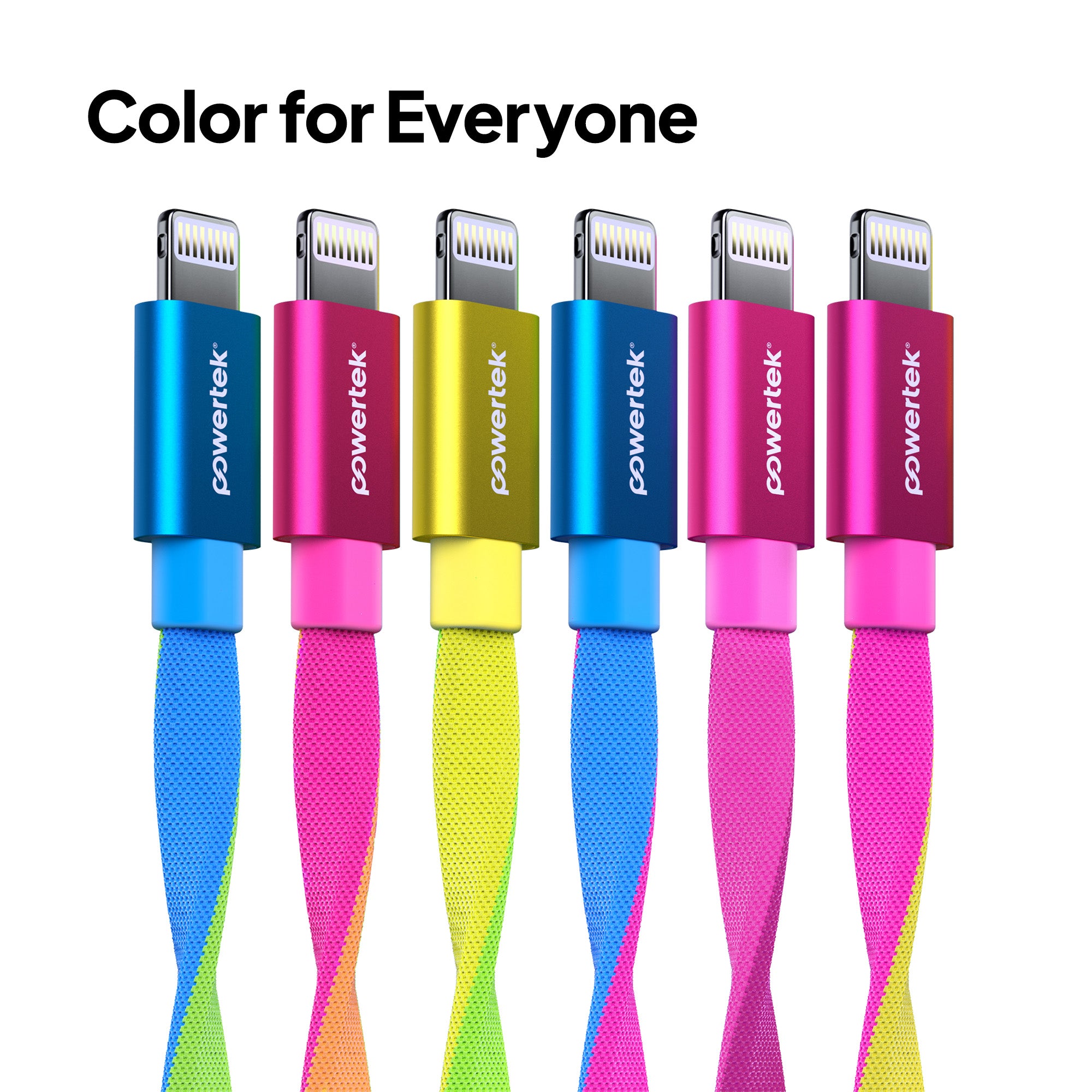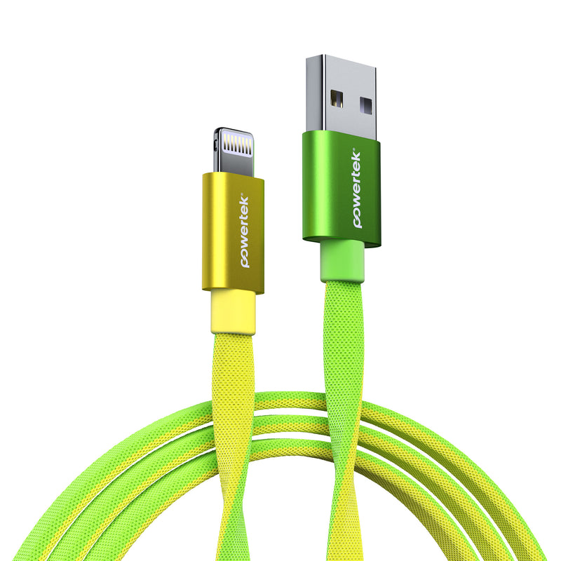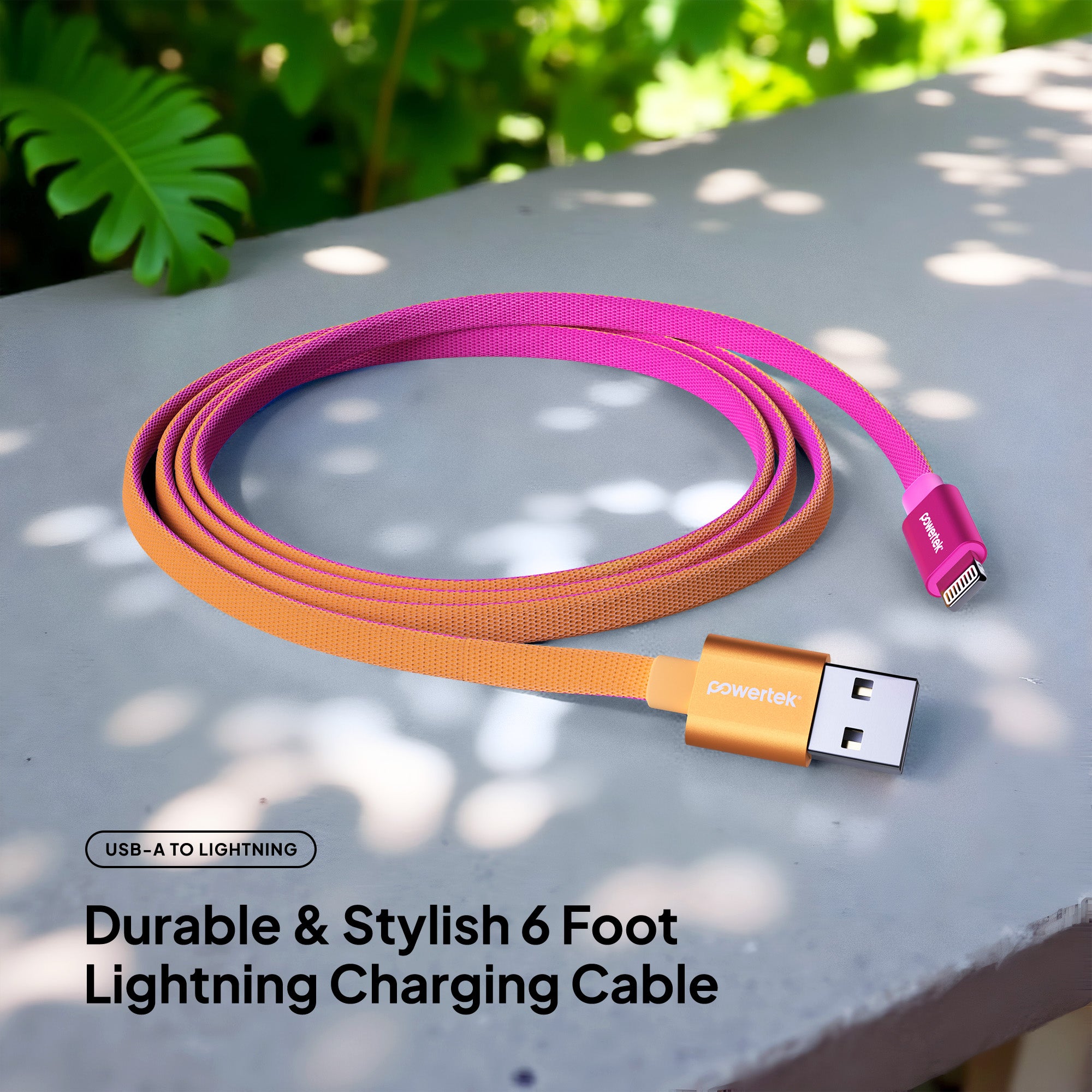 Powertek Neon Two-Tone 6ft USB-A to Lightning Charging Cable