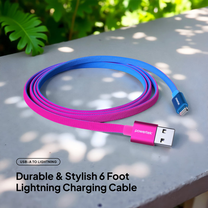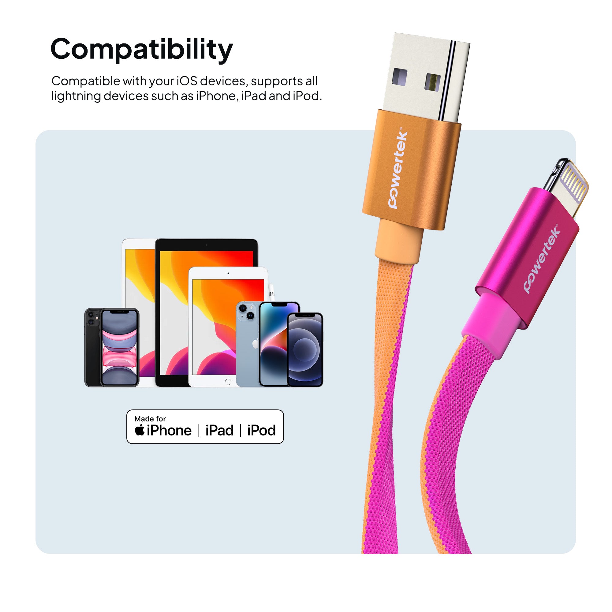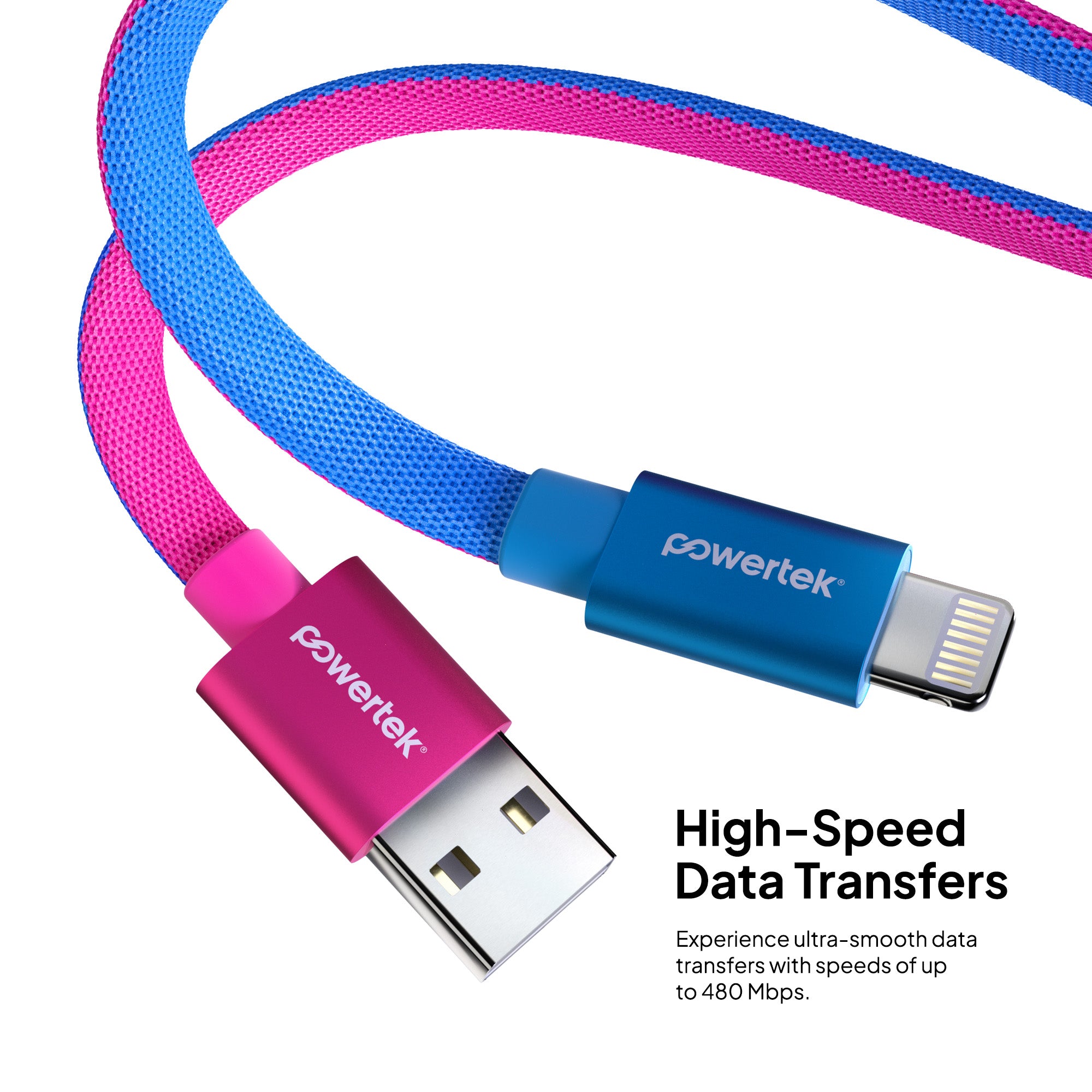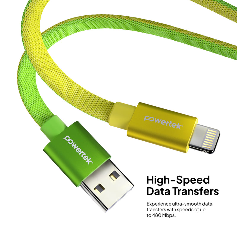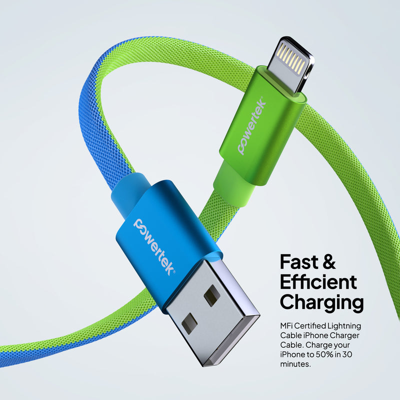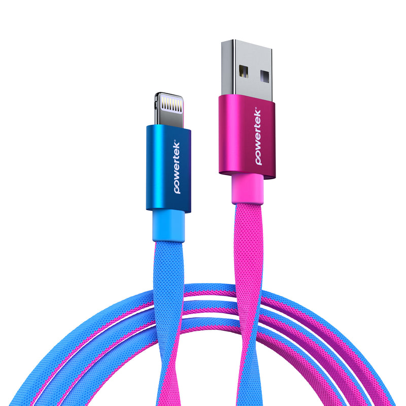 Powertek Neon Two-Tone 6ft USB-A to Lightning Charging Cable