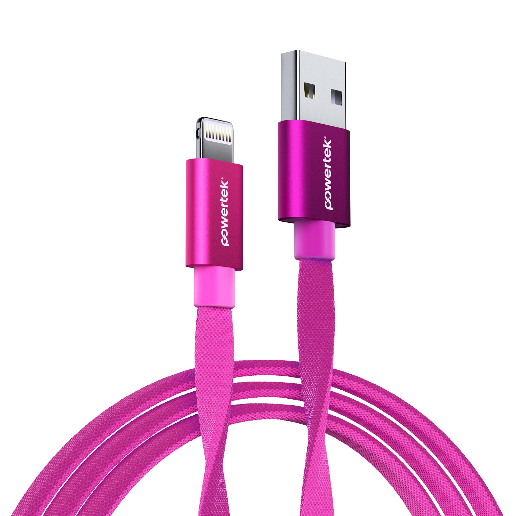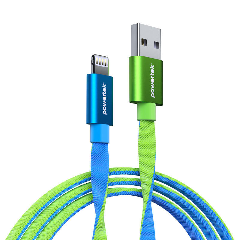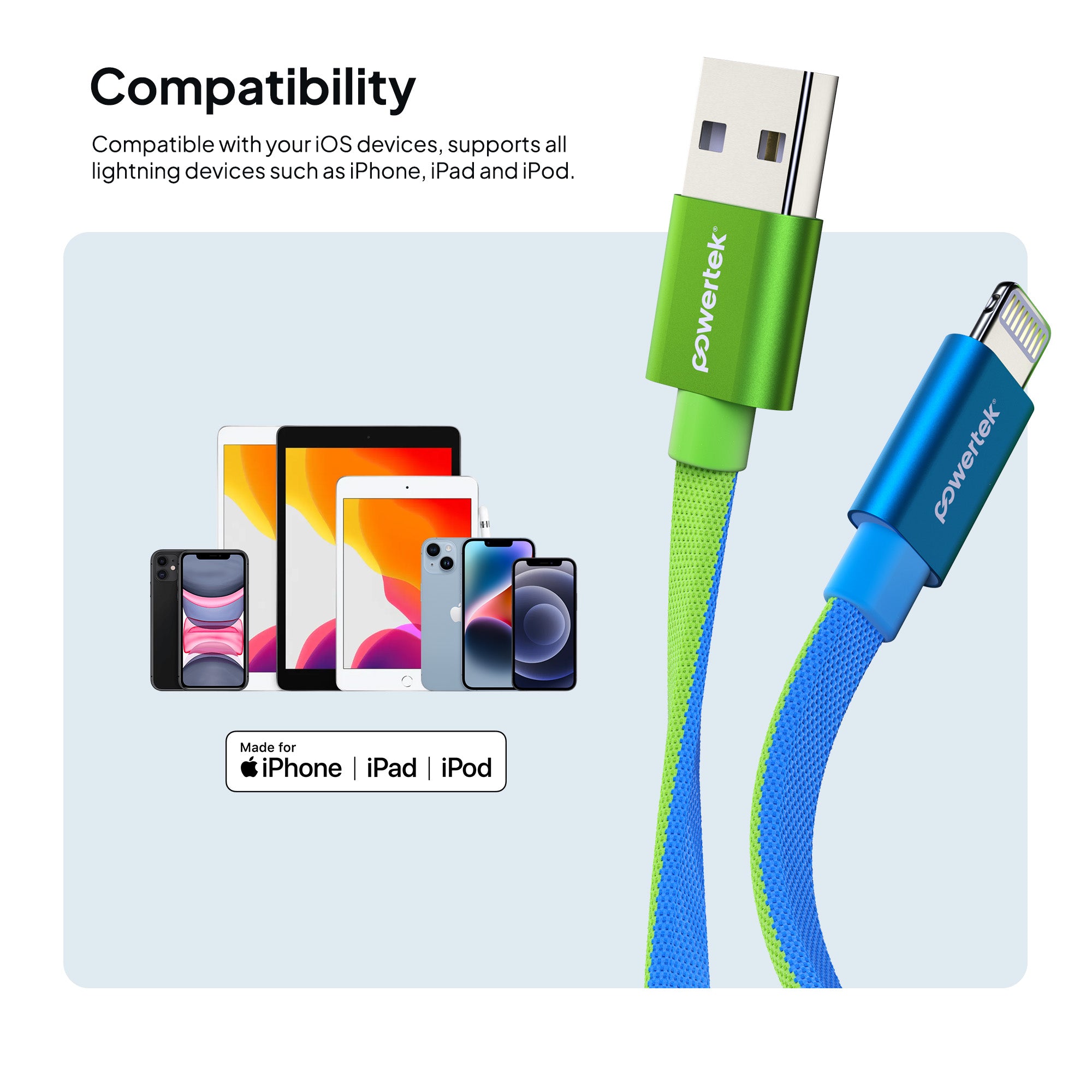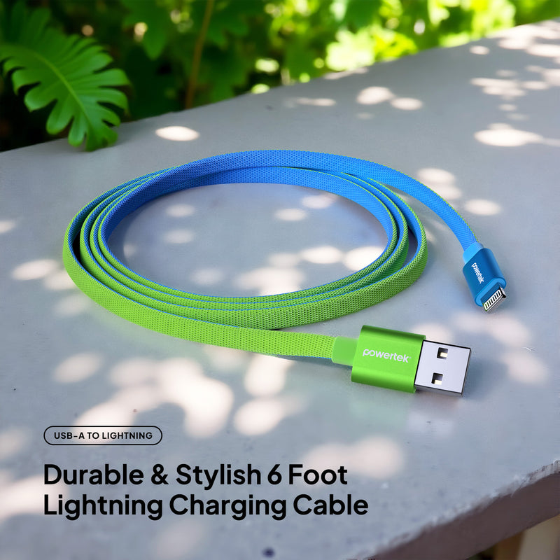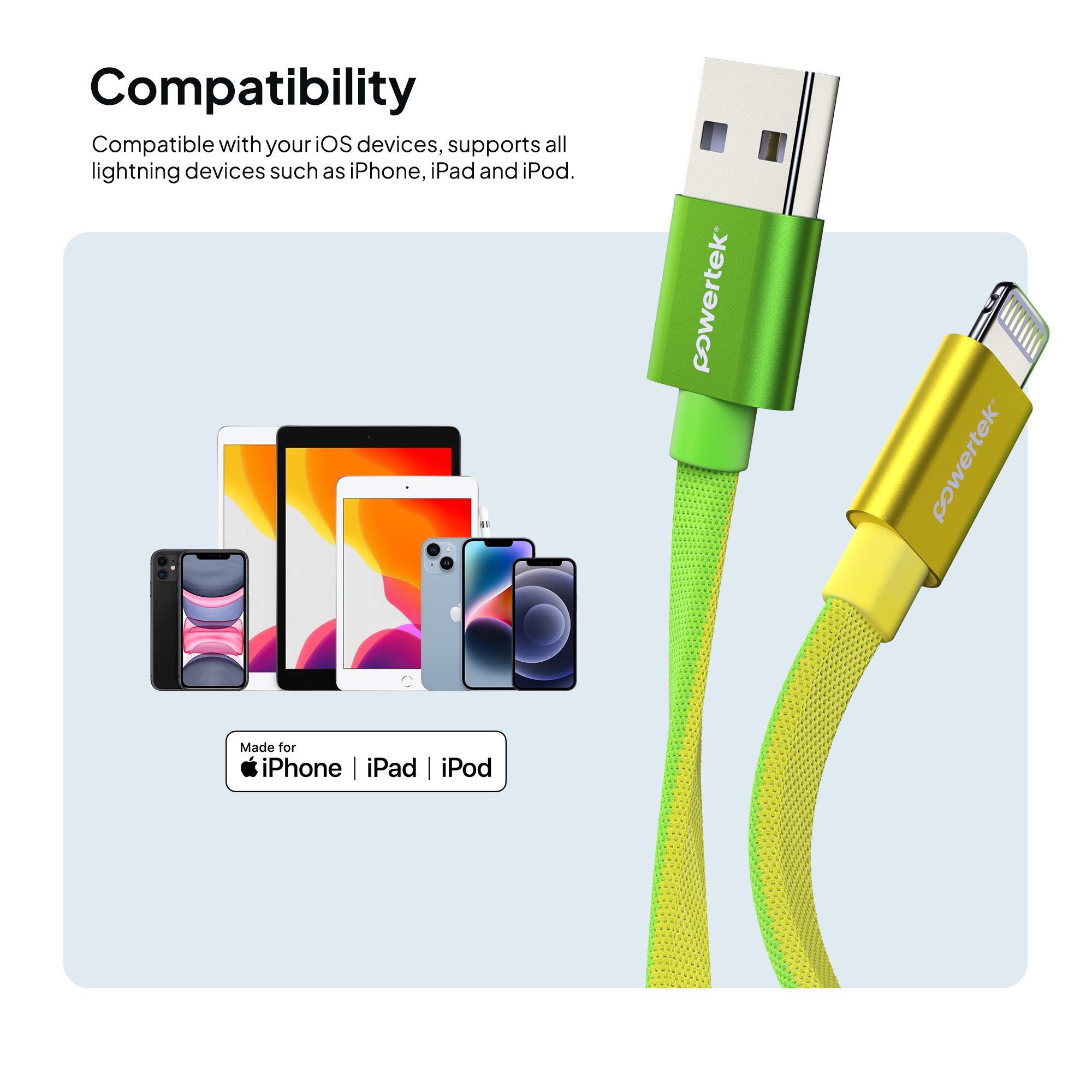Powertek Neon Two-Tone 6ft USB-A to Lightning Charging Cable