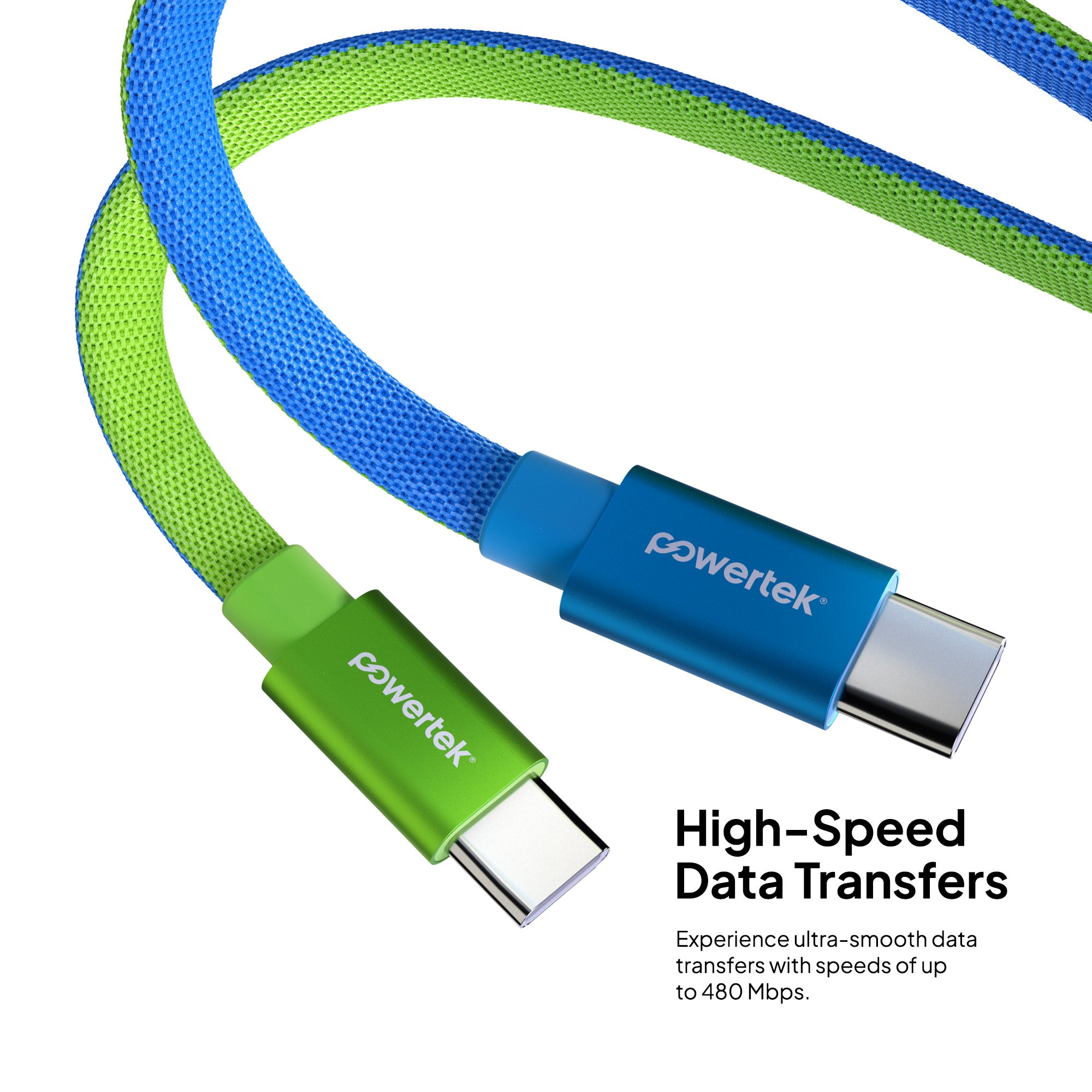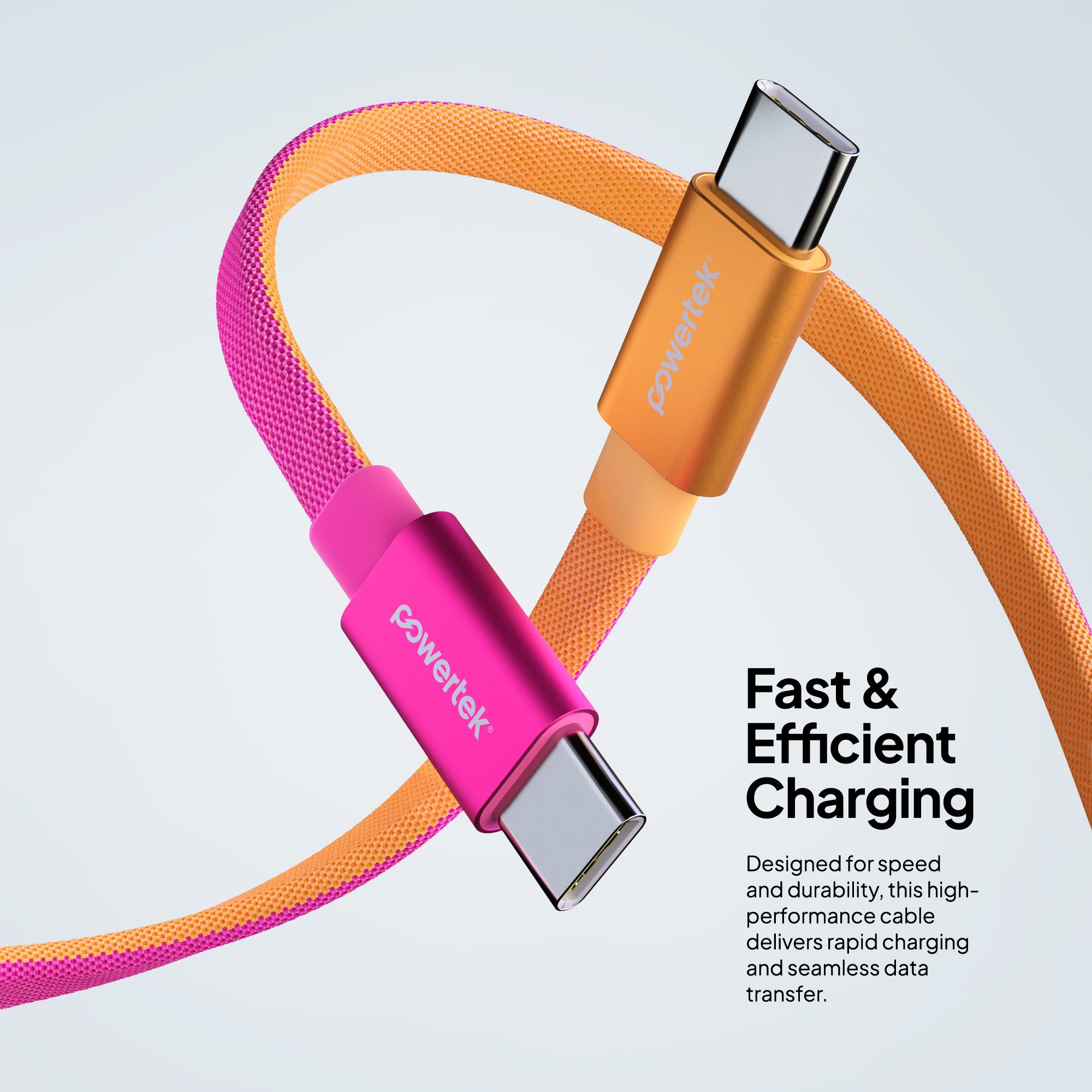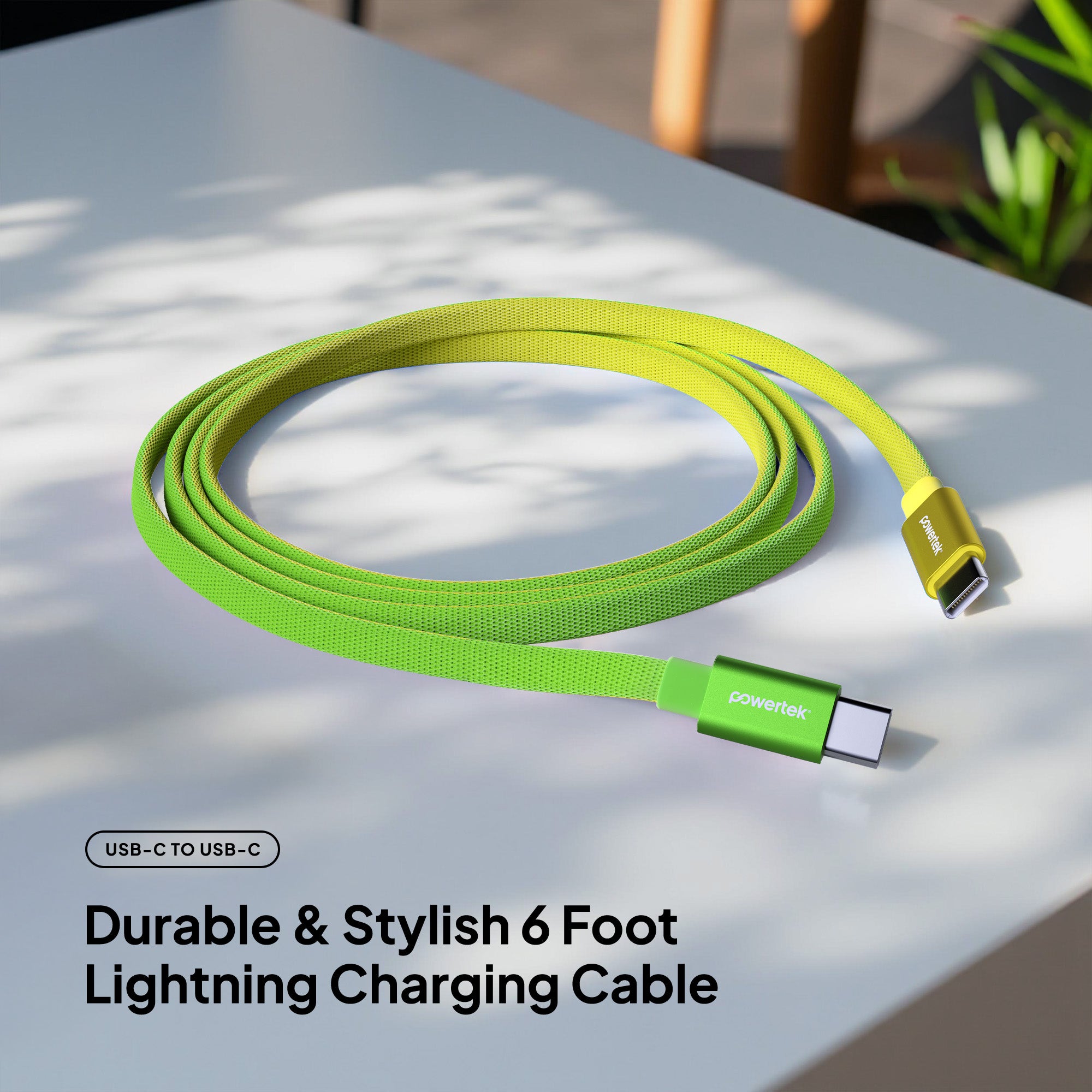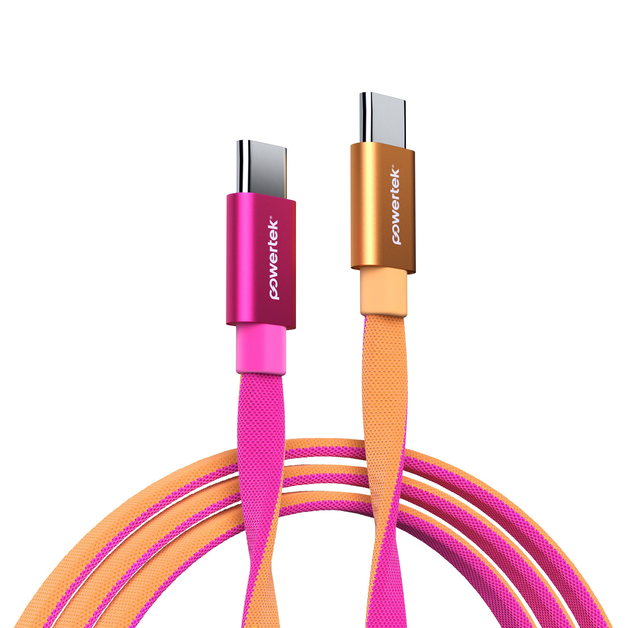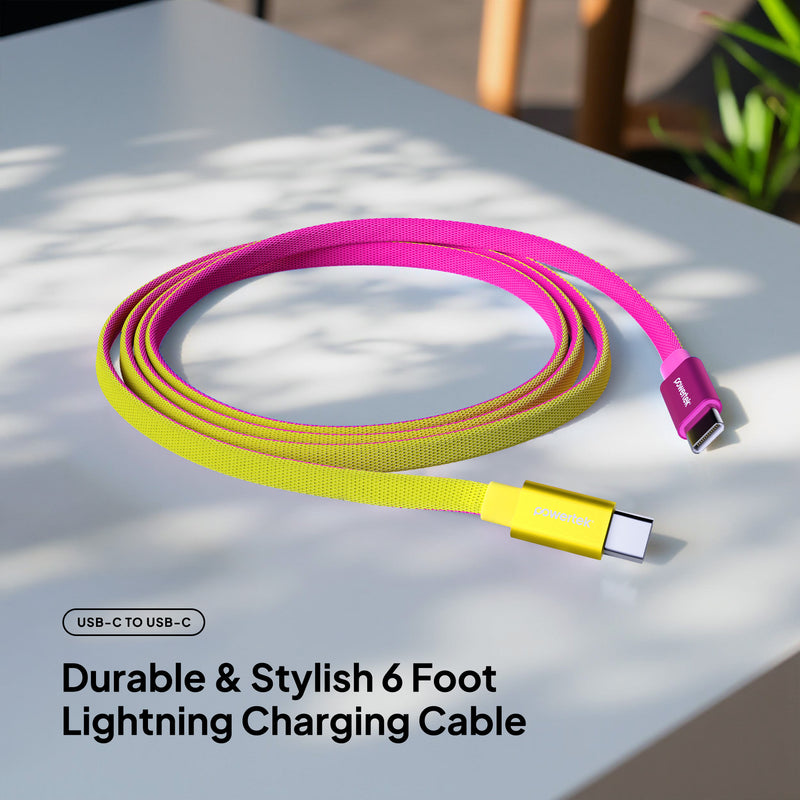 Powertek Neon Two-Tone 6ft USB-C to USB-C Charging Cable