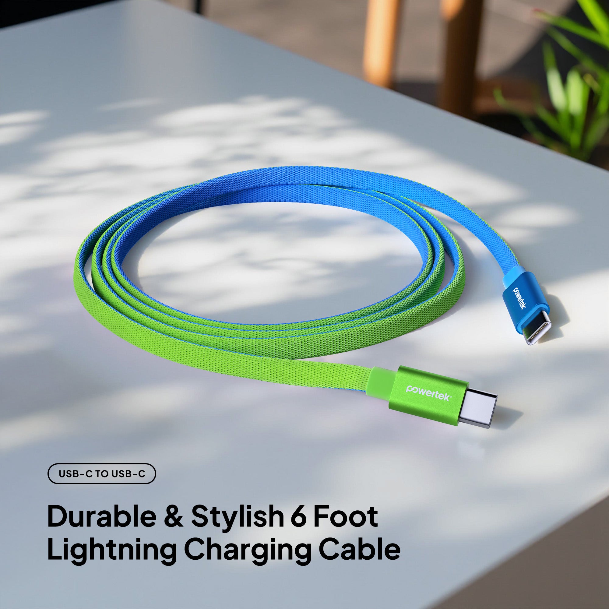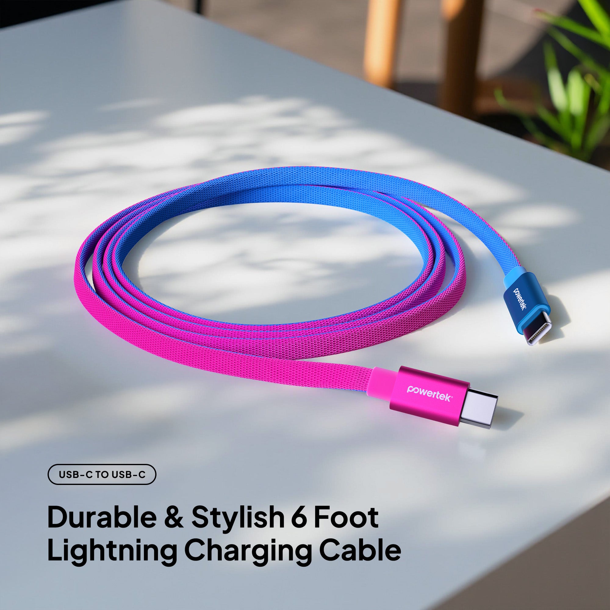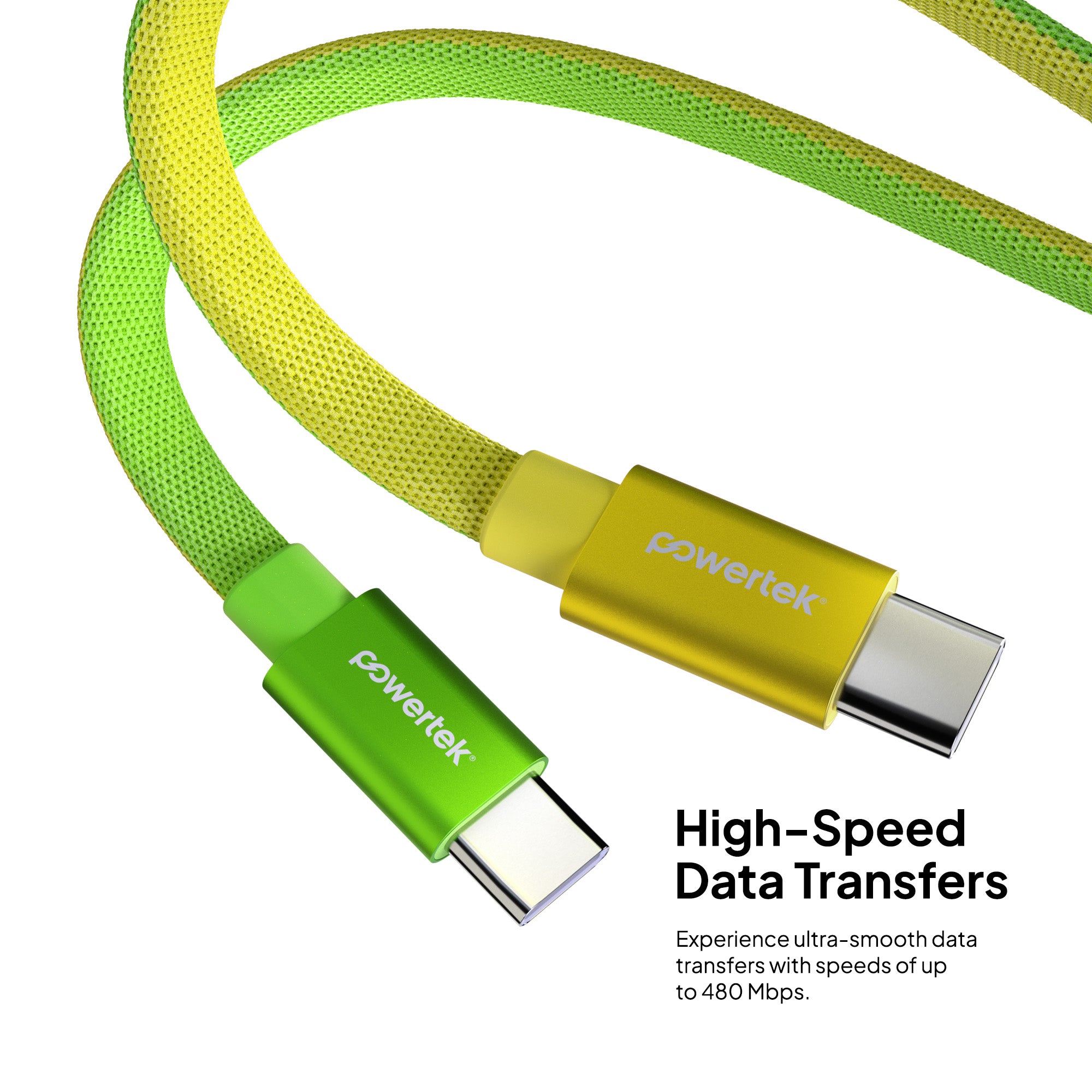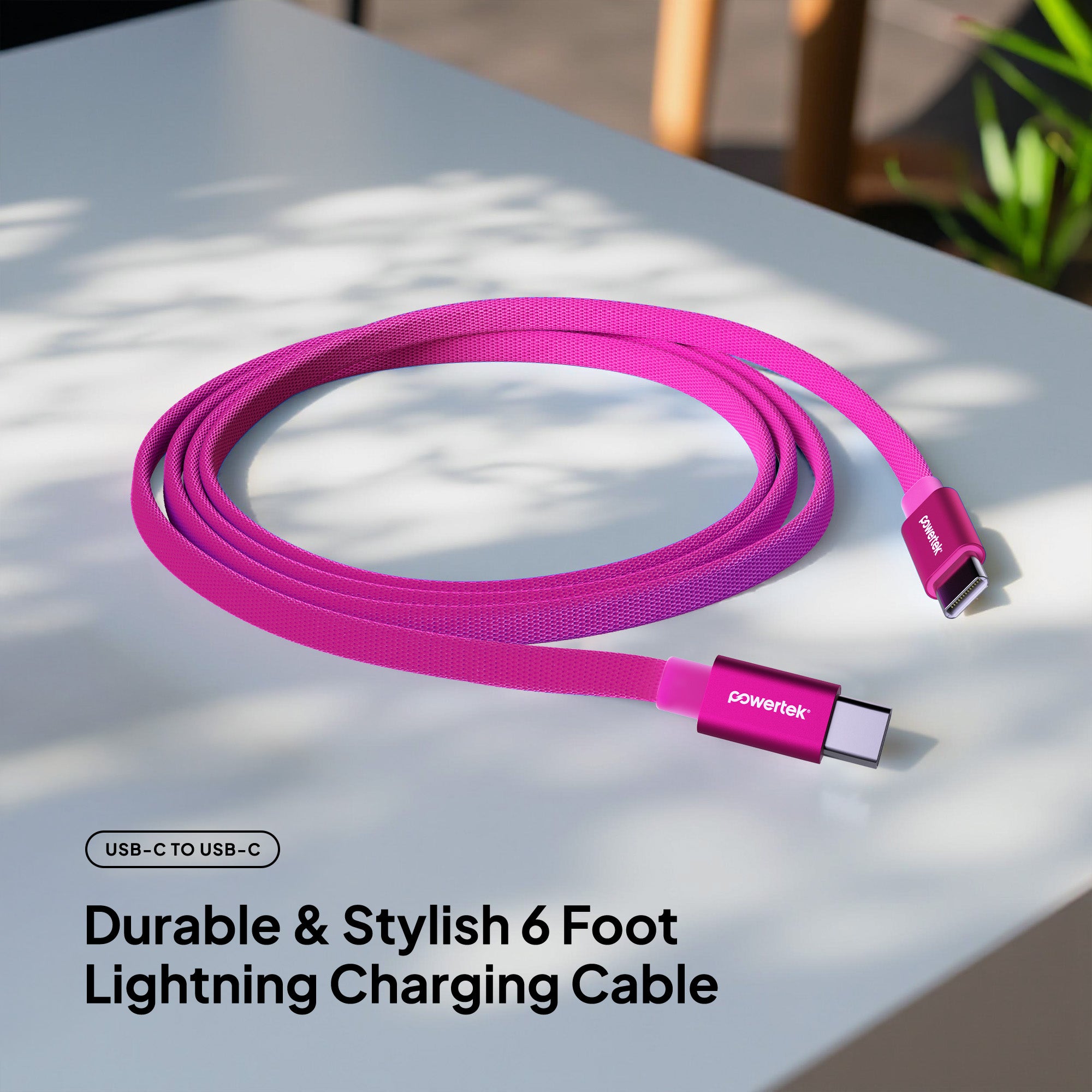 Powertek Neon Two-Tone 6ft USB-C to USB-C Charging Cable