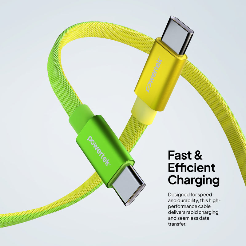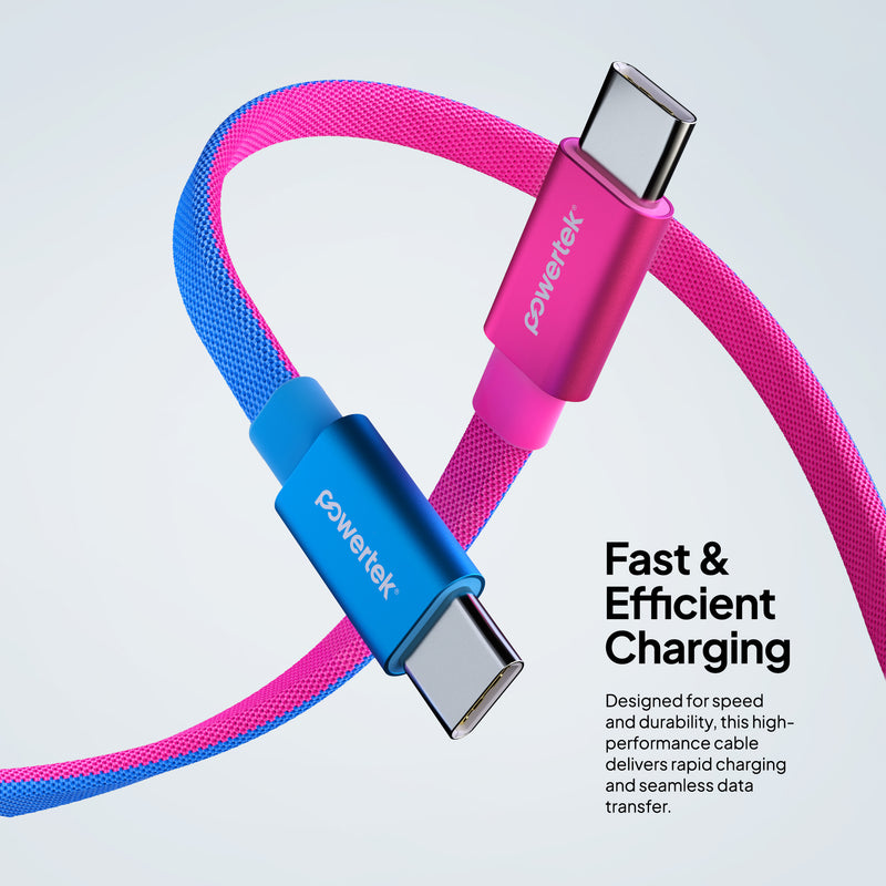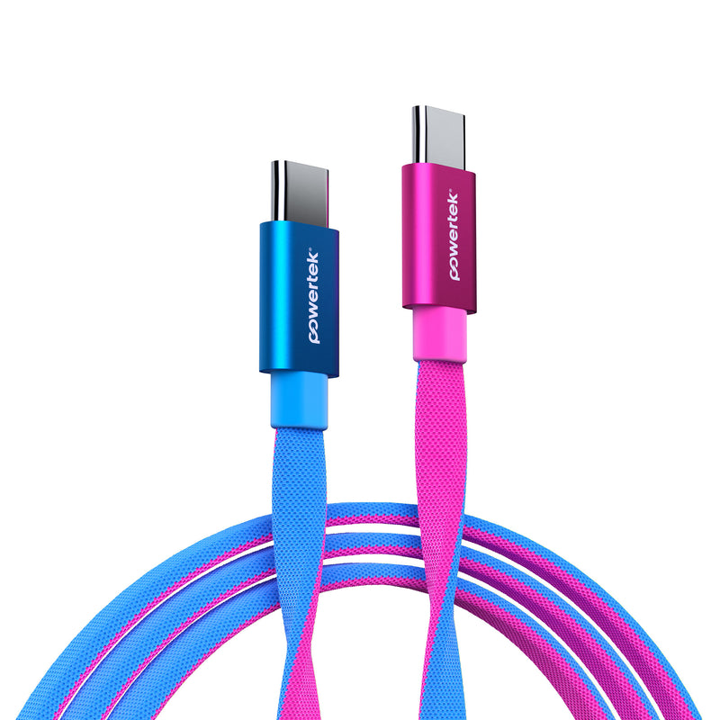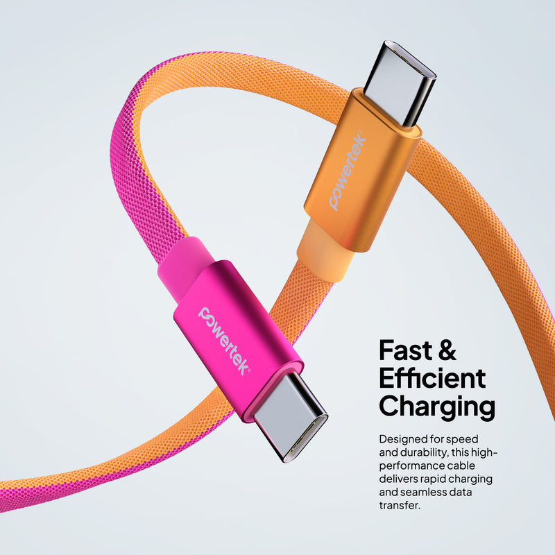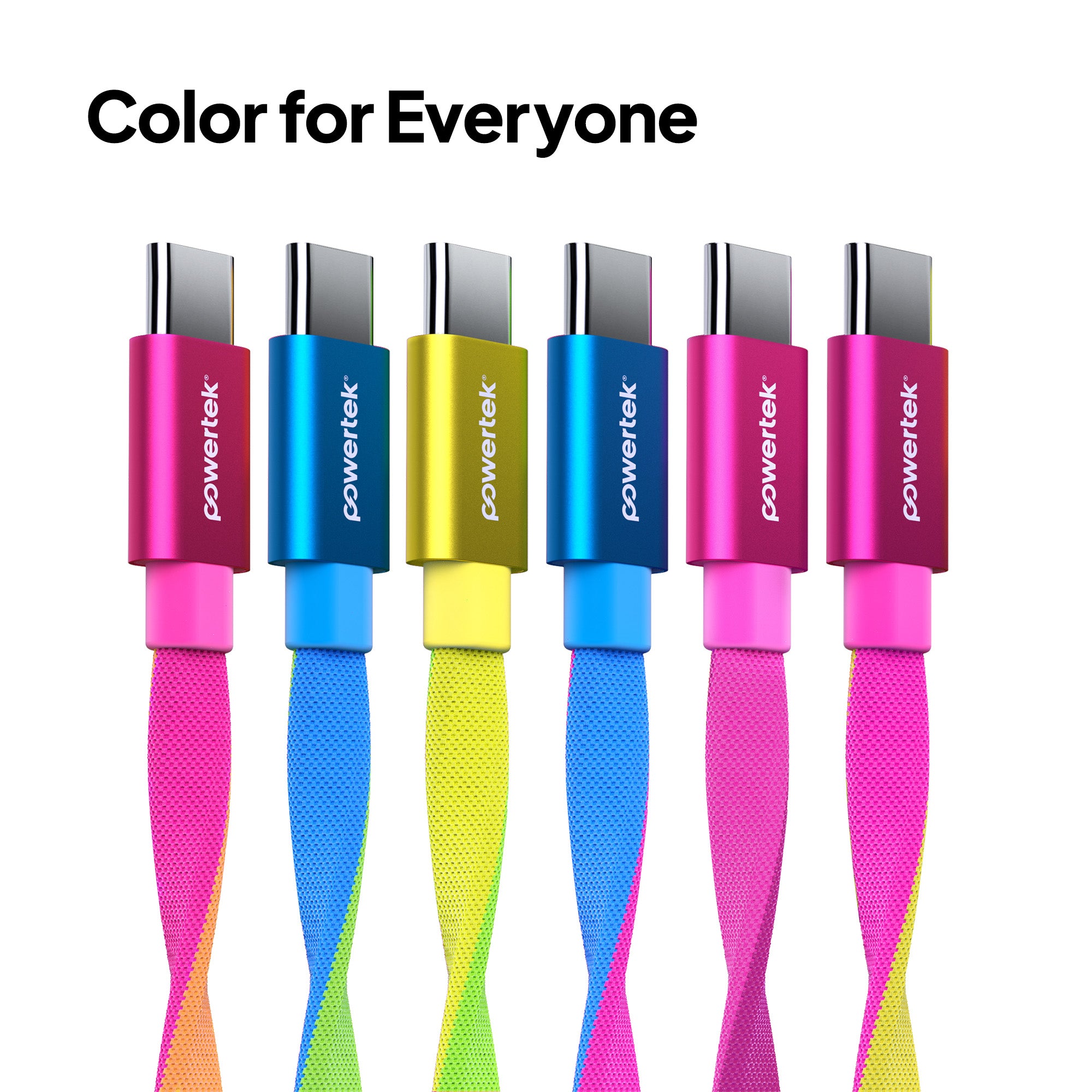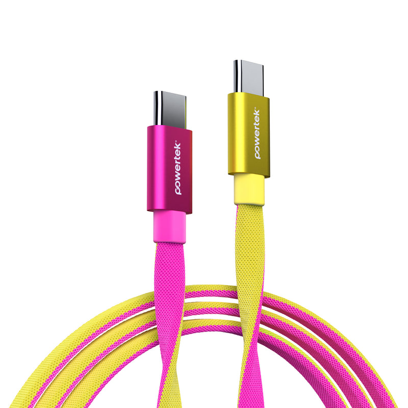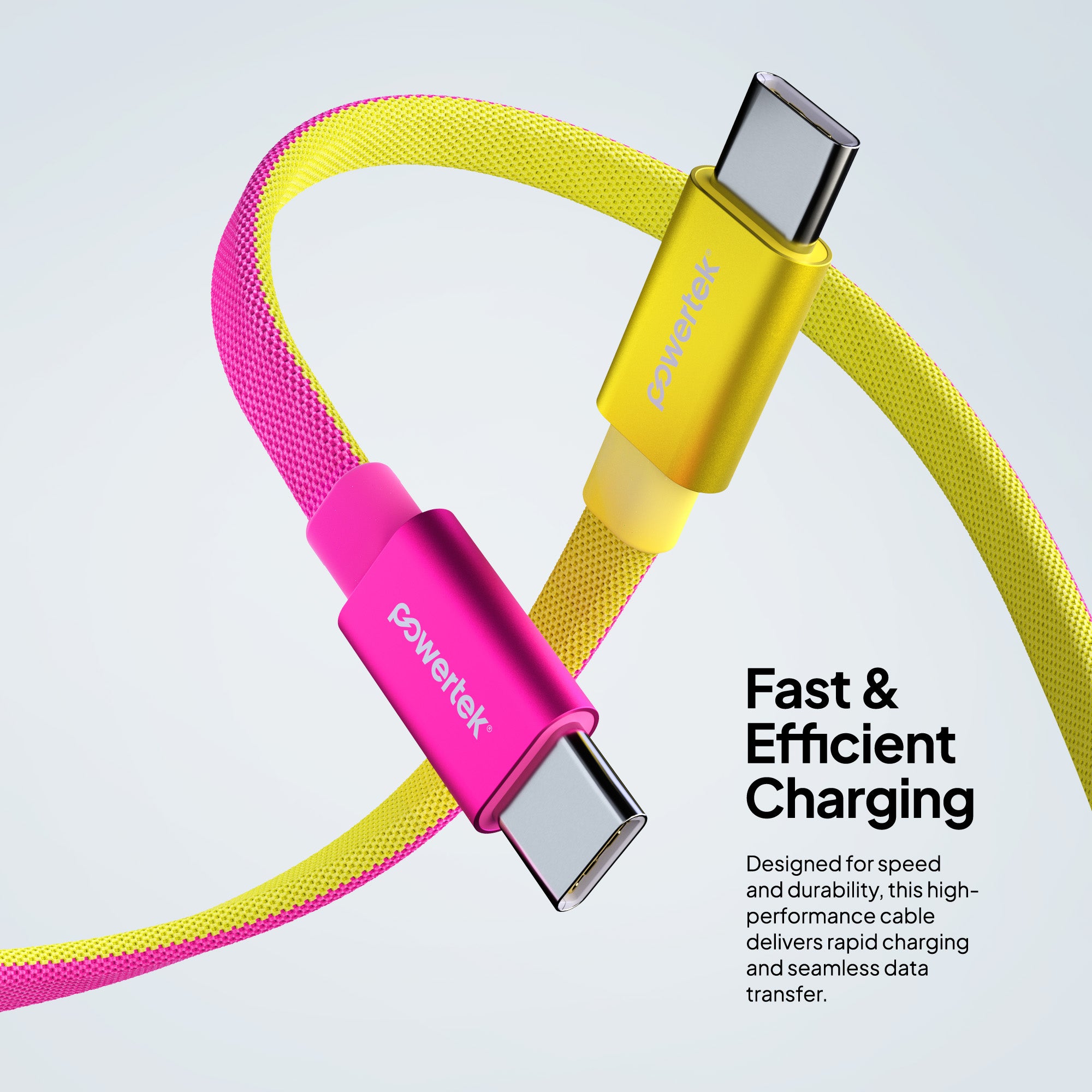 Upgrade your everyday charging experience with the Powertek Neon Two-Tone USB-C to USB-C cable. Built for long-lasting performance, this premium 6-foot cable features a durable braided nylon design and high-quality USB-C chips for reliable, fast charging every time. Available in six stylish colors, so you can pick the perfect match for your phone case or personal style.