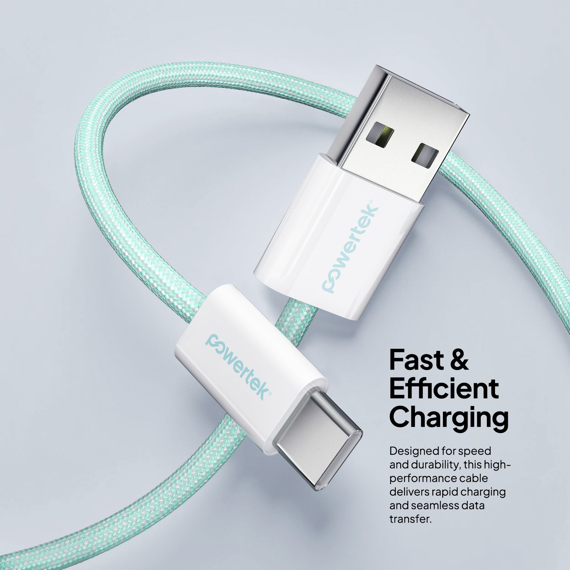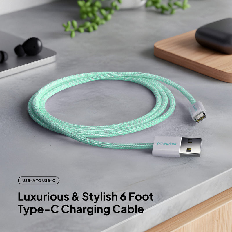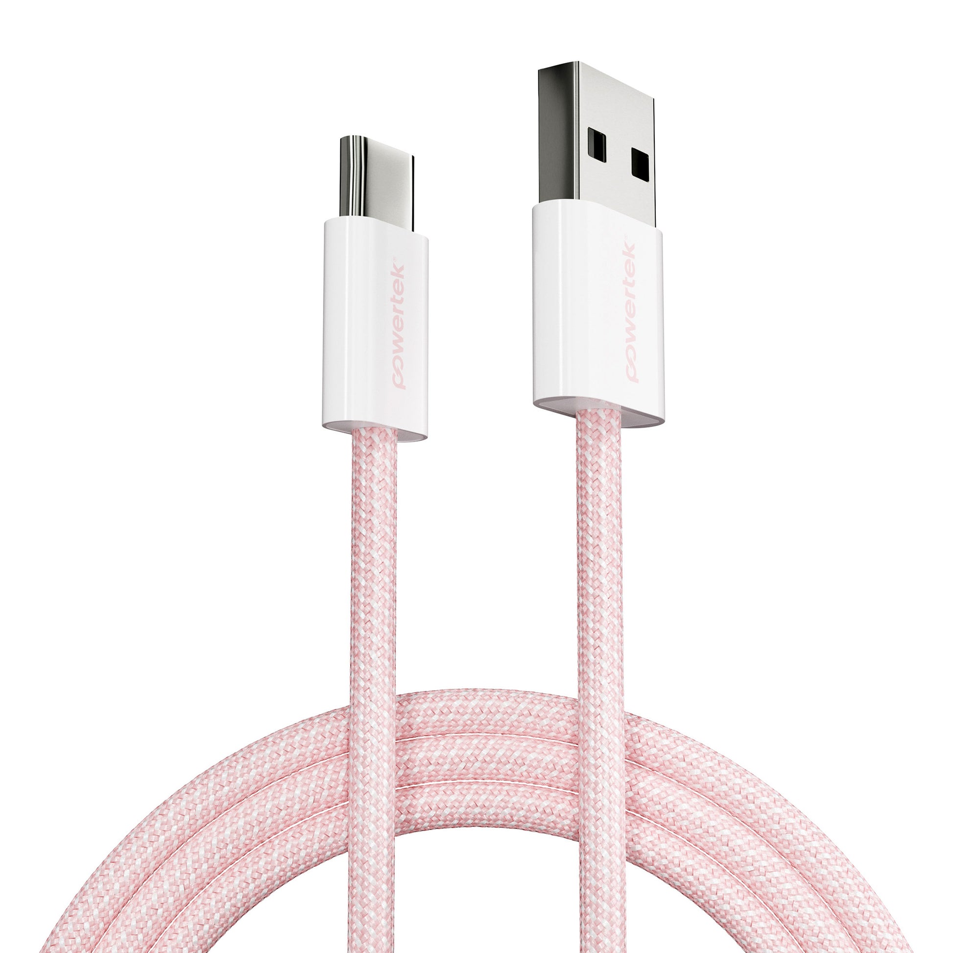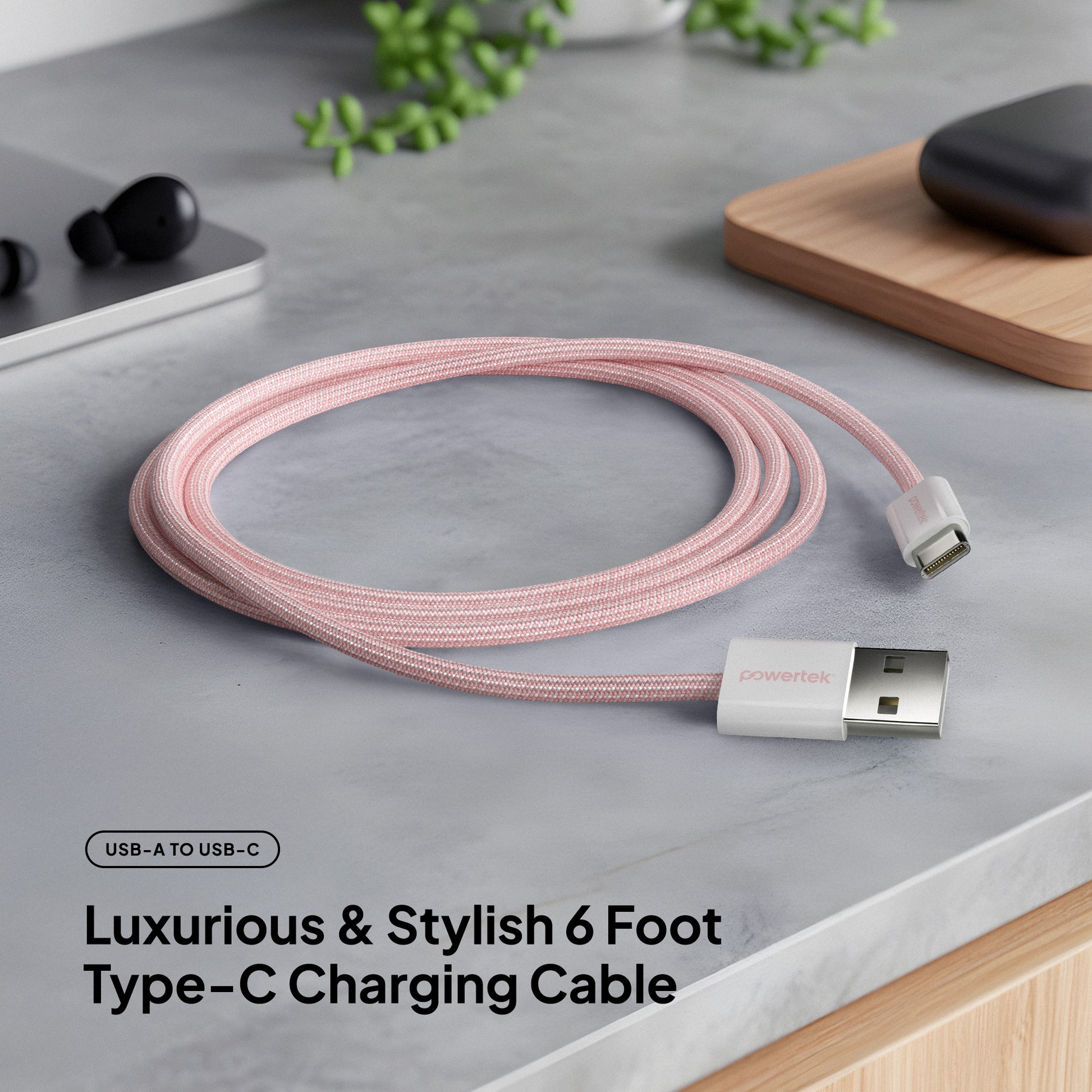 Powertek Pastel Braided 6ft USB-A to USB-C Charging Cable