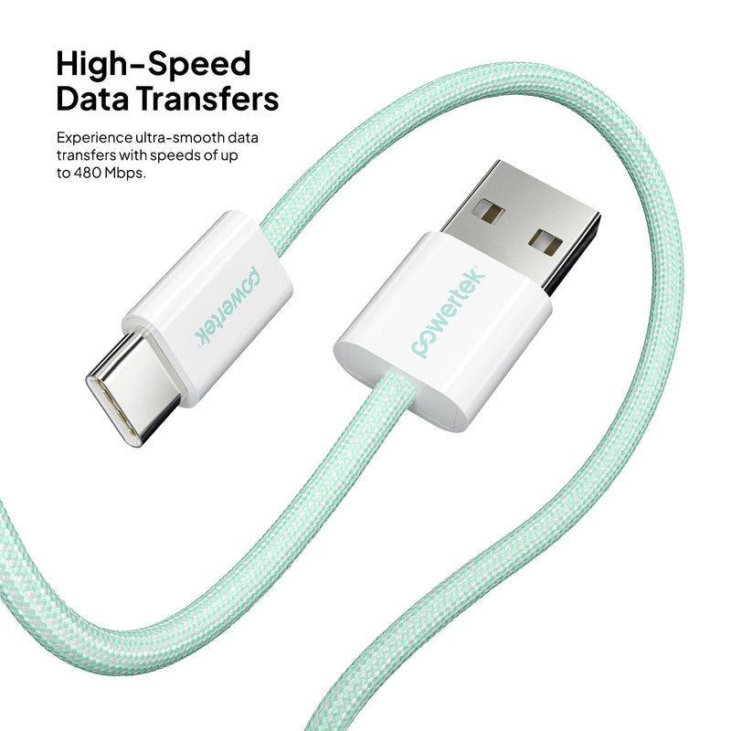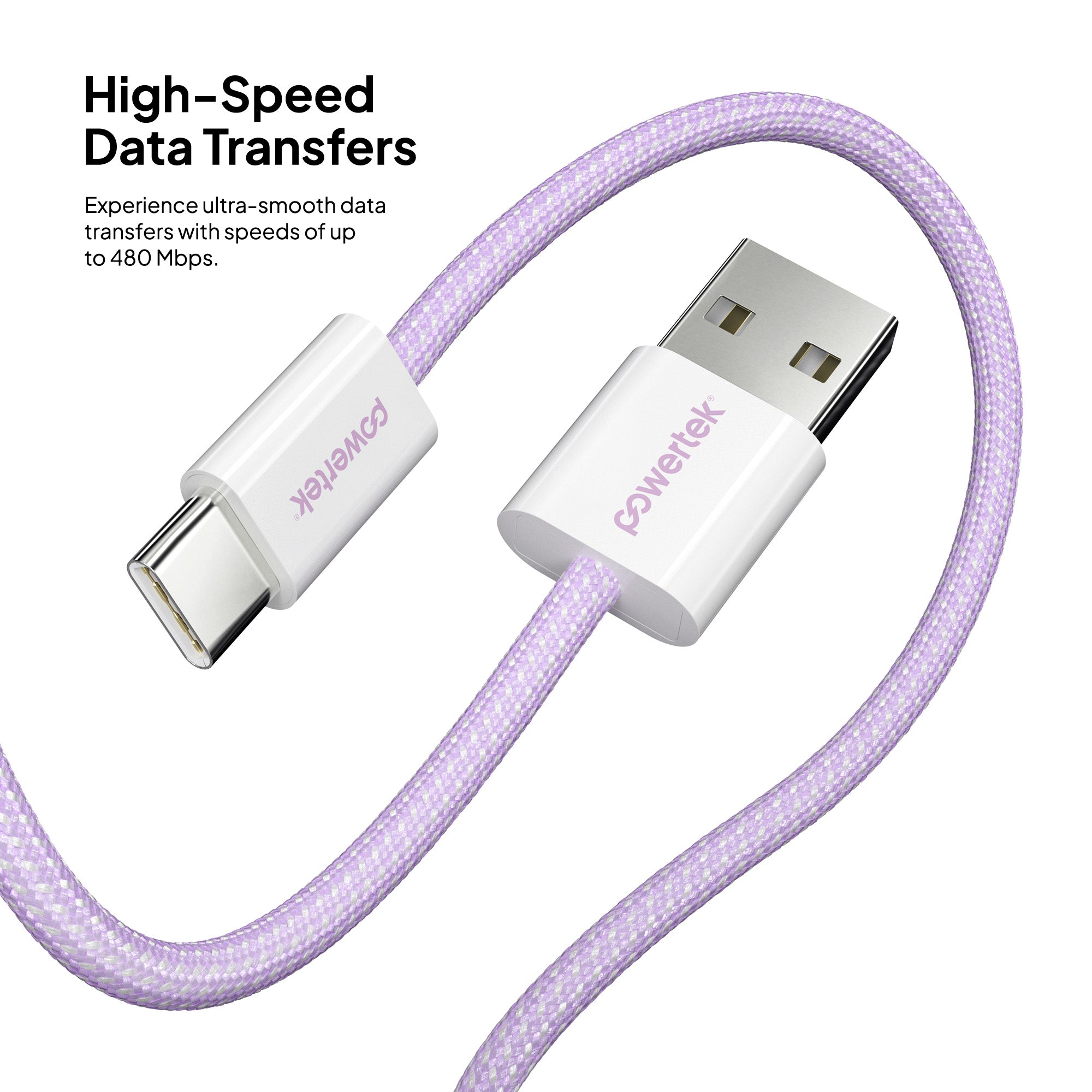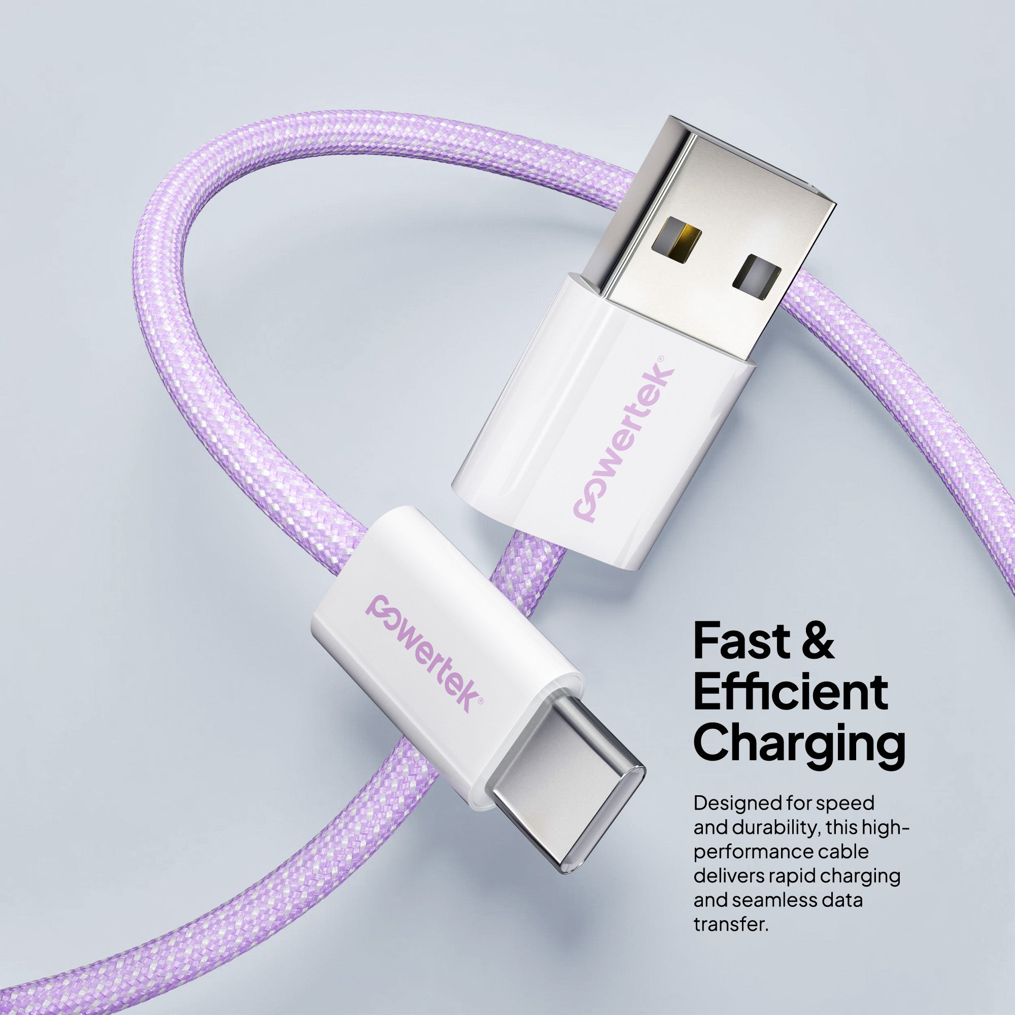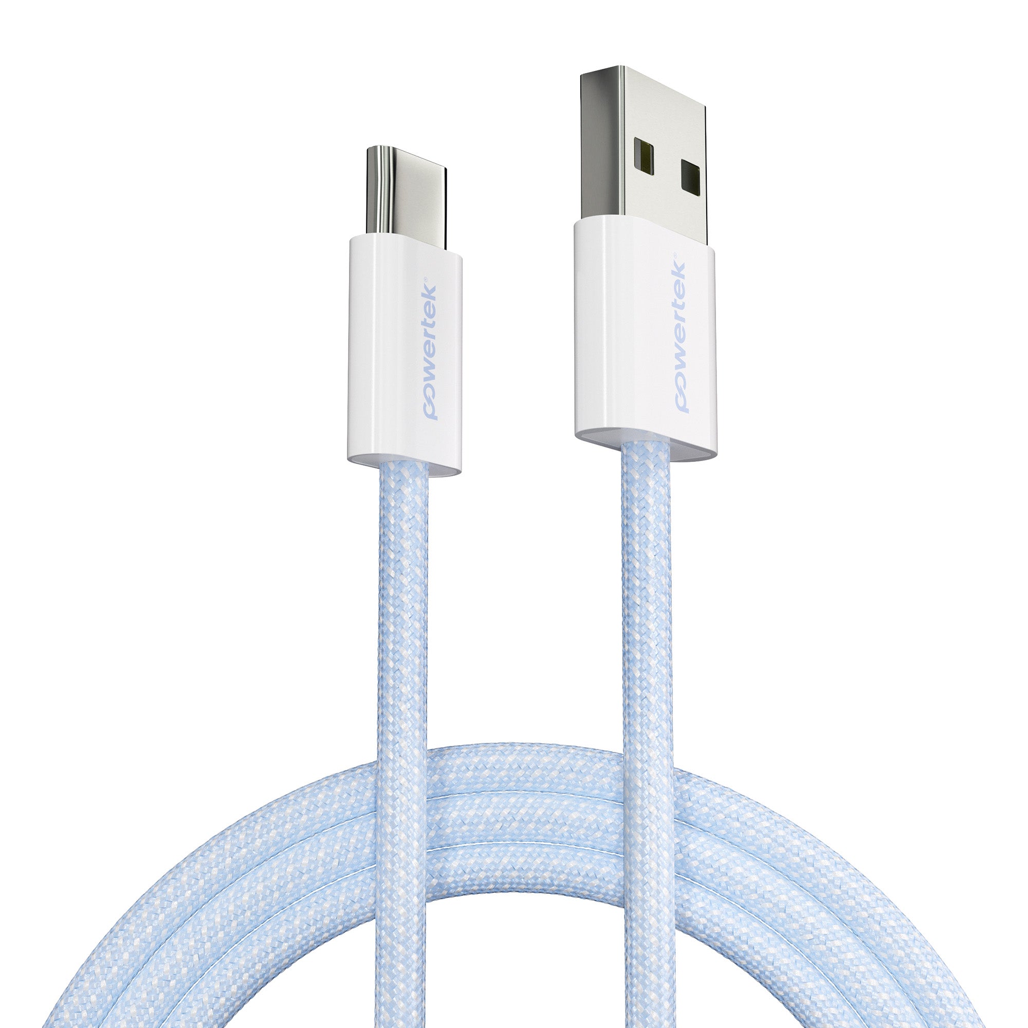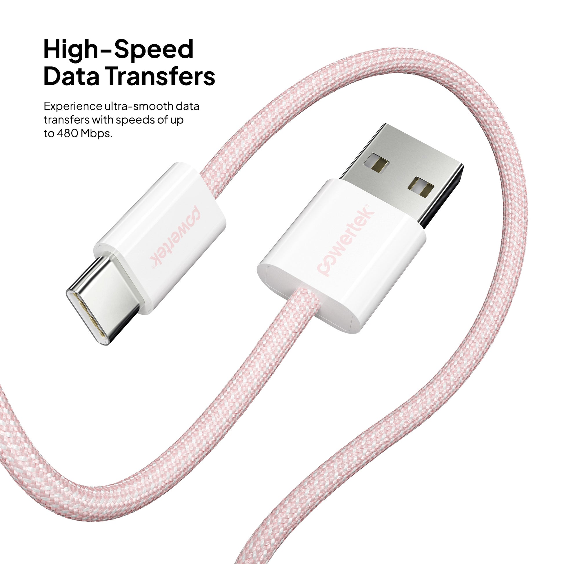 Powertek Pastel Braided 6ft USB-A to USB-C Charging Cable