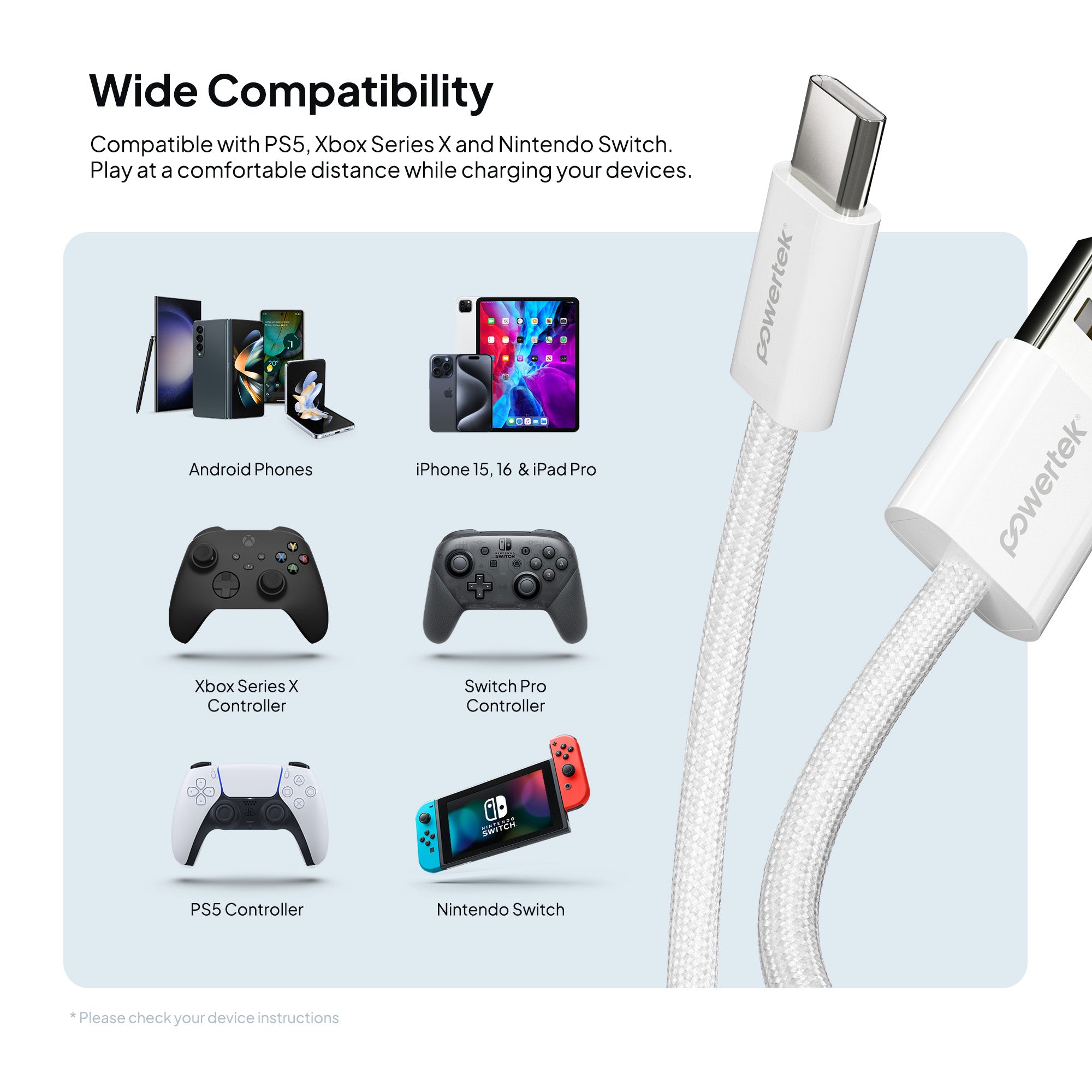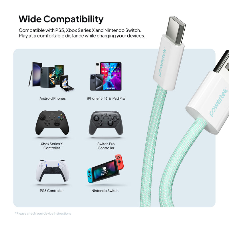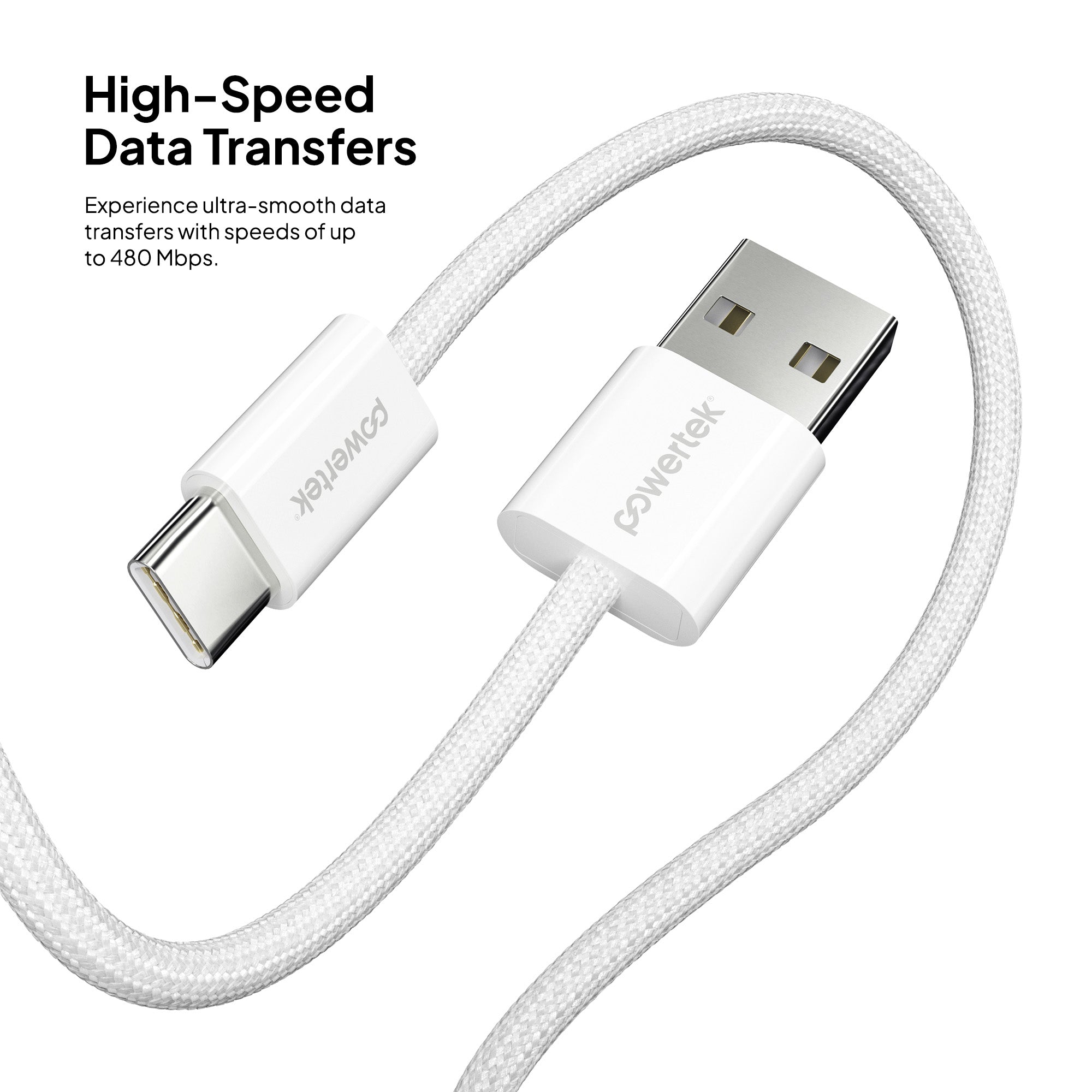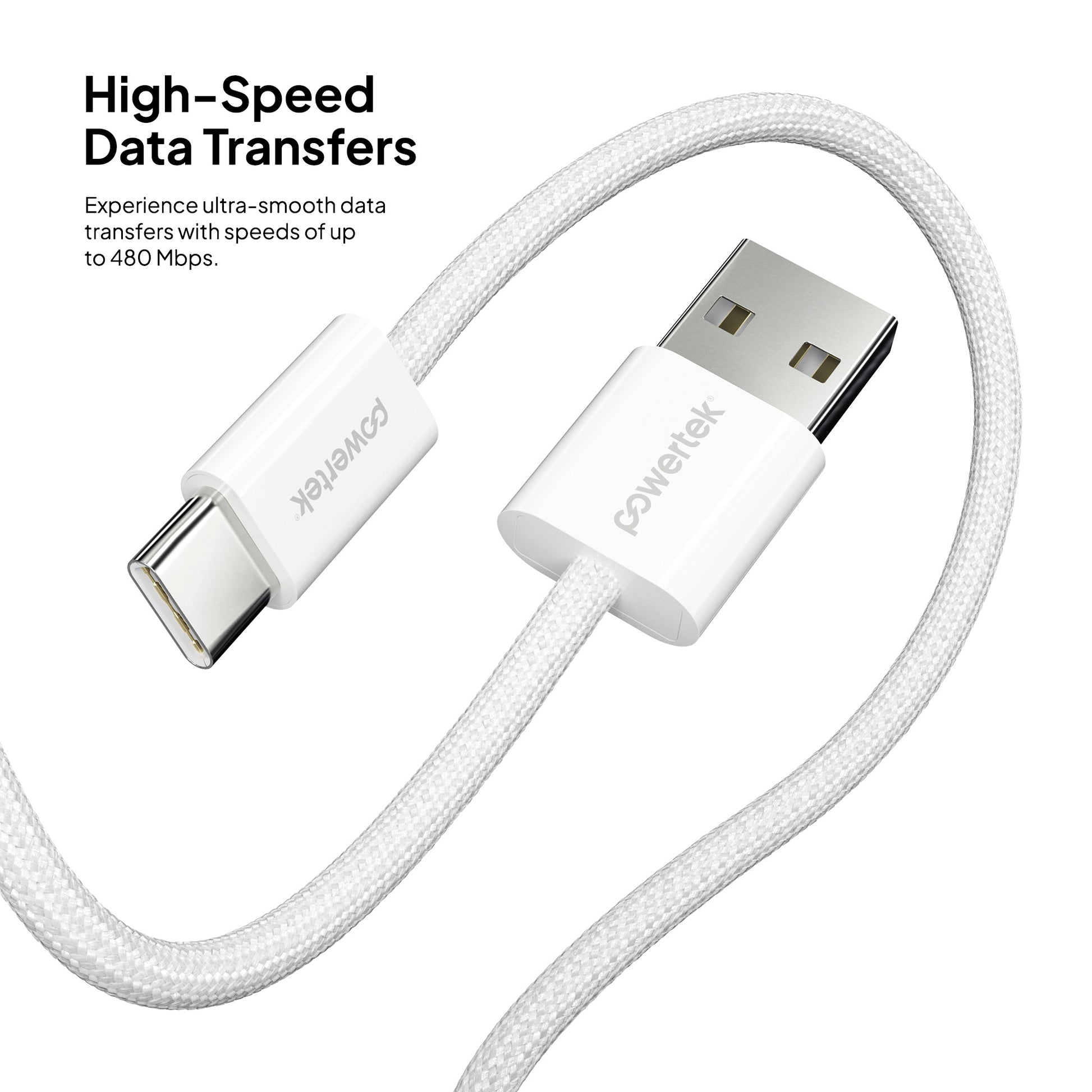 Compatible with smartphones, tablets, and laptops, this cable pairs seamlessly with the Powertek portable battery banks or wall block chargers for the ultimate charging setup.