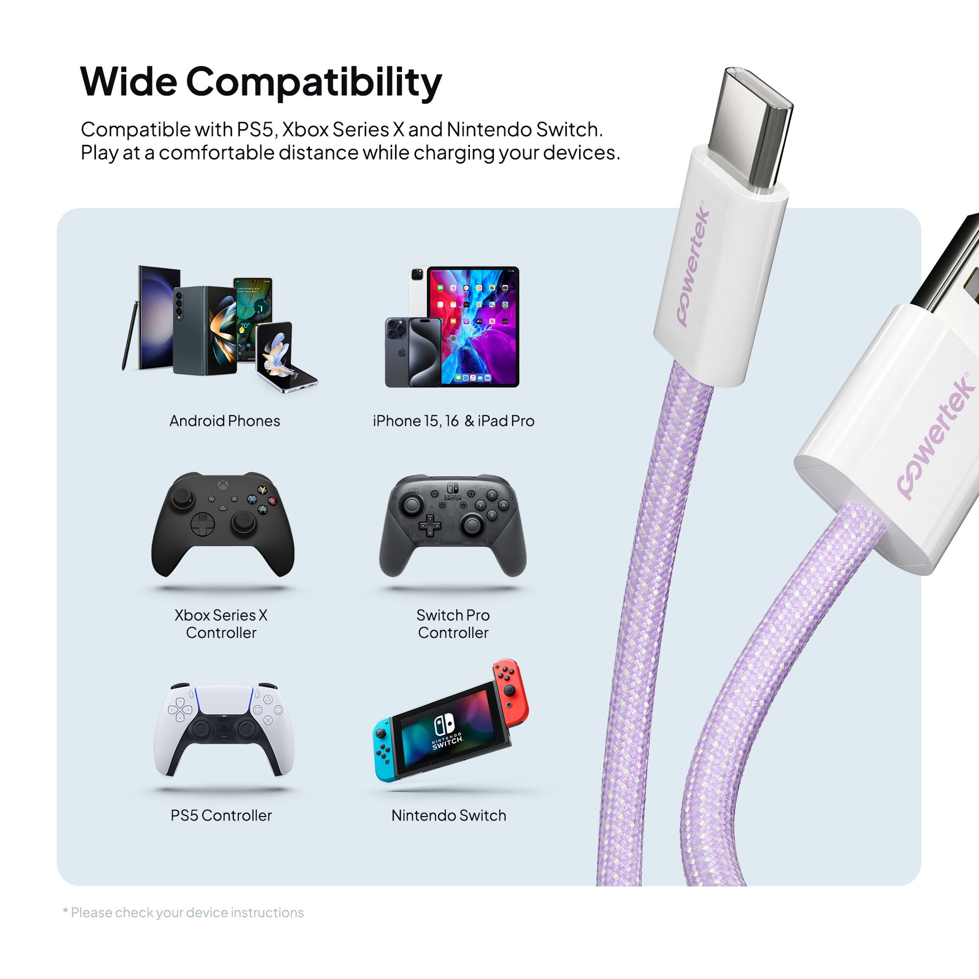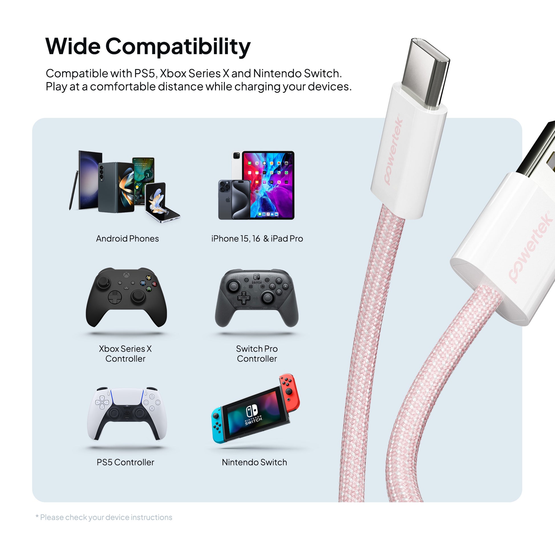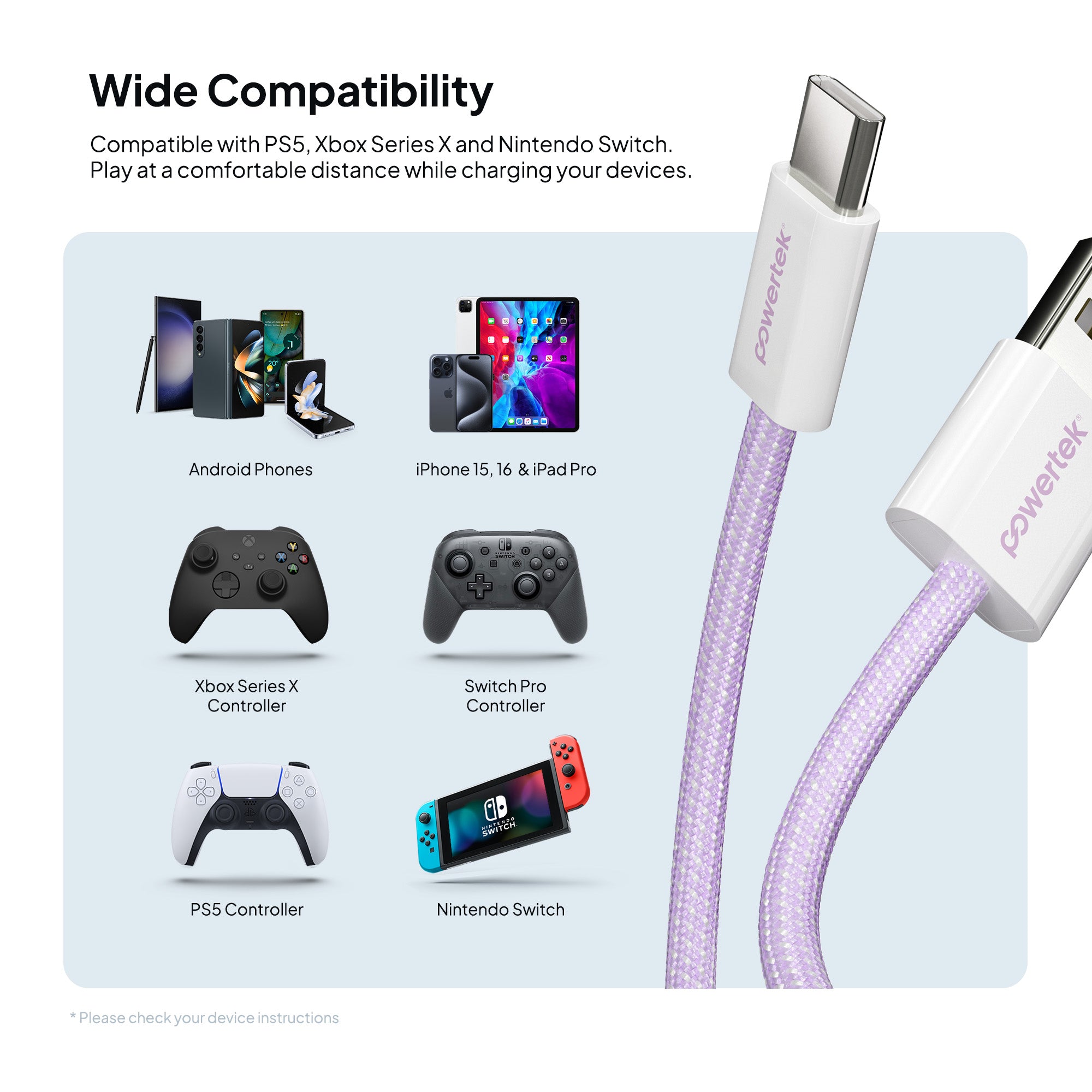Compatible with smartphones, tablets, and laptops, this cable pairs seamlessly with the Powertek portable battery banks or wall block chargers for the ultimate charging setup.
