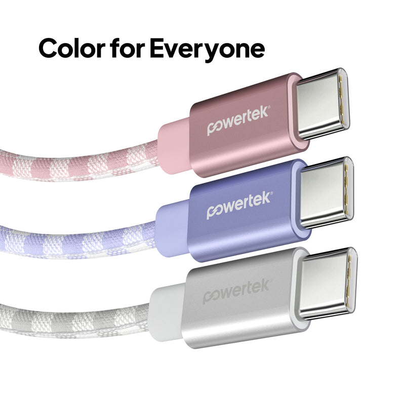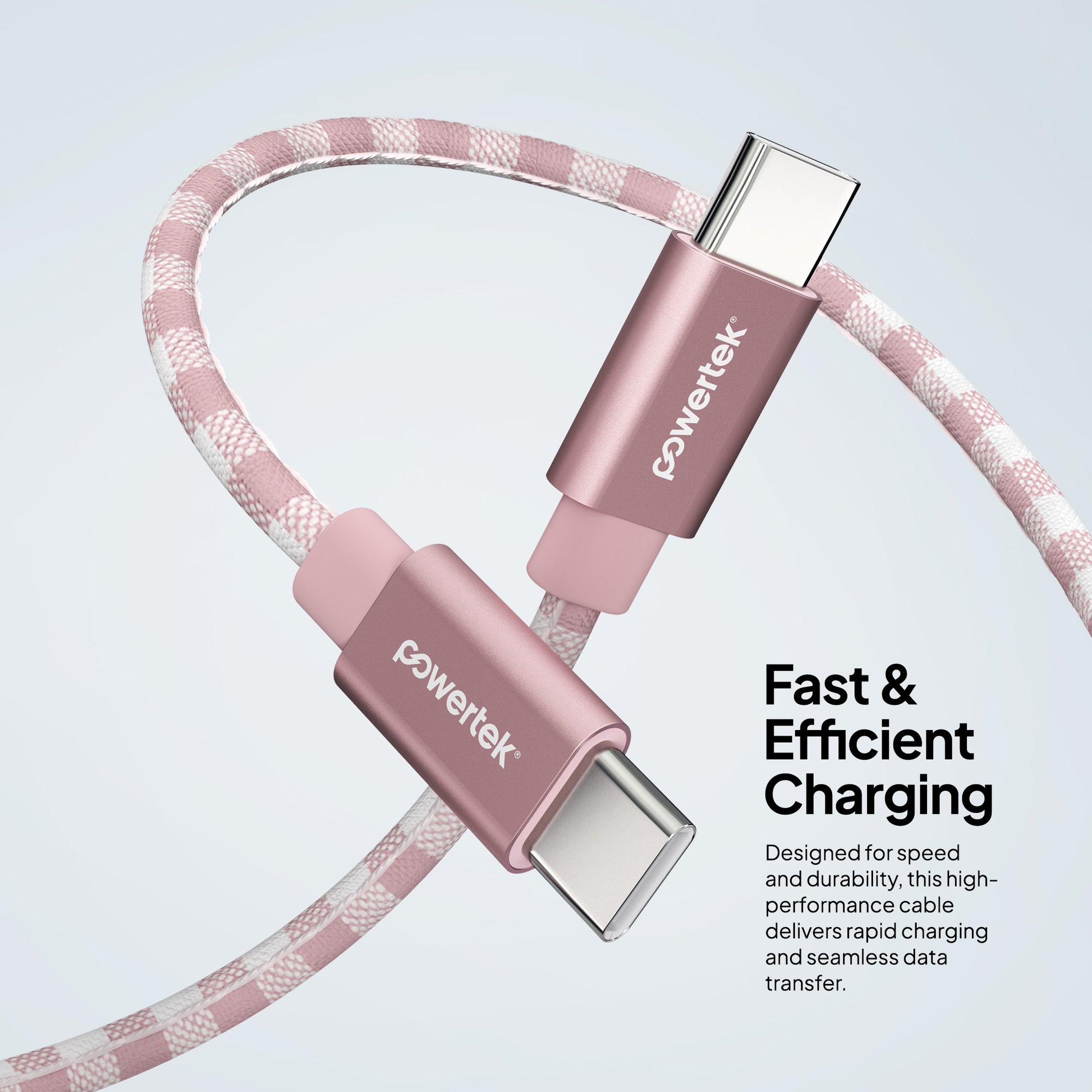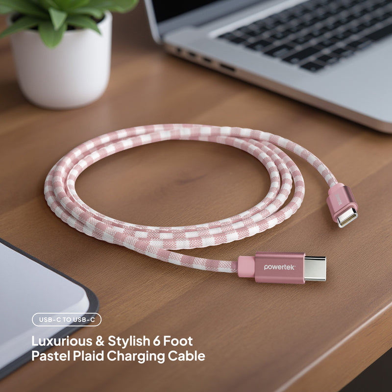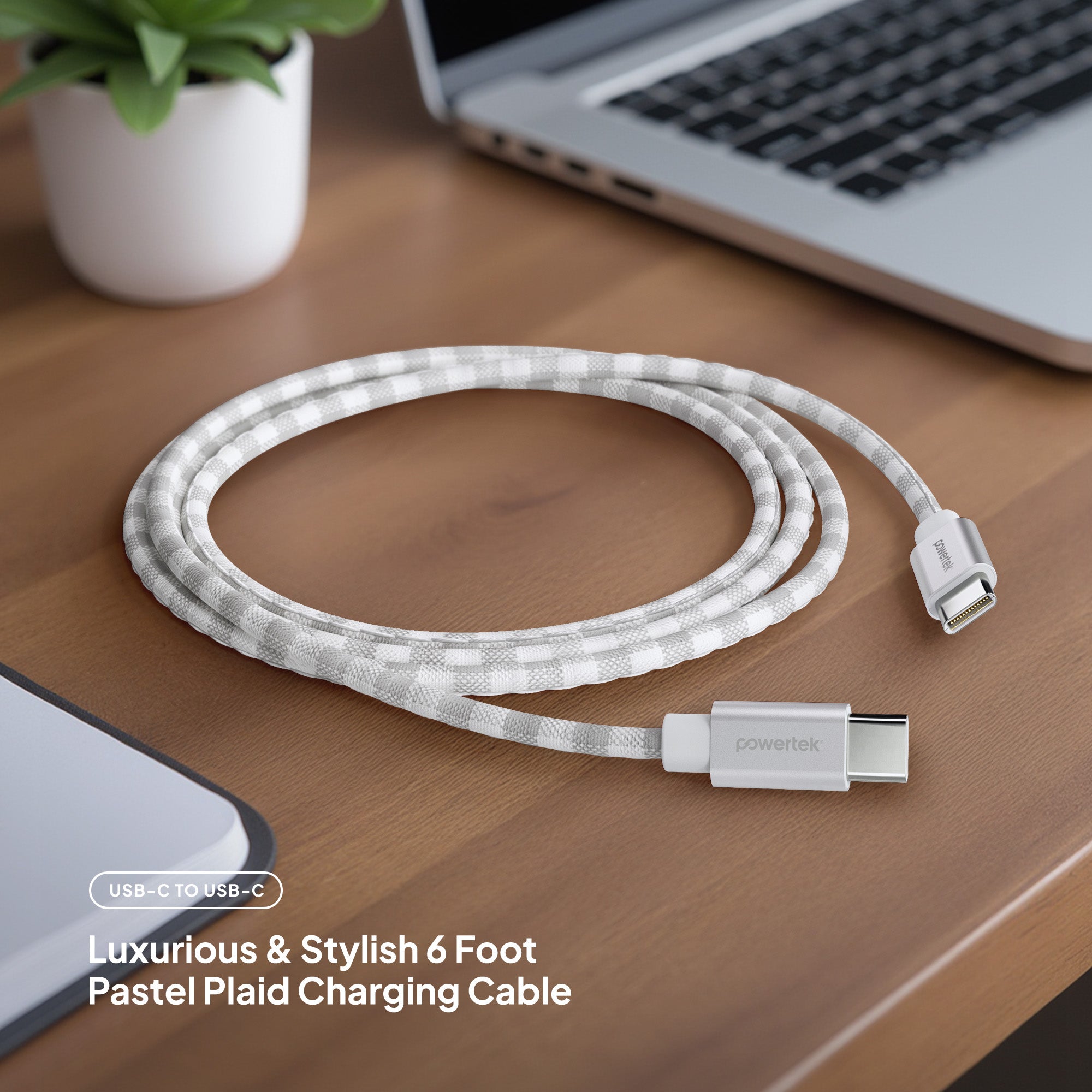 Powertek Pastel Plaid USB-C to USB-C Charging Cable (6ft)