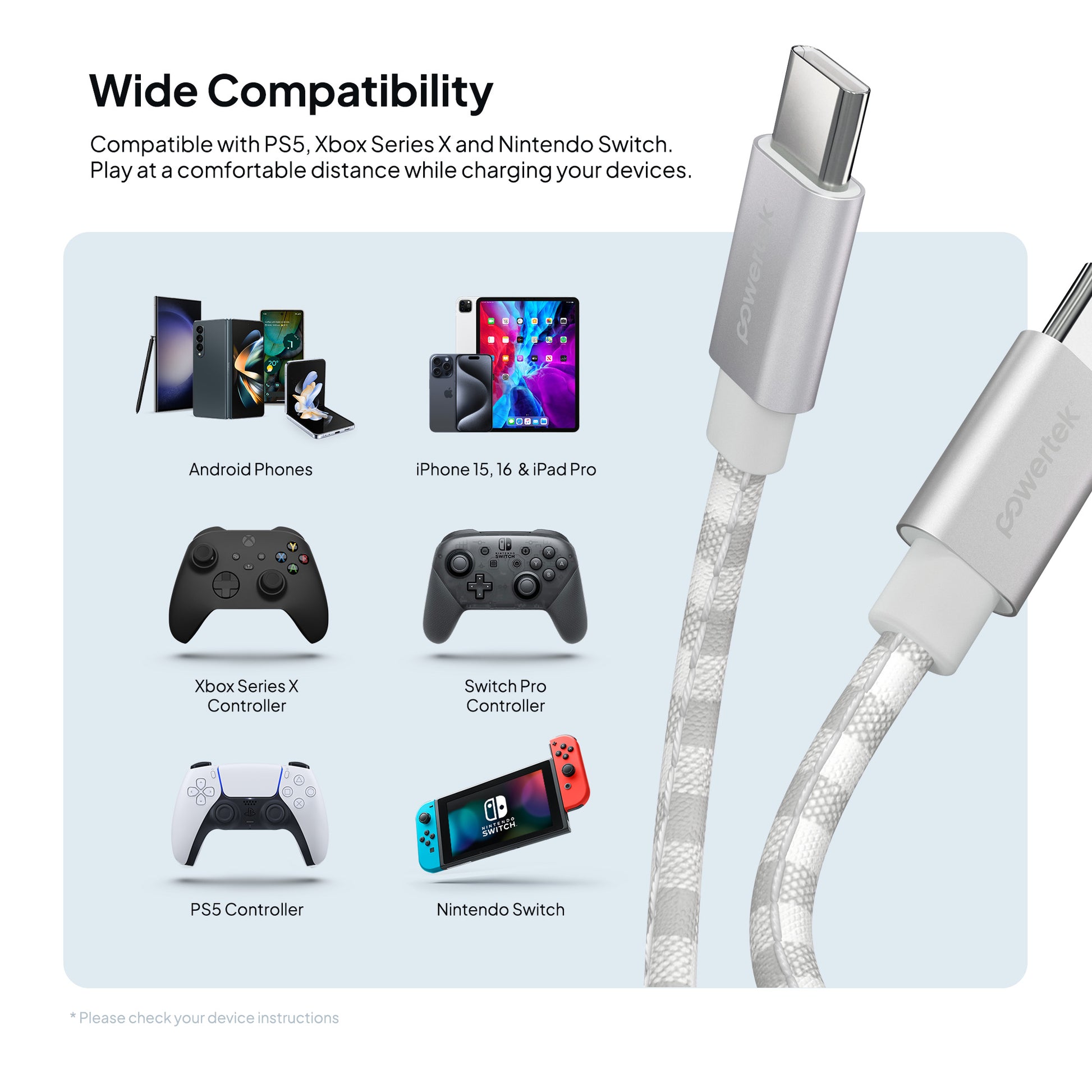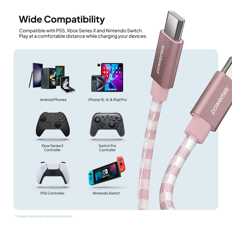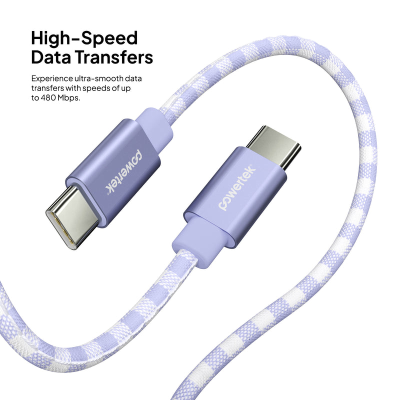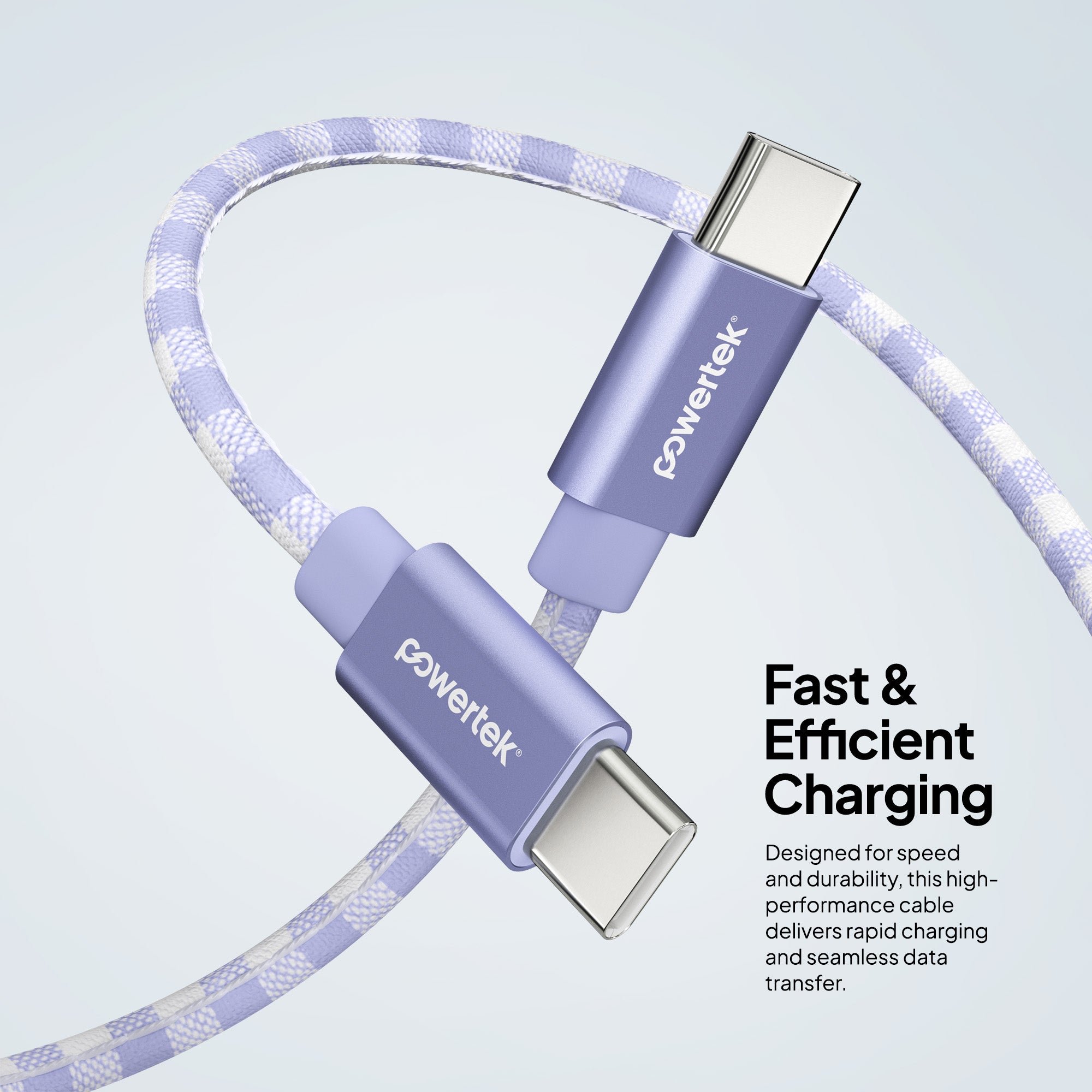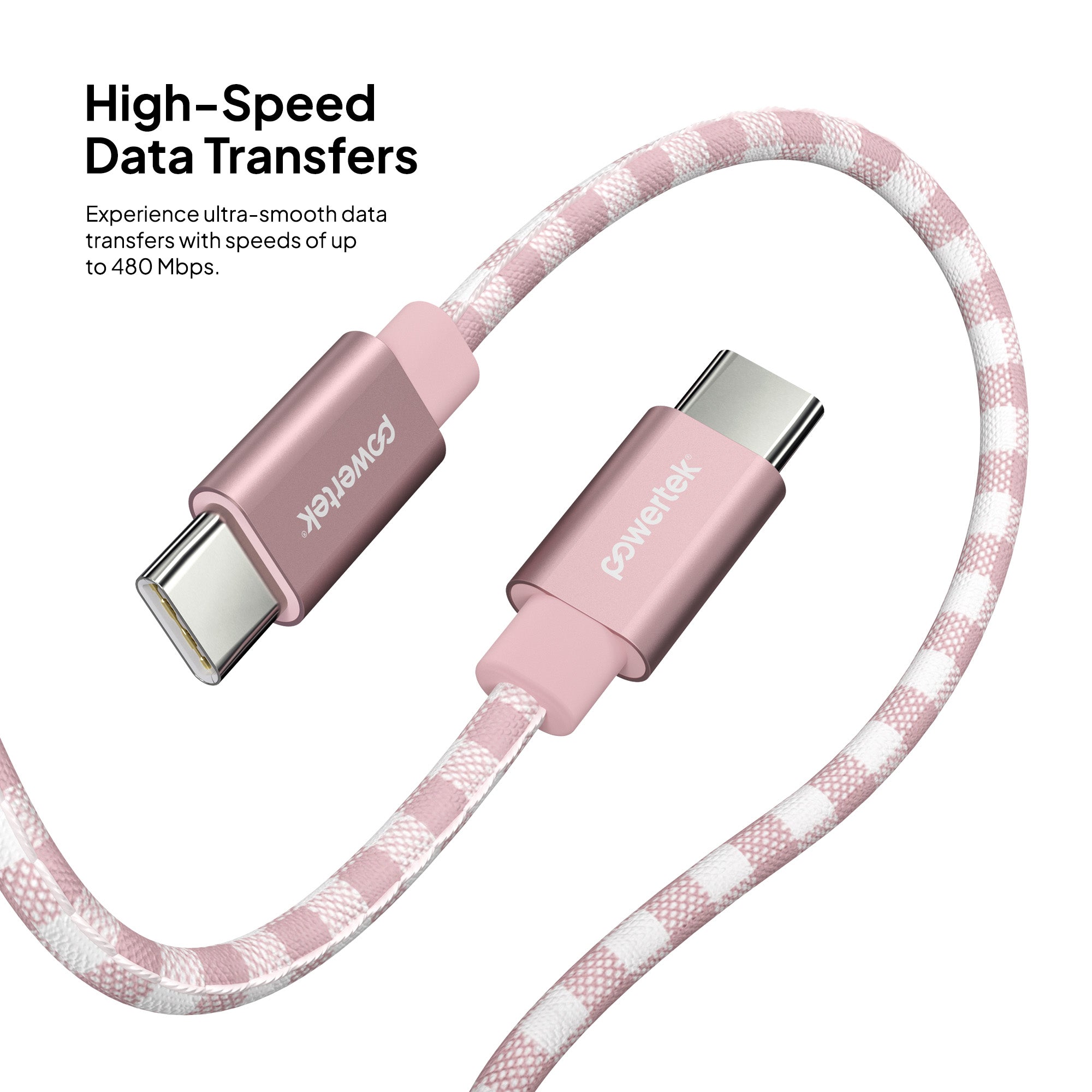 Powertek Pastel Plaid USB-C to USB-C Charging Cable (6ft)