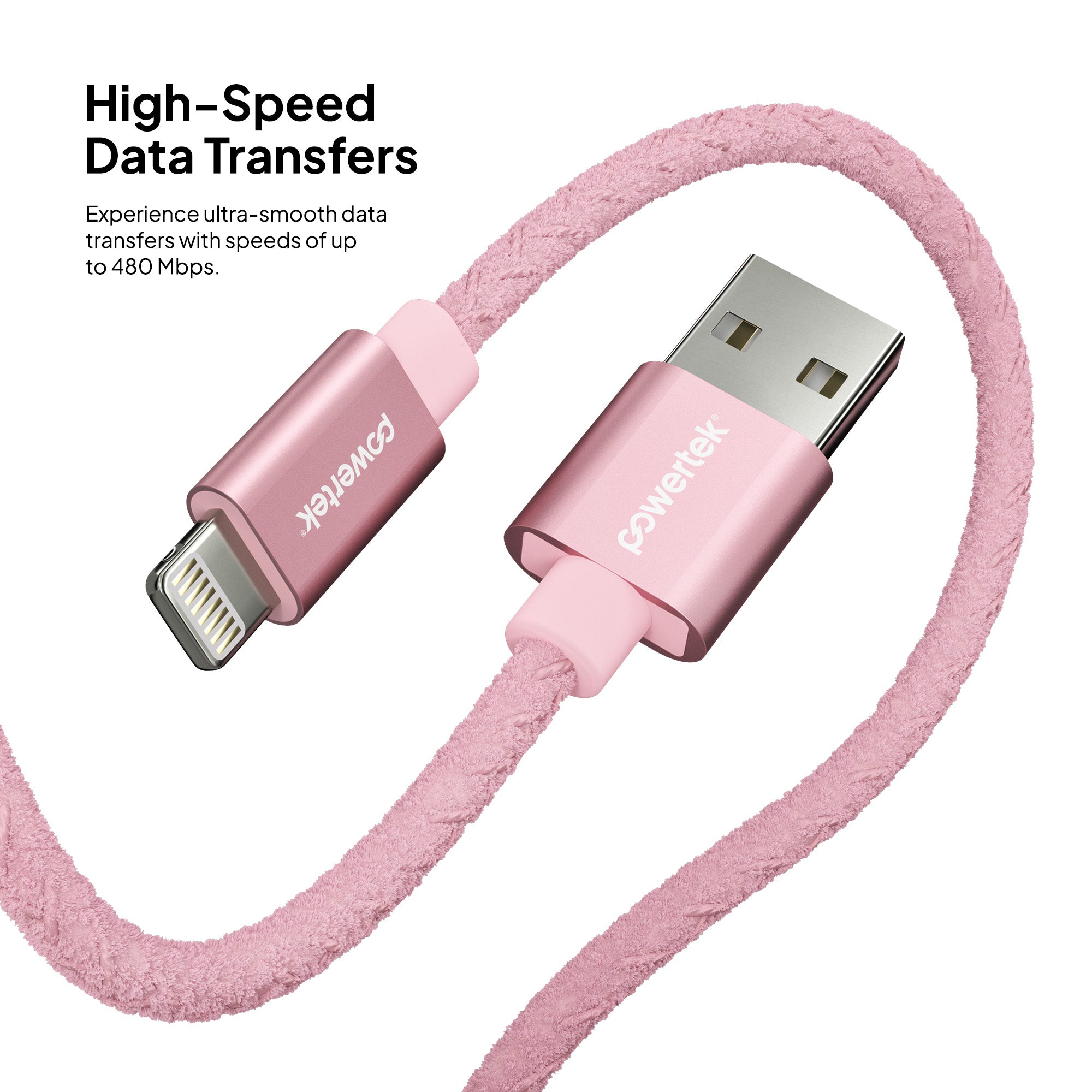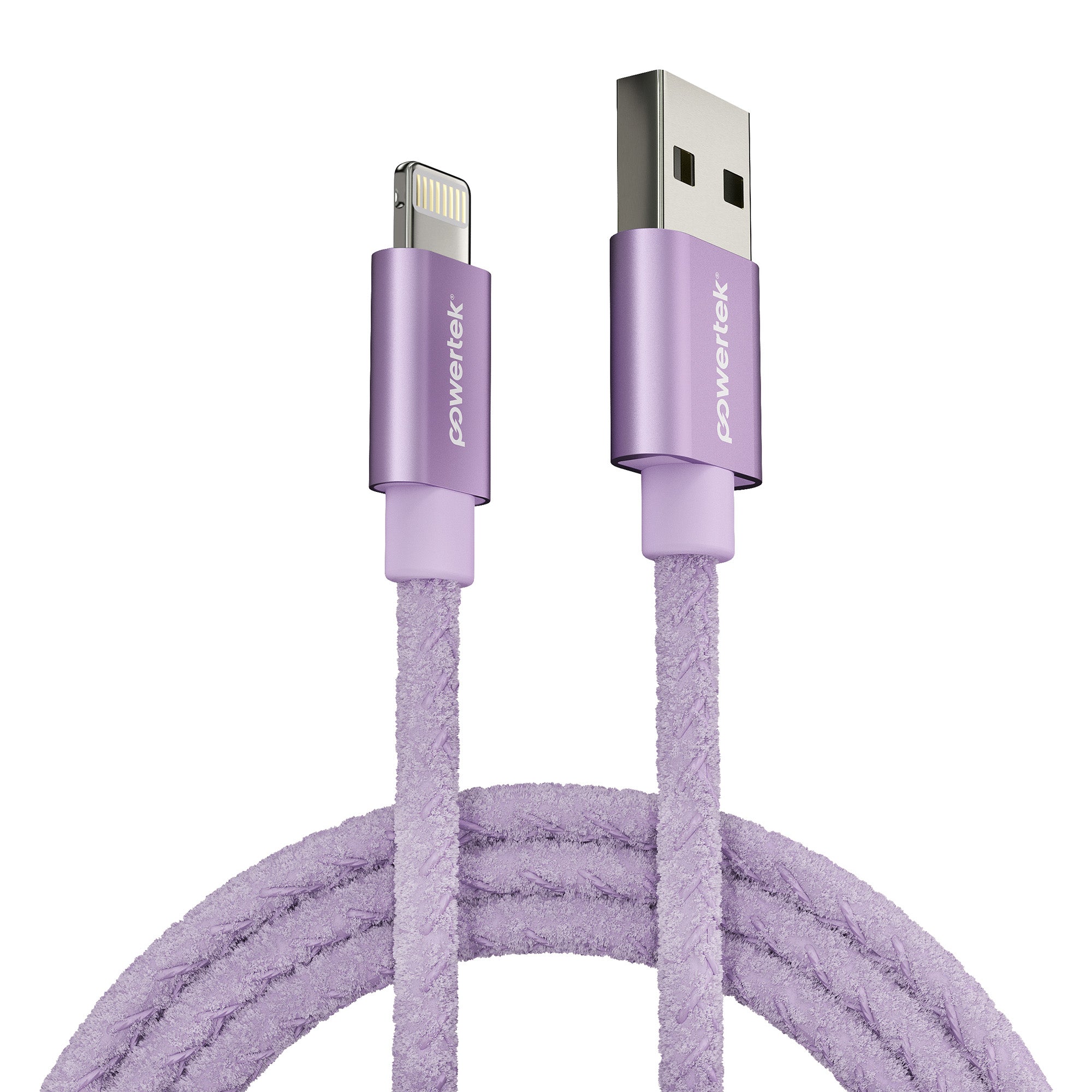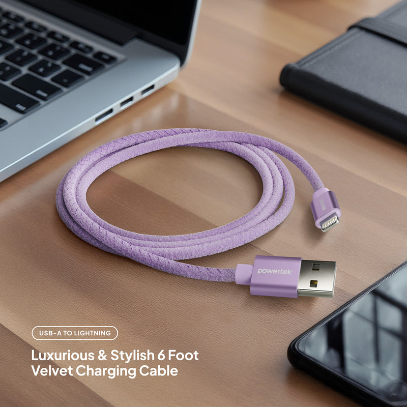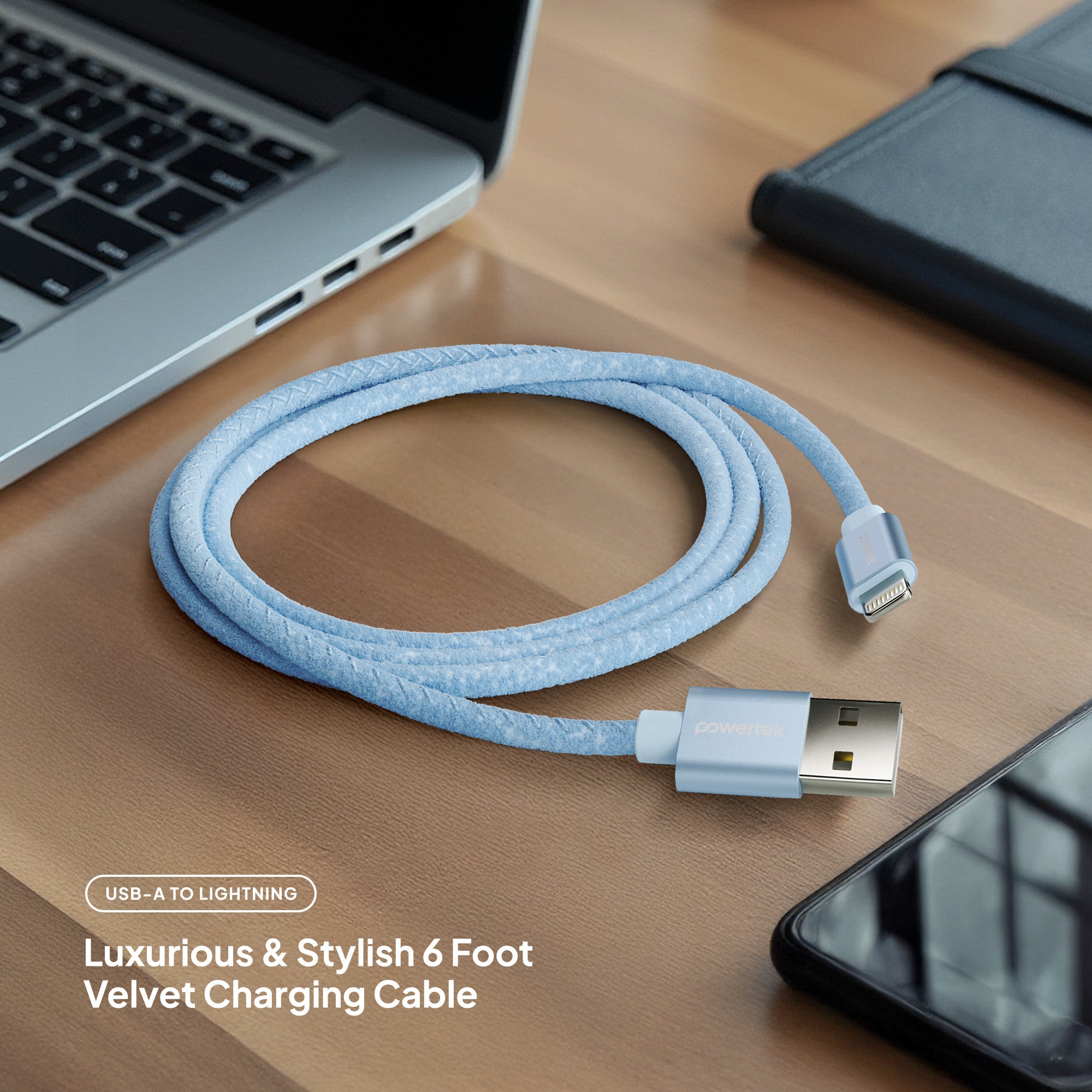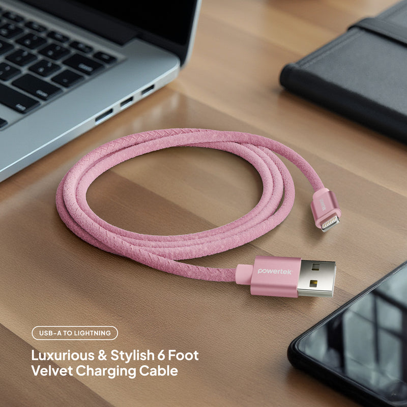 Powertek Pastel Velvet 6ft USB-A to Lightning Charging Cable
