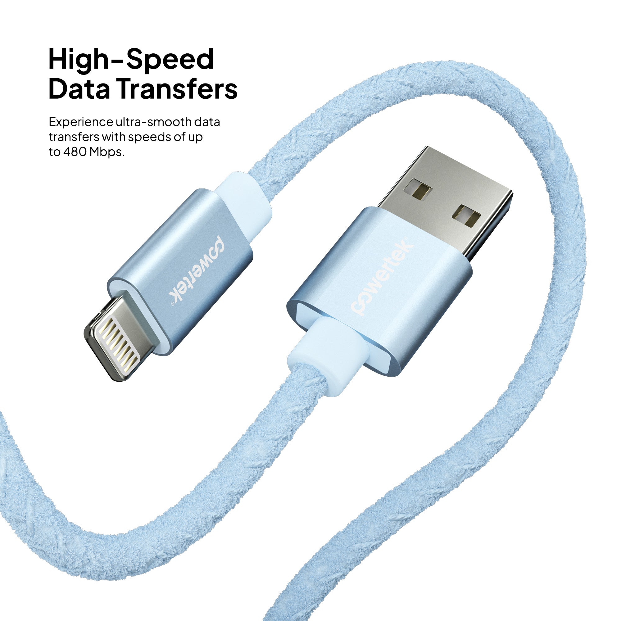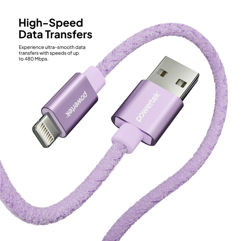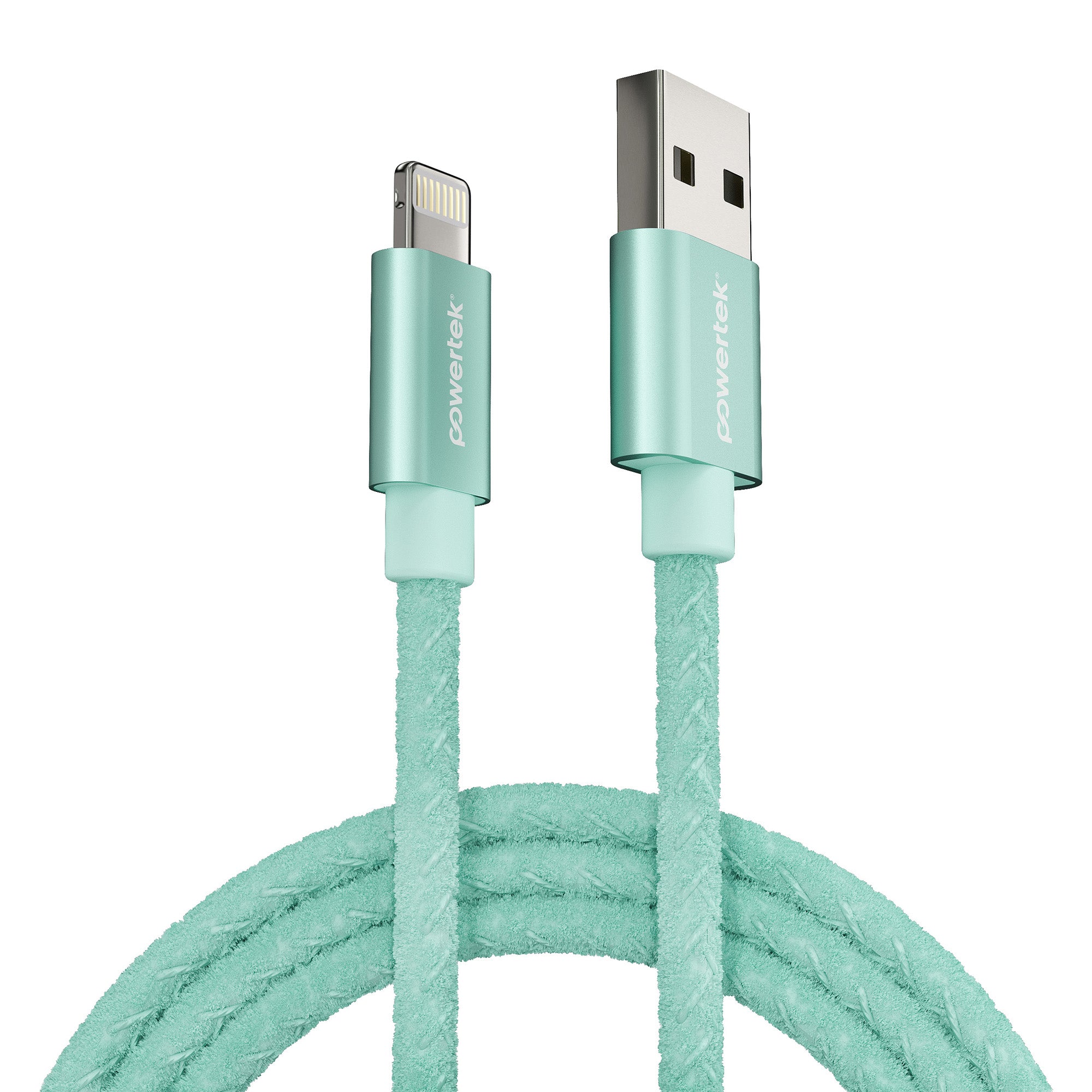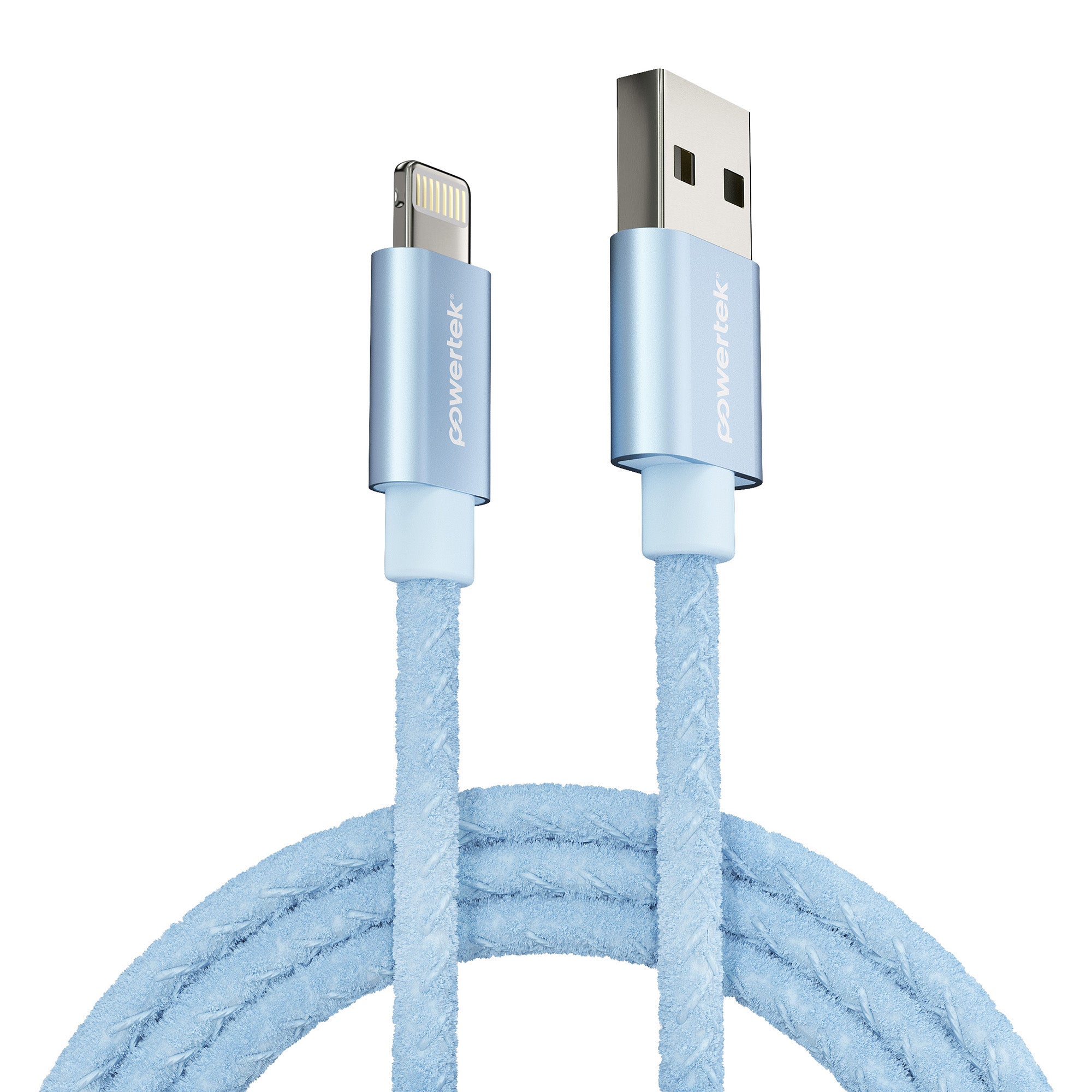 Powertek Pastel Velvet 6ft USB-A to Lightning Charging Cable