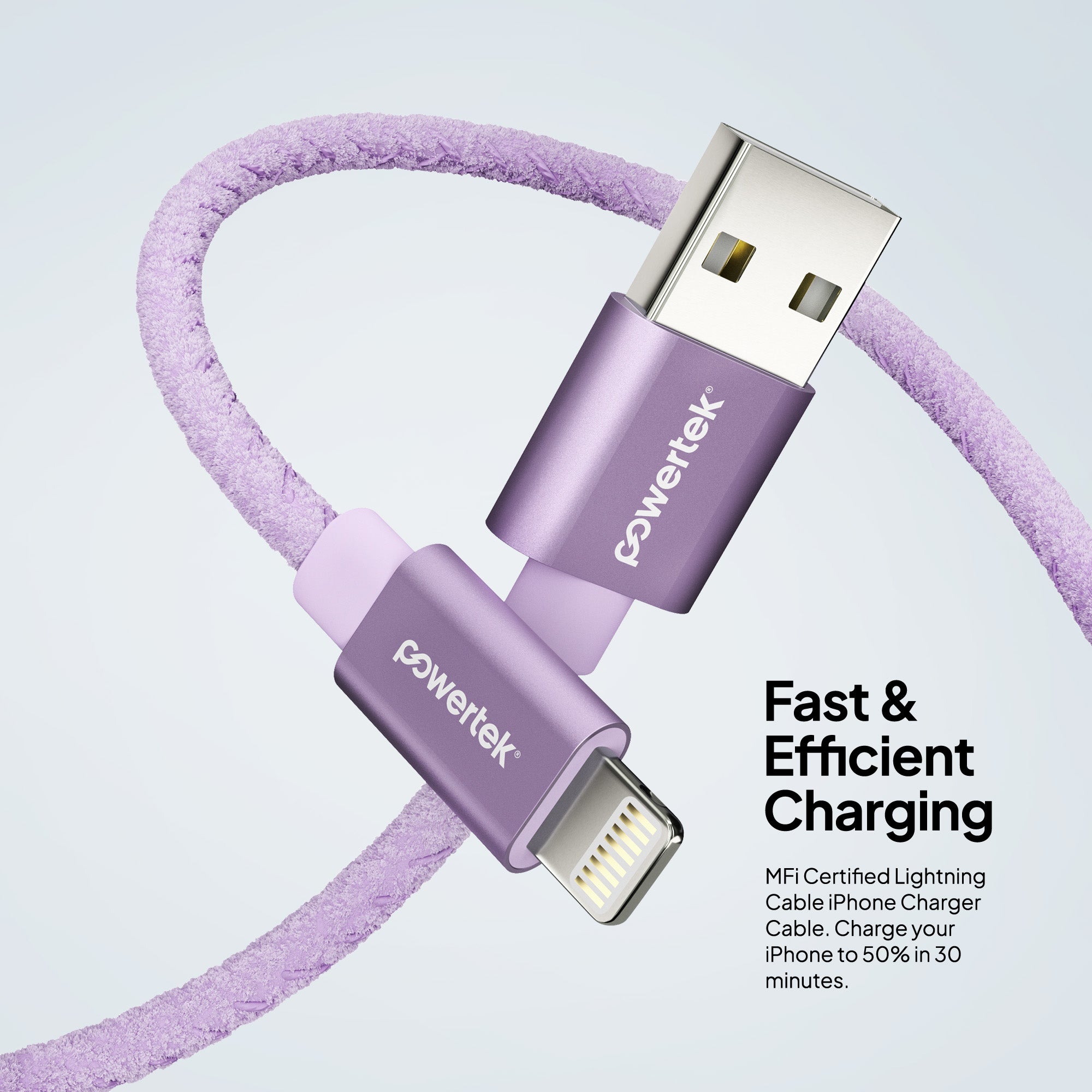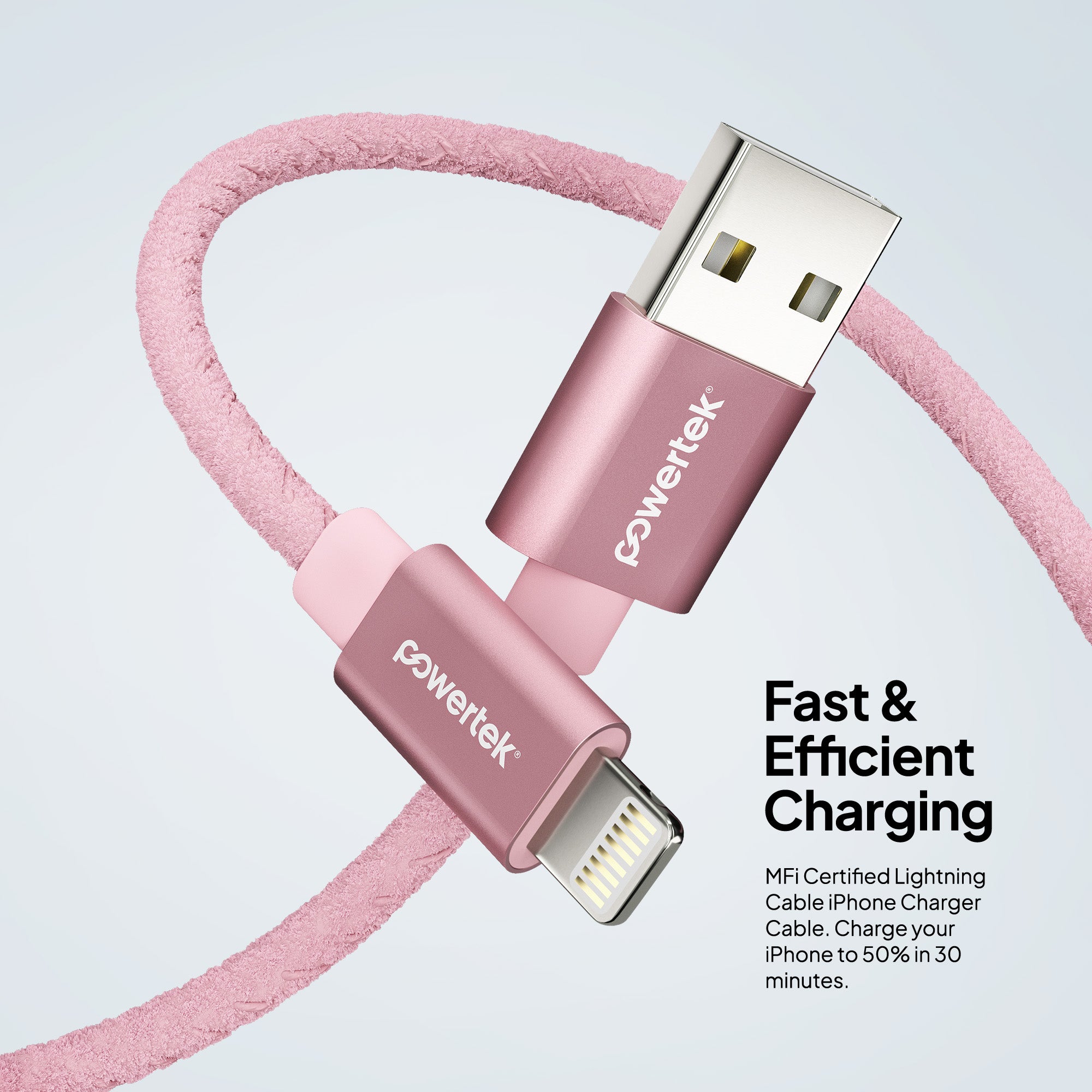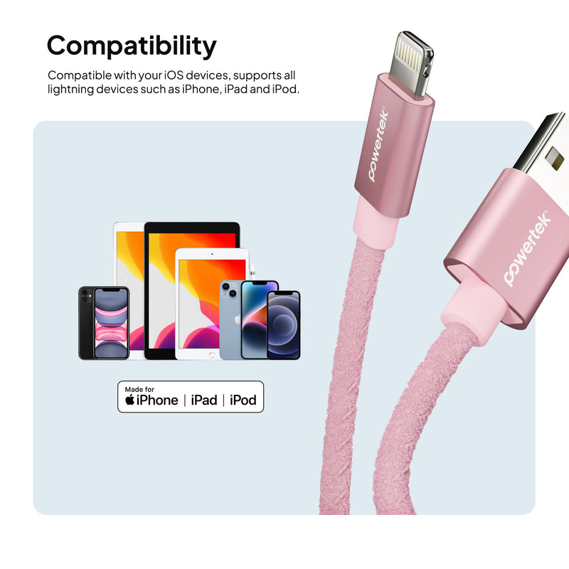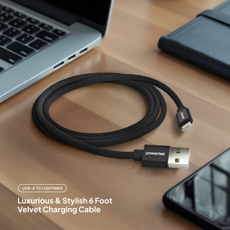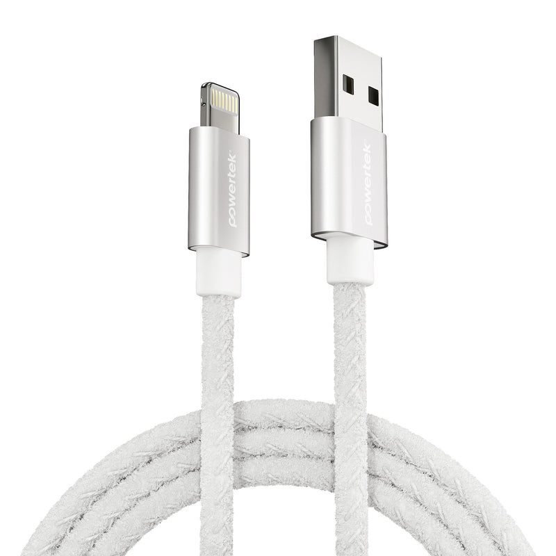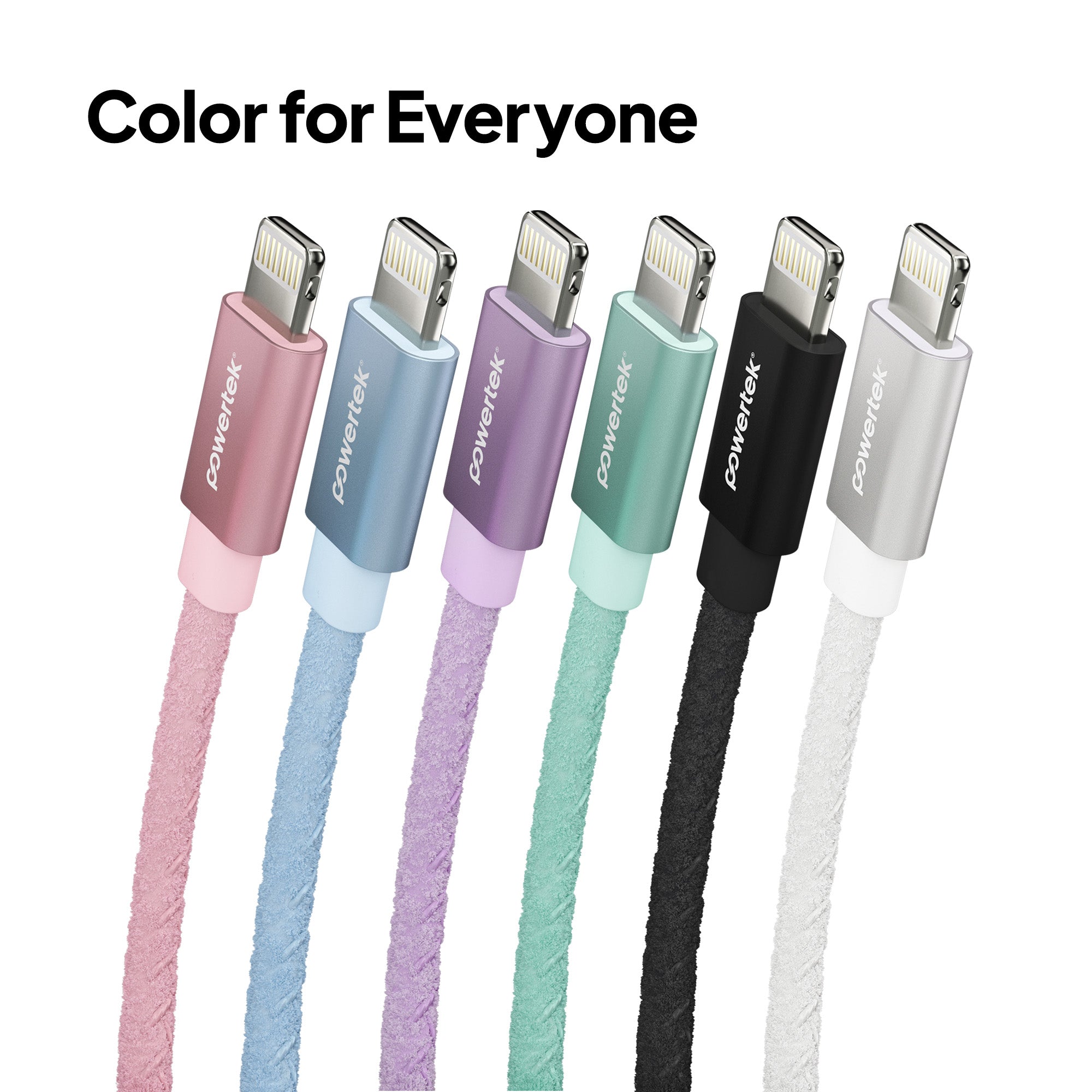 Powertek Pastel Velvet 6ft USB-A to Lightning Charging Cable