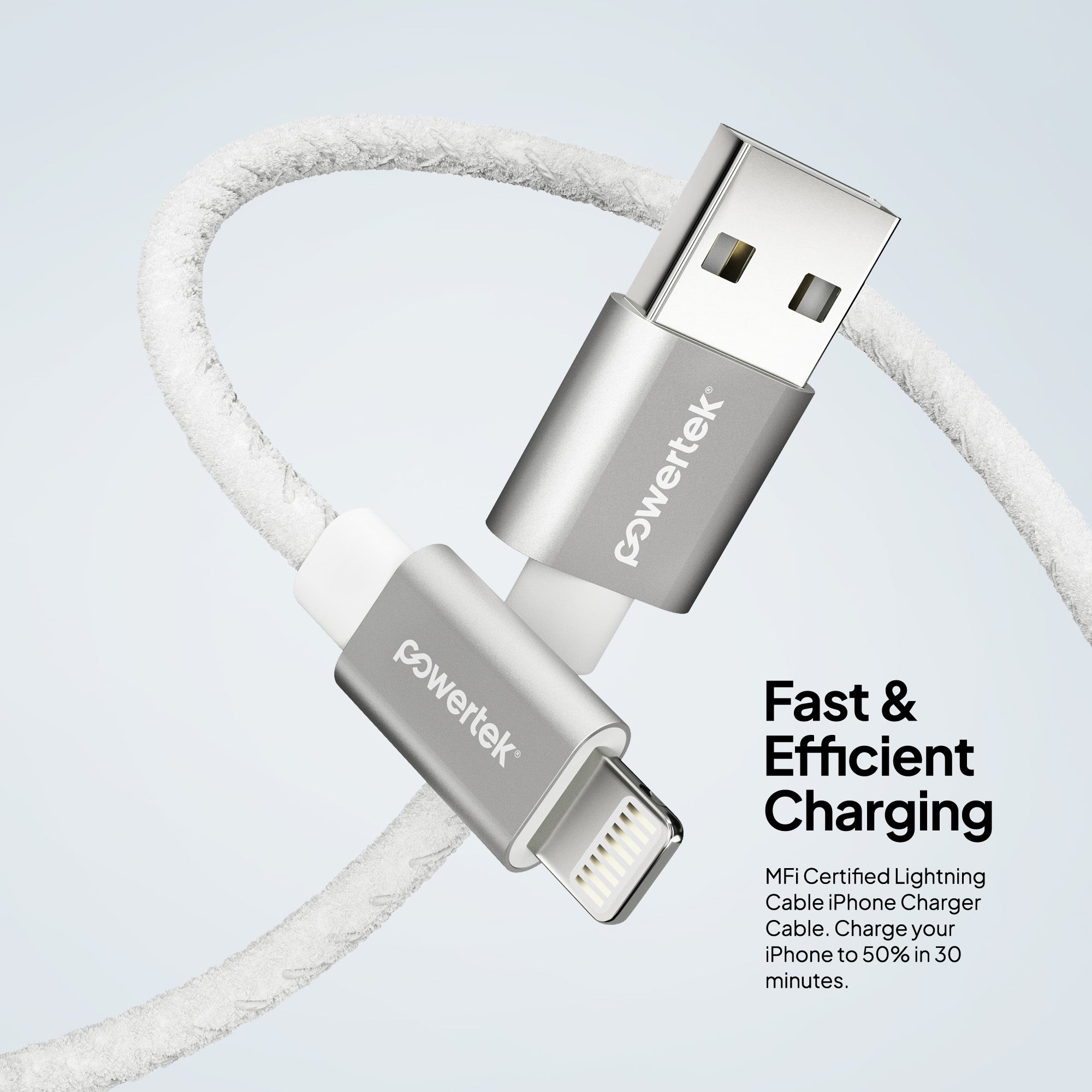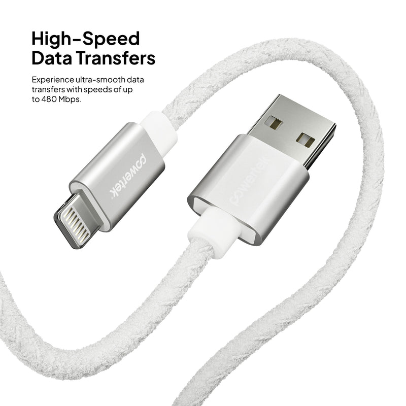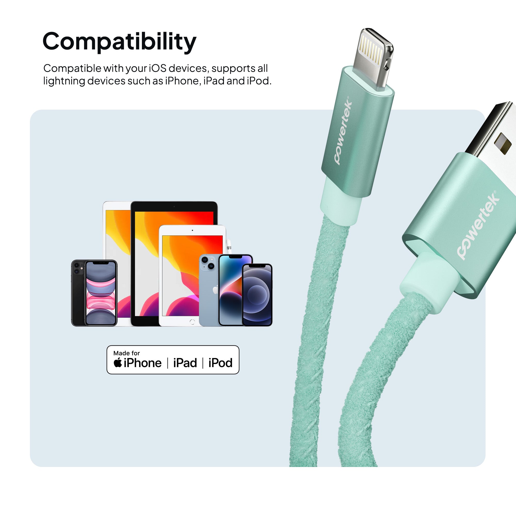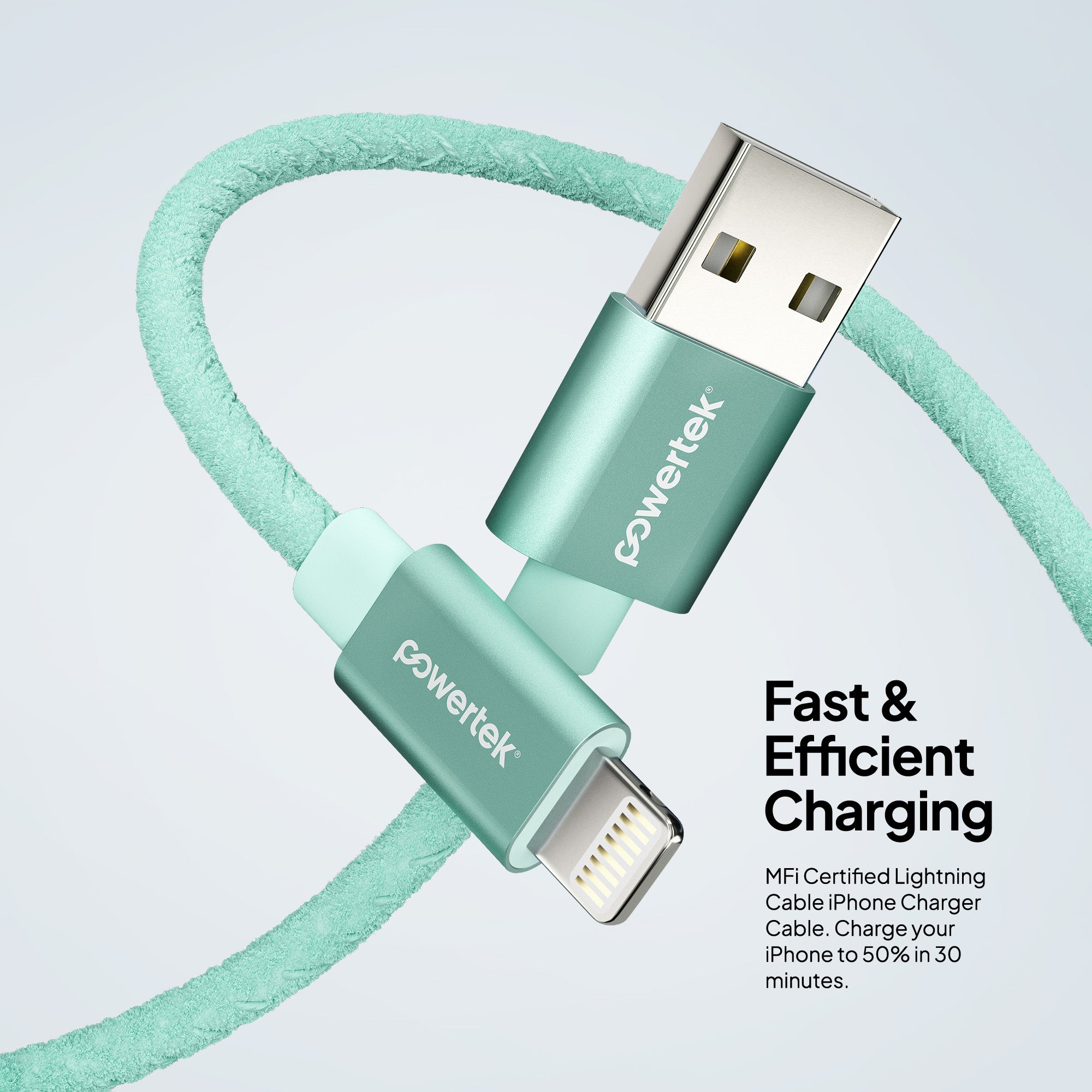 Powertek Pastel Velvet 6ft USB-A to Lightning Charging Cable