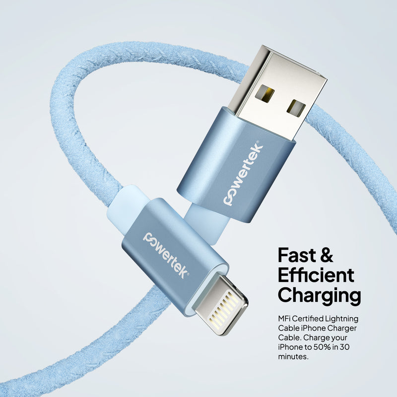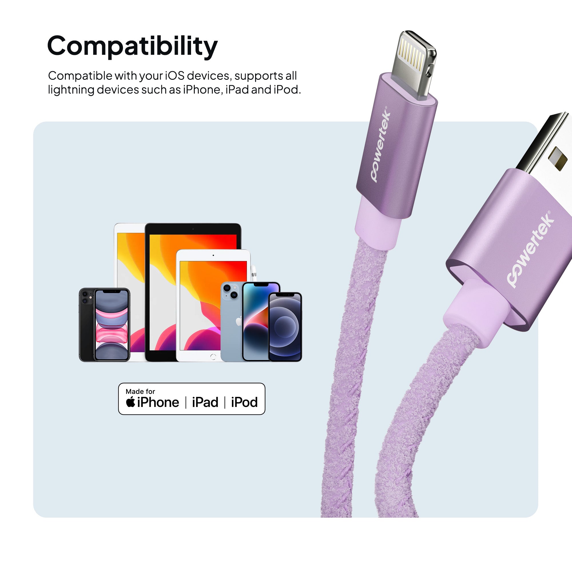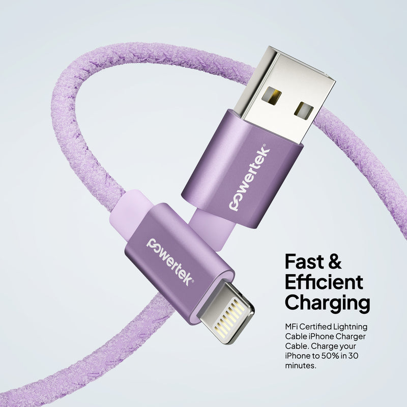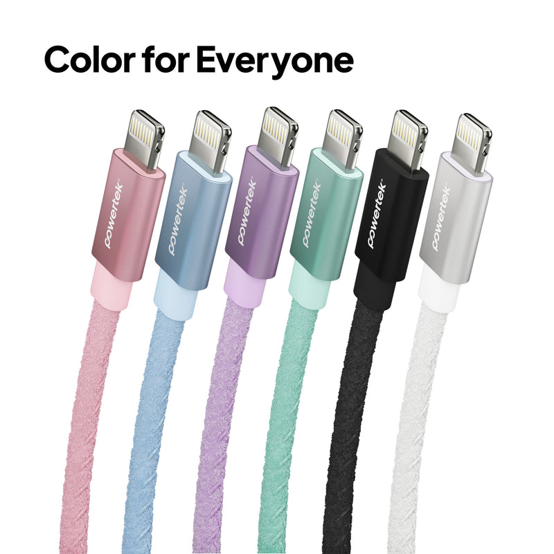 Upgrade your charging setup with the Powertek Pastel Velvet Lightning cable, designed for iPhone, iPad, and iPod. Built with MFi-certified chips for safe, reliable charging and a luxurious velvet design for long-lasting performance. Available in six stylish colors, so you can match your phone case and personal style.