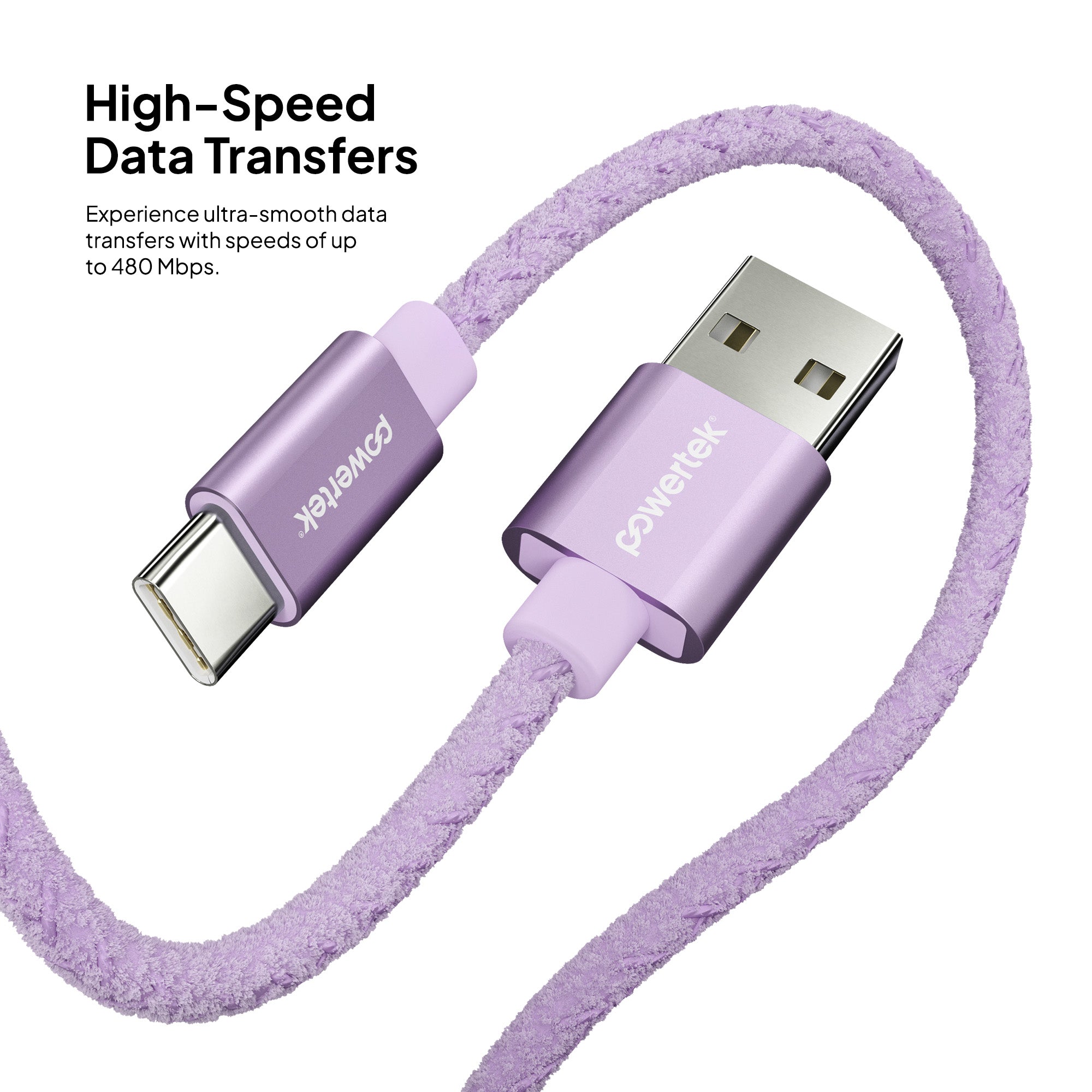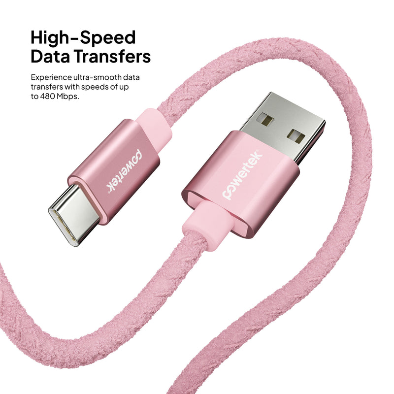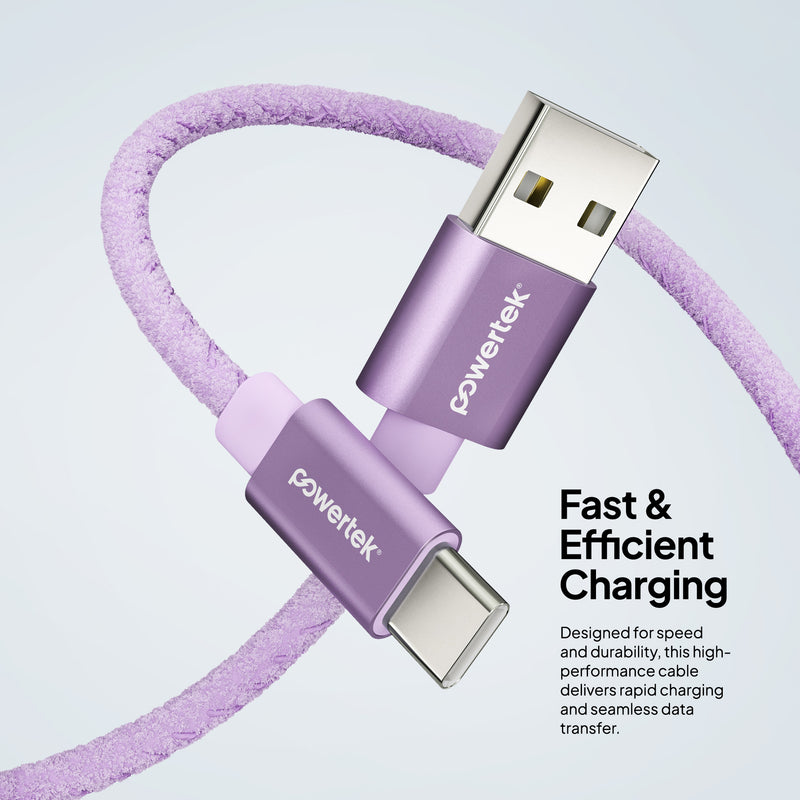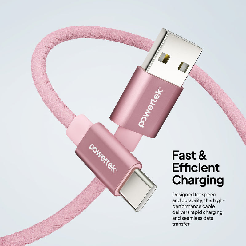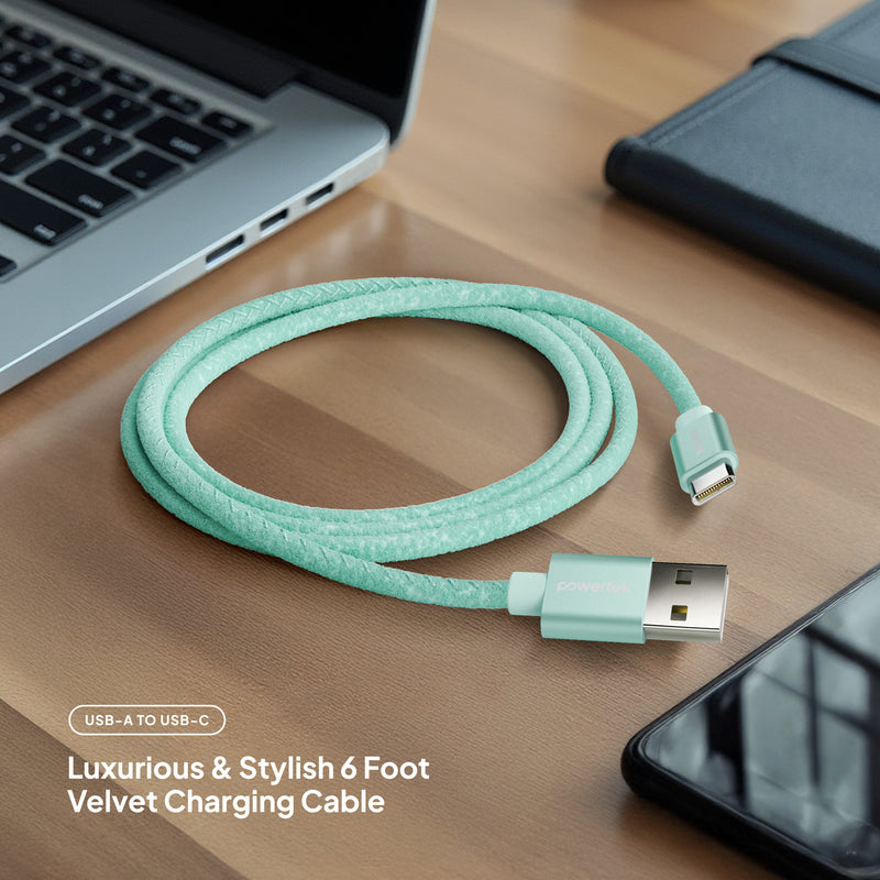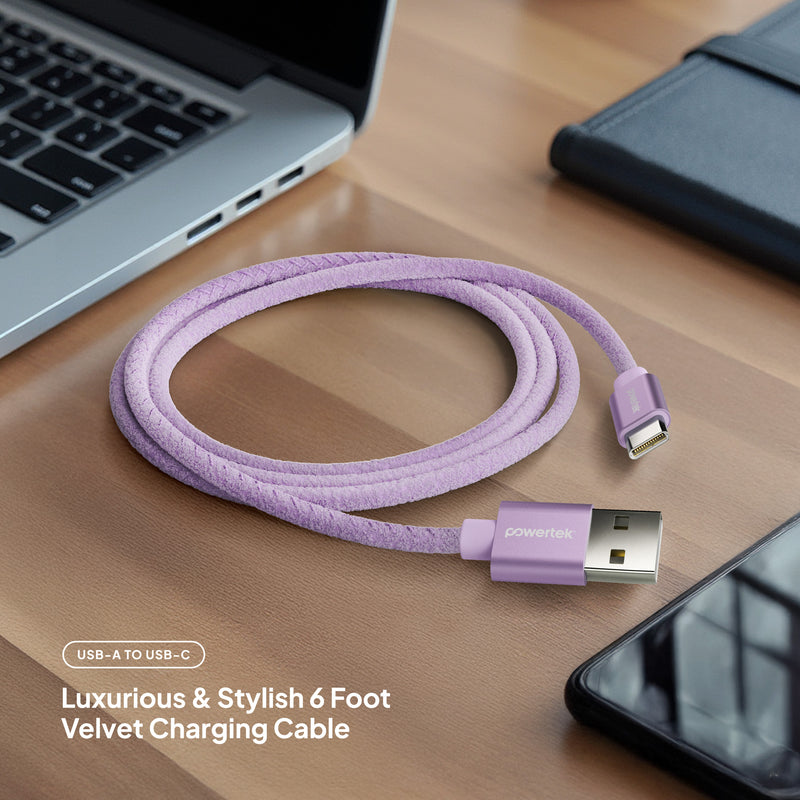 Upgrade your everyday charging experience with the Powertek Pastel Velvet USB-A to USB-C cable. Built for long-lasting performance, this premium 6-foot cable features a luxurious velvet design and high-quality USB-C chips for reliable, fast charging every time. Available in six stylish colors, so you can pick the perfect match for your phone case or personal style.