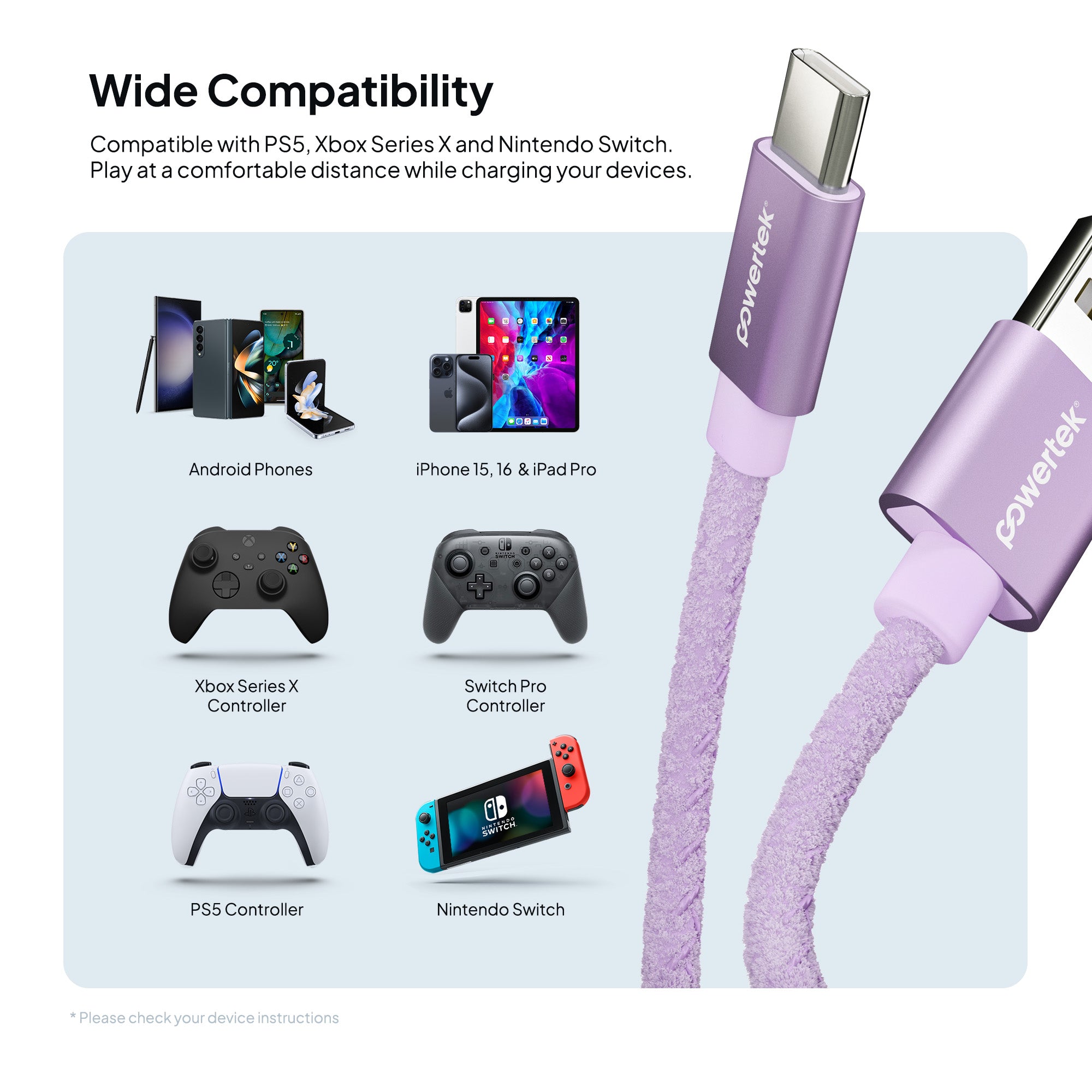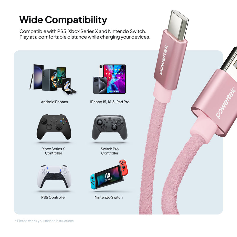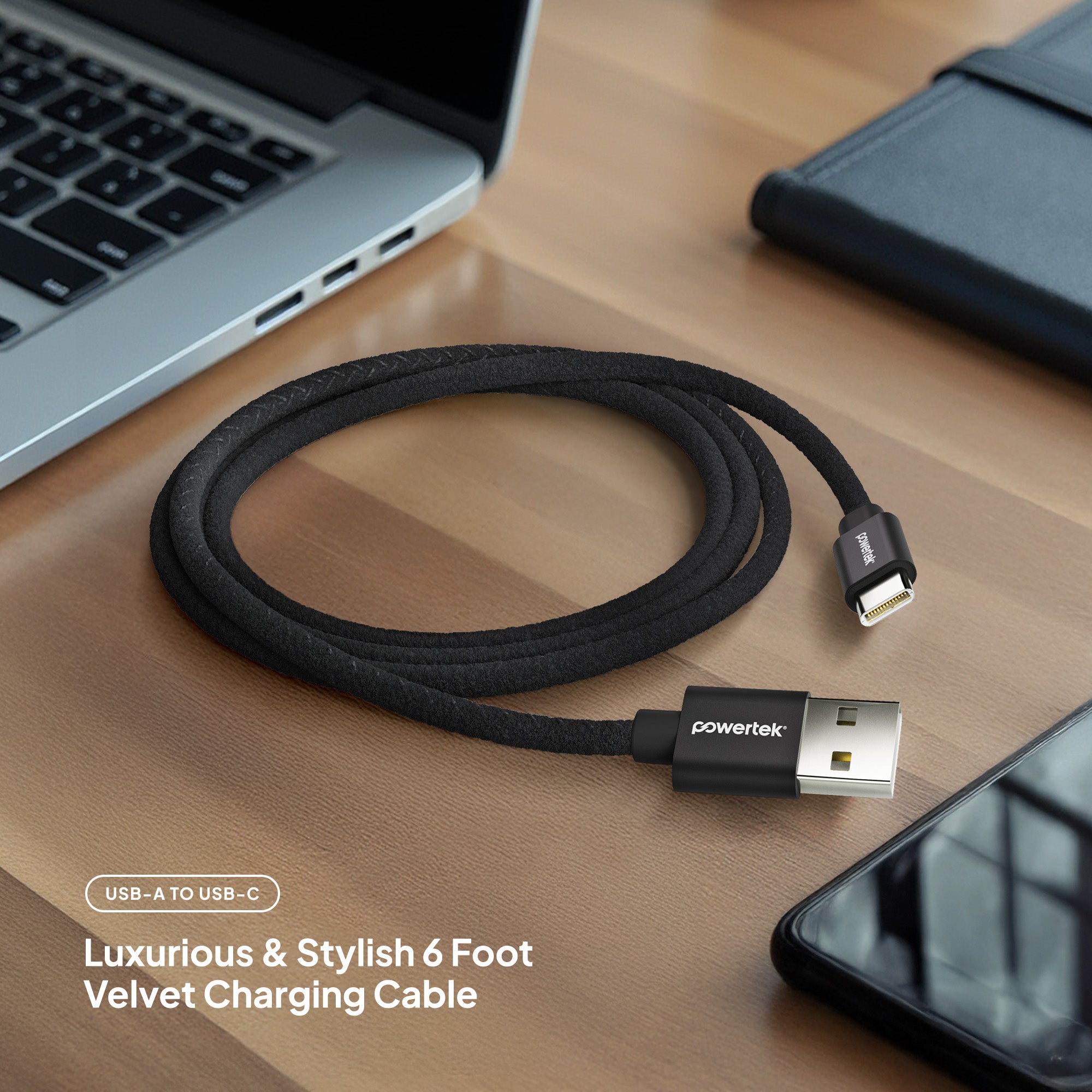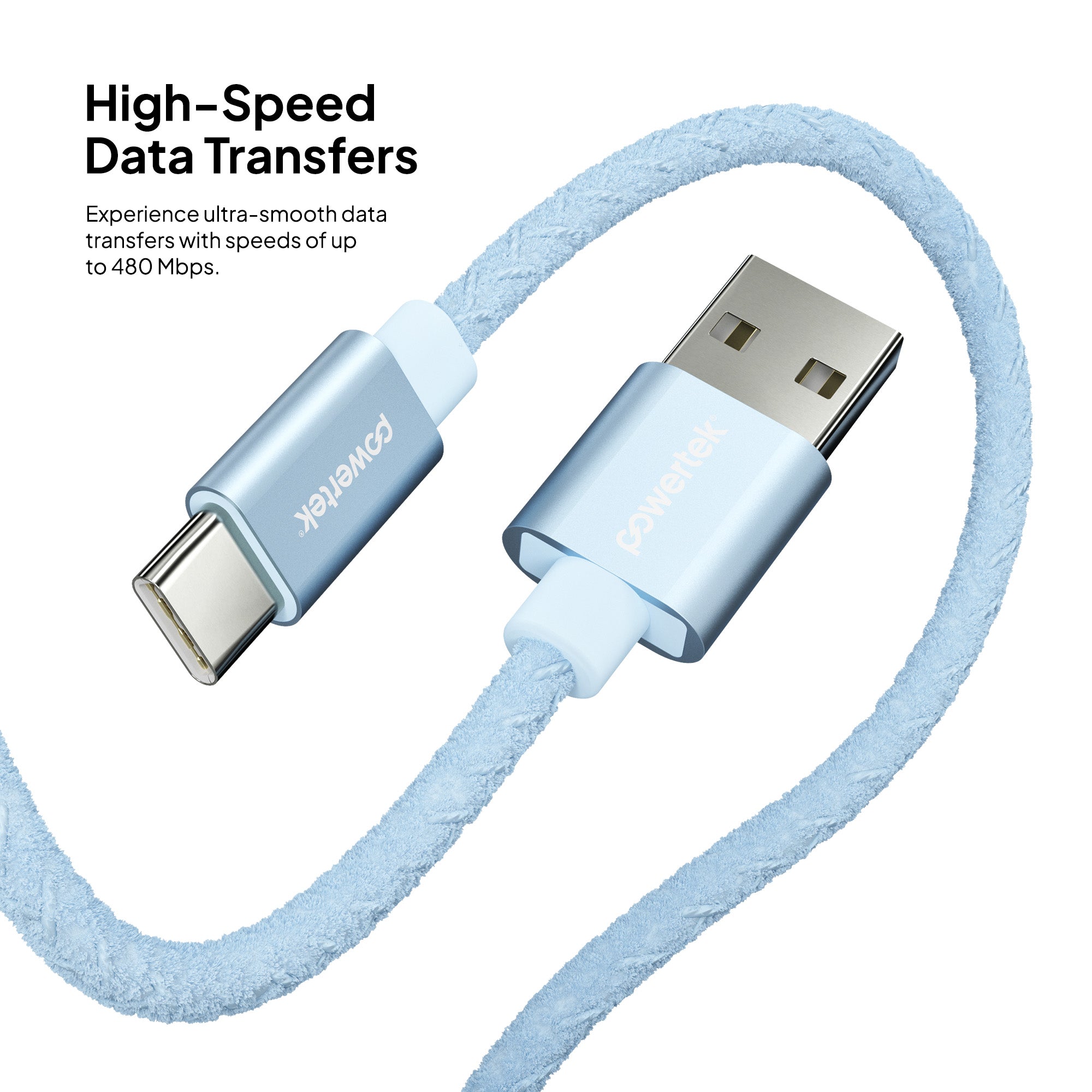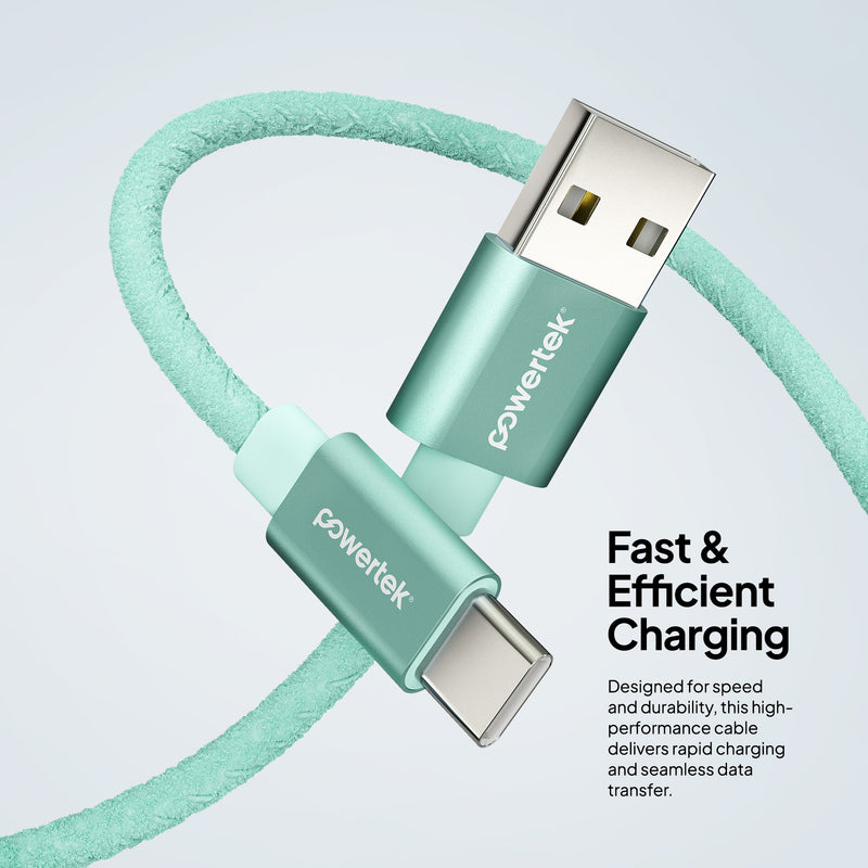 Upgrade your everyday charging experience with the Powertek Pastel Velvet USB-A to USB-C cable. Built for long-lasting performance, this premium 6-foot cable features a luxurious velvet design and high-quality USB-C chips for reliable, fast charging every time. Available in six stylish colors, so you can pick the perfect match for your phone case or personal style.