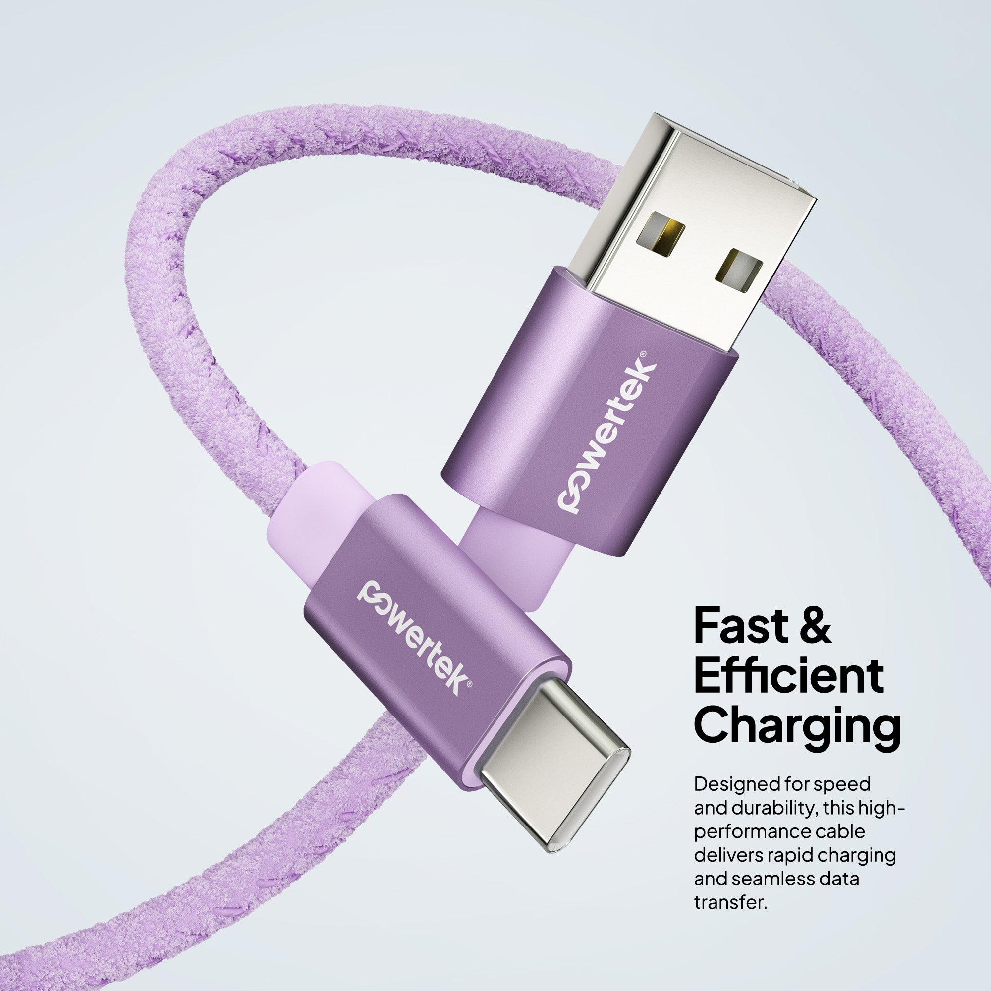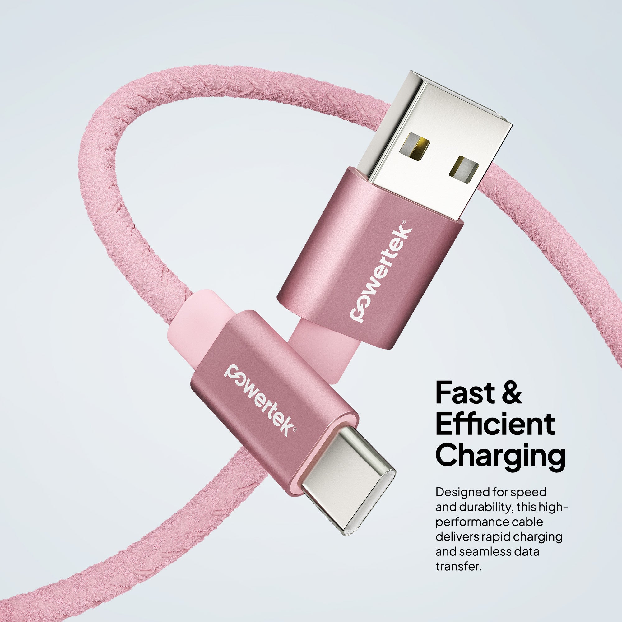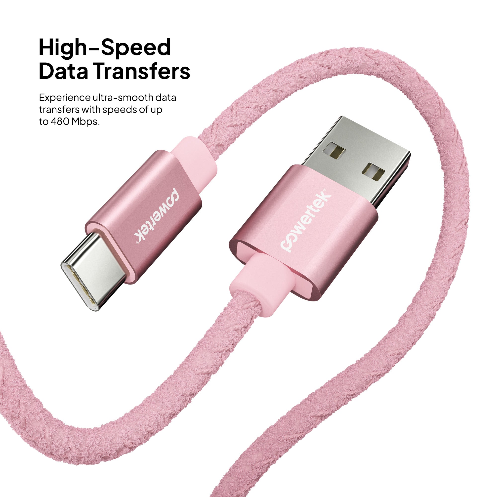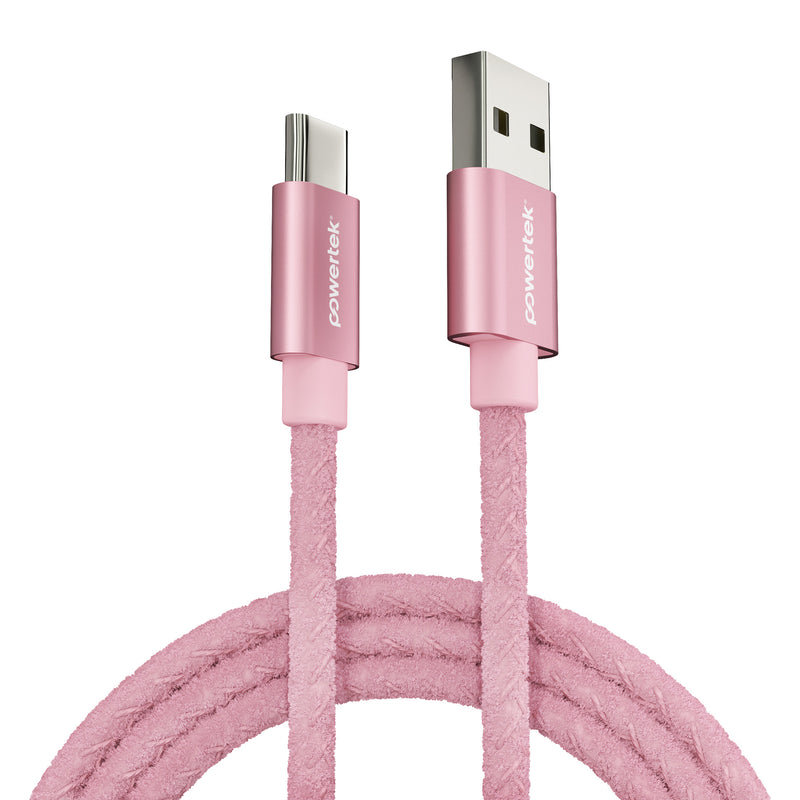 Powertek Pastel Velvet 6ft USB-A to USB-C Charging Cable