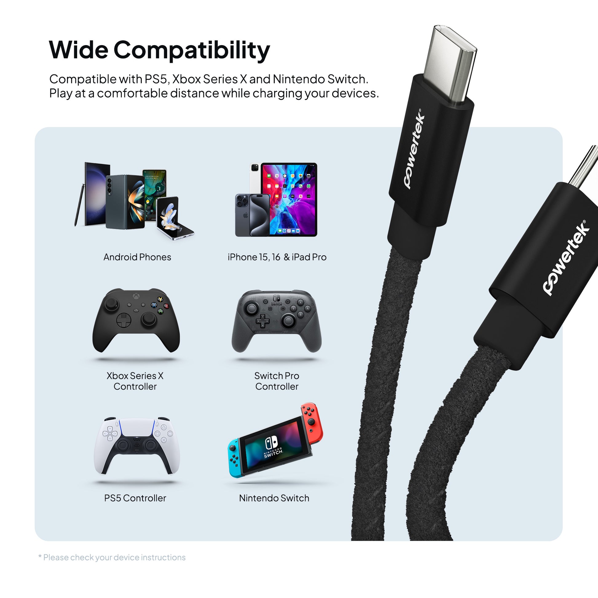 Compatible with smartphones, tablets, and laptops, this cable pairs seamlessly with the Powertek portable battery banks or wall block chargers for the ultimate charging setup.