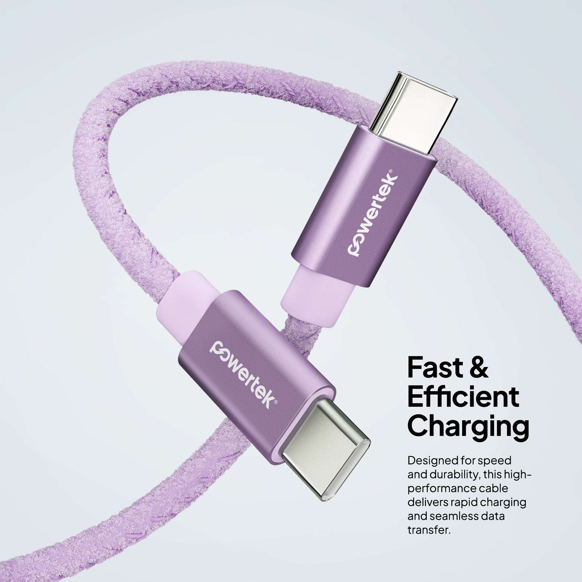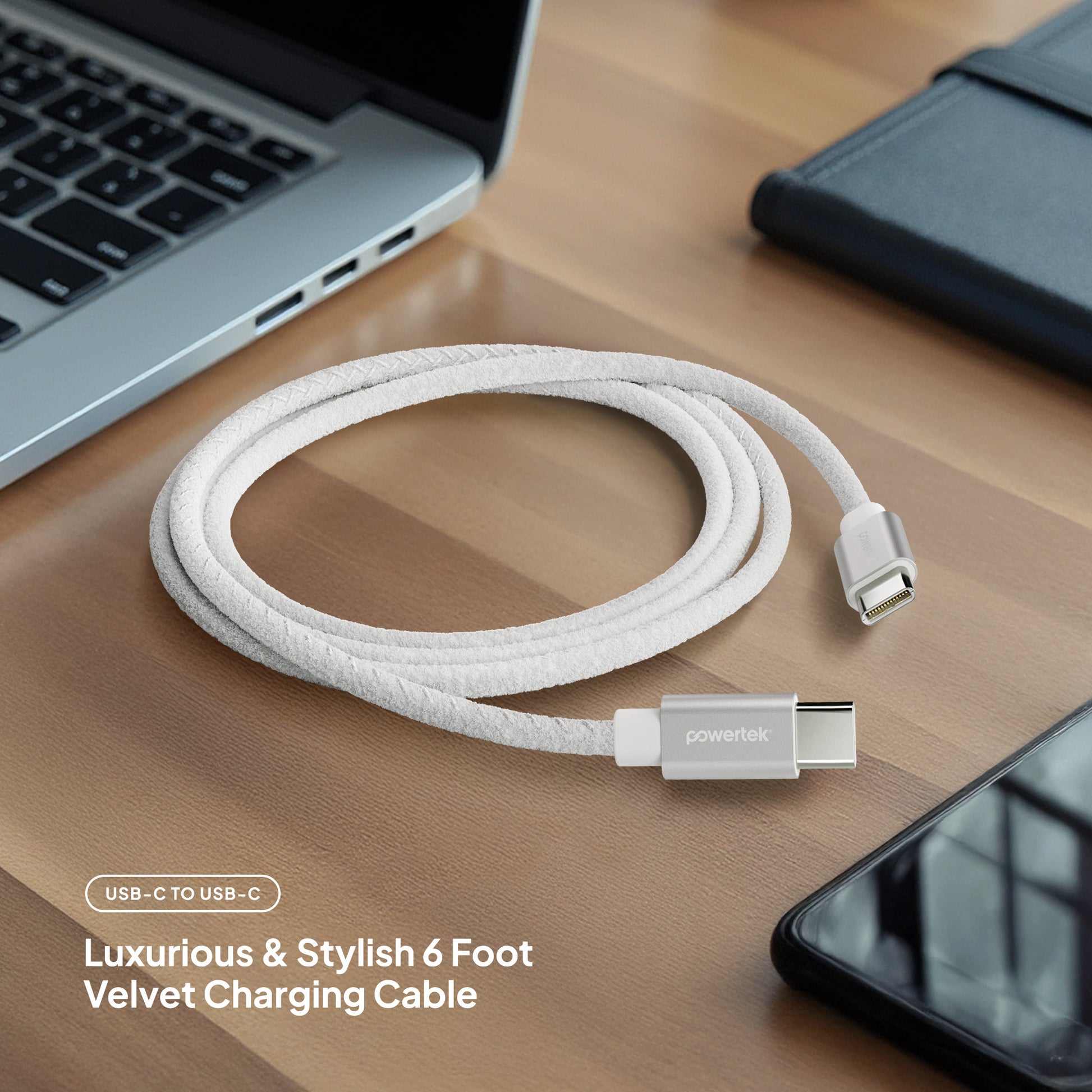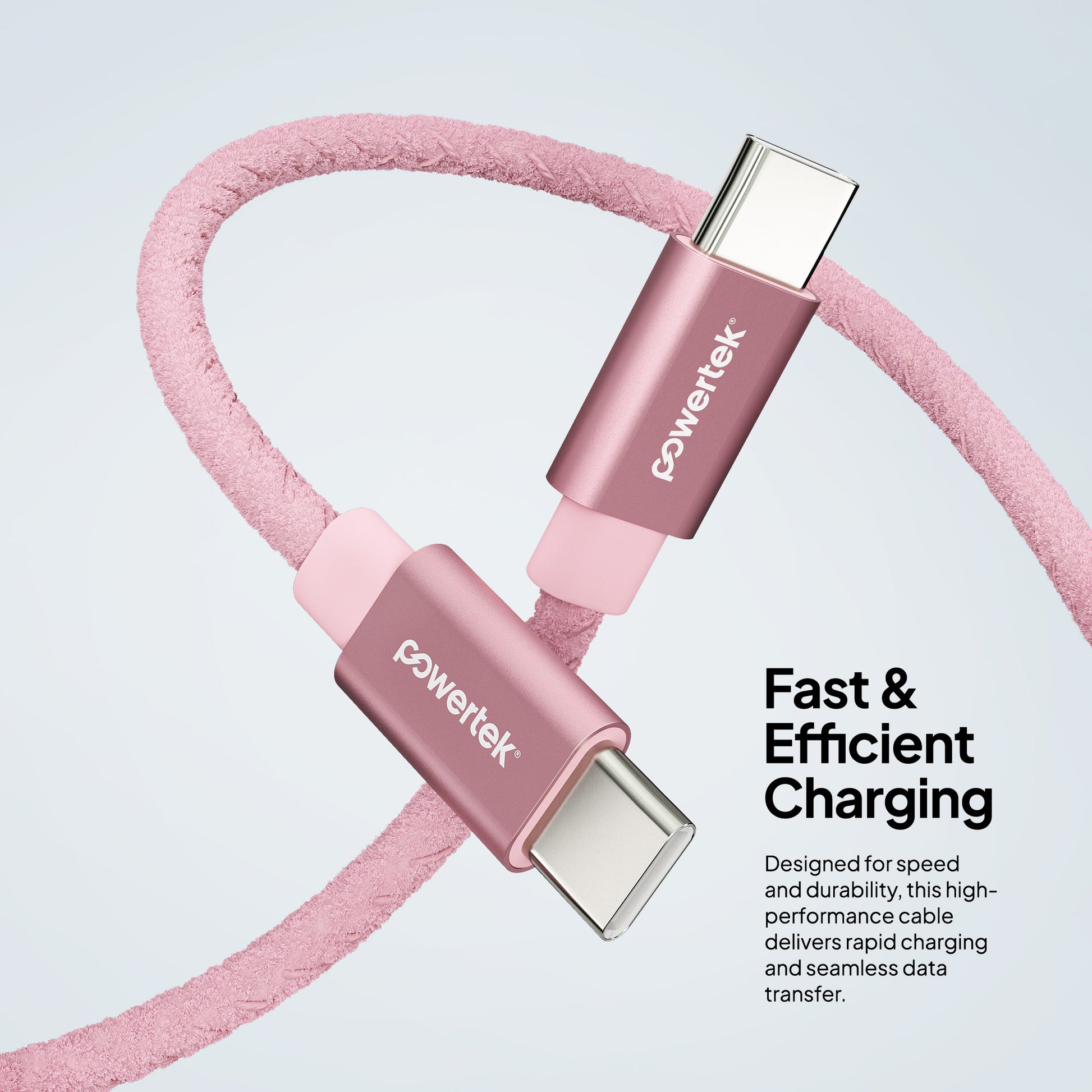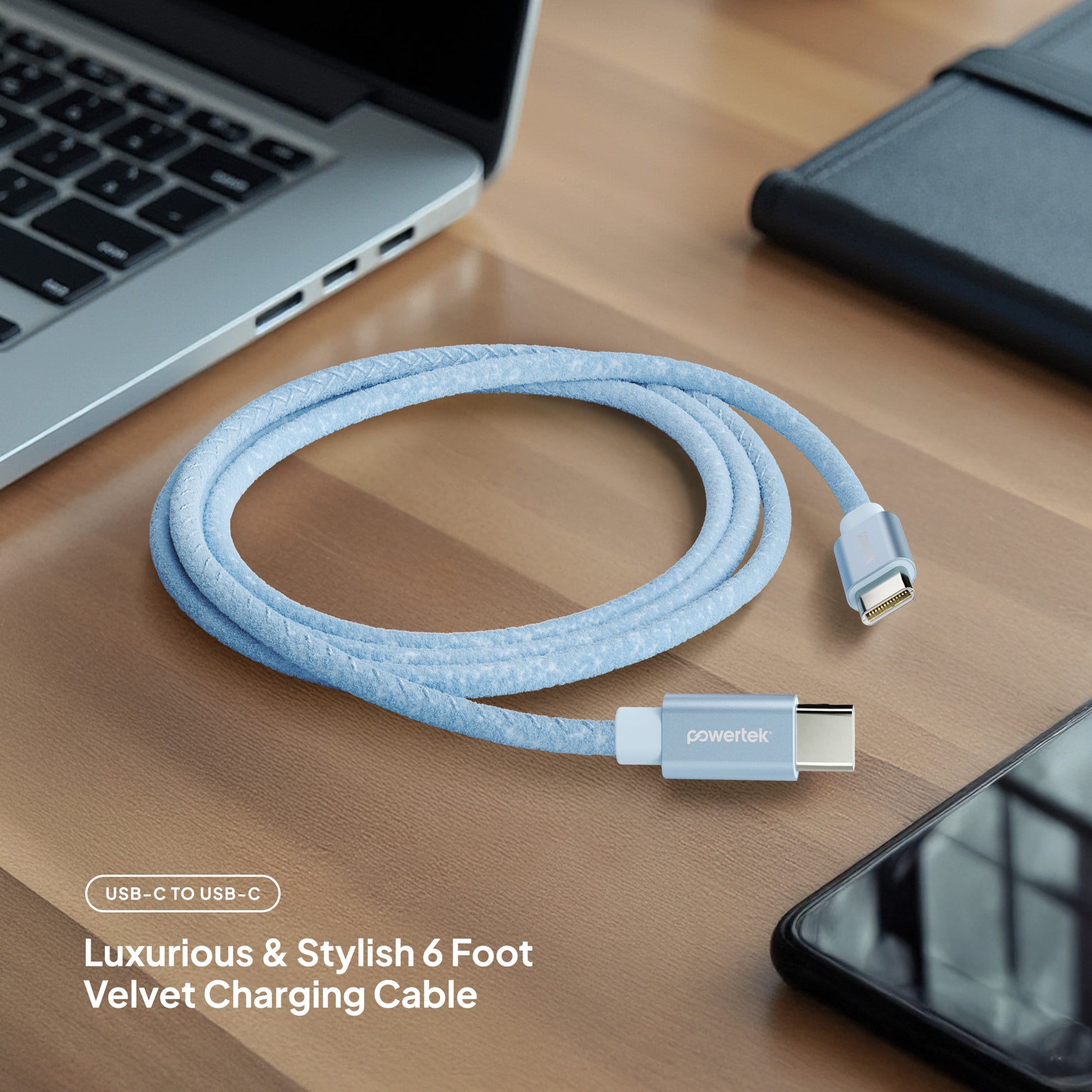 Powertek Pastel Velvet 6ft USB-C to USB-C Charging Cable