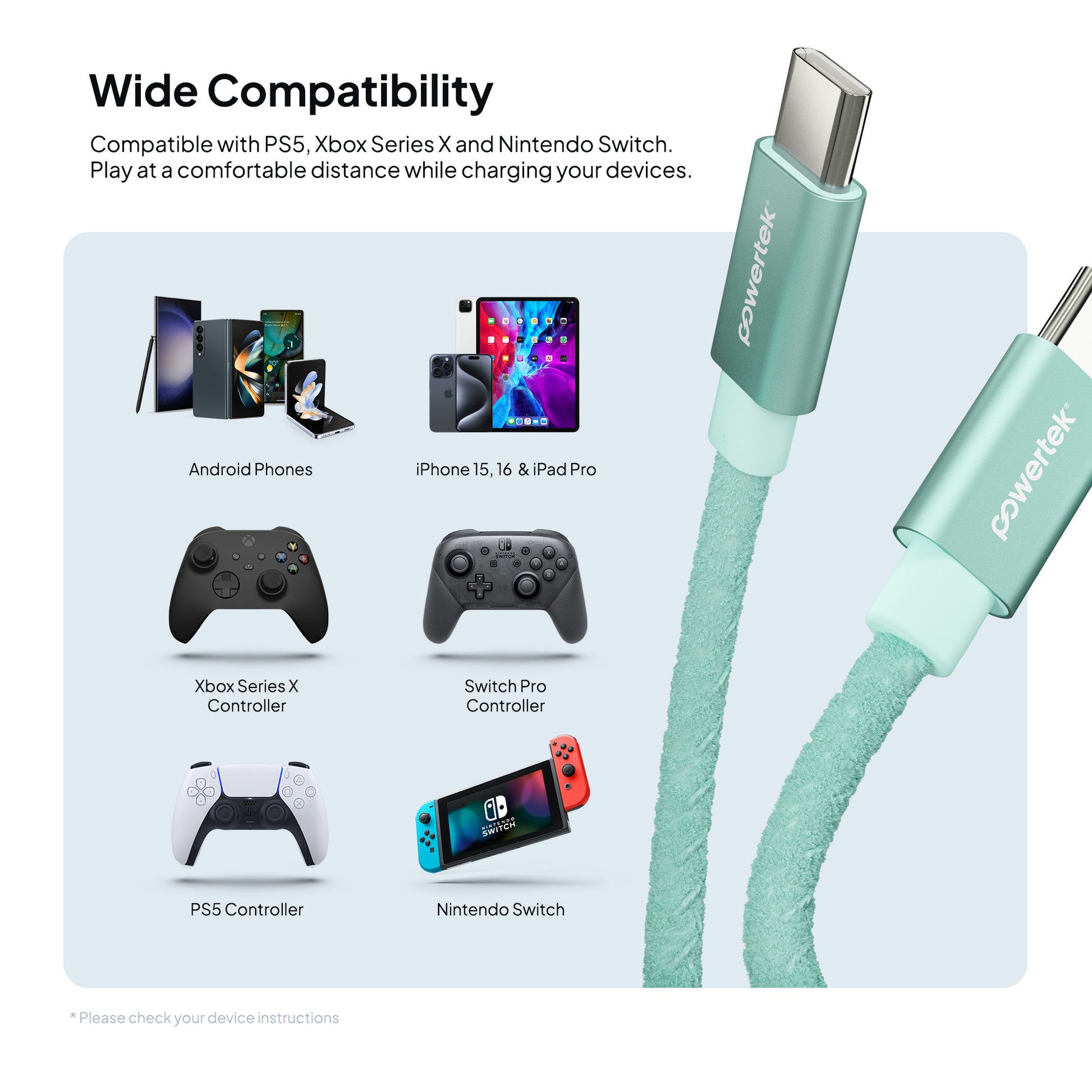 Upgrade your everyday charging experience with the Powertek Pastel Velvet USB-C to USB-C cable. Built for long-lasting performance, this premium 6-foot cable features a luxurious velvet design and high-quality USB-C chips for reliable, fast charging every time. Available in six stylish colors, so you can pick the perfect match for your phone case or personal style.