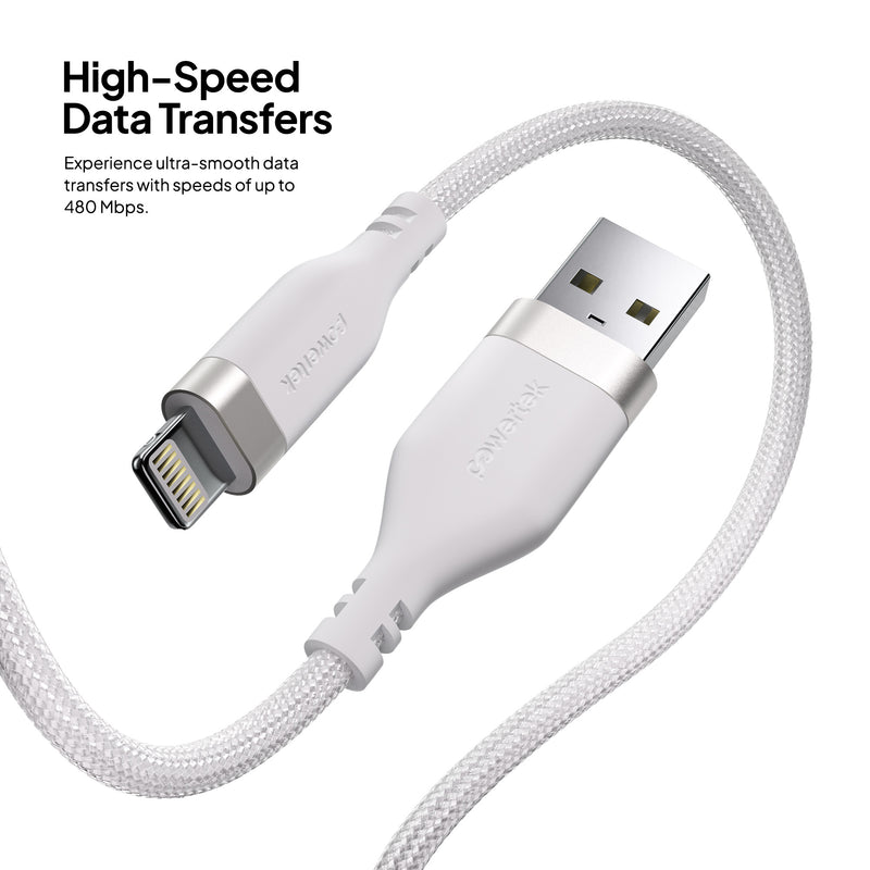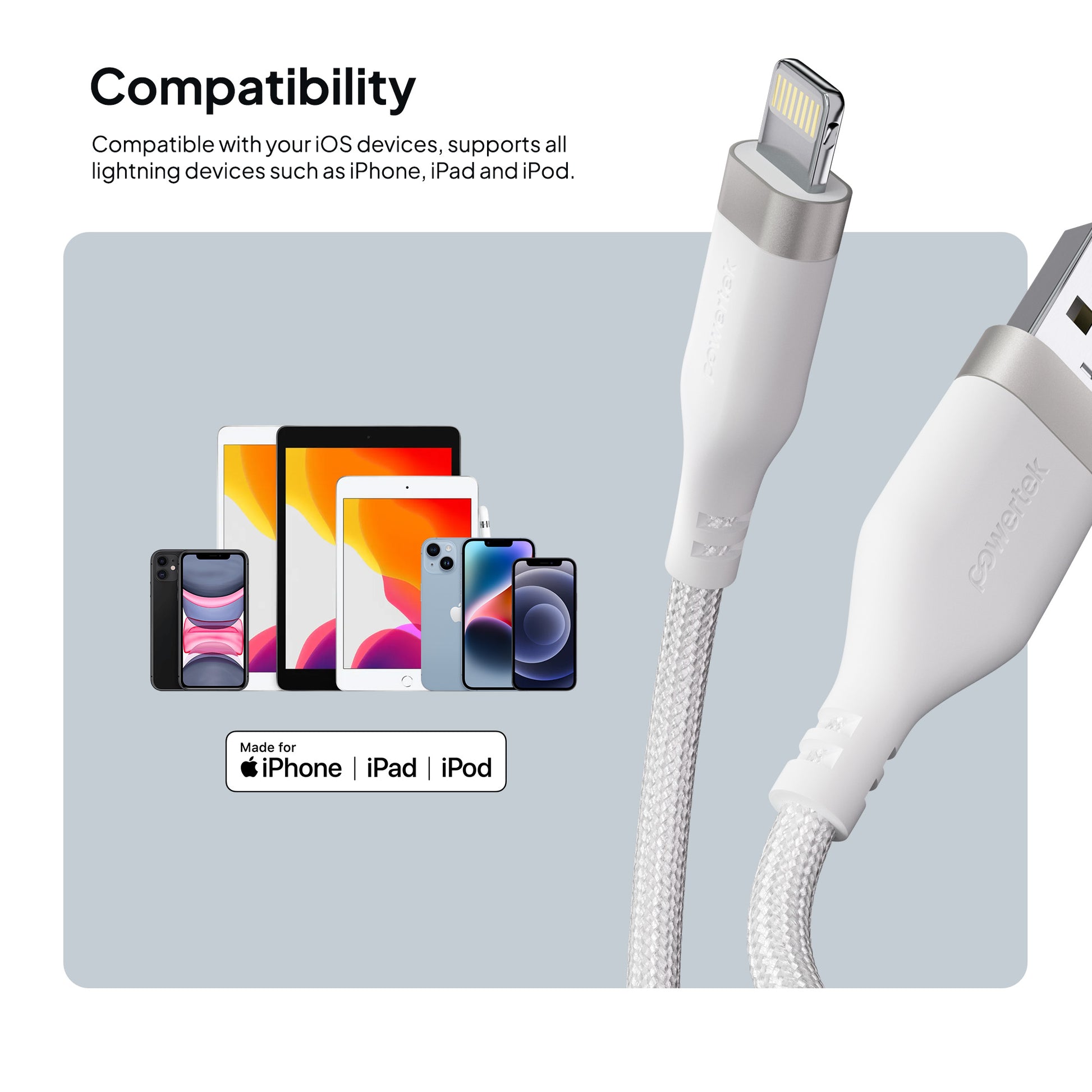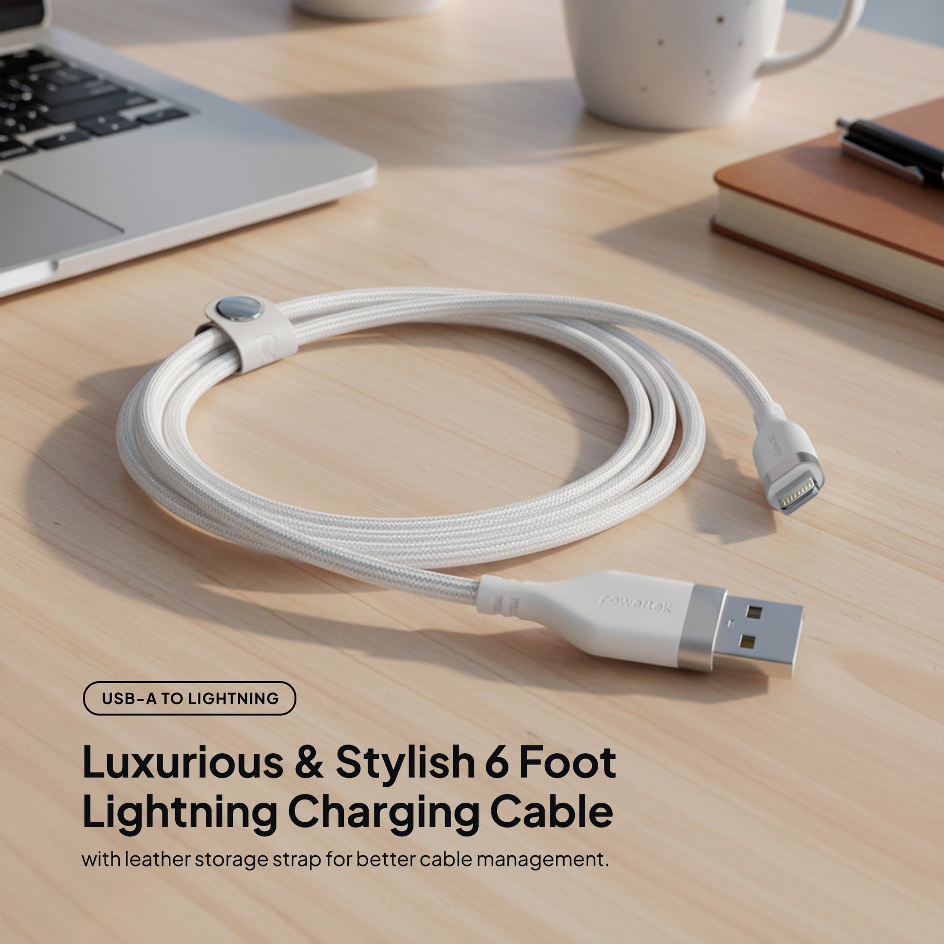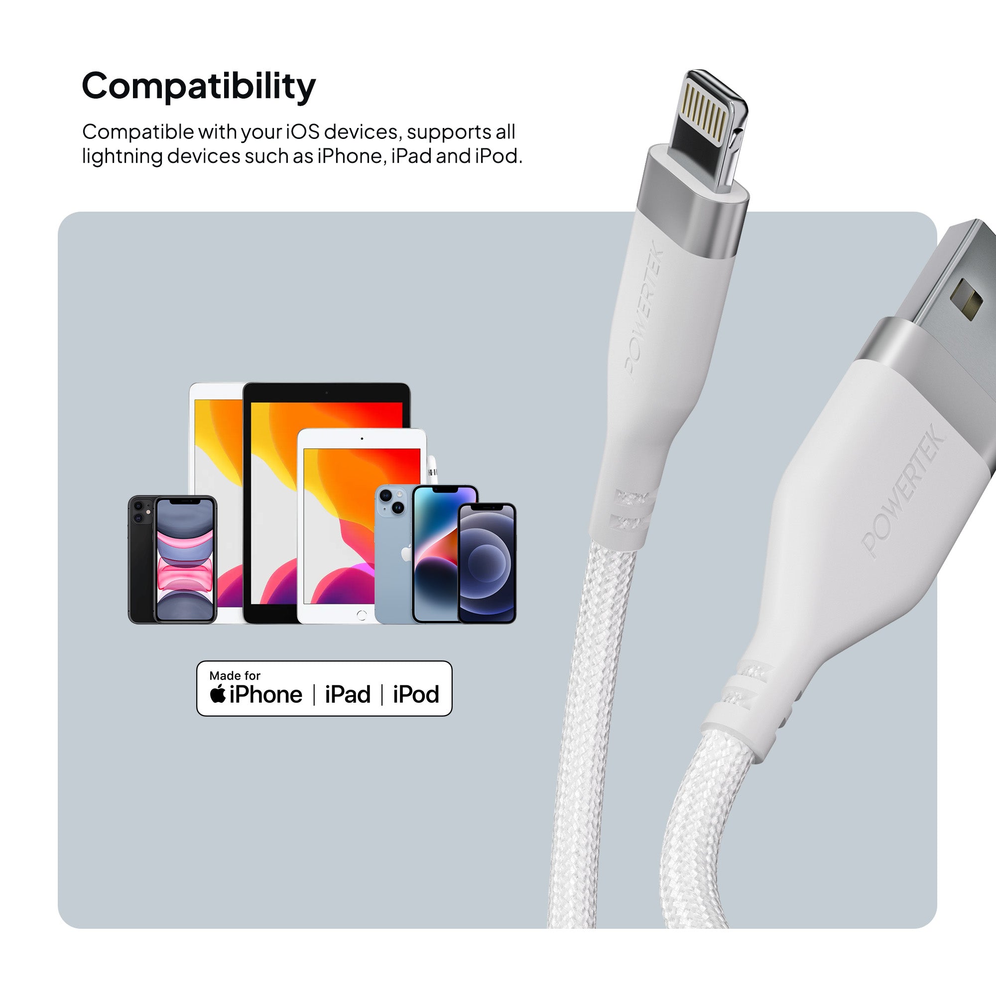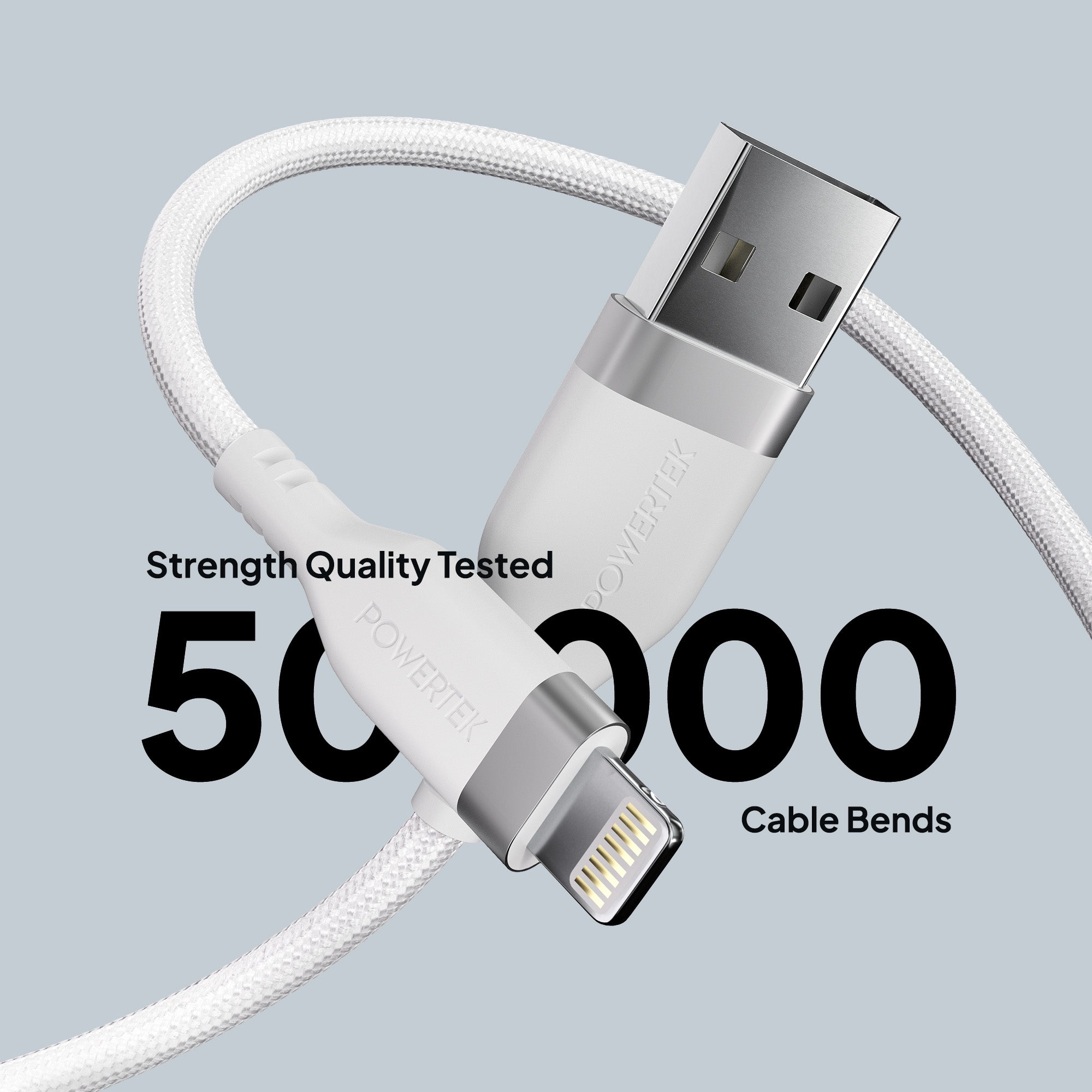 Powertek Premium Braided 6ft USB-A to Lightning Charging Cable